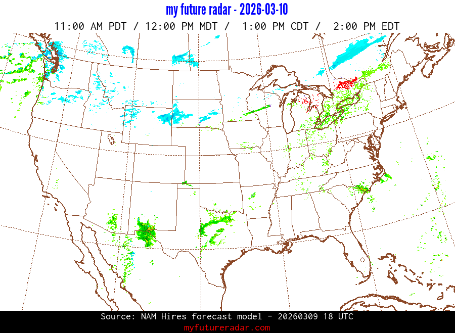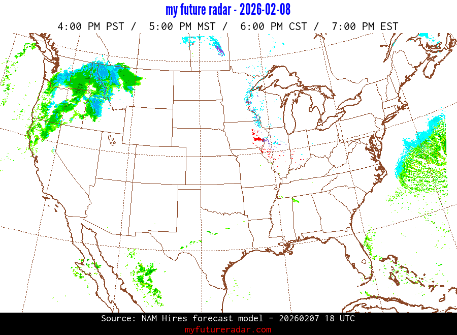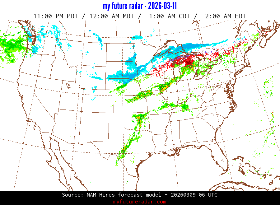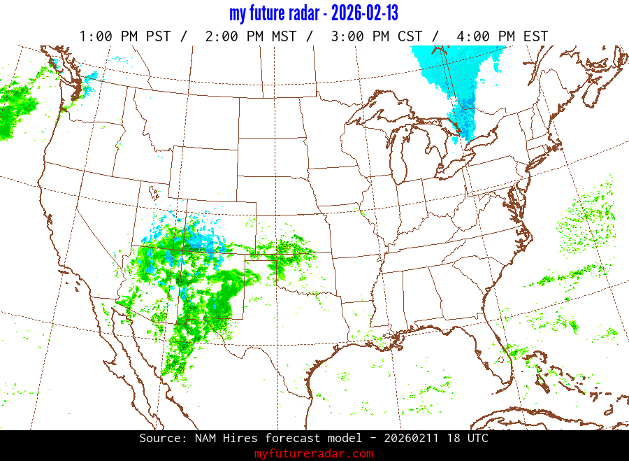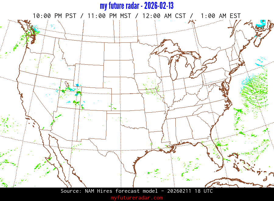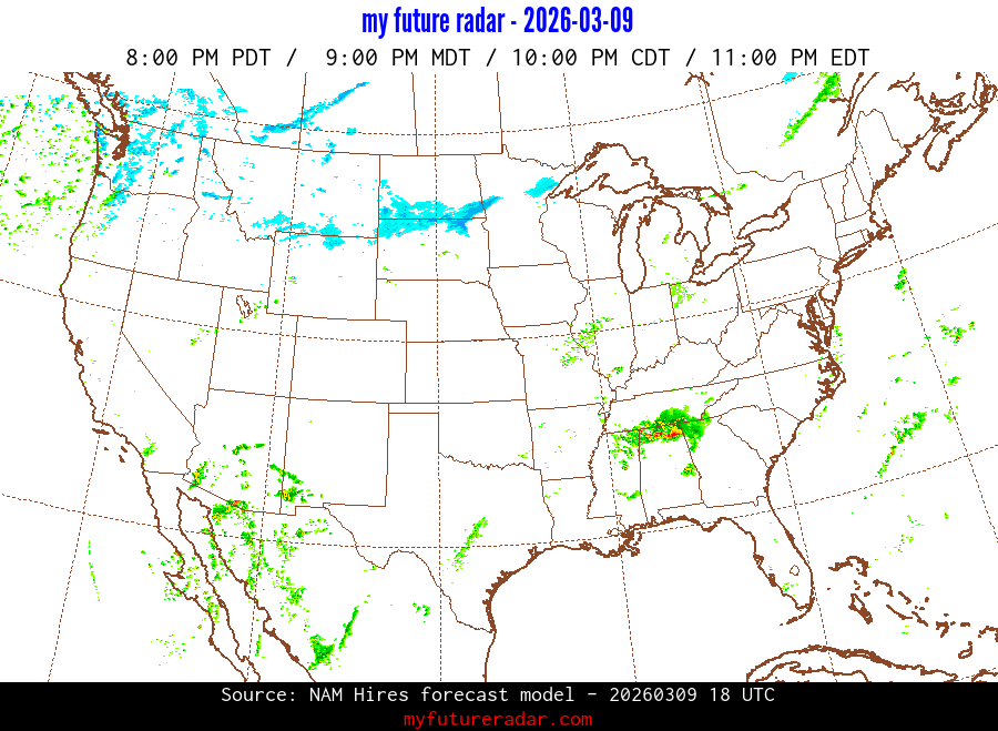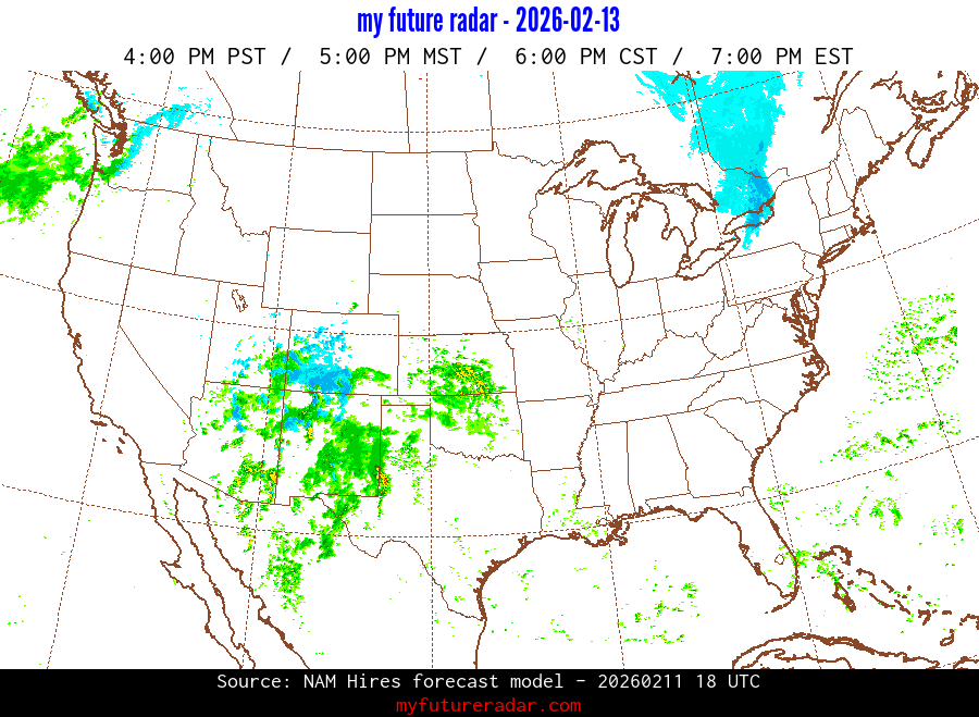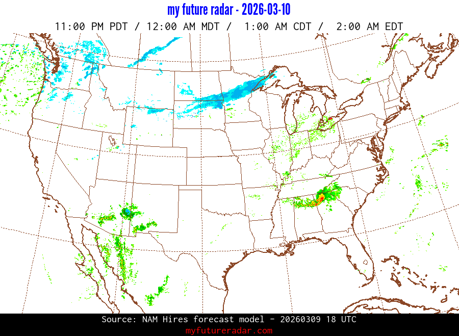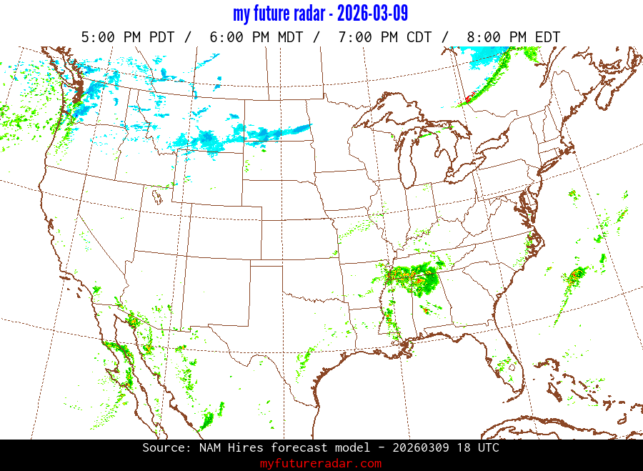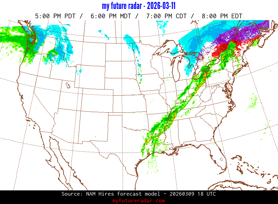 My Future Radar uses data from the Rapid Refresh and the NAM forecast models to provide simulated future radar imagery.