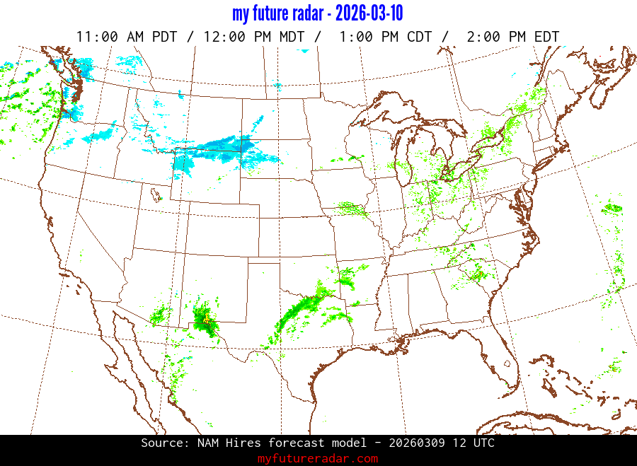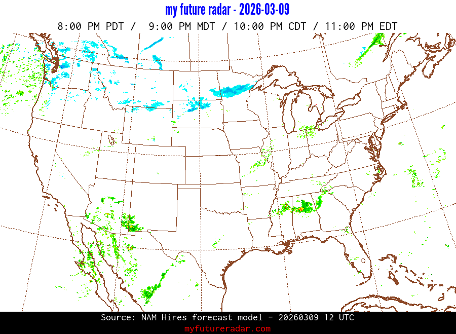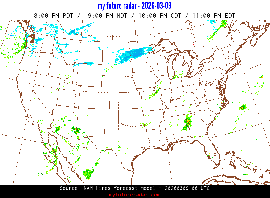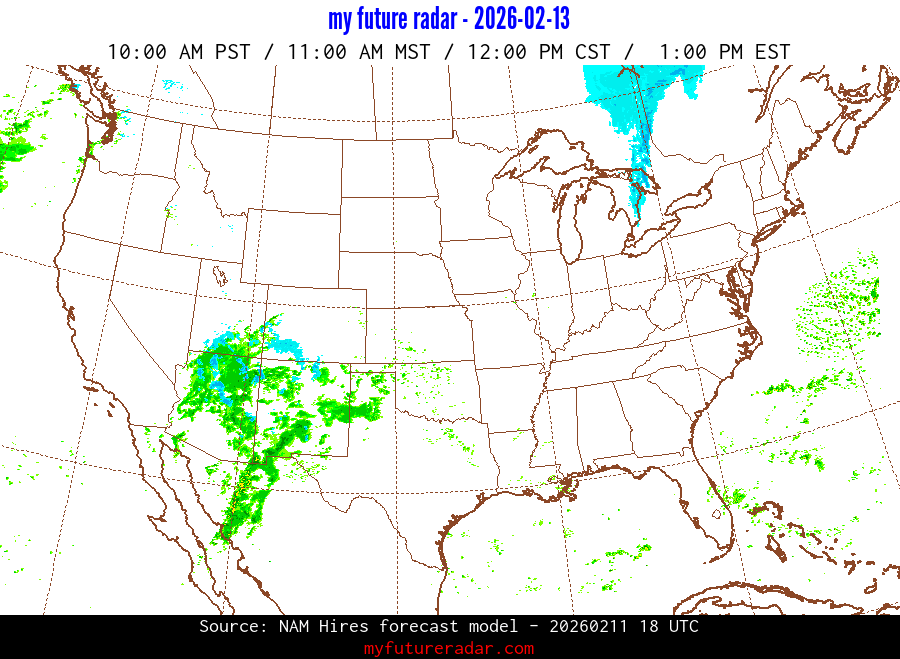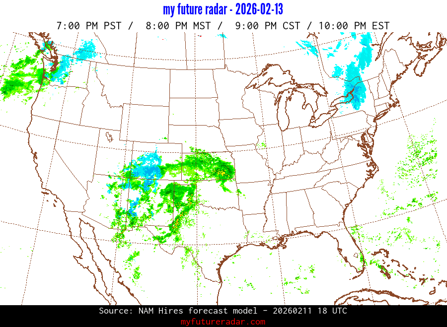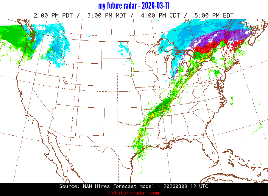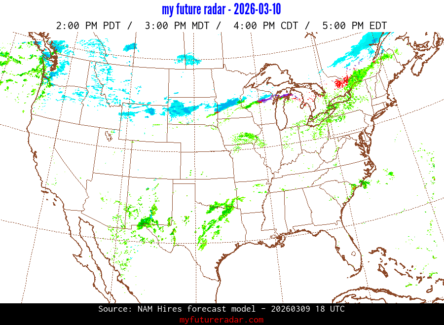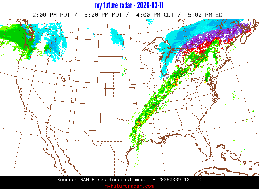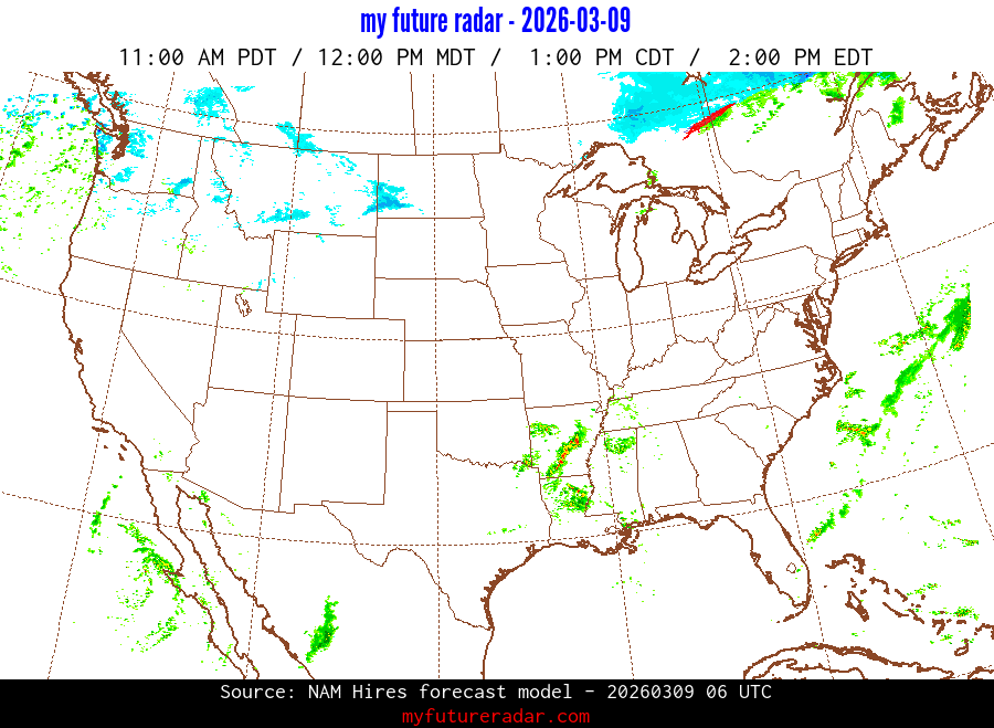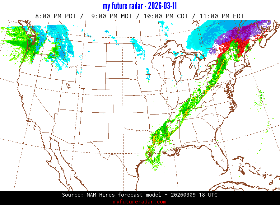 My Future Radar uses data from the Rapid Refresh and the NAM forecast models to provide simulated future radar imagery.