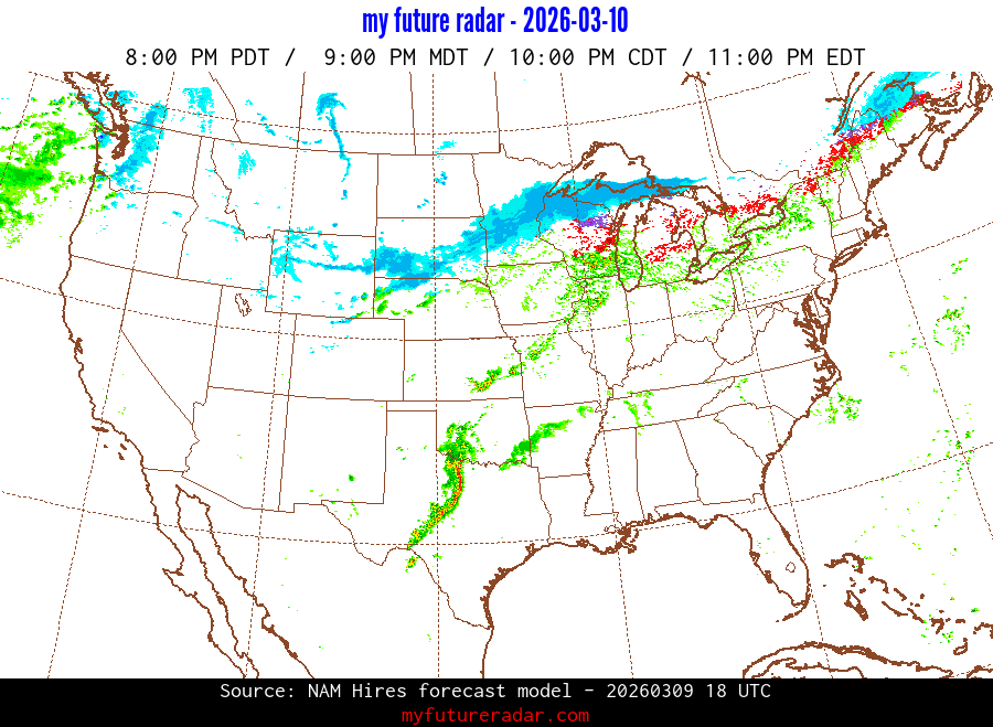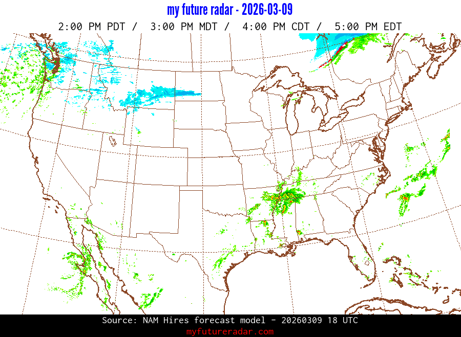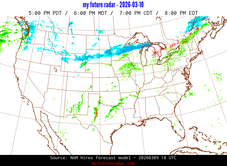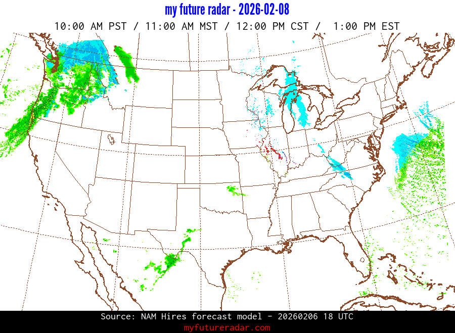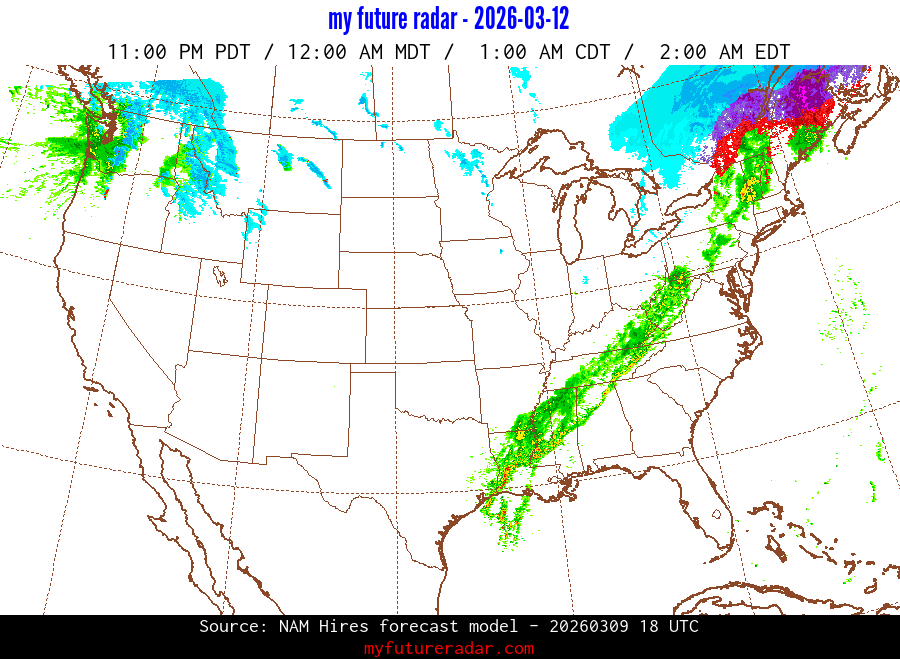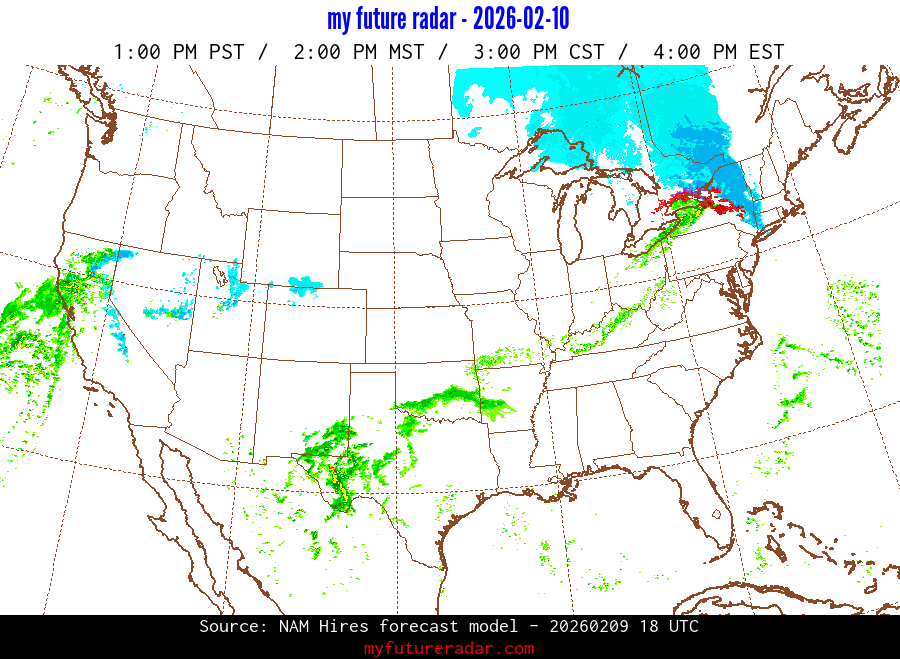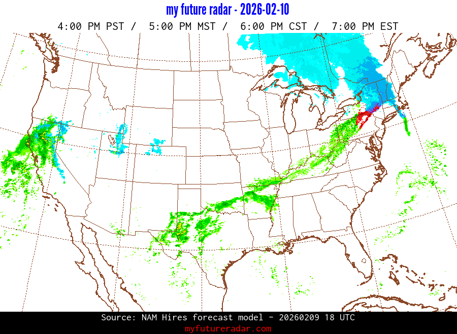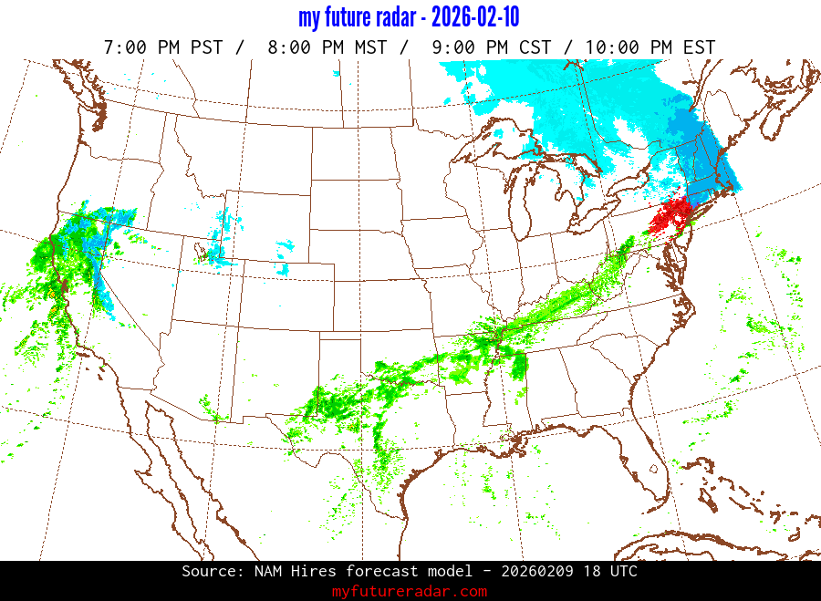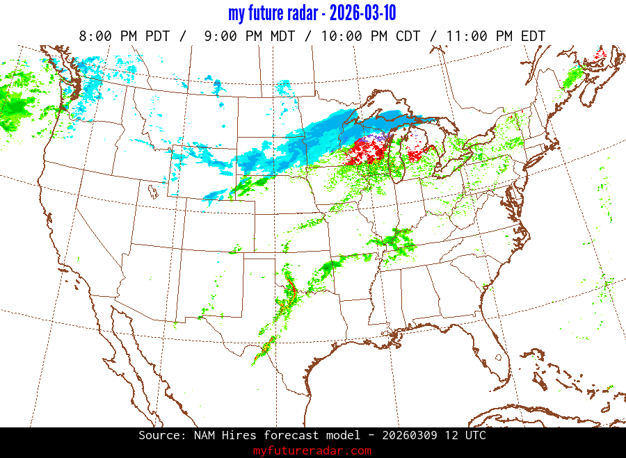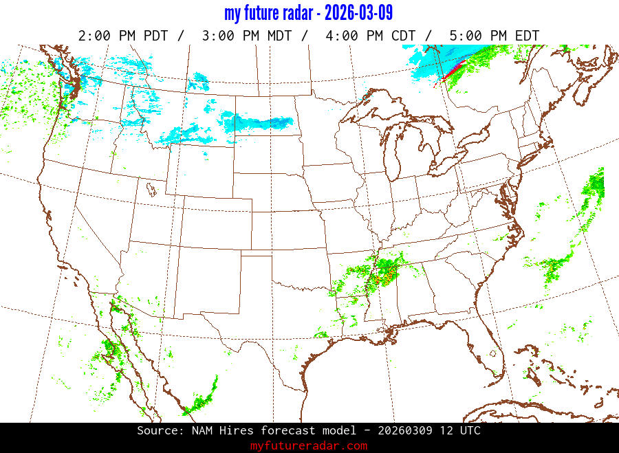 My Future Radar uses data from the Rapid Refresh and the NAM forecast models to provide simulated future radar imagery.