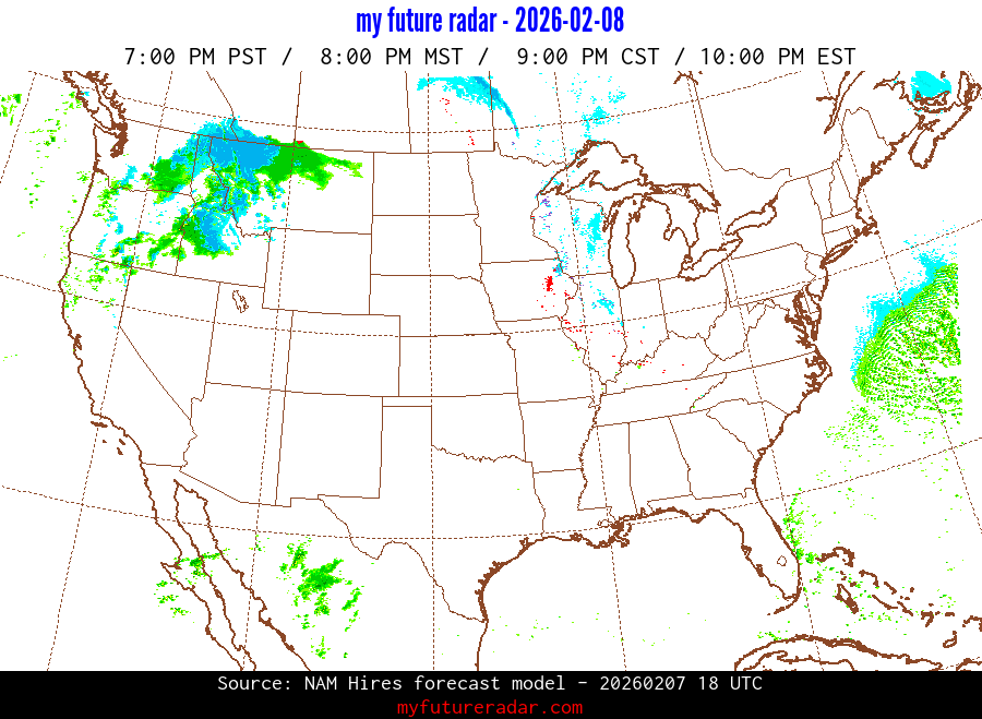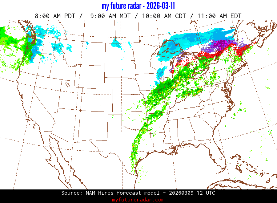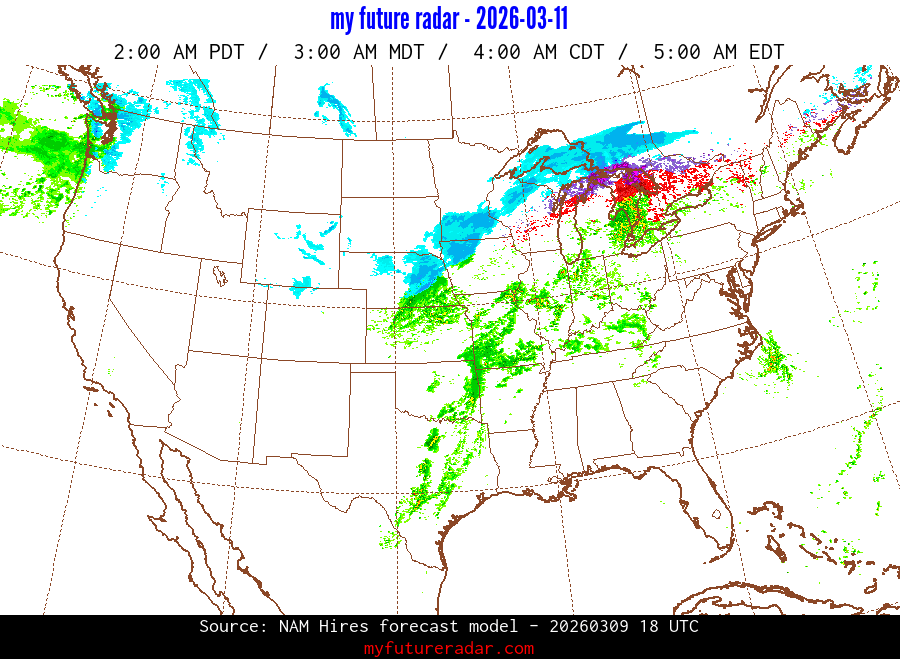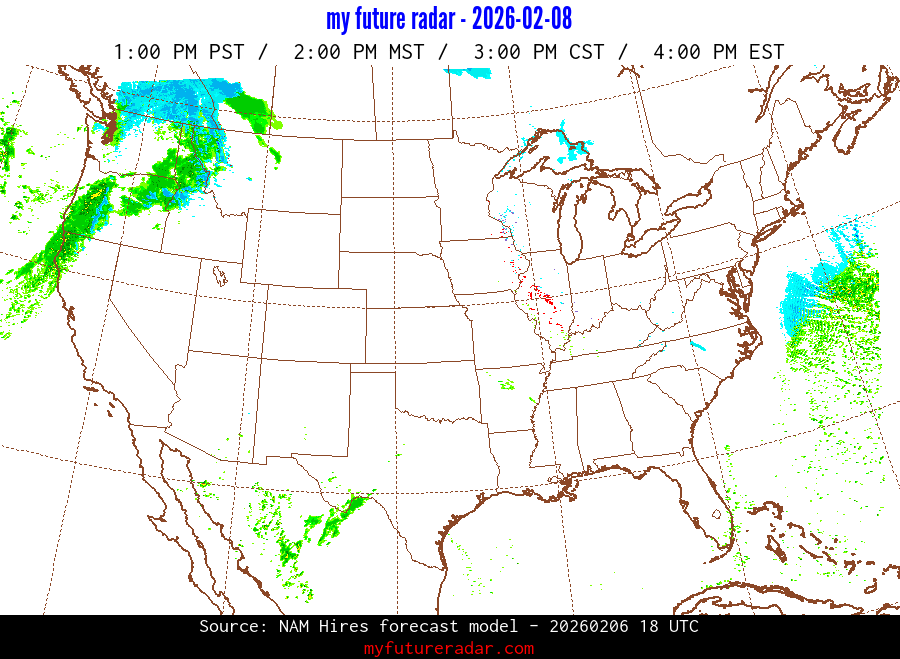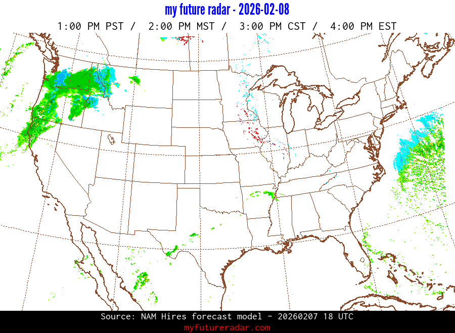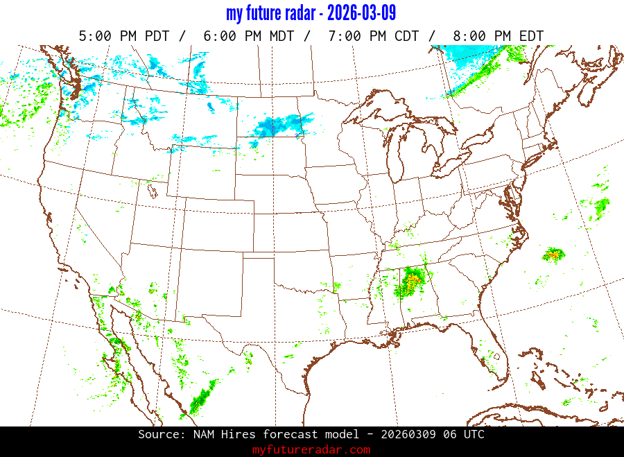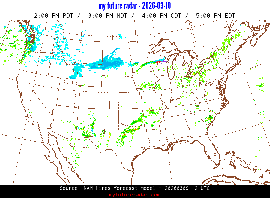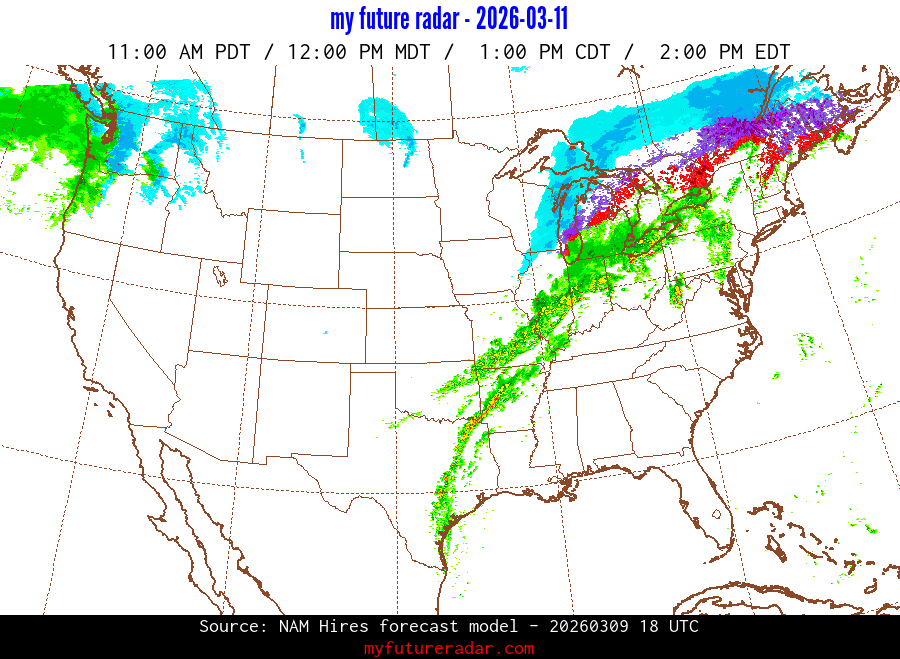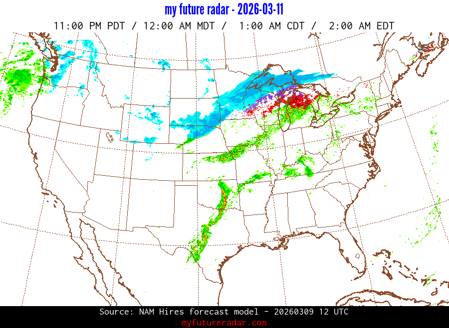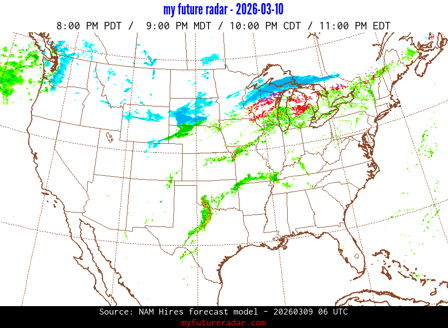 My Future Radar uses data from the Rapid Refresh and the NAM forecast models to provide simulated future radar imagery.