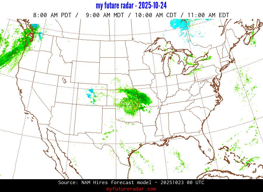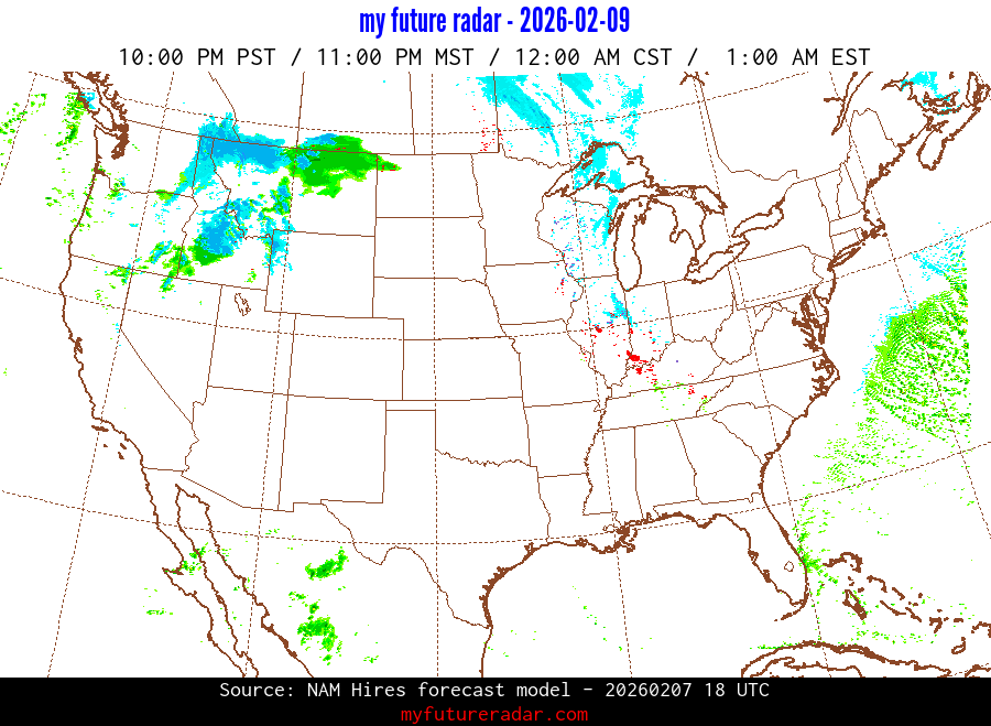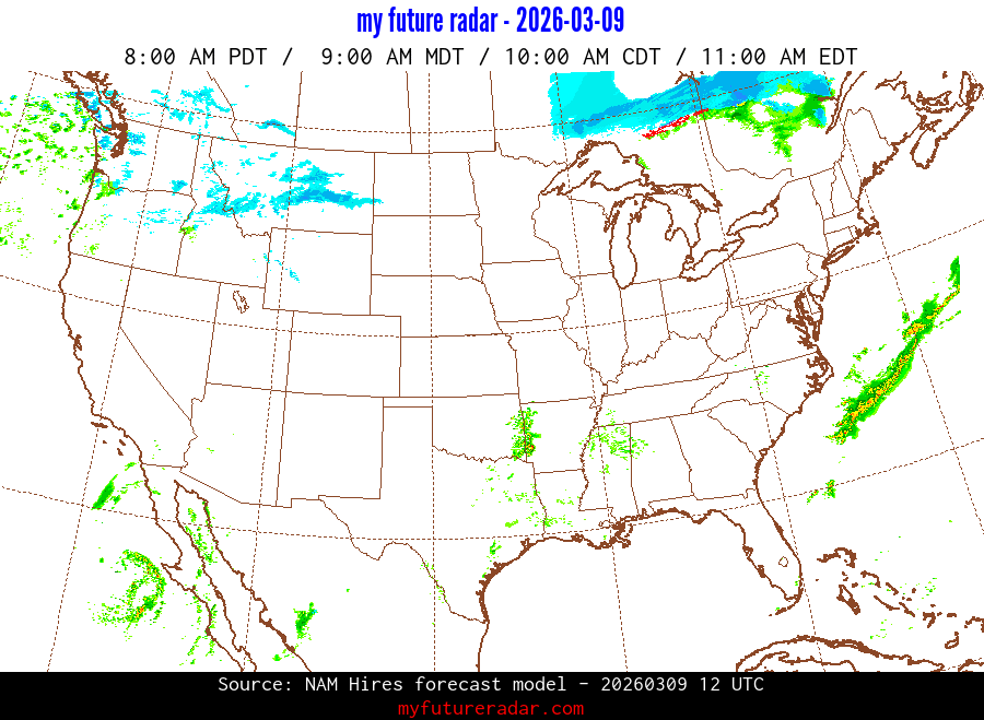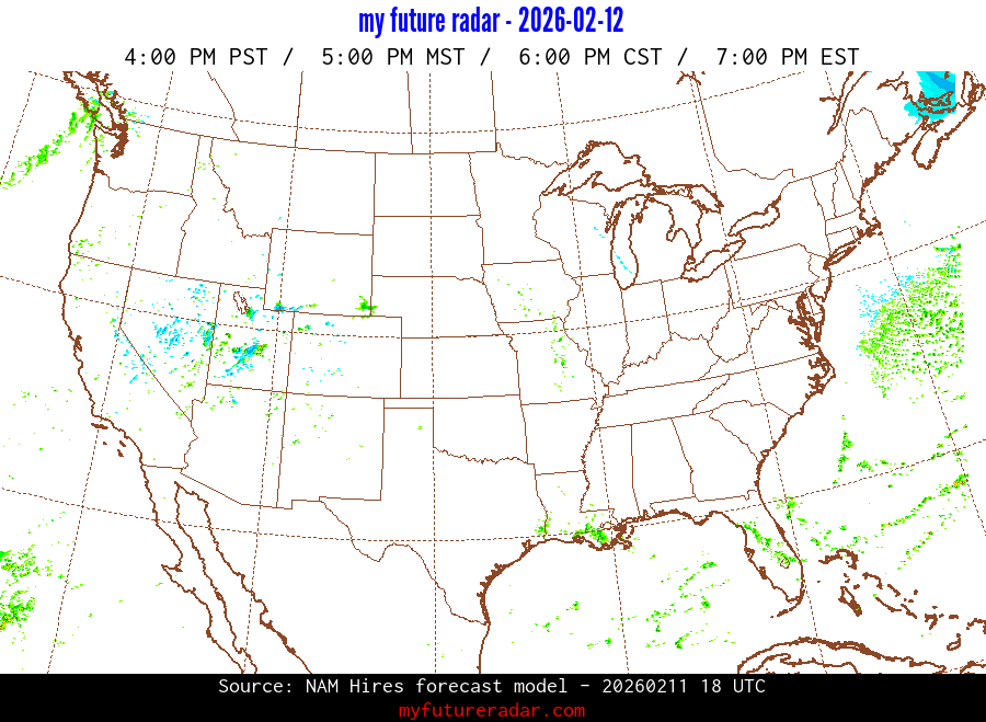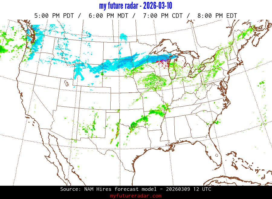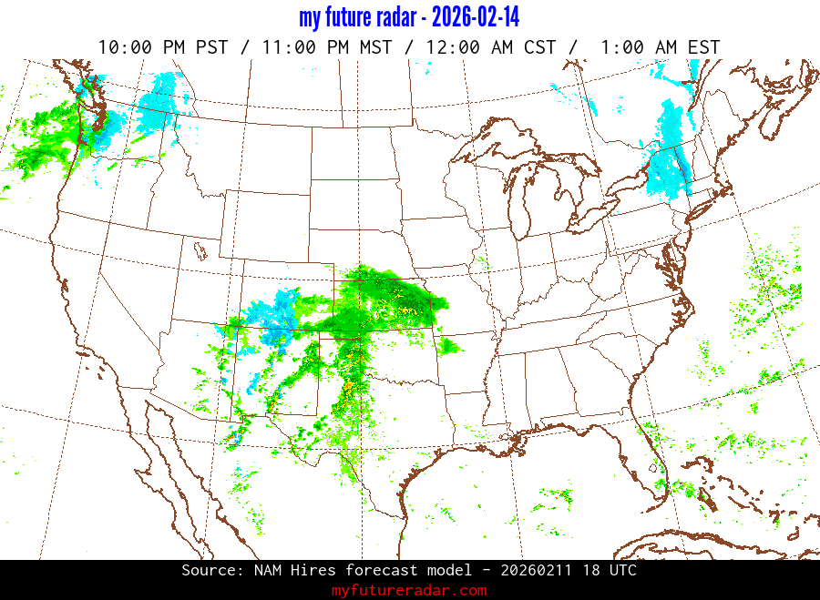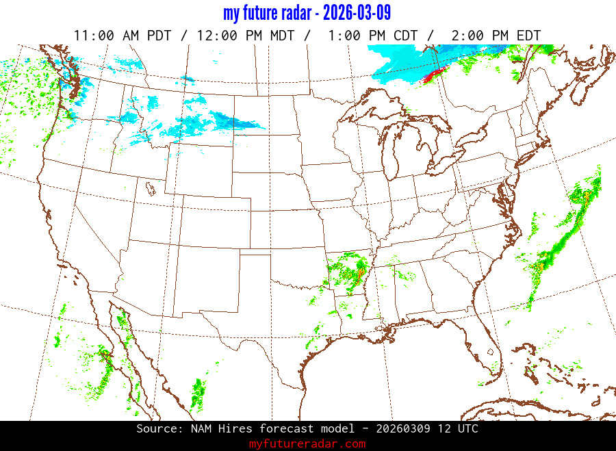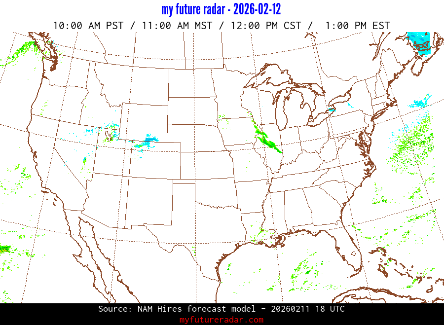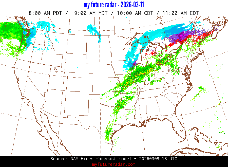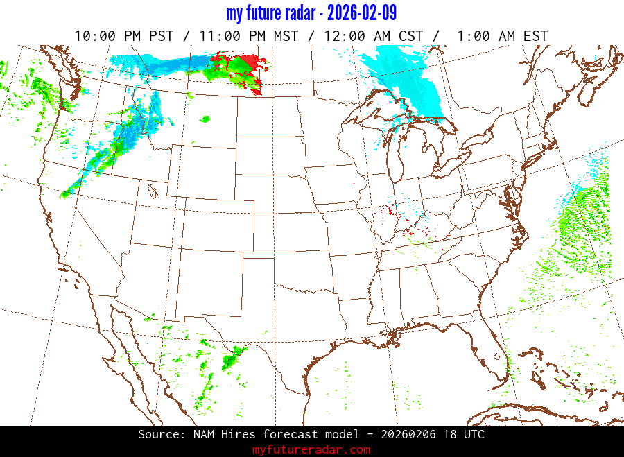 My Future Radar uses data from the Rapid Refresh and the NAM forecast models to provide simulated future radar imagery.