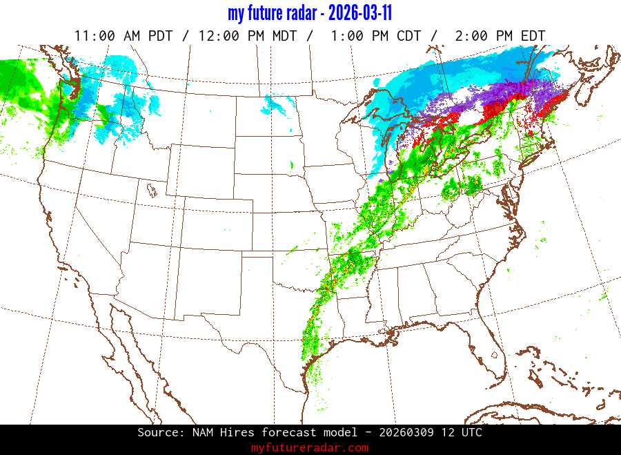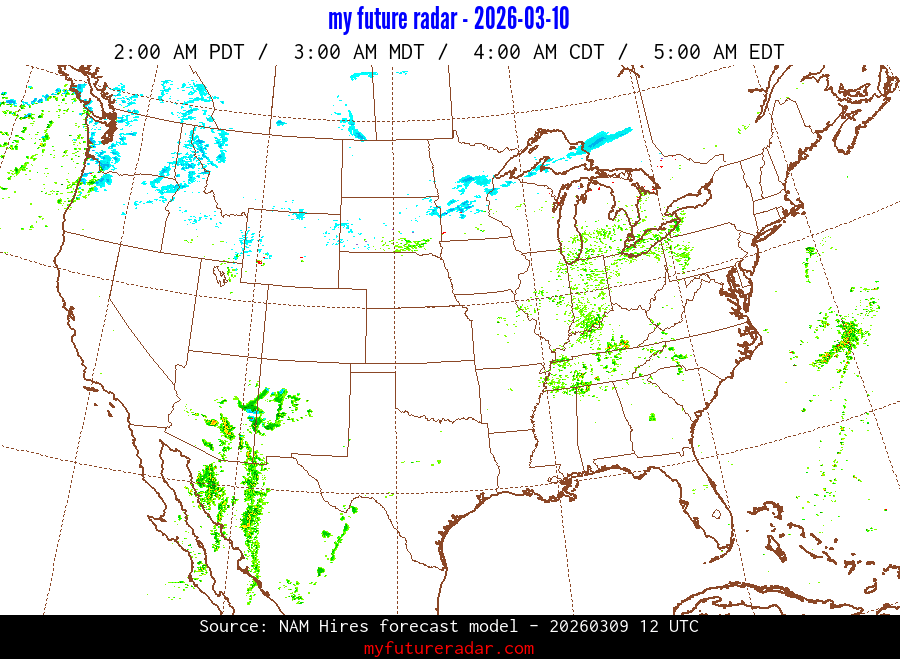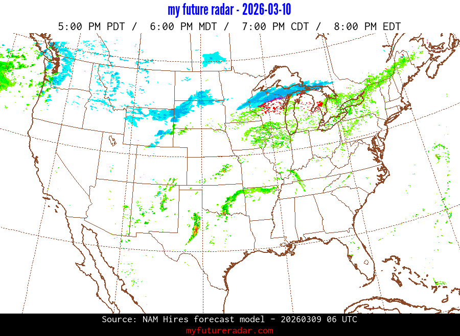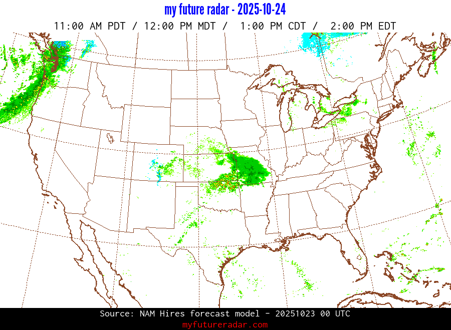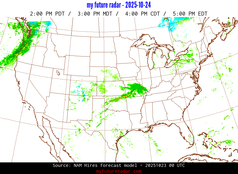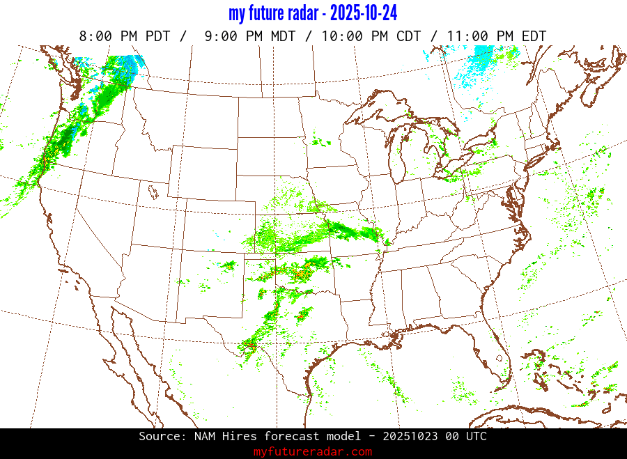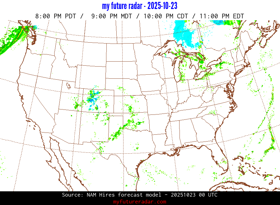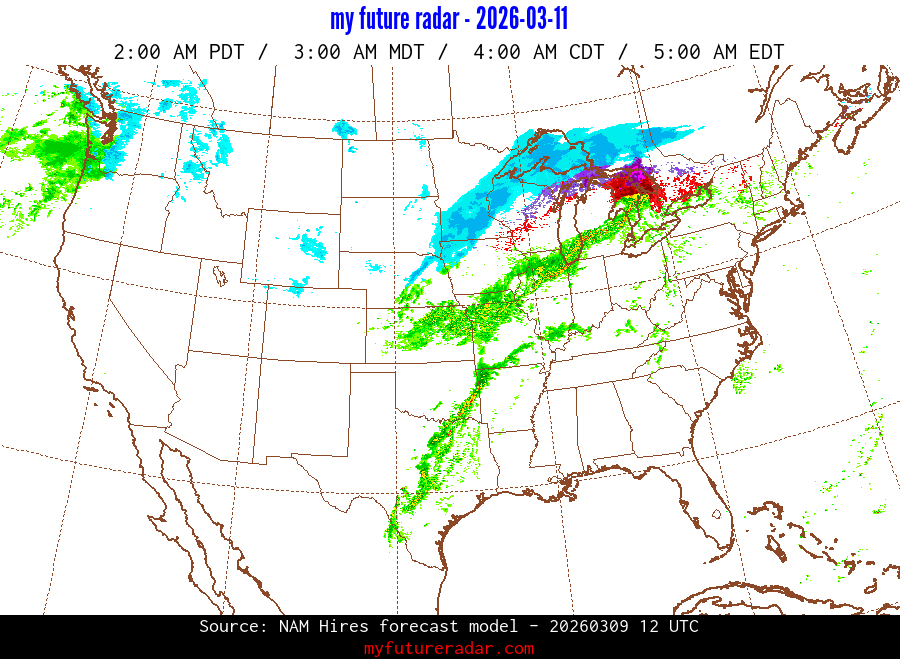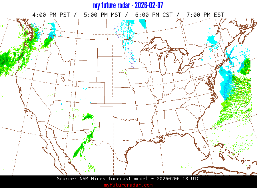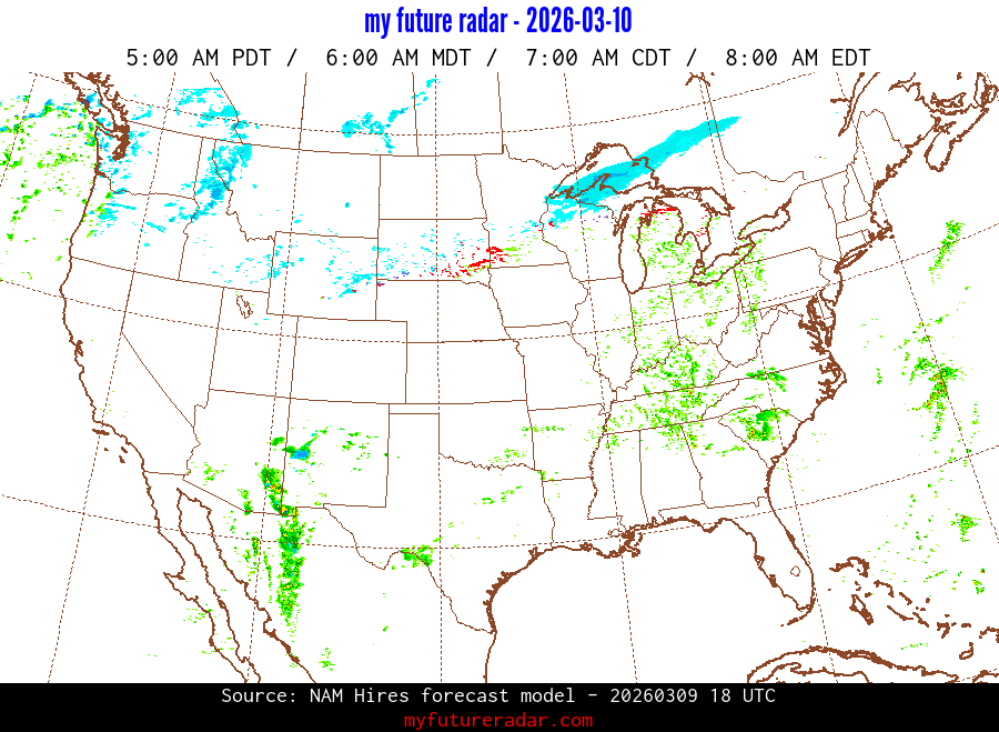 My Future Radar uses data from the Rapid Refresh and the NAM forecast models to provide simulated future radar imagery.
