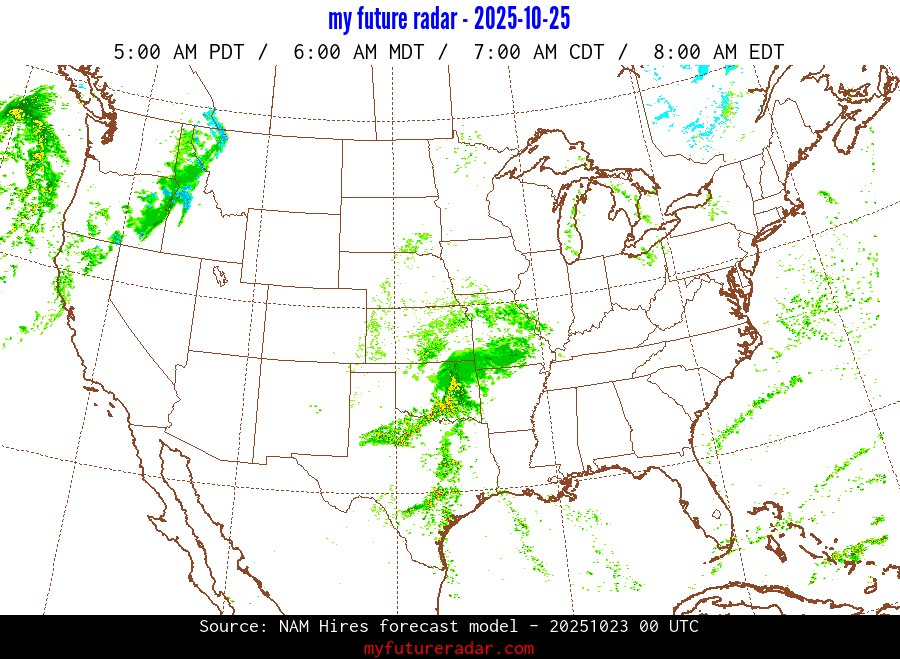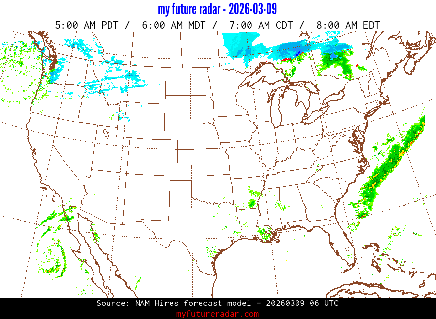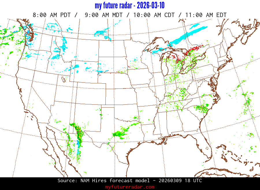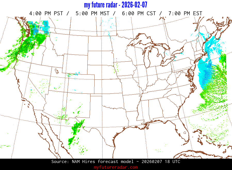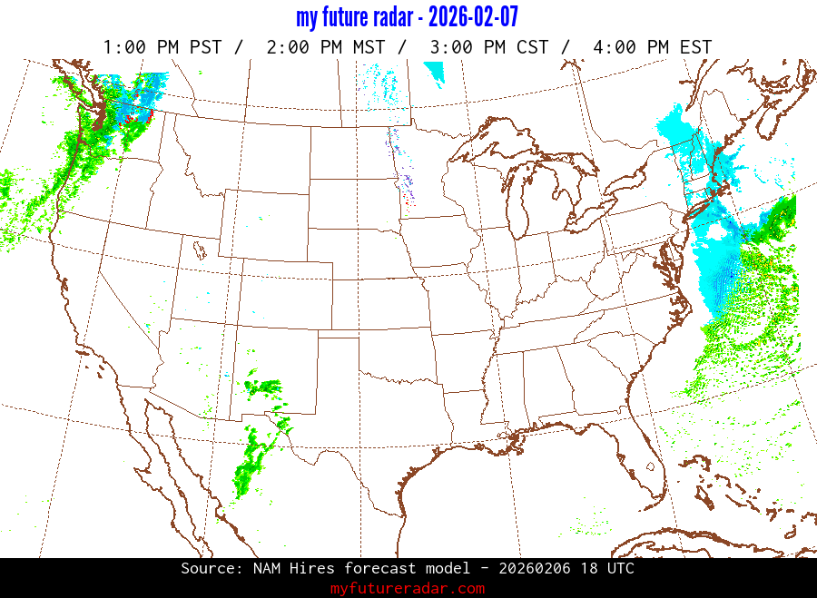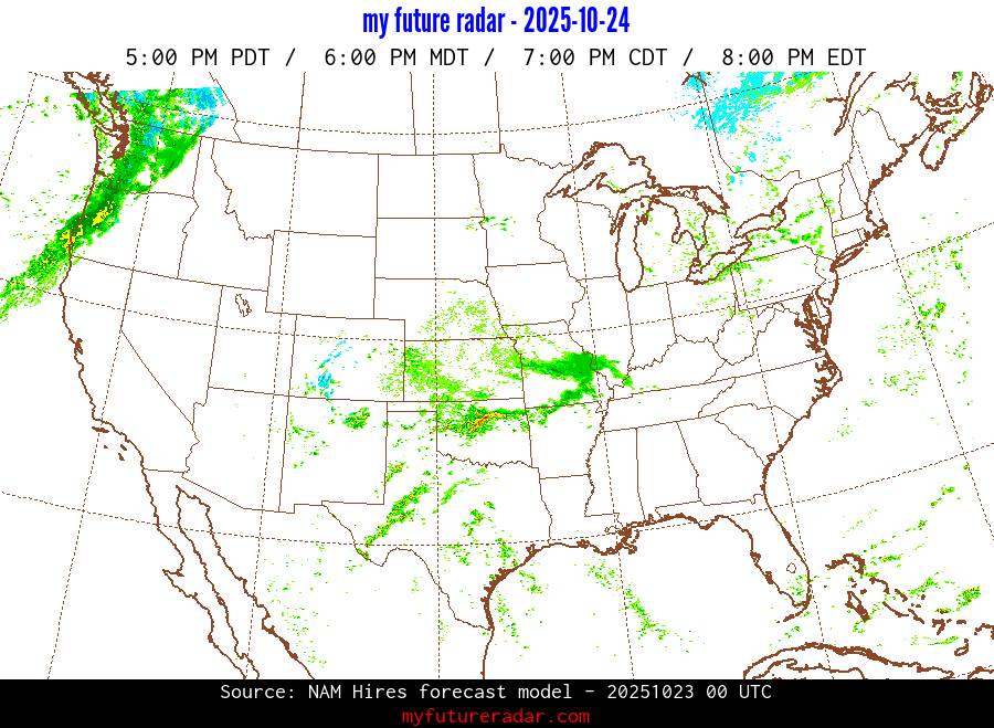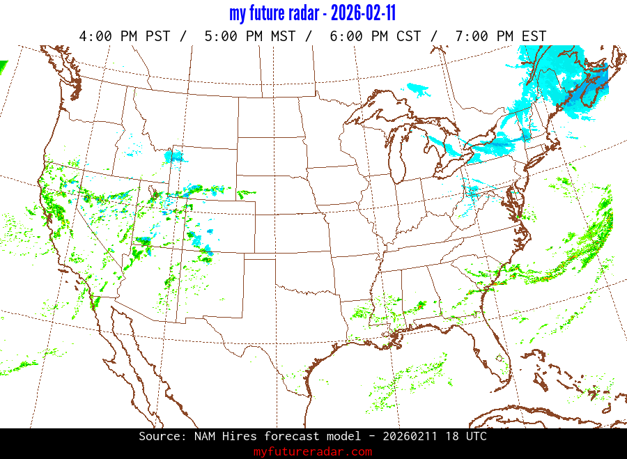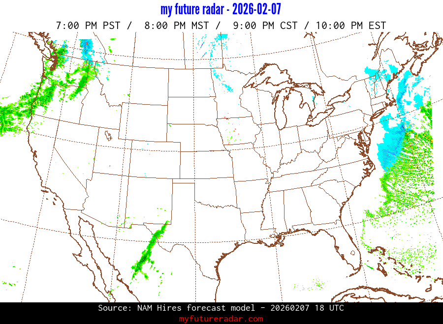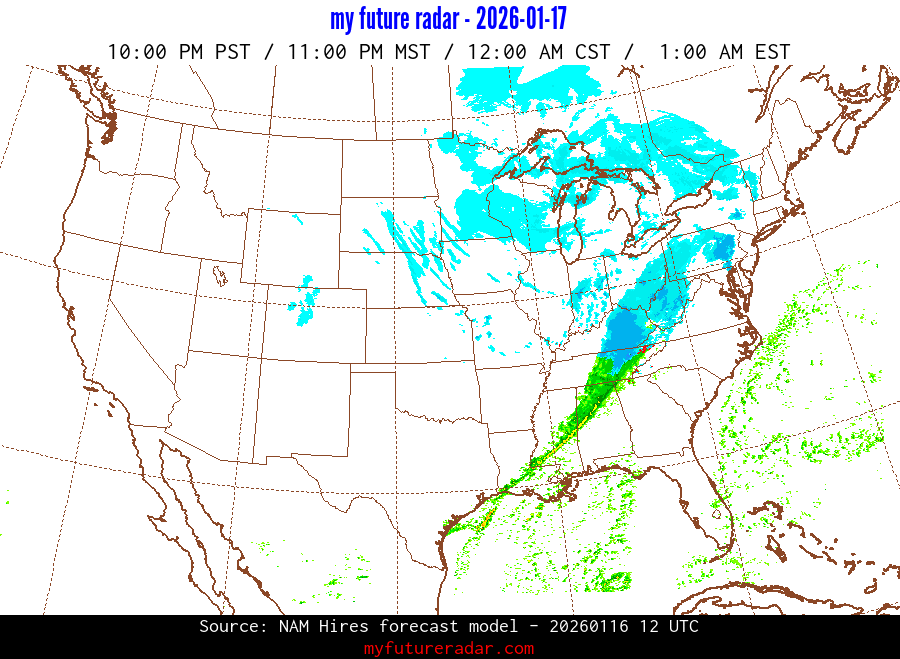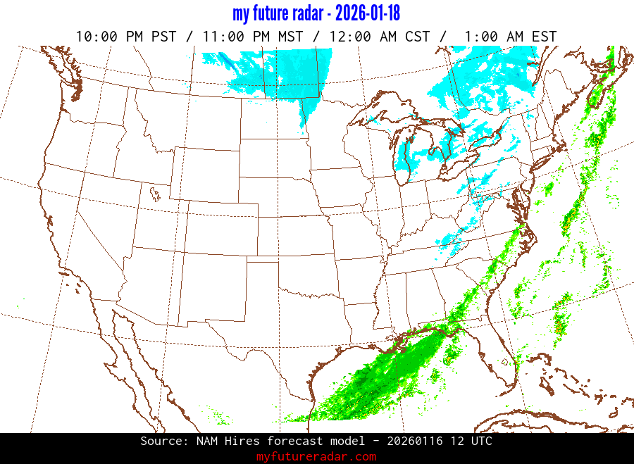 My Future Radar uses data from the Rapid Refresh and the NAM forecast models to provide simulated future radar imagery.