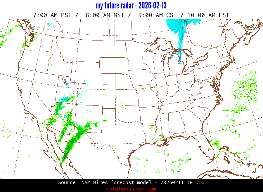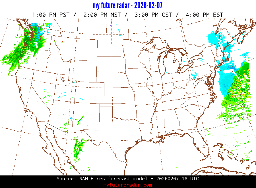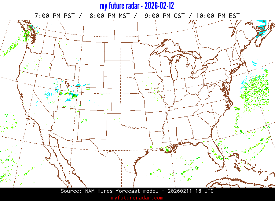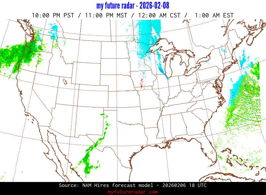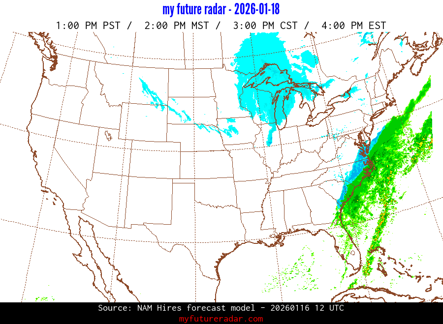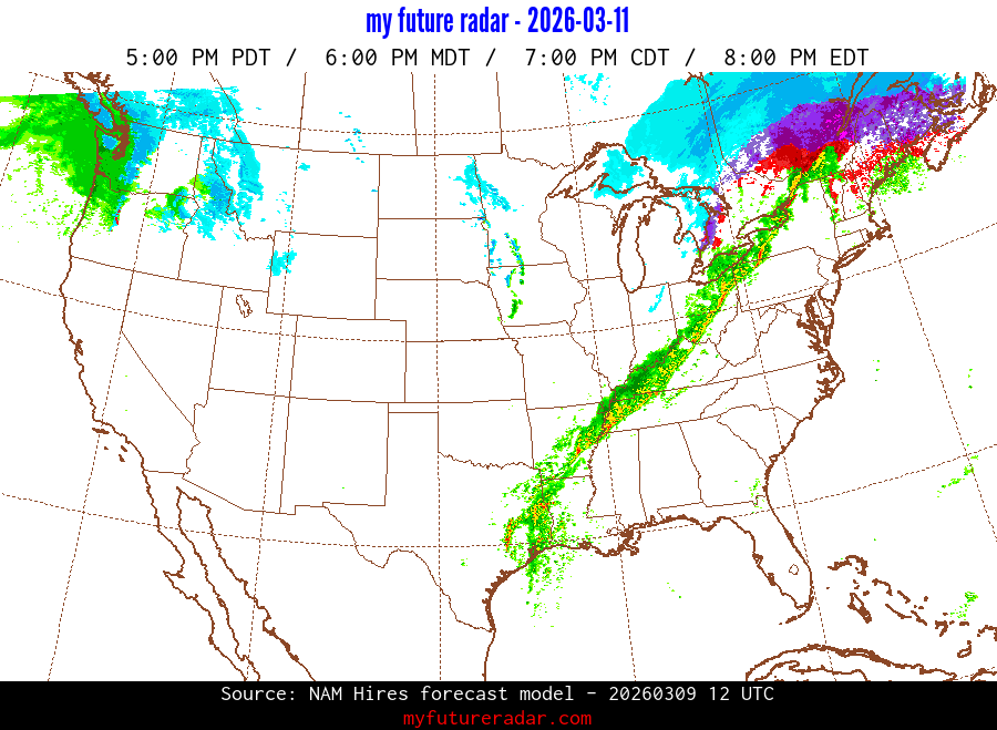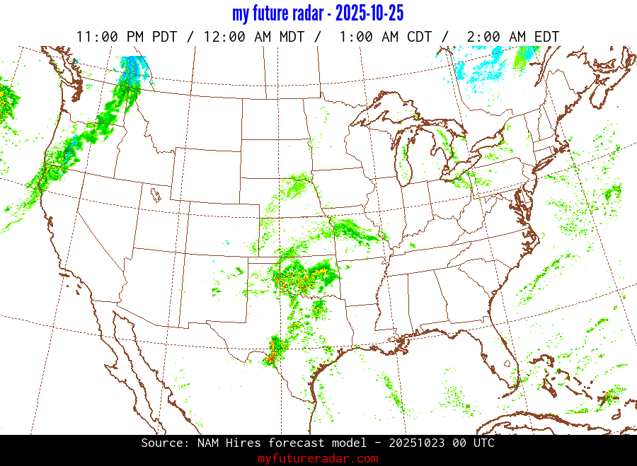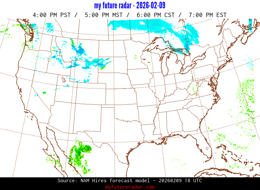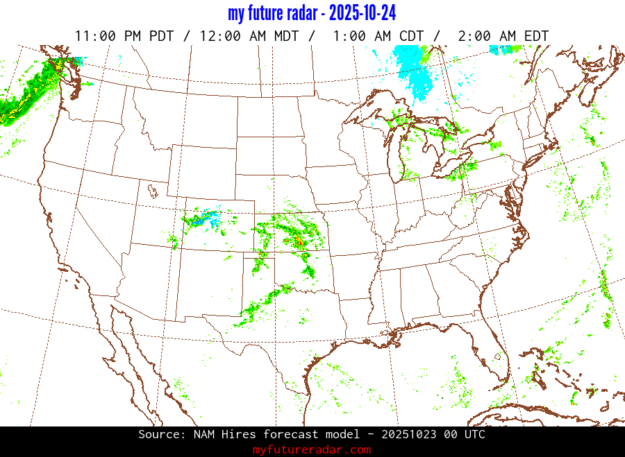 My Future Radar uses data from the Rapid Refresh and the NAM forecast models to provide simulated future radar imagery.