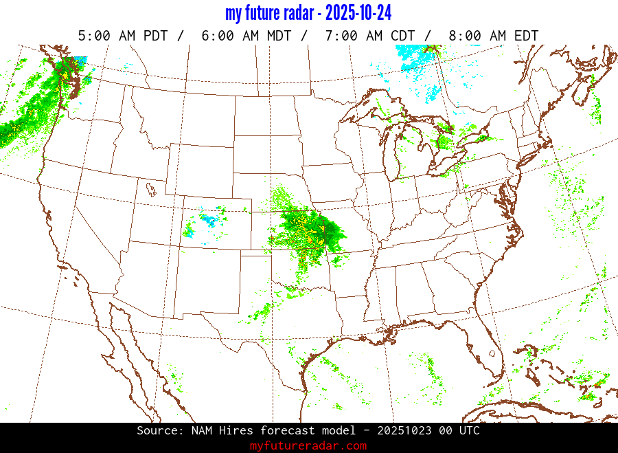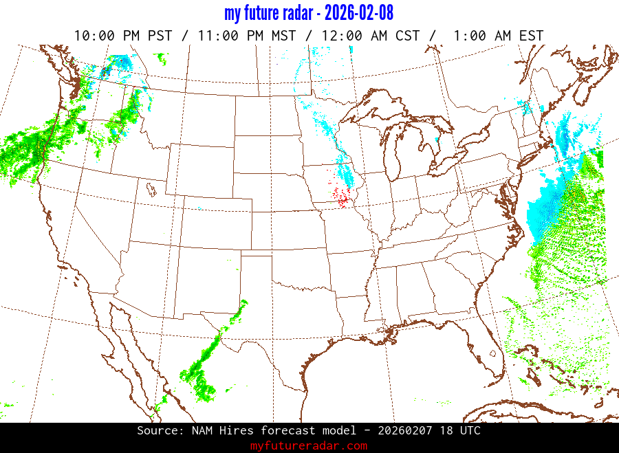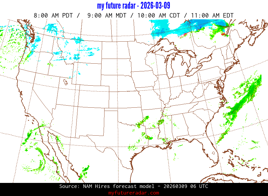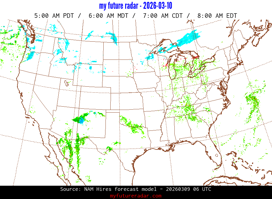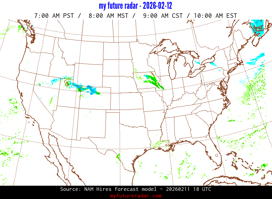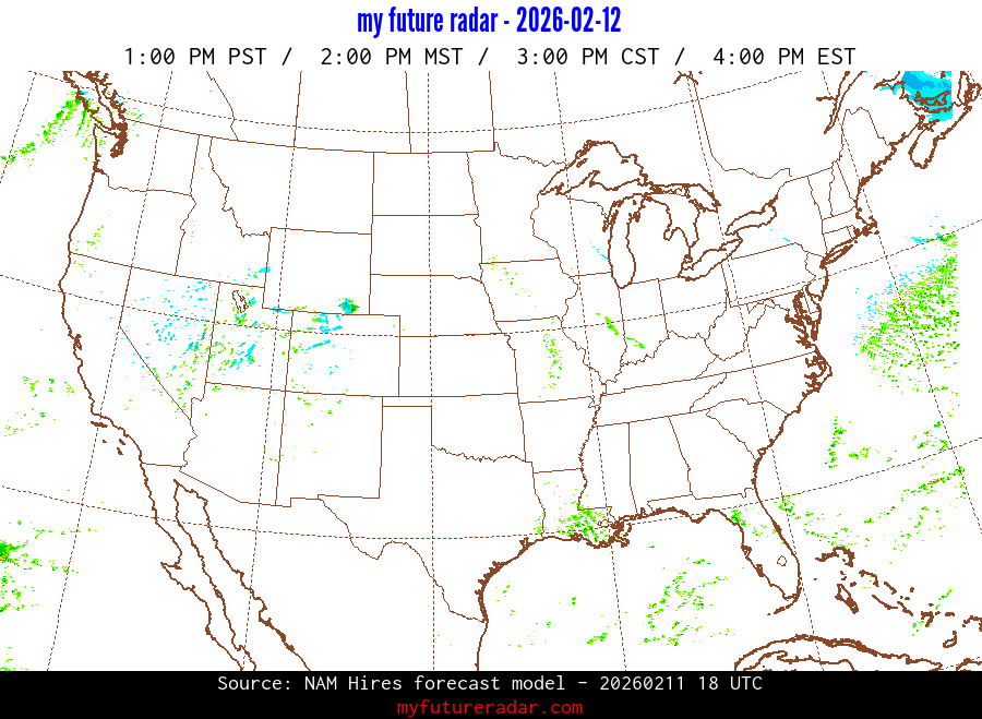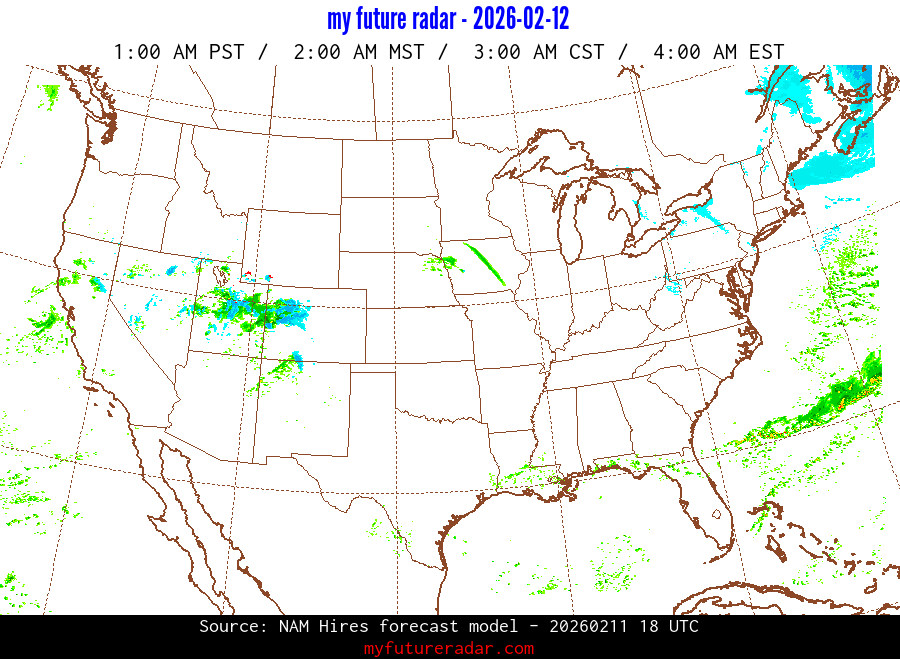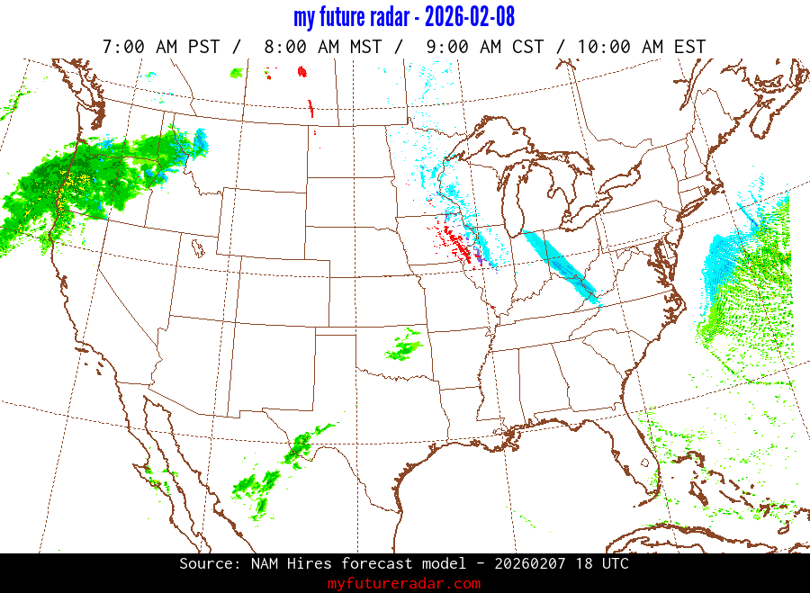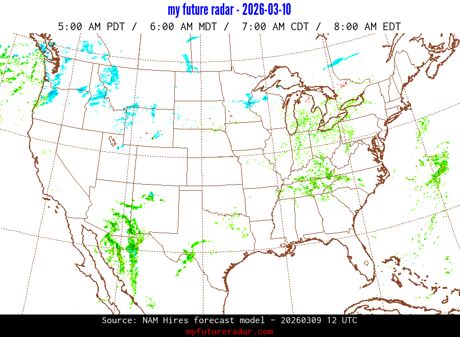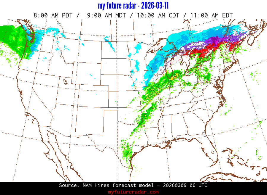 My Future Radar uses data from the Rapid Refresh and the NAM forecast models to provide simulated future radar imagery.