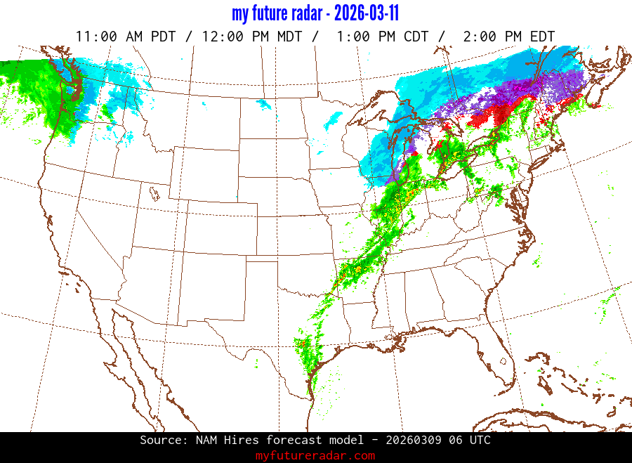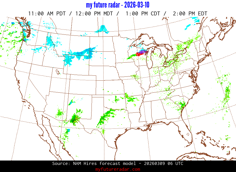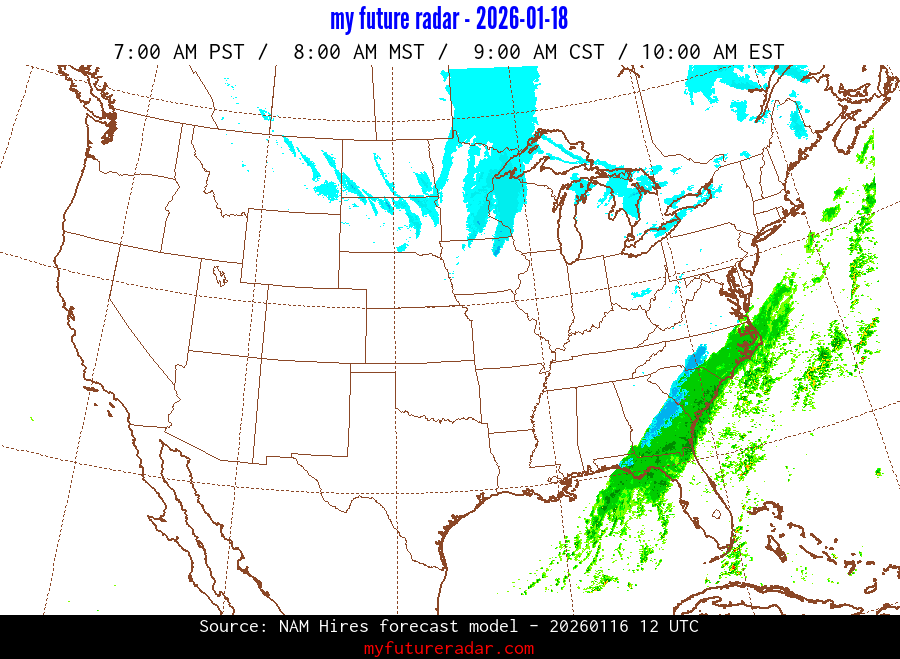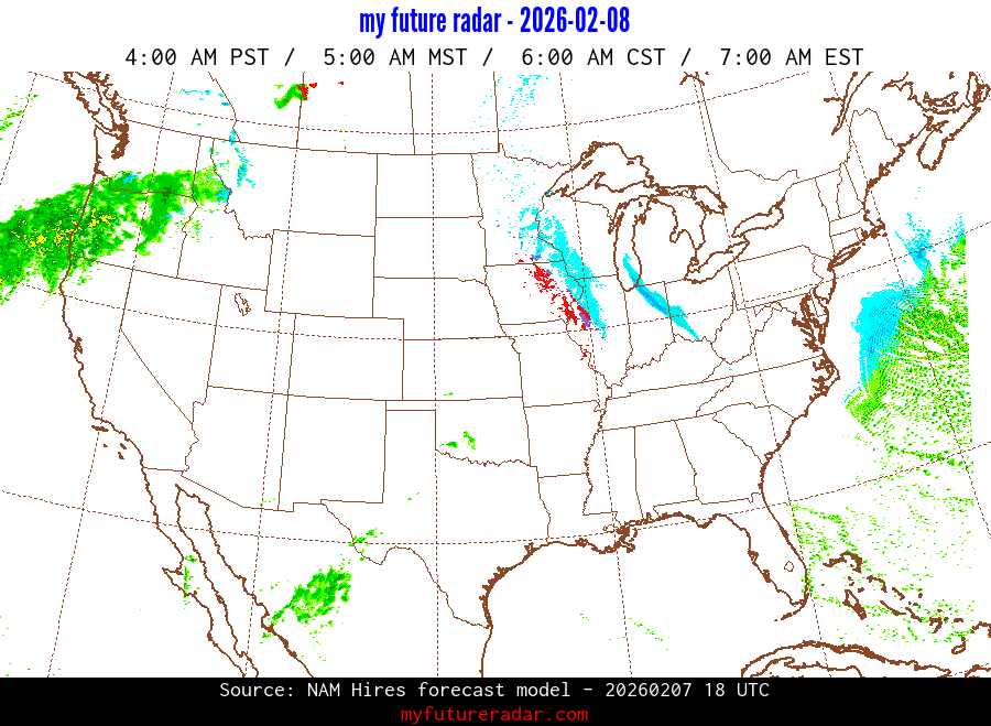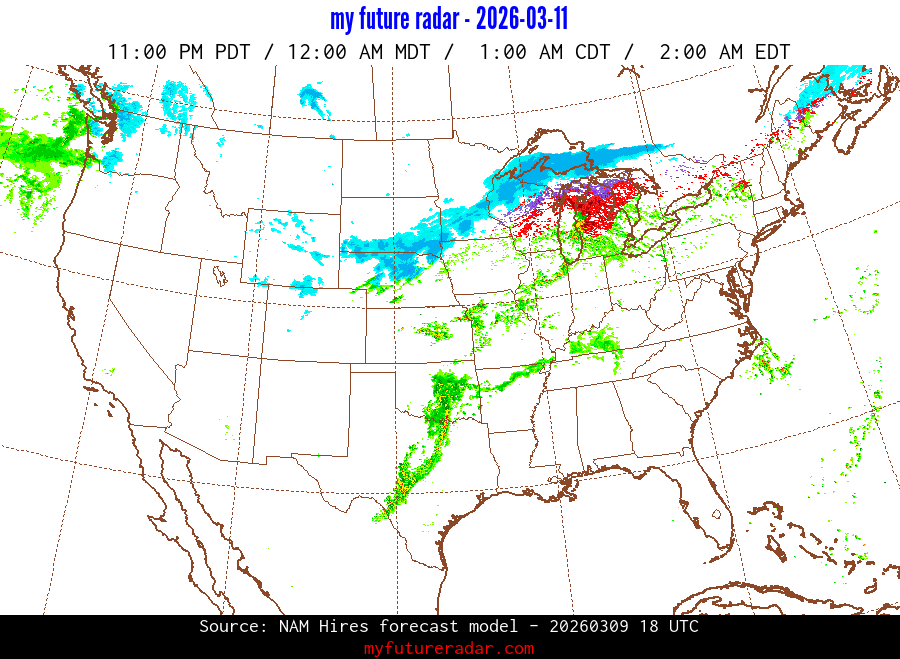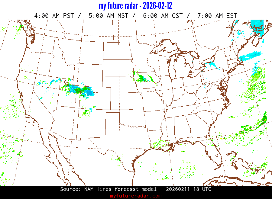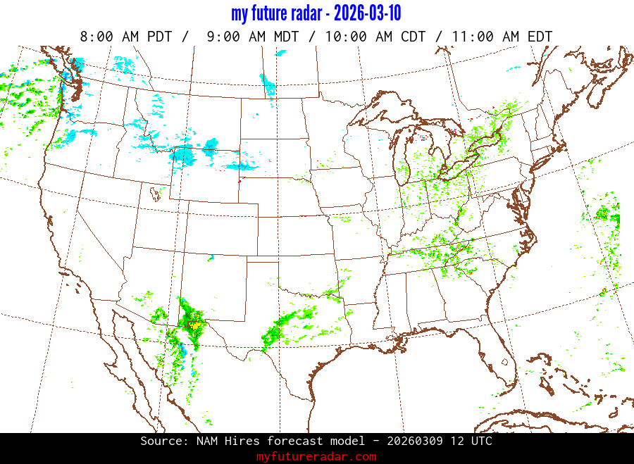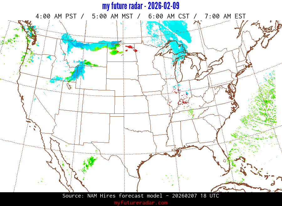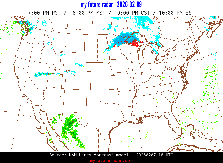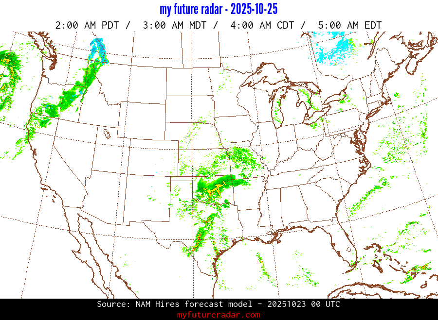 My Future Radar uses data from the Rapid Refresh and the NAM forecast models to provide simulated future radar imagery.