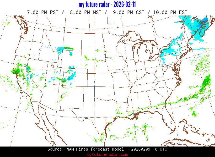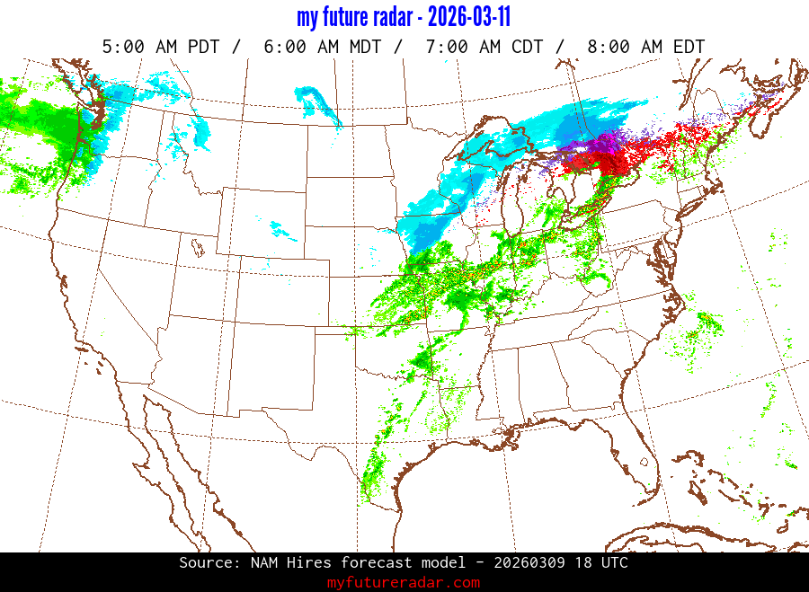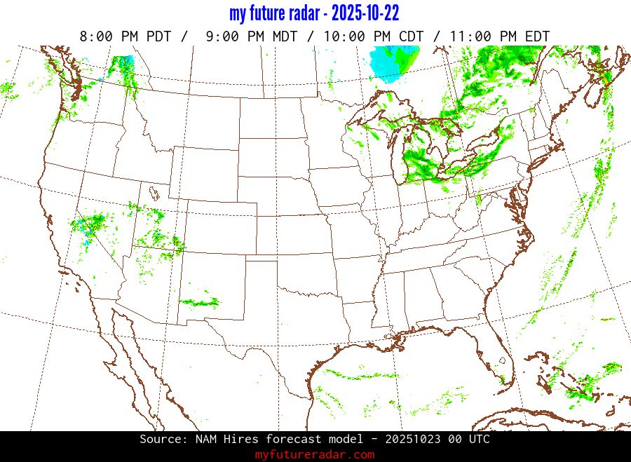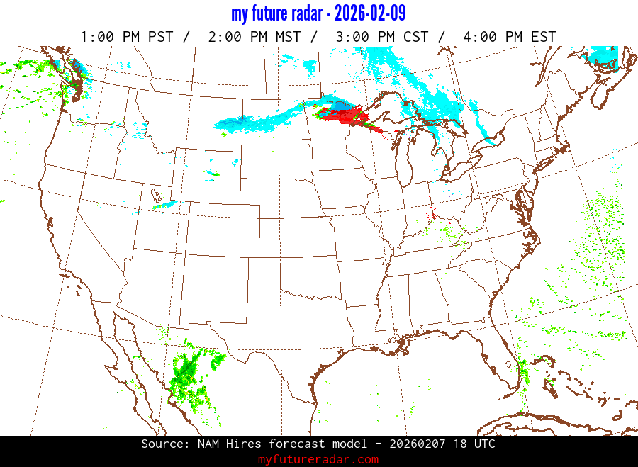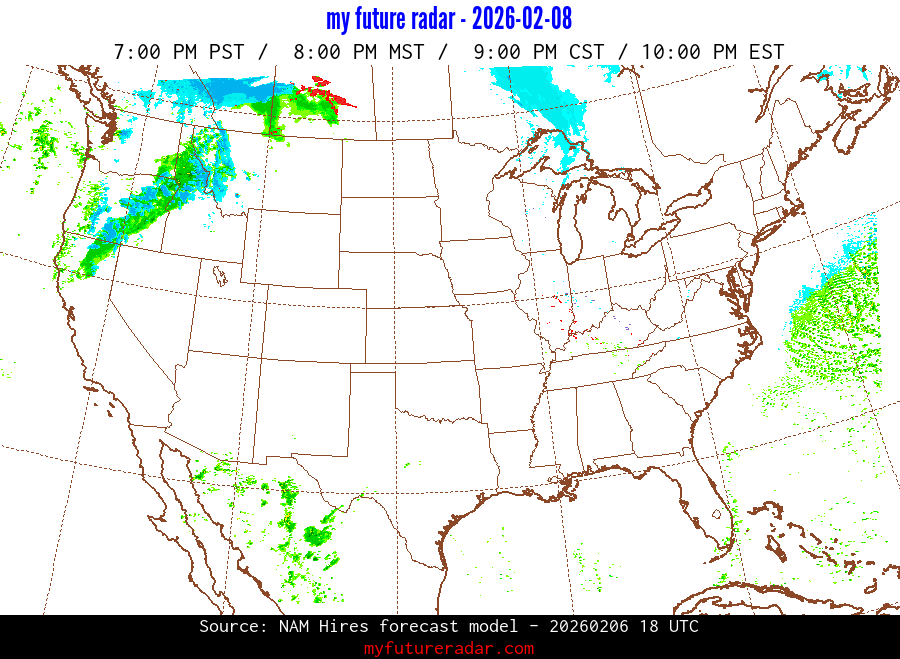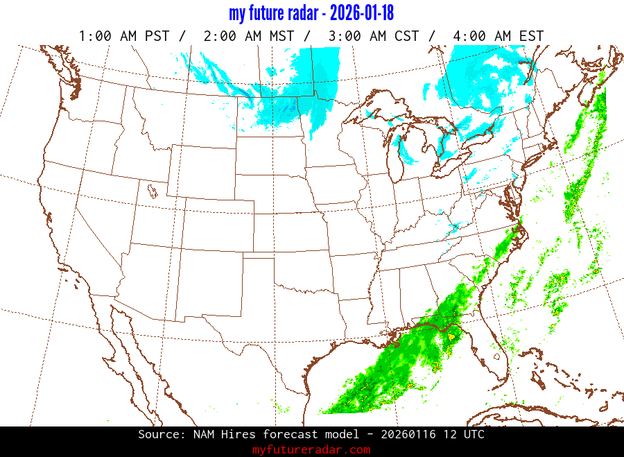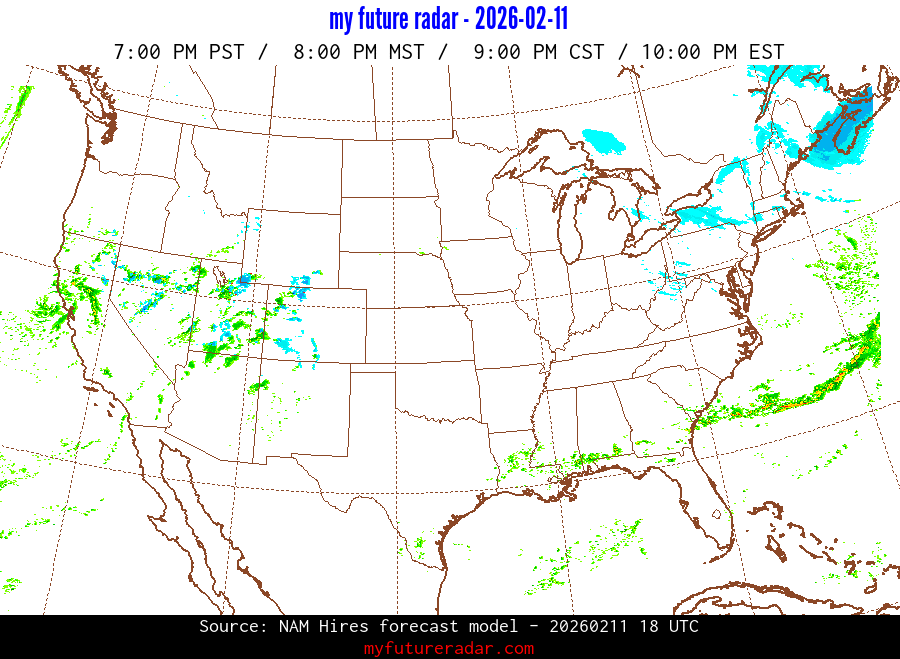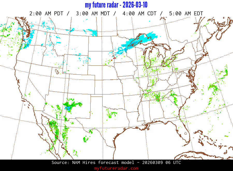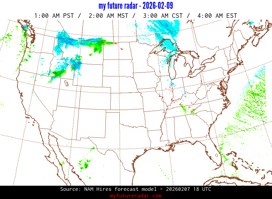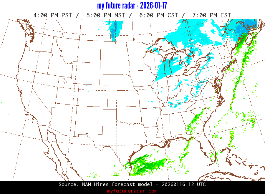 My Future Radar uses data from the Rapid Refresh and the NAM forecast models to provide simulated future radar imagery.