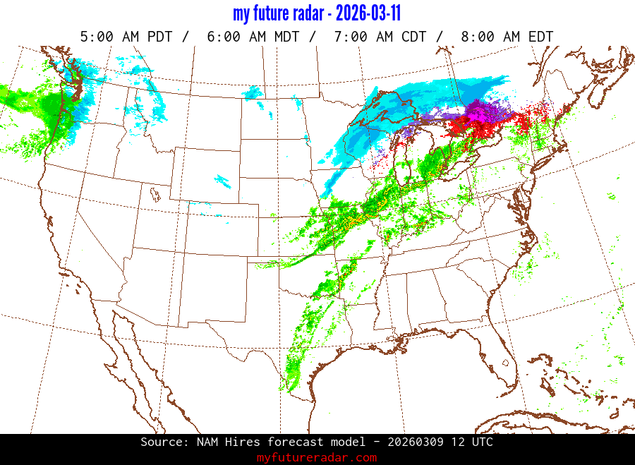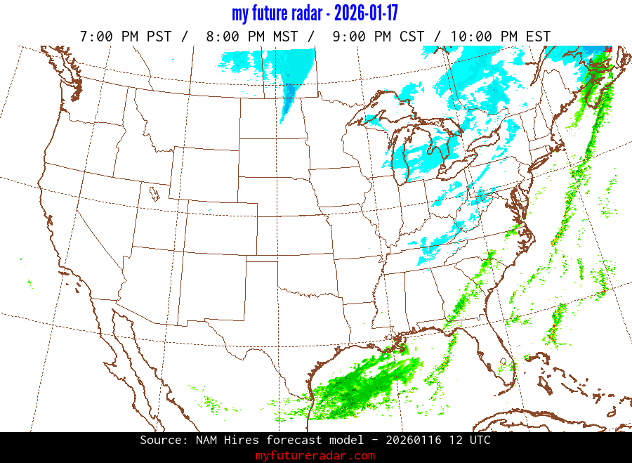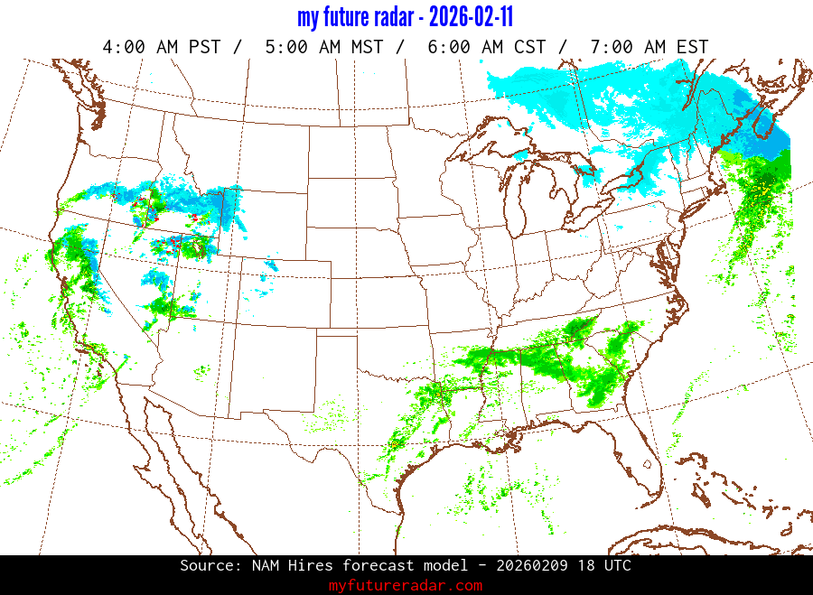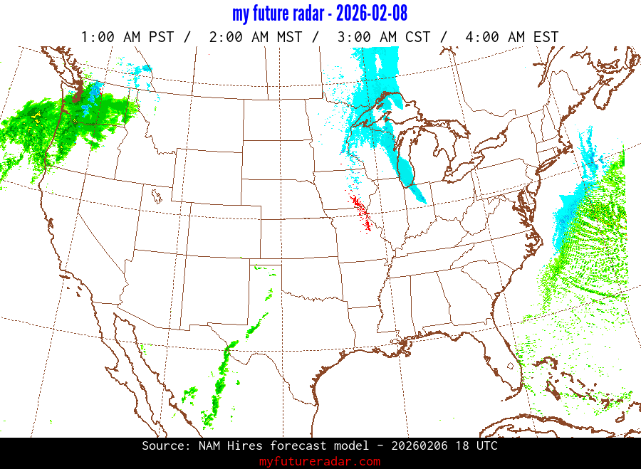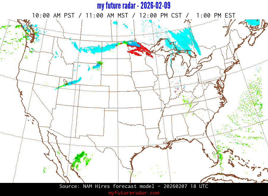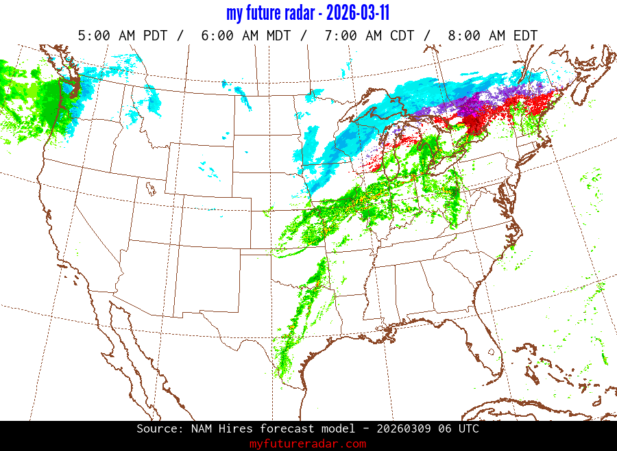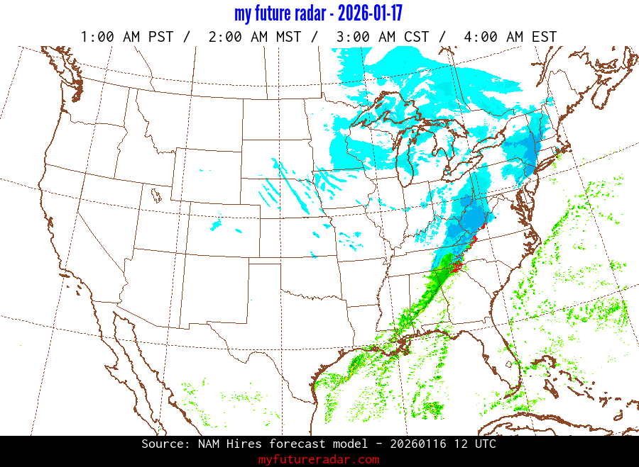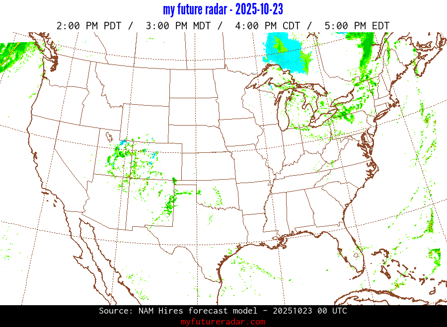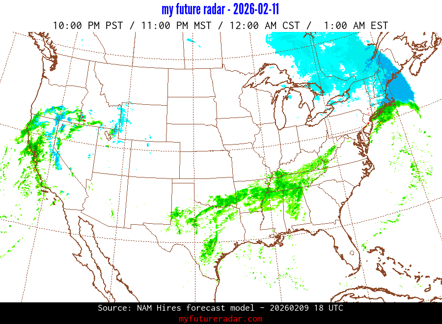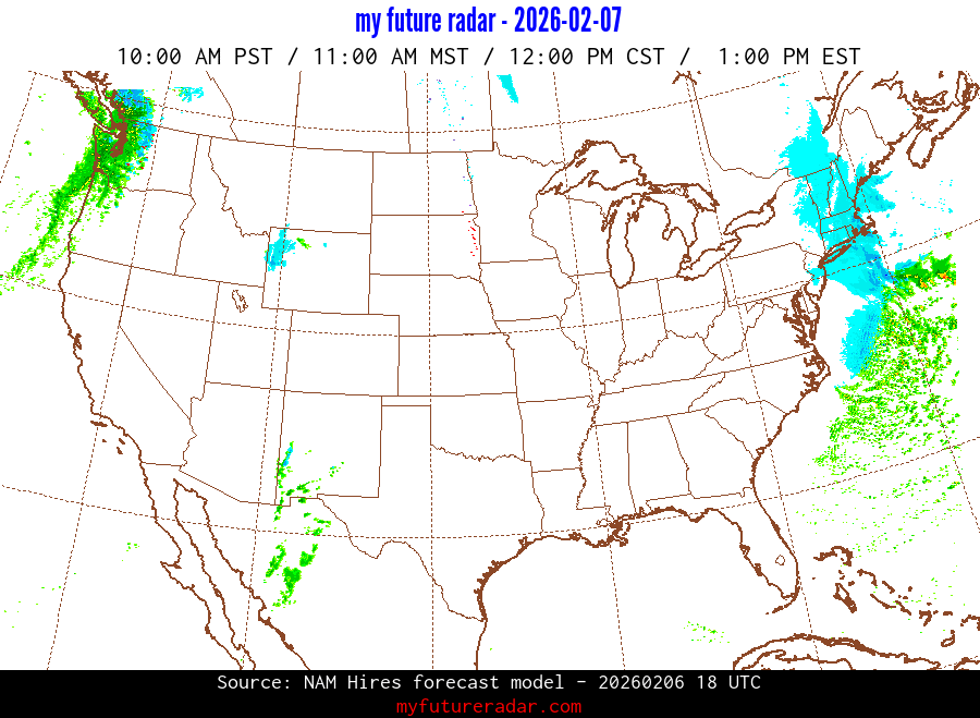 My Future Radar uses data from the Rapid Refresh and the NAM forecast models to provide simulated future radar imagery.