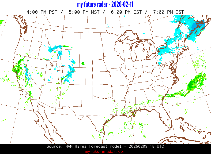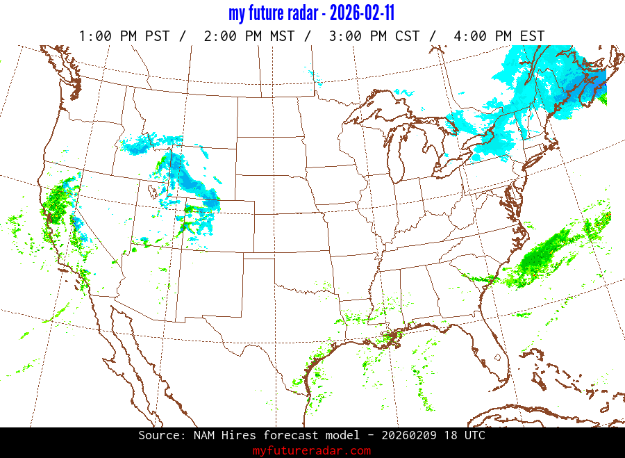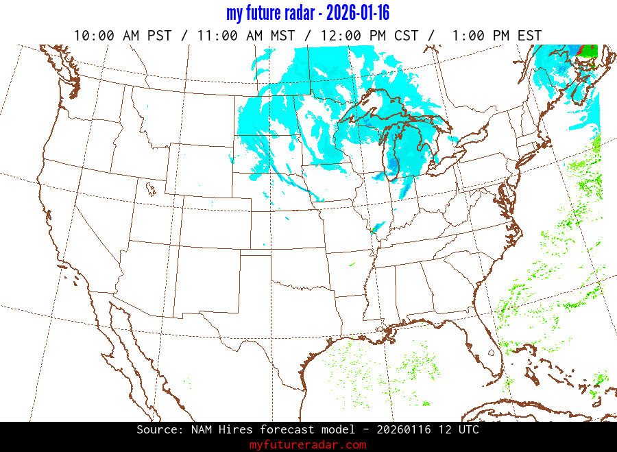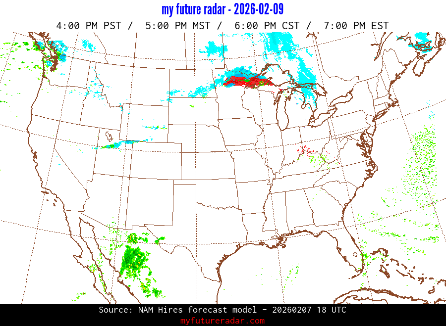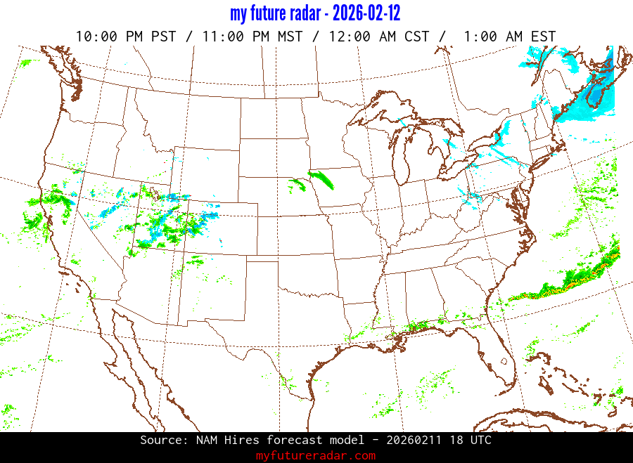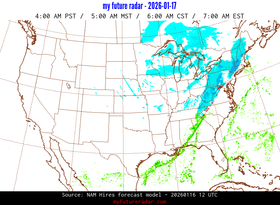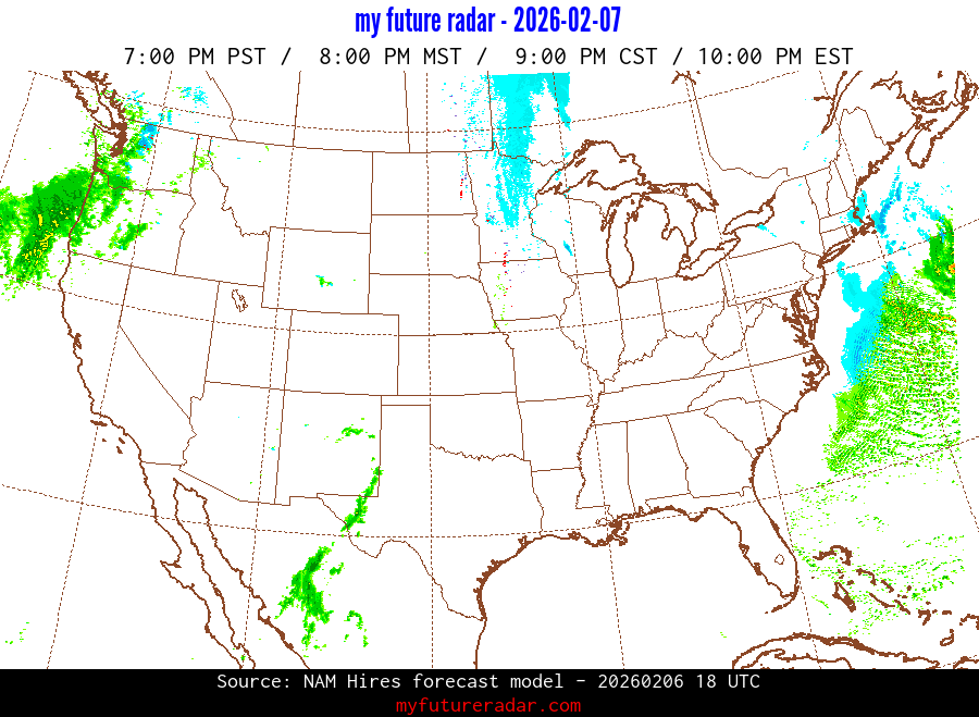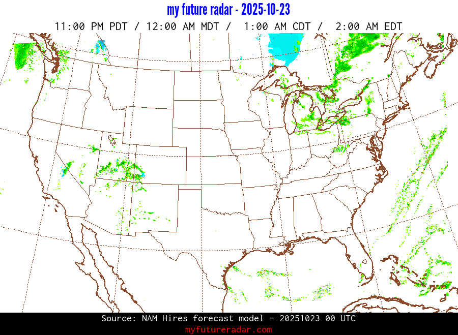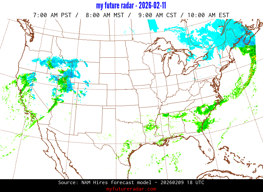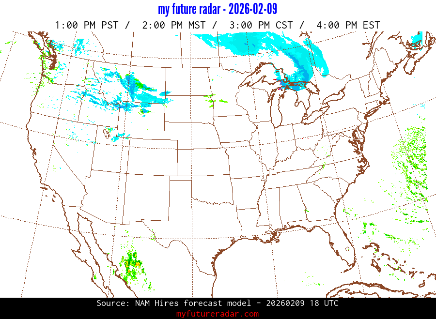 My Future Radar uses data from the Rapid Refresh and the NAM forecast models to provide simulated future radar imagery.
