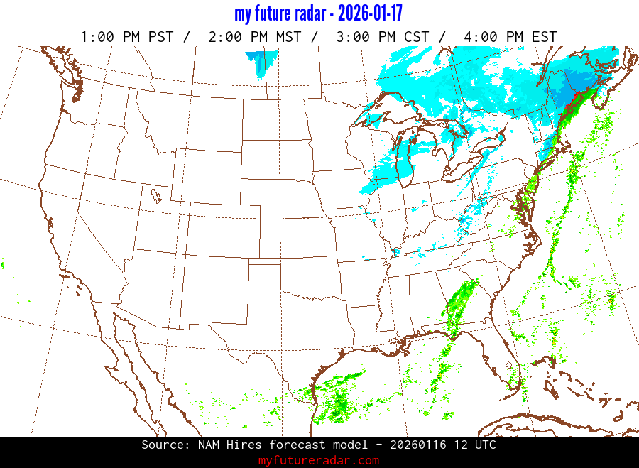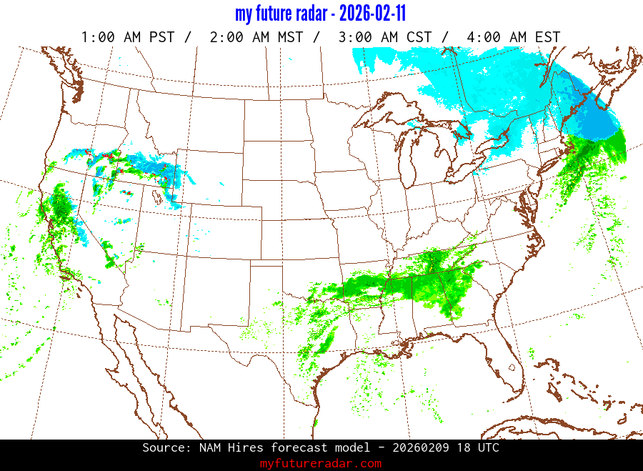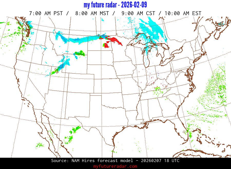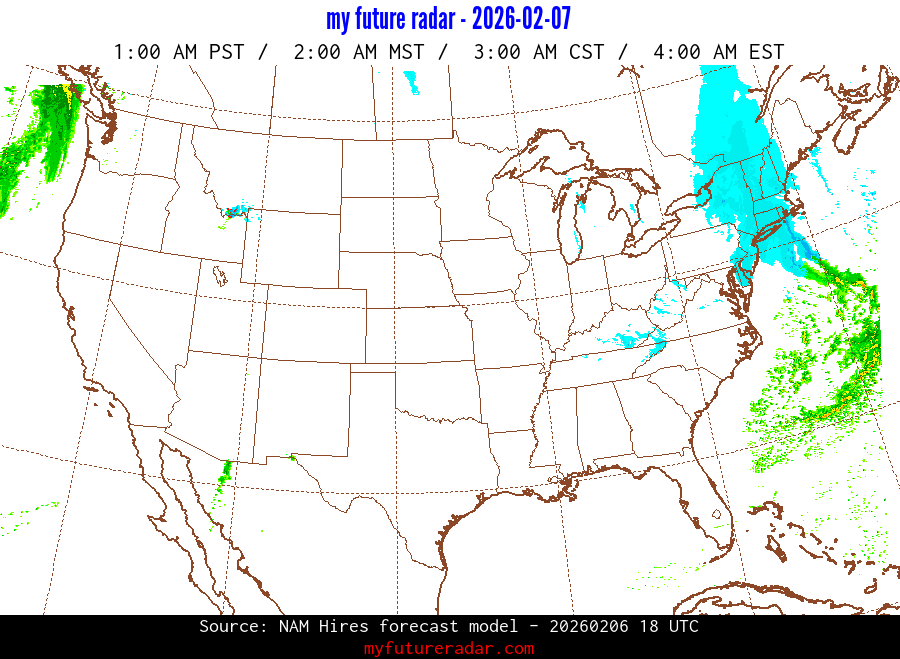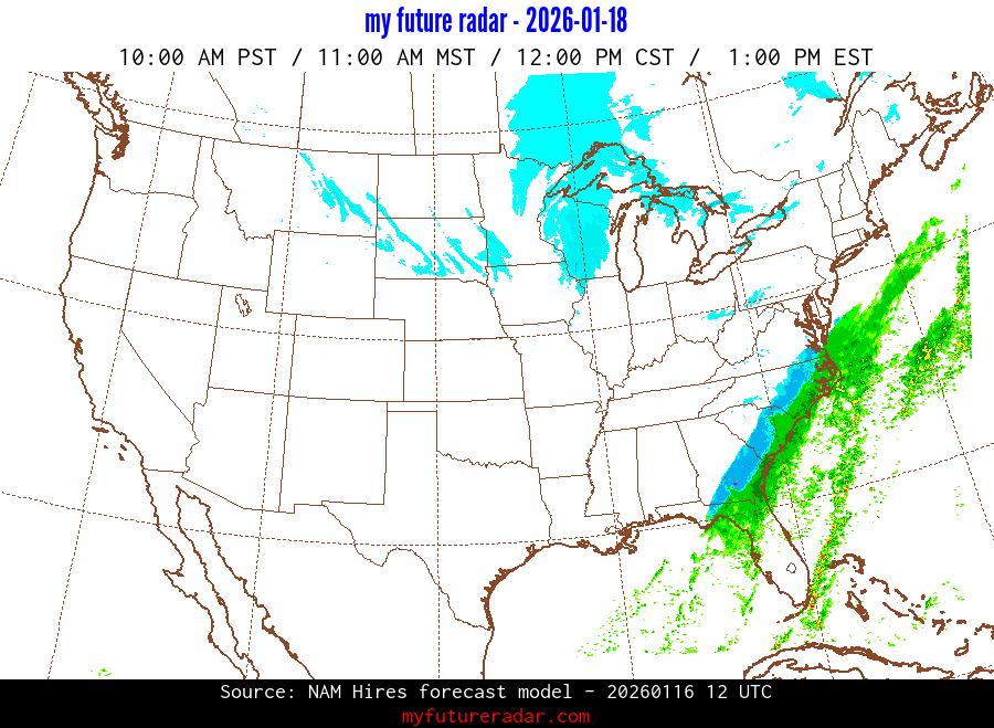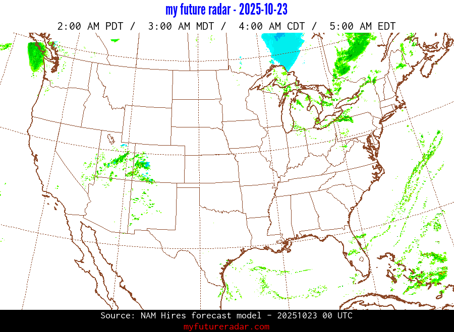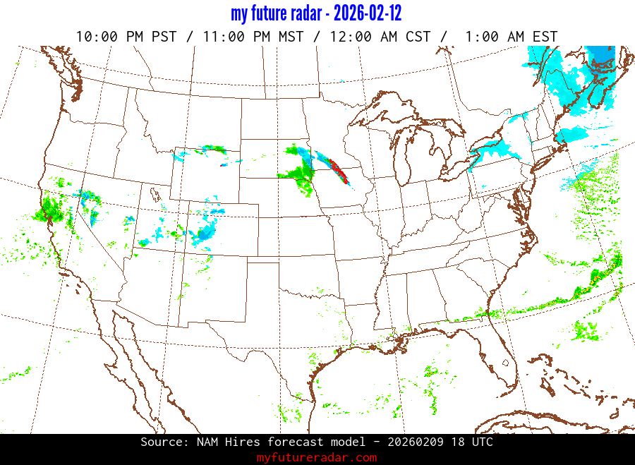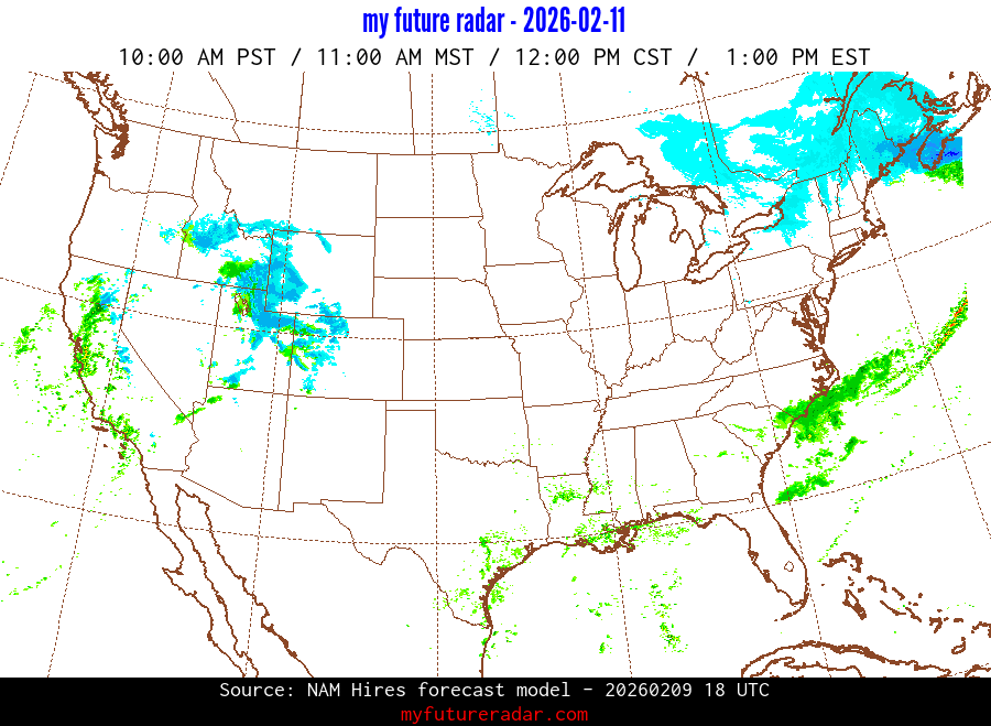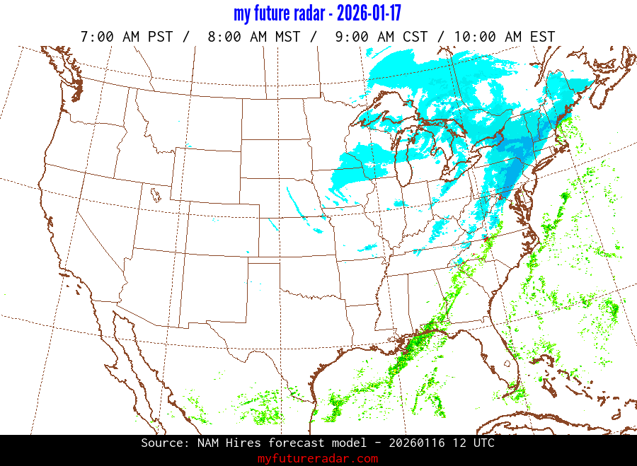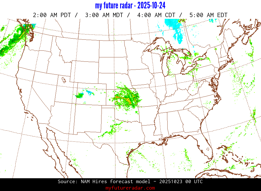 My Future Radar uses data from the Rapid Refresh and the NAM forecast models to provide simulated future radar imagery.