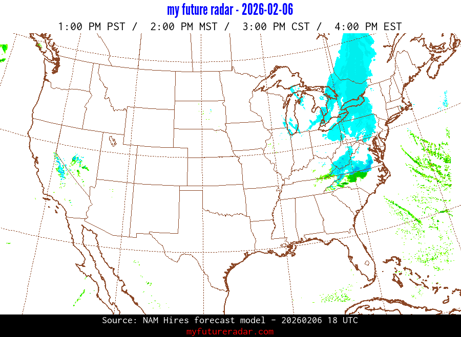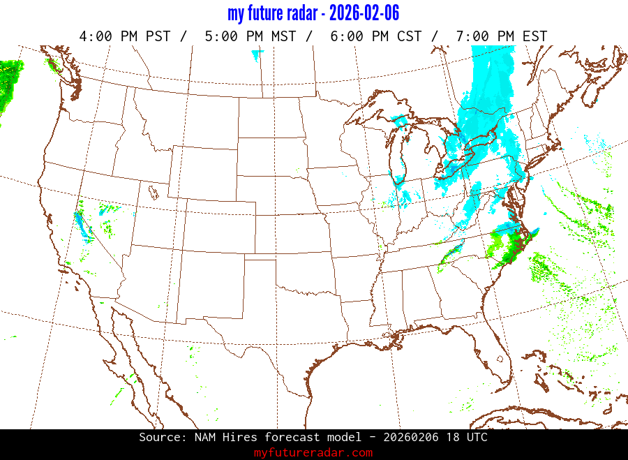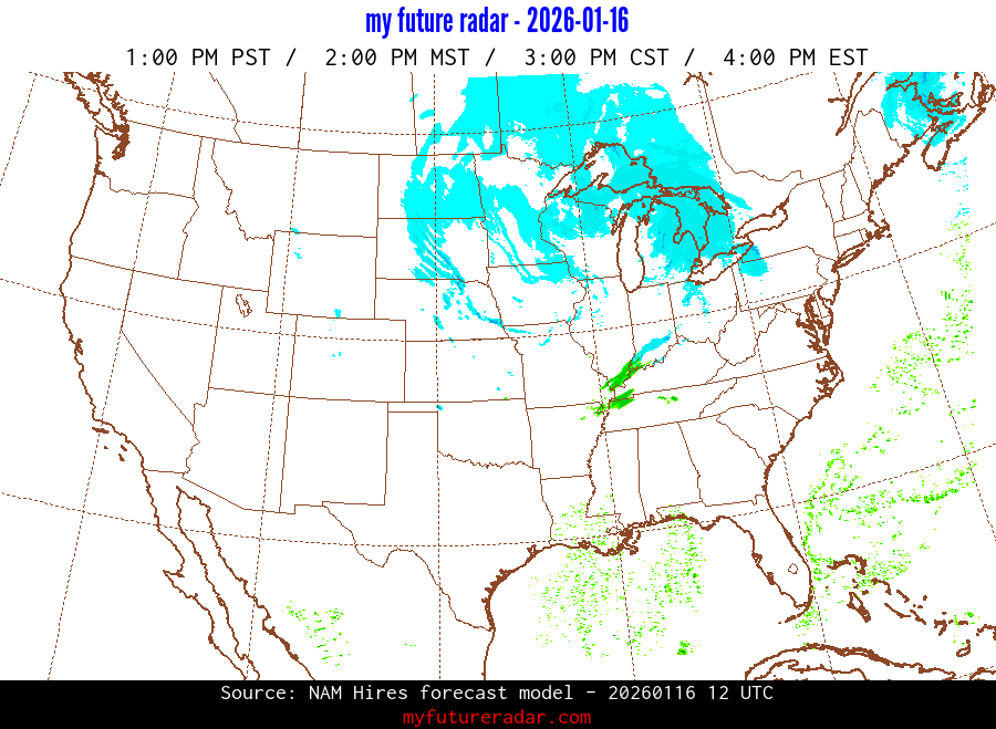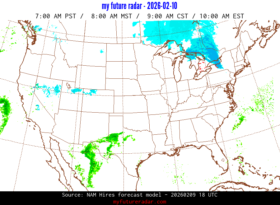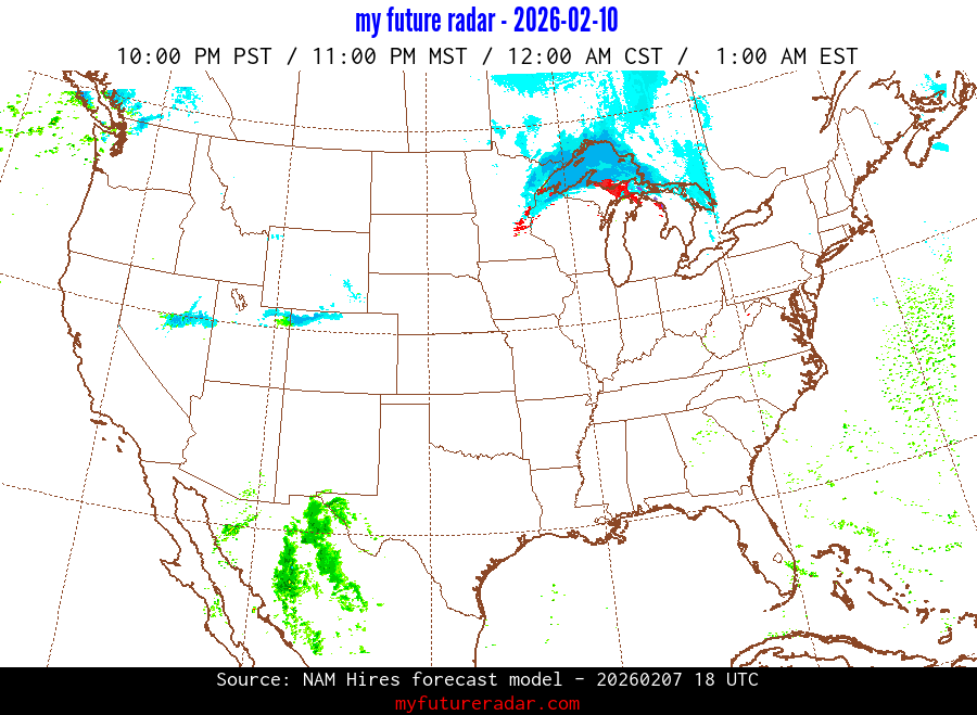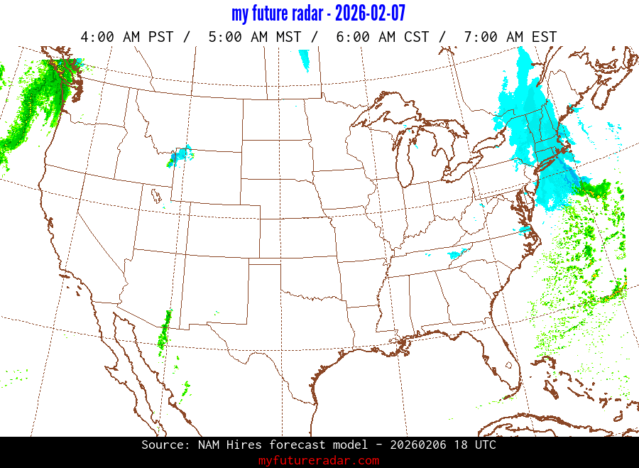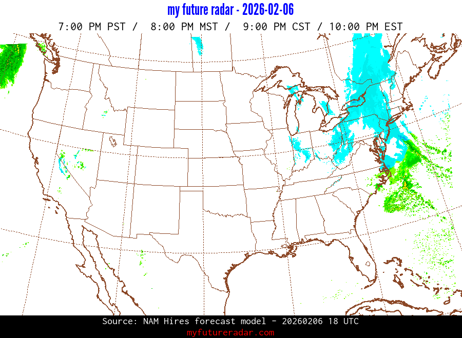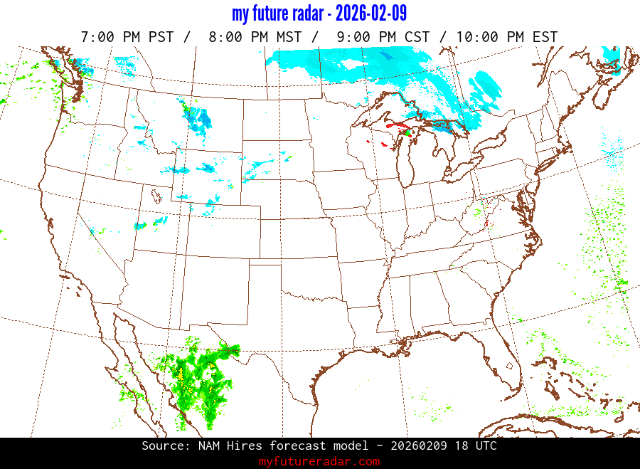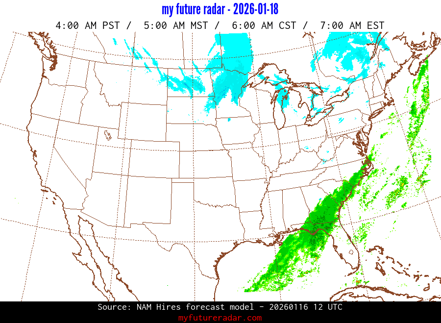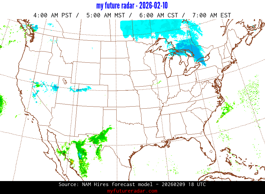 My Future Radar uses data from the Rapid Refresh and the NAM forecast models to provide simulated future radar imagery.