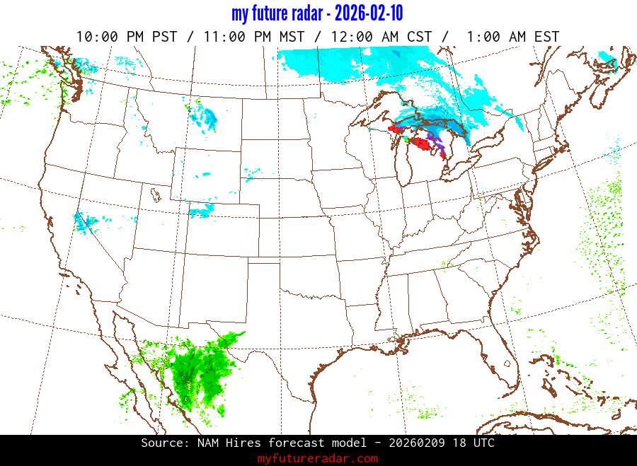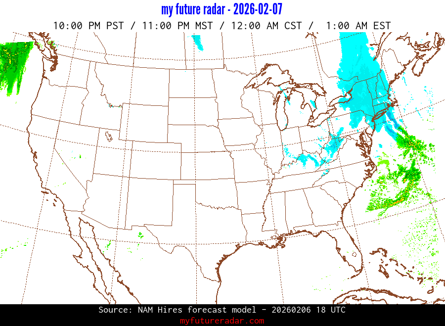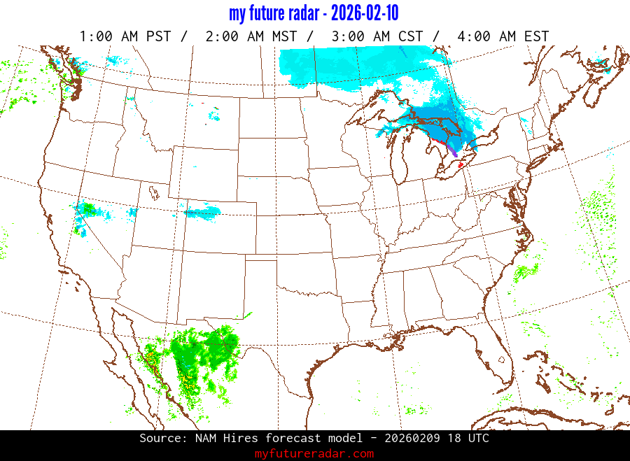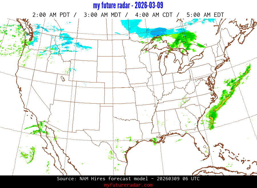 You are on the page that displays data from the NAM Hires forecast model. Currently, we have radar imagery for this model from now until .
