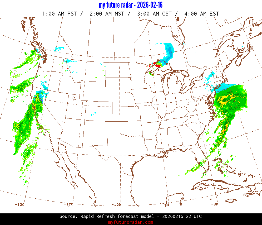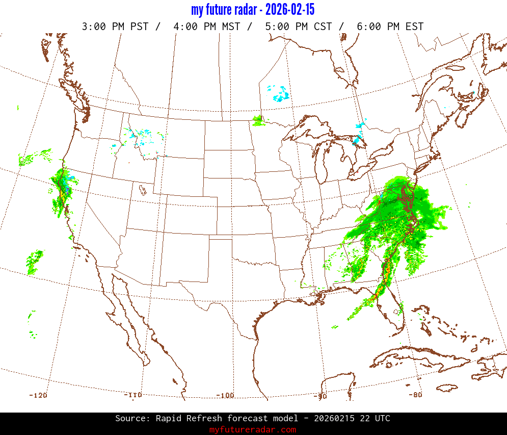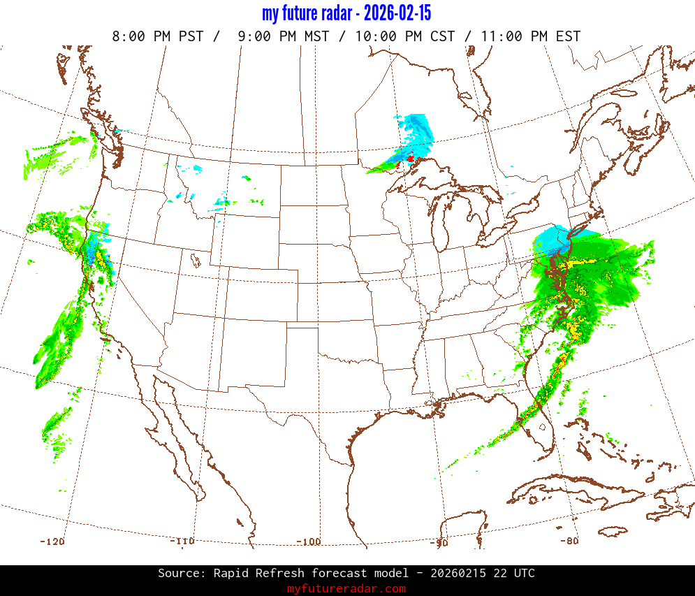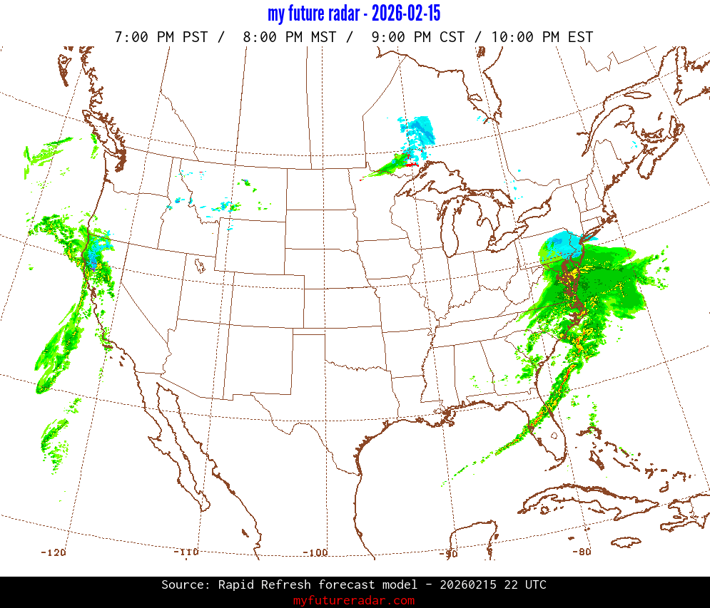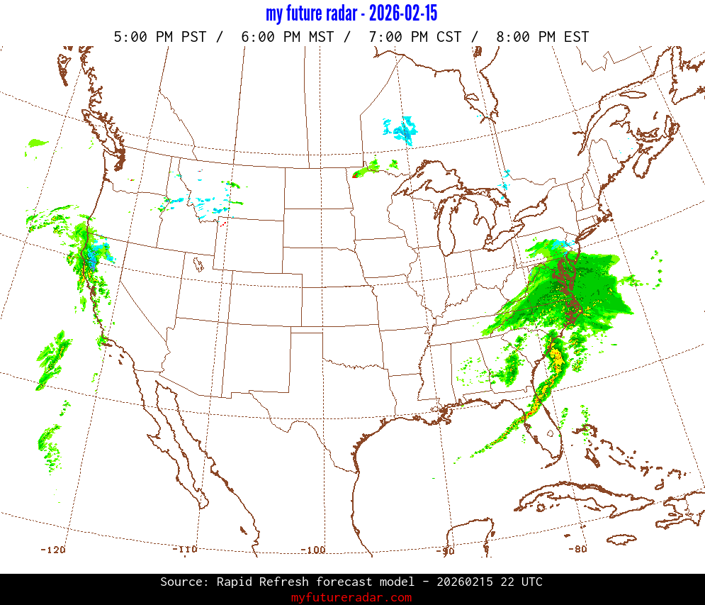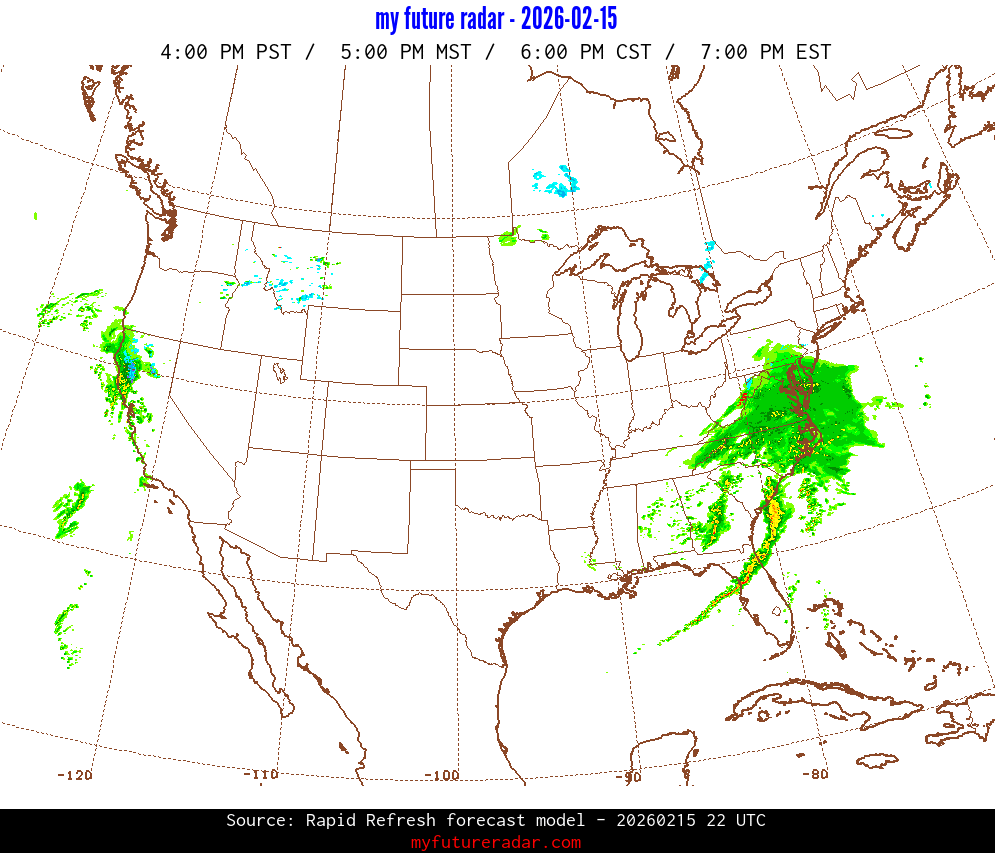 My Future Radar uses data from the Rapid Refresh and the NAM forecast models to provide simulated future radar imagery.