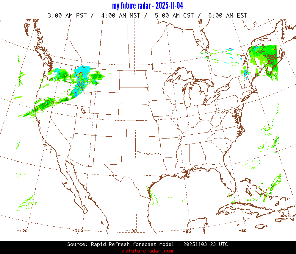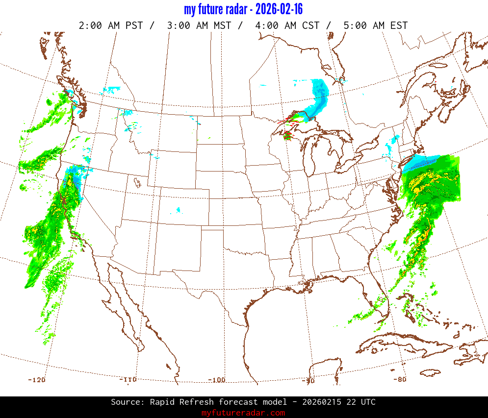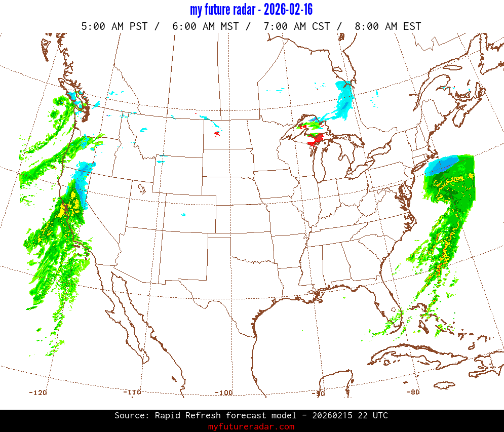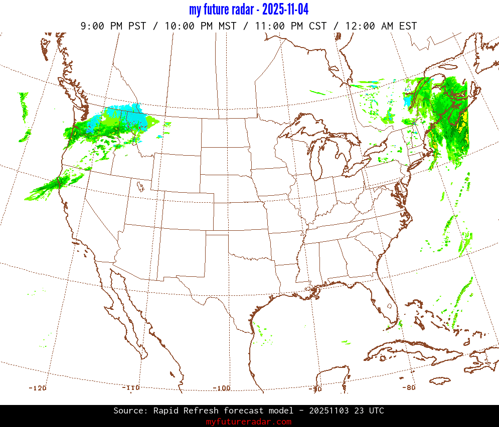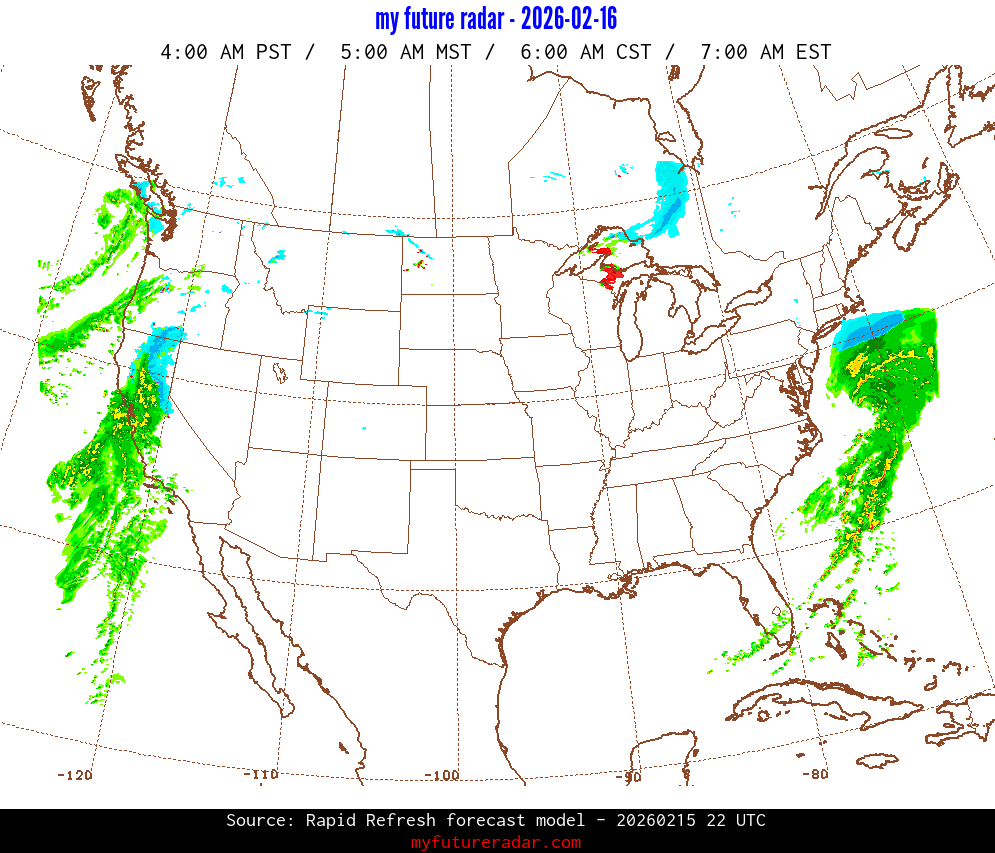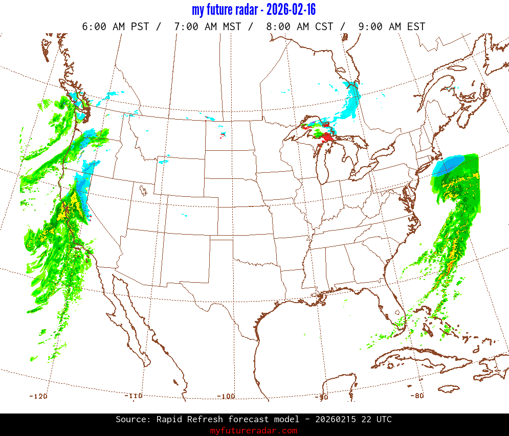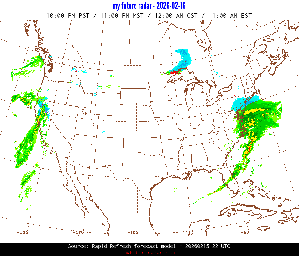 My Future Radar uses data from the Rapid Refresh and the NAM forecast models to provide simulated future radar imagery.