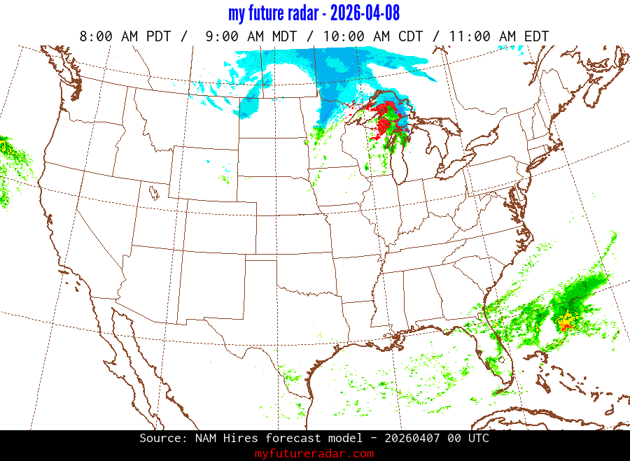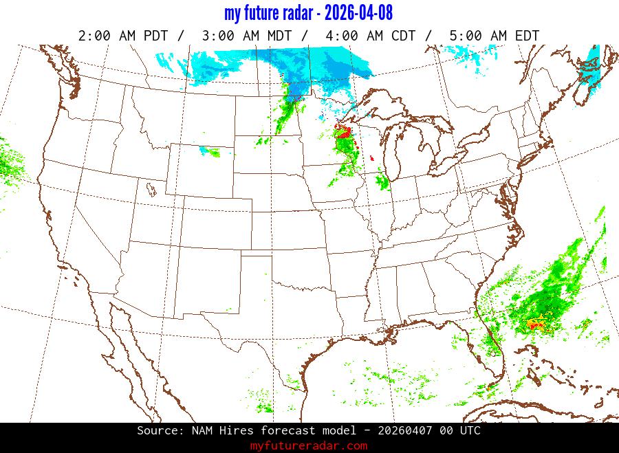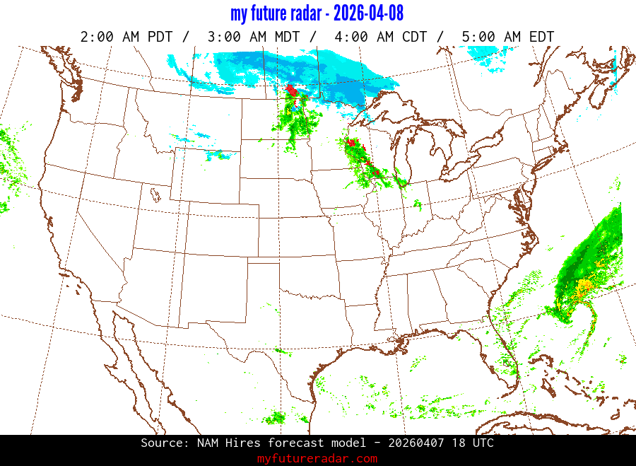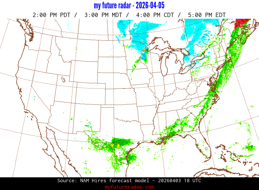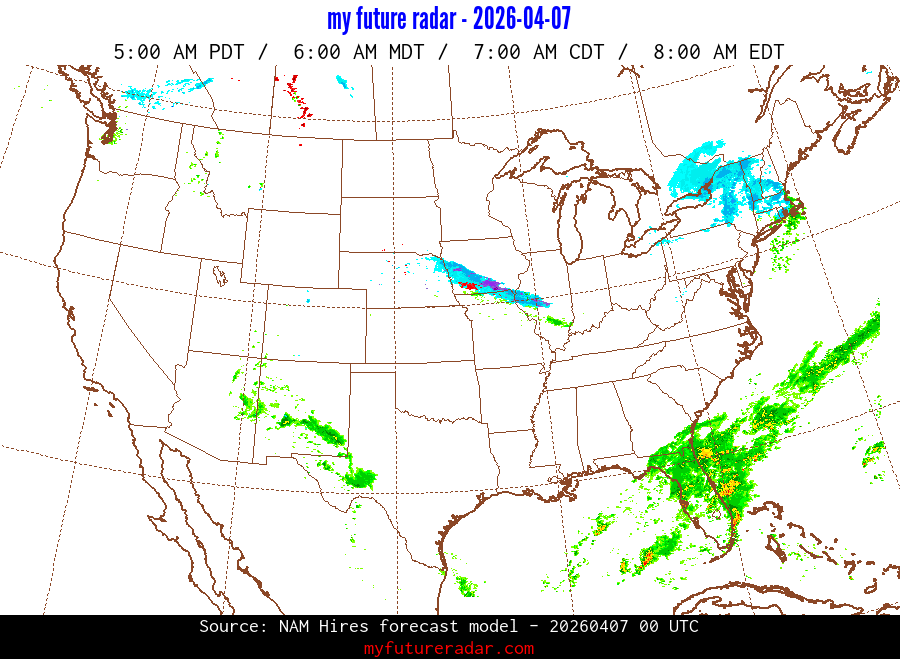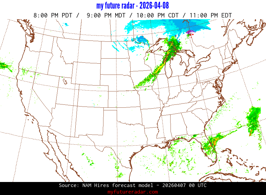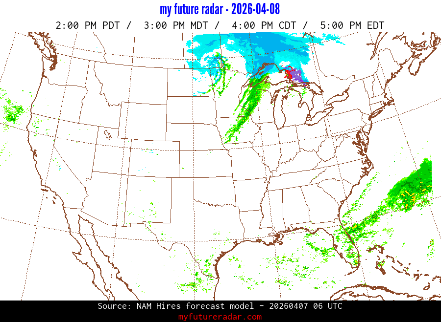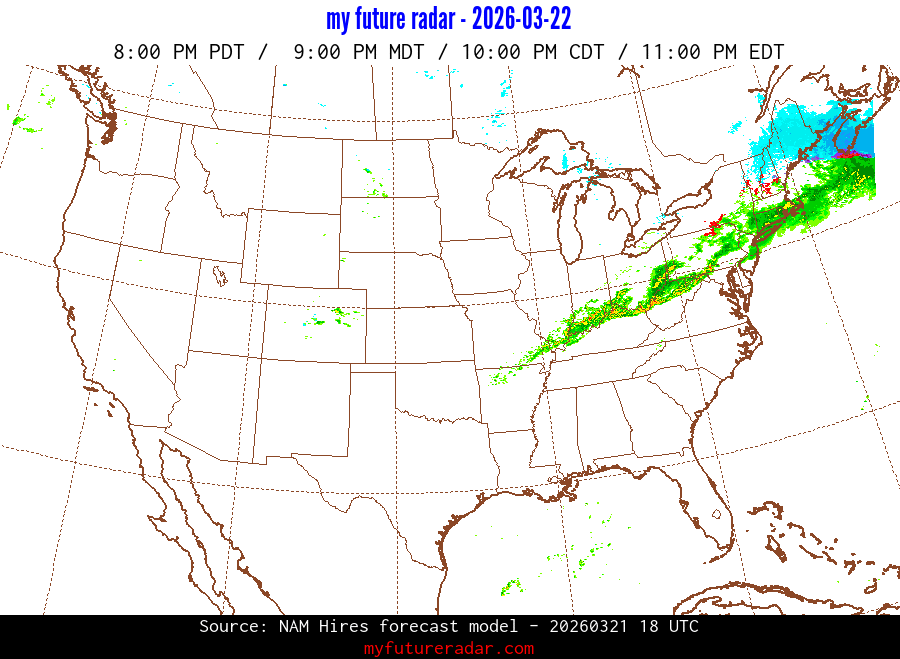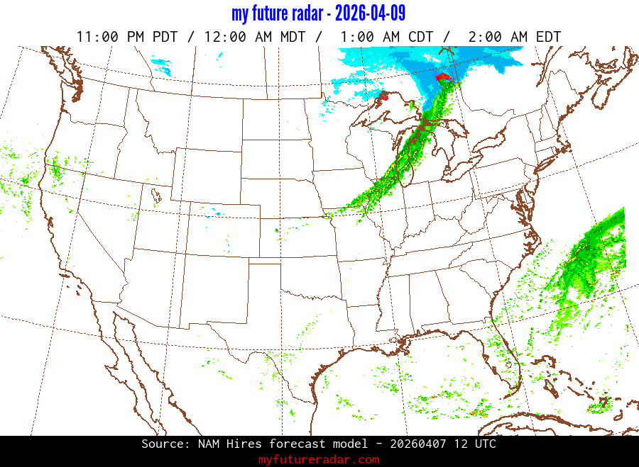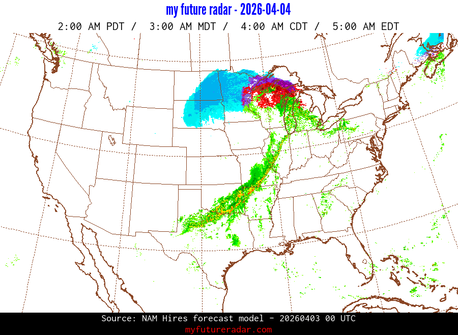 My Future Radar uses data from the Rapid Refresh and the NAM forecast models to provide simulated future radar imagery.