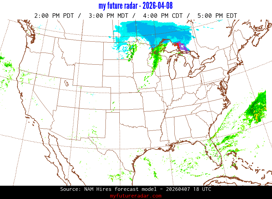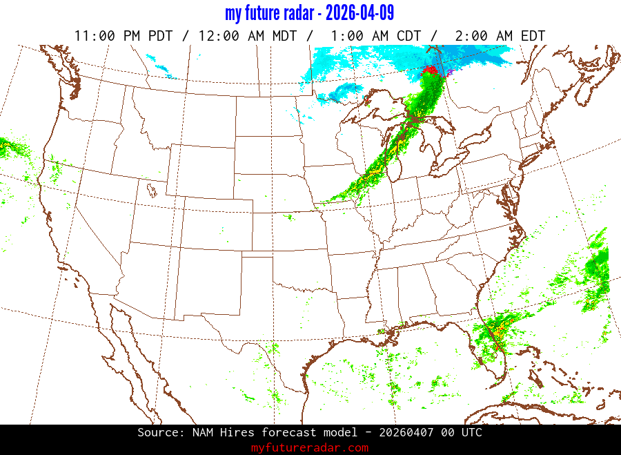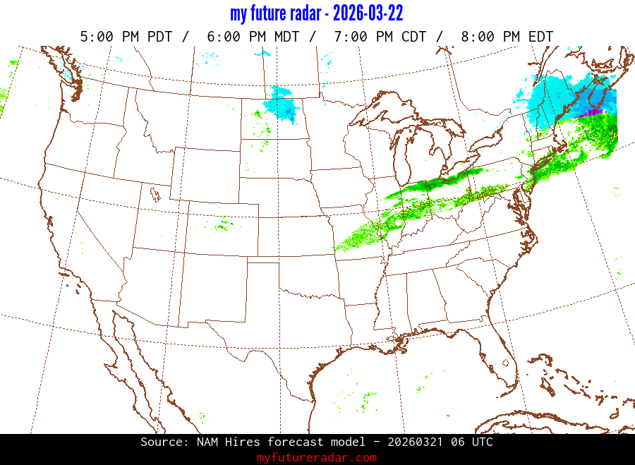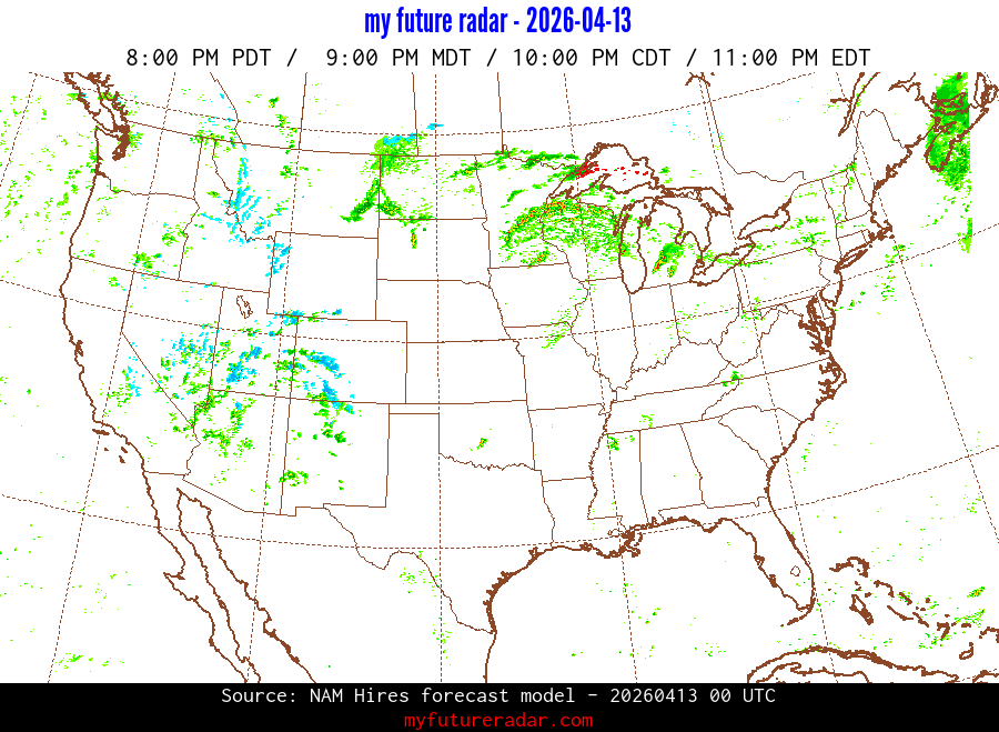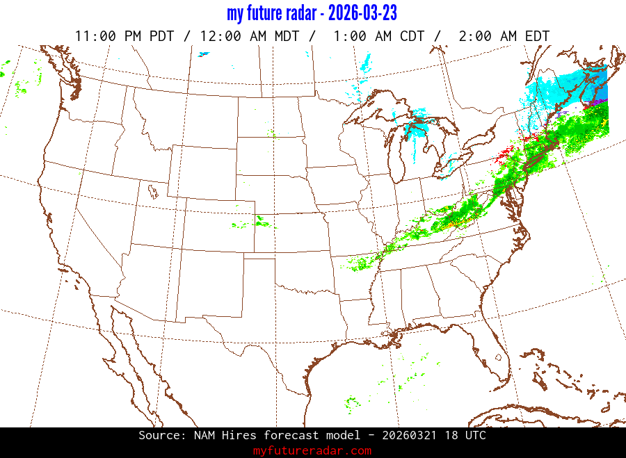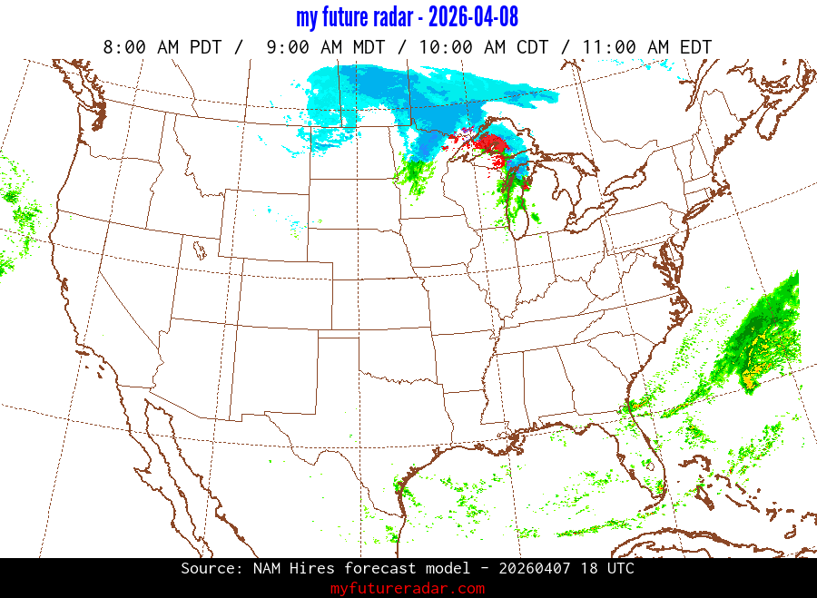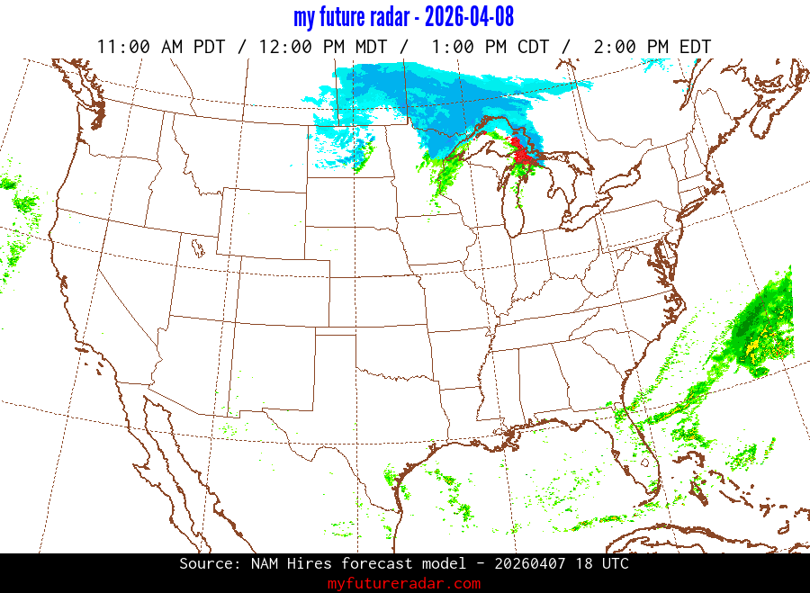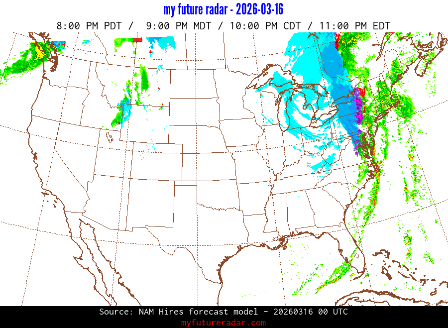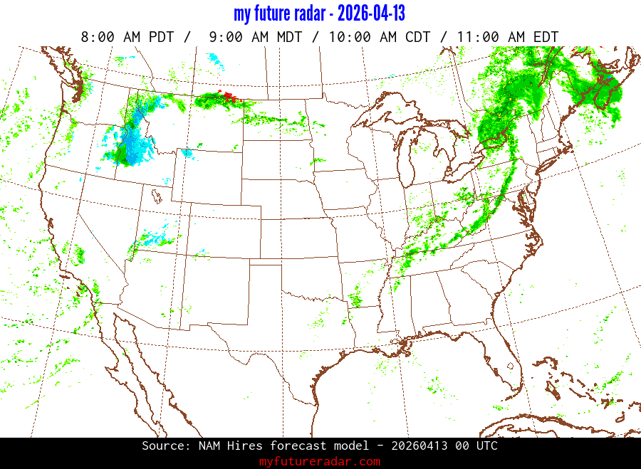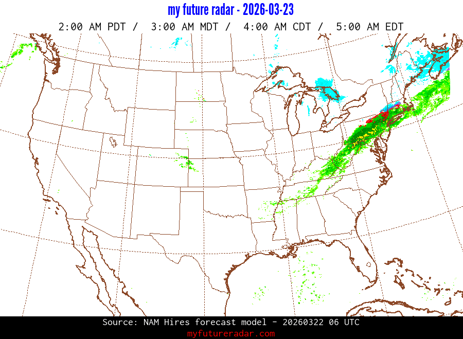 My Future Radar uses data from the Rapid Refresh and the NAM forecast models to provide simulated future radar imagery.