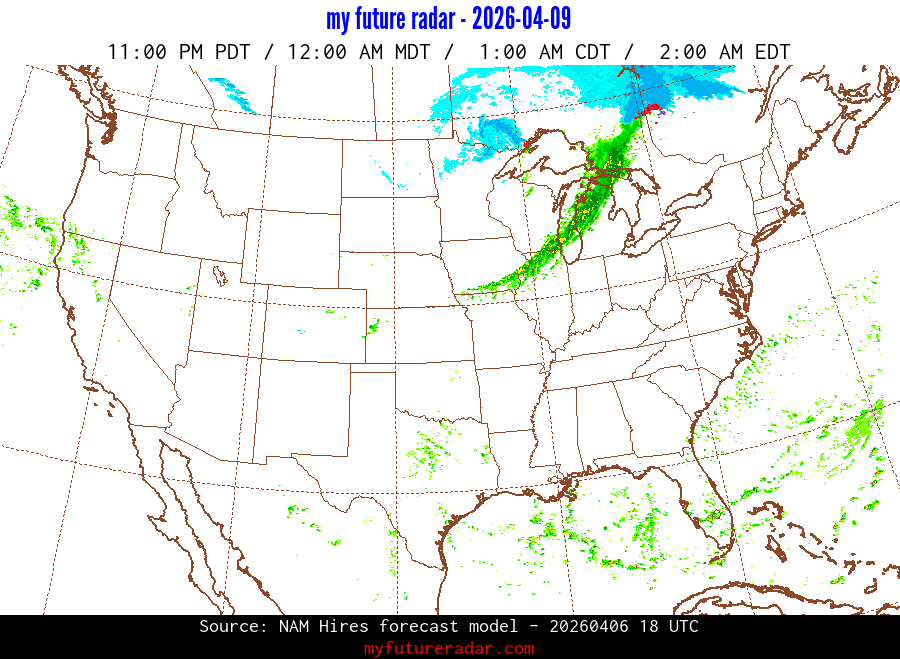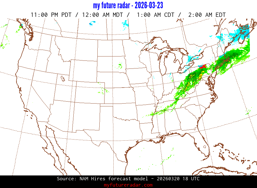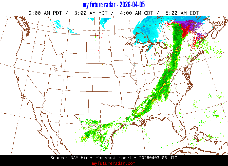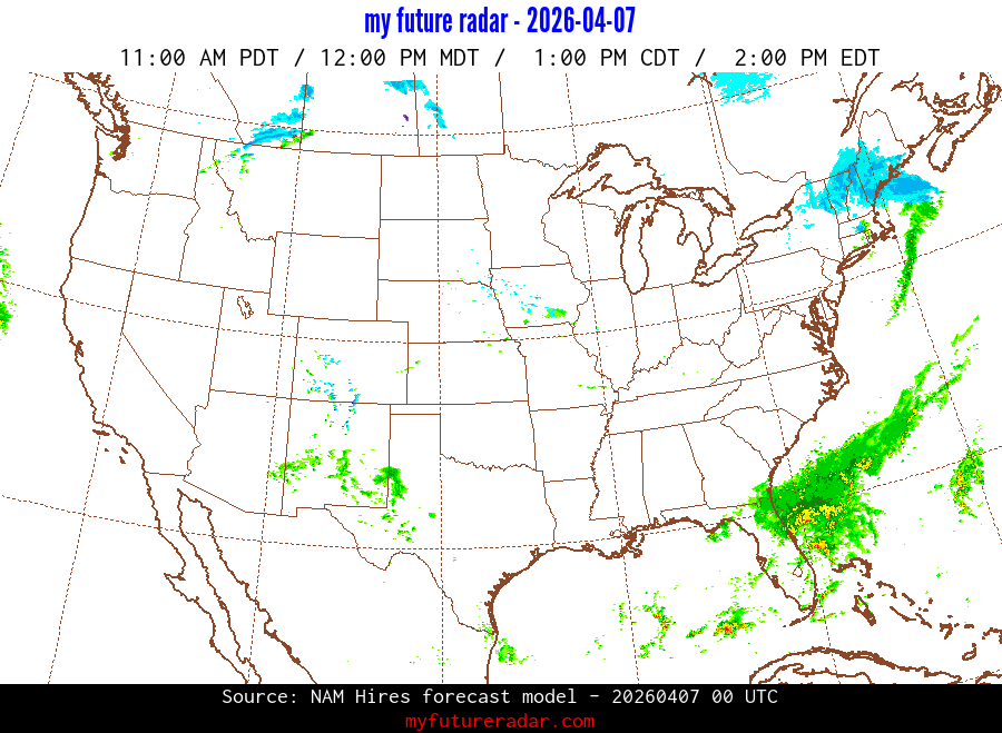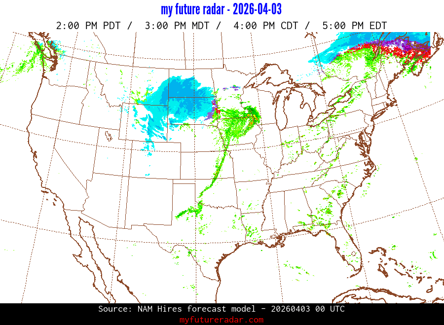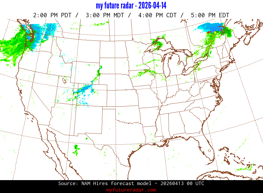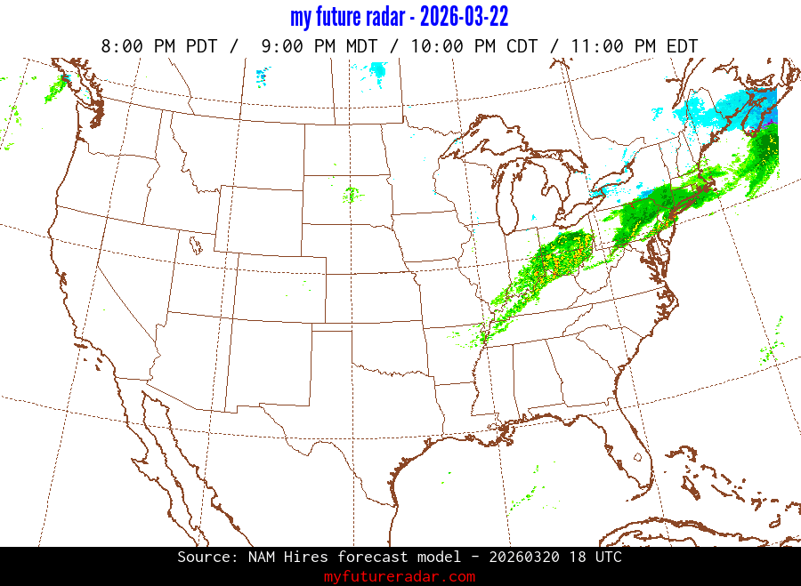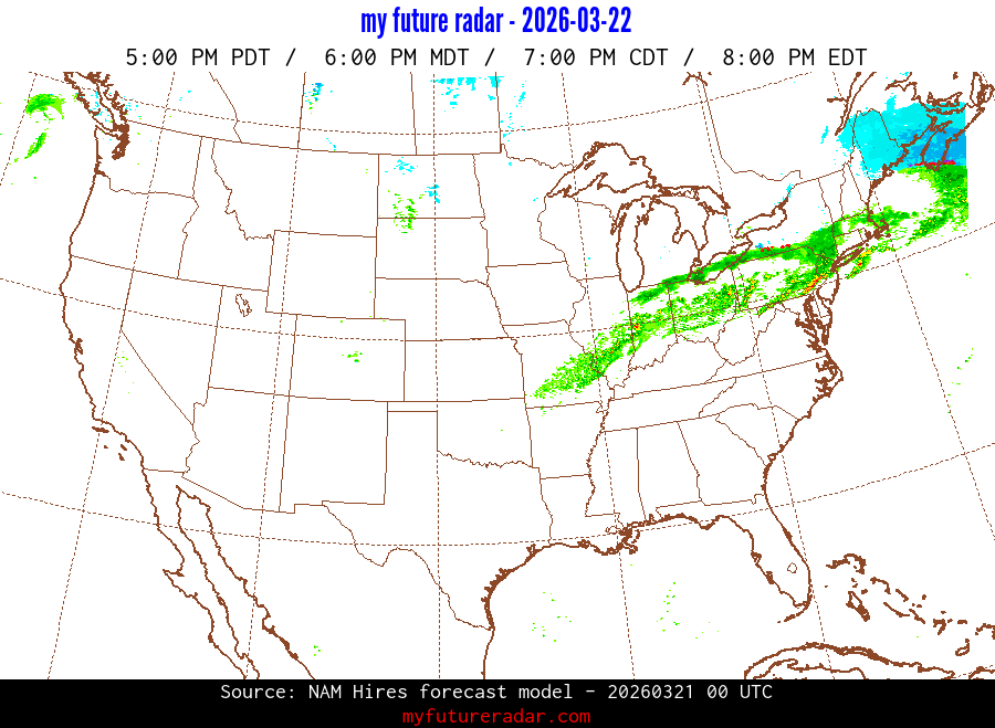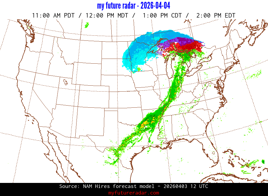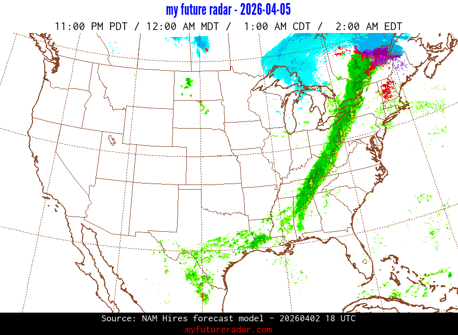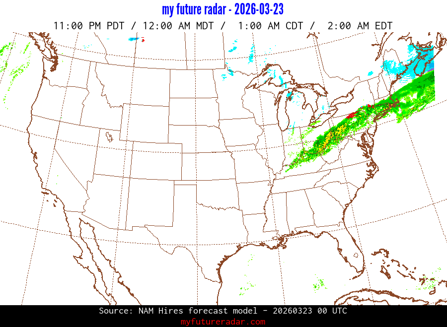 My Future Radar uses data from the Rapid Refresh and the NAM forecast models to provide simulated future radar imagery.