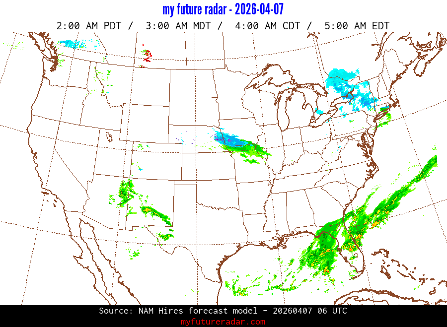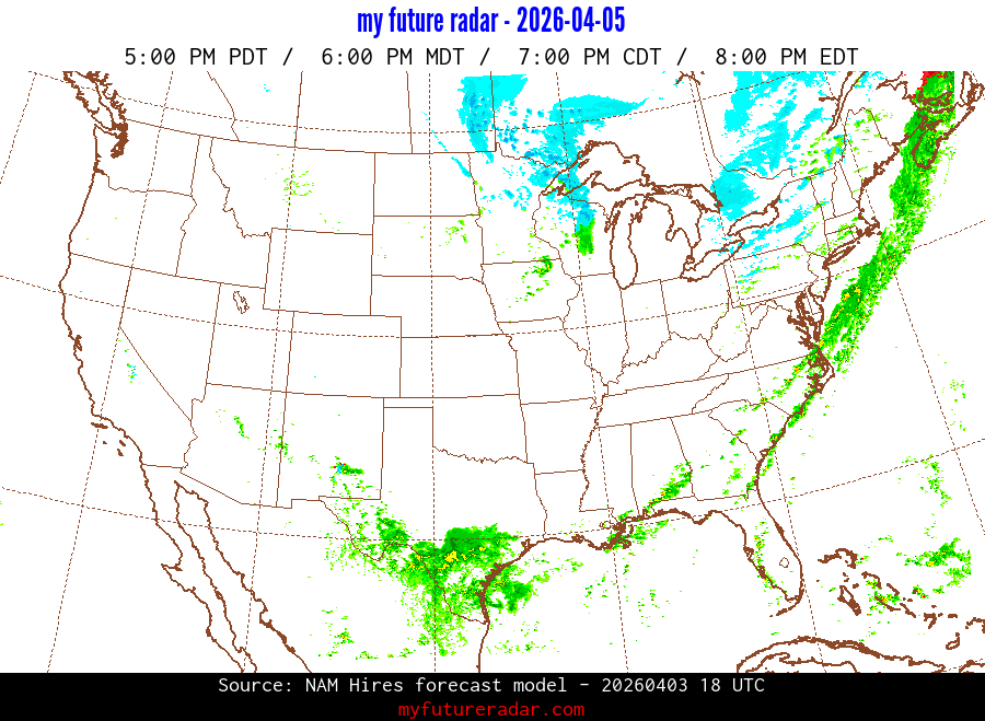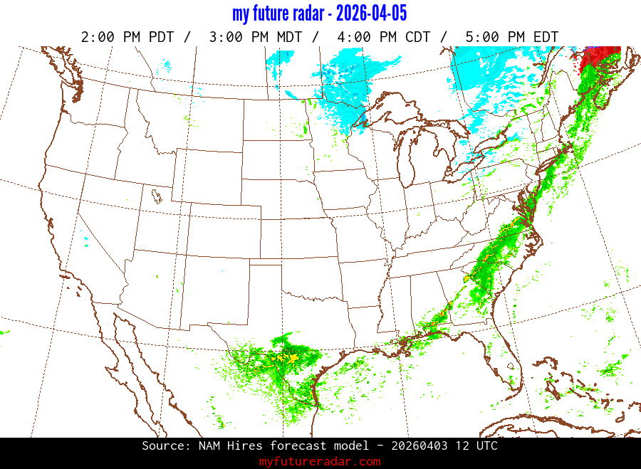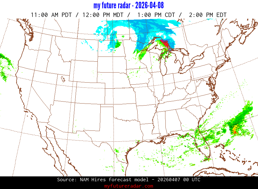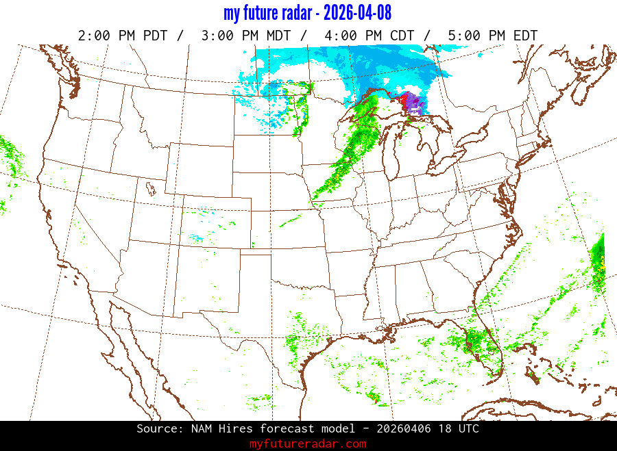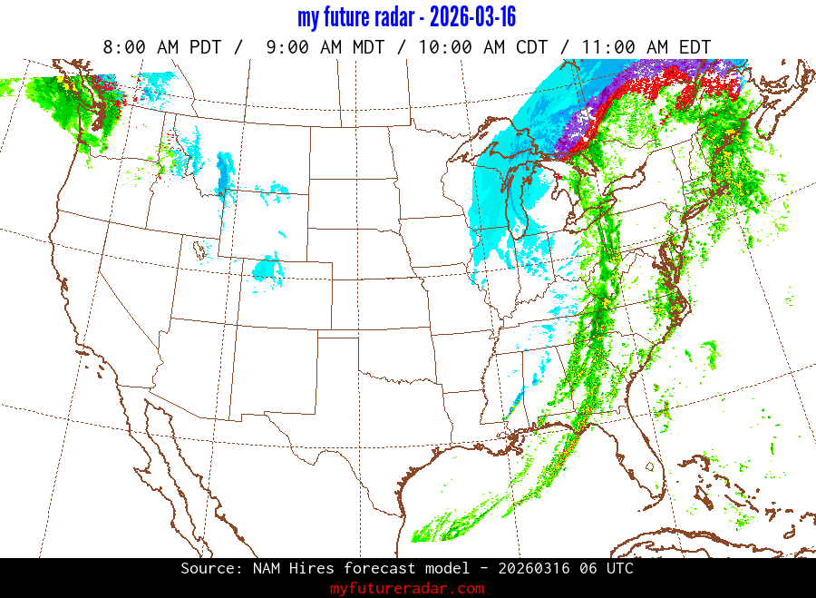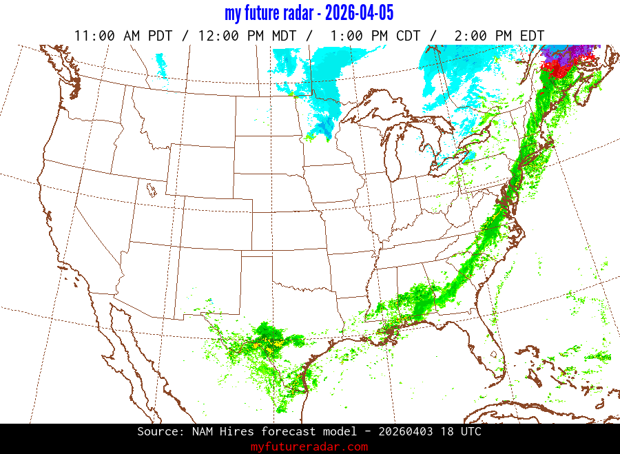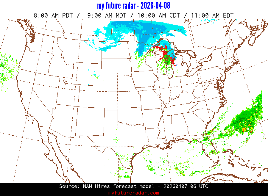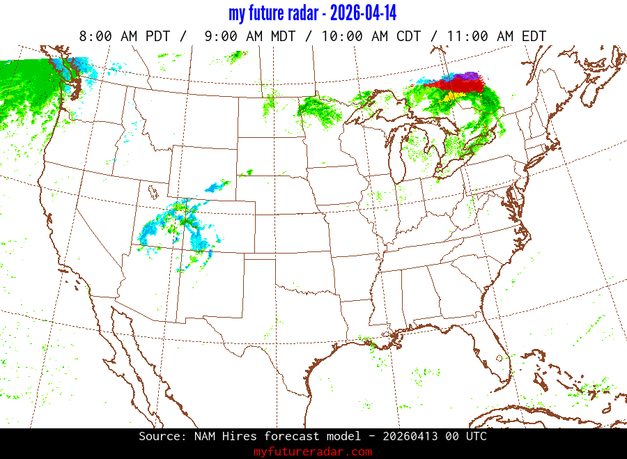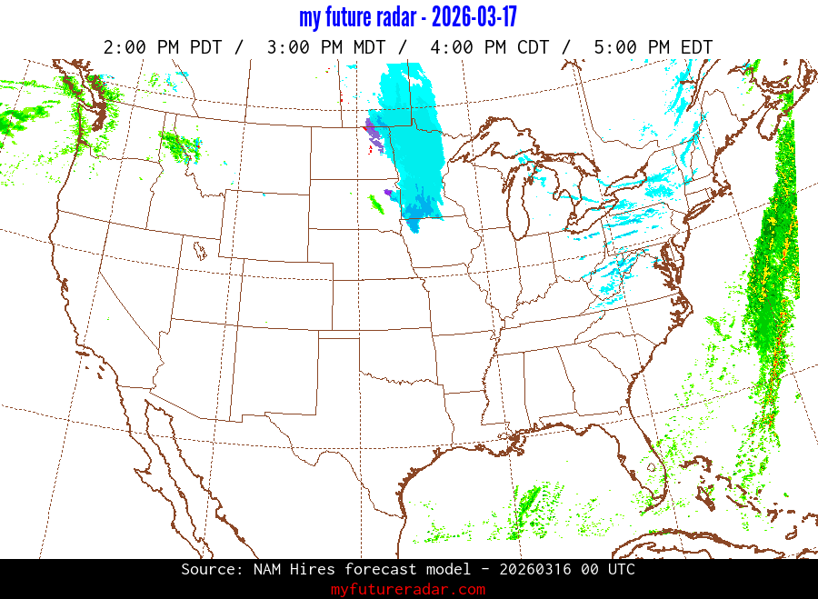My Future Radar uses data from the Rapid Refresh and the NAM forecast models to provide simulated future radar imagery.