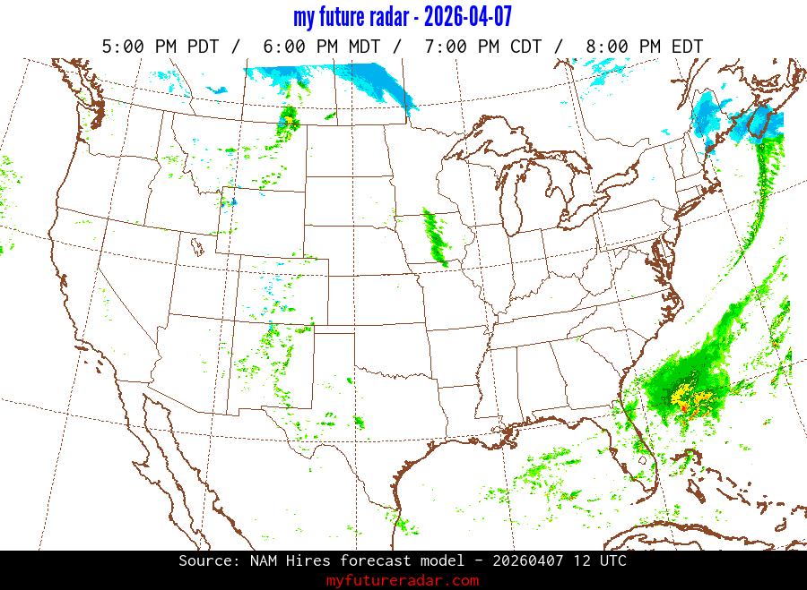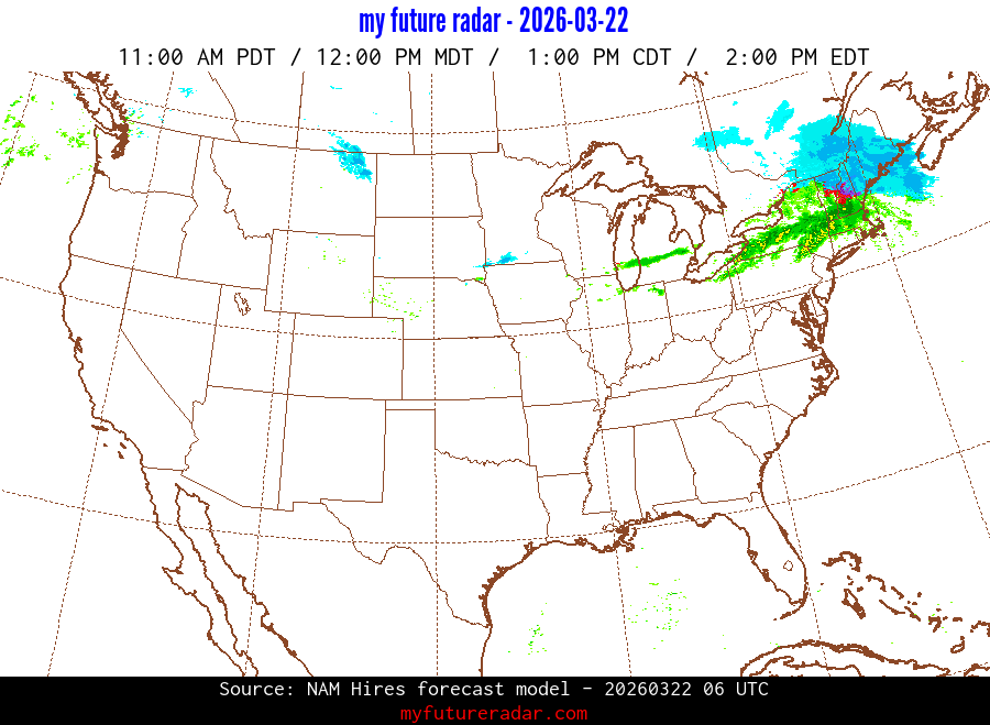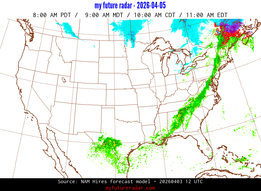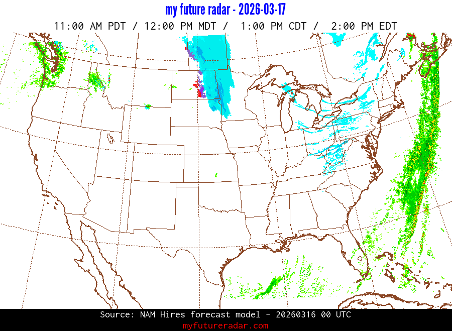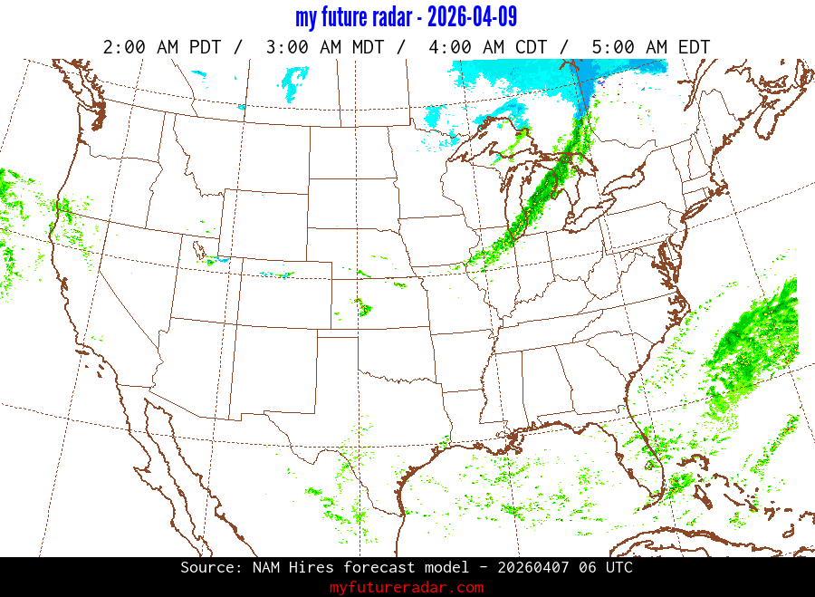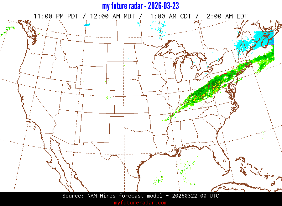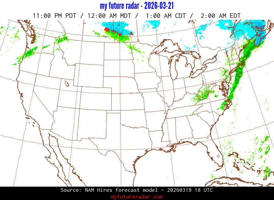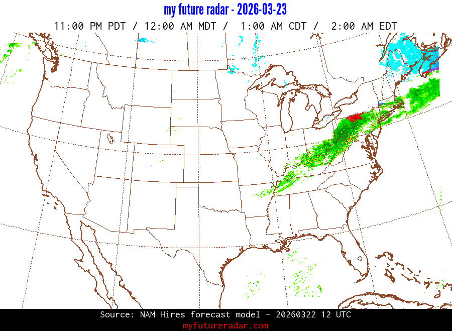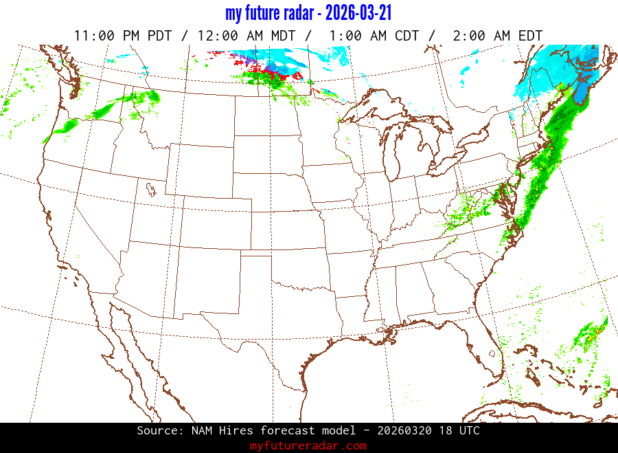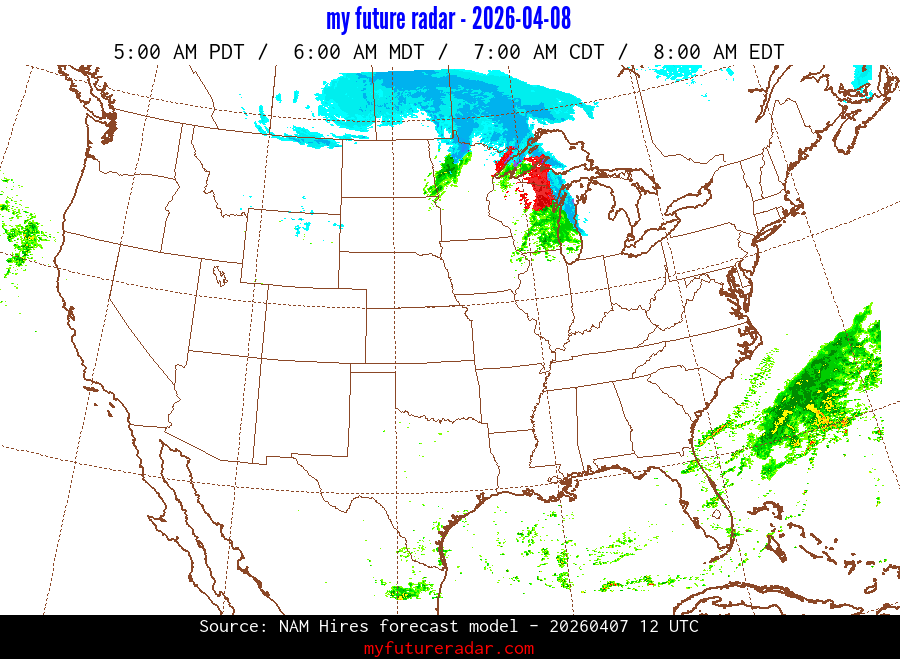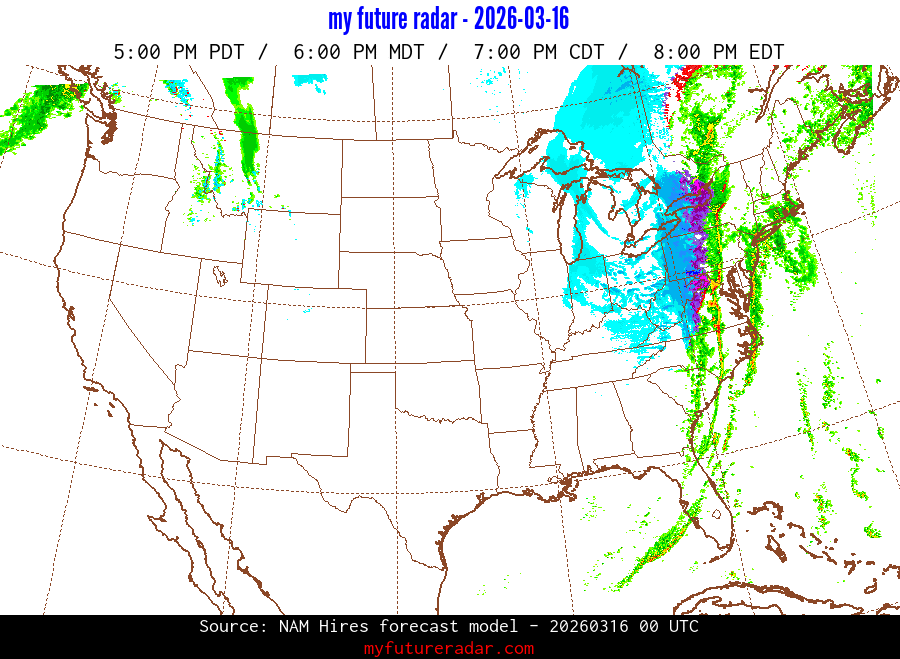 My Future Radar uses data from the Rapid Refresh and the NAM forecast models to provide simulated future radar imagery.