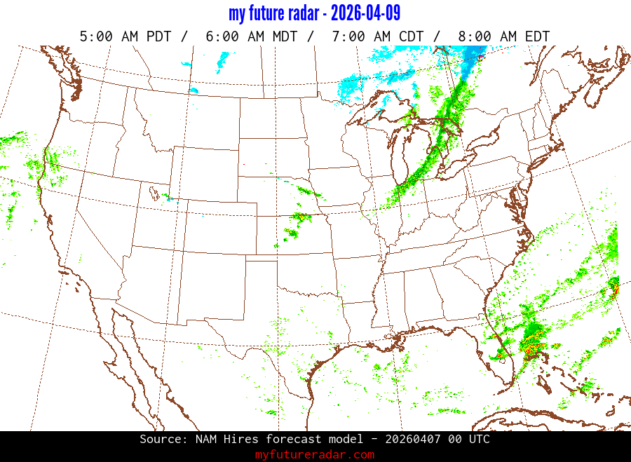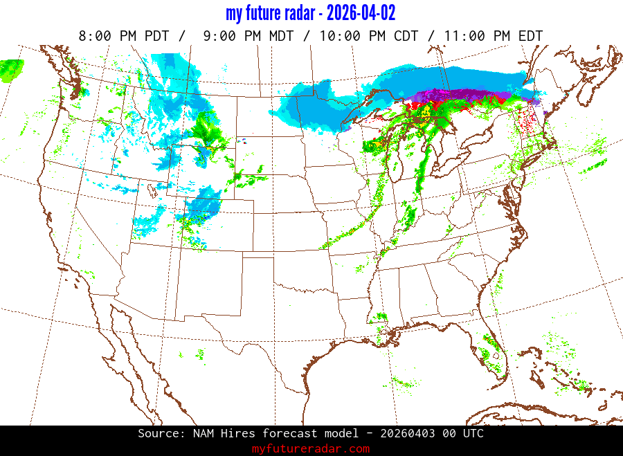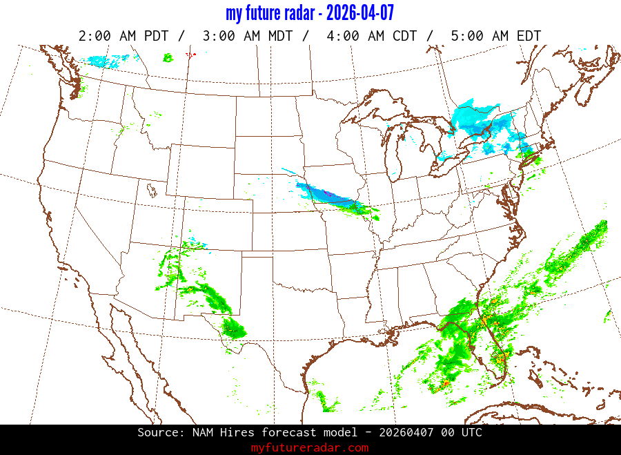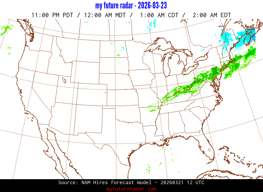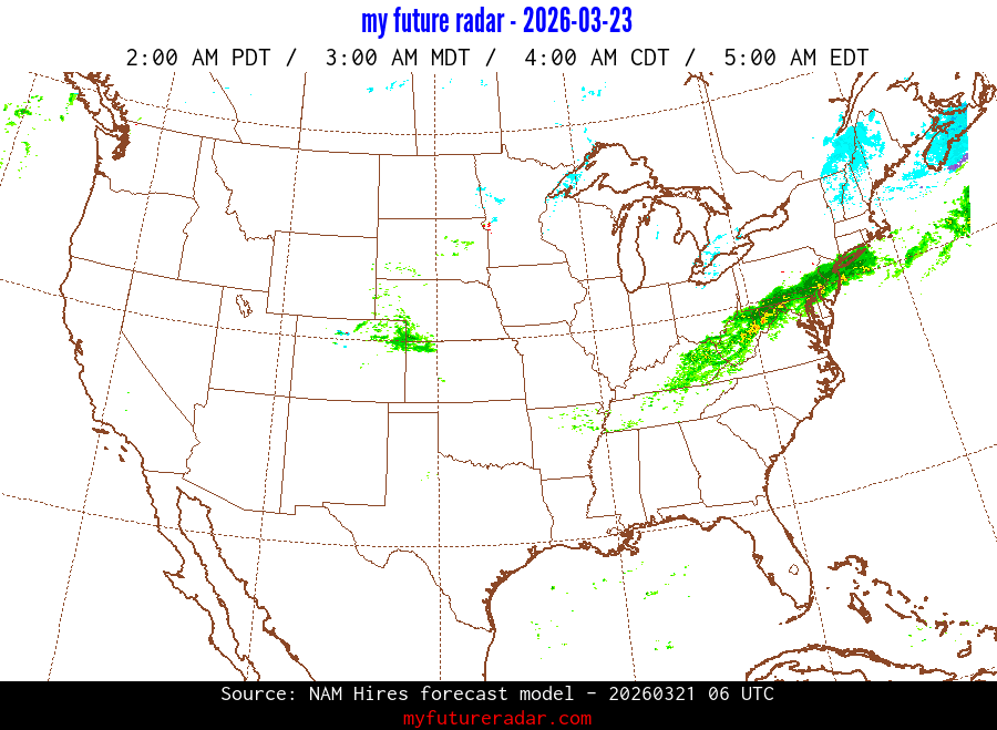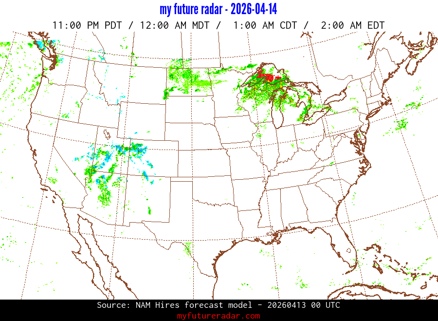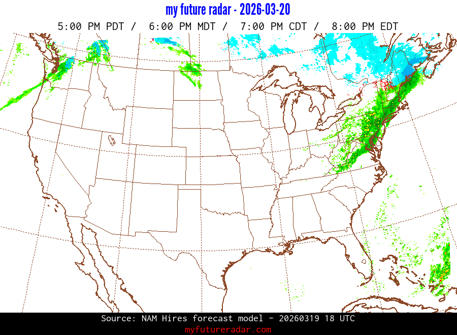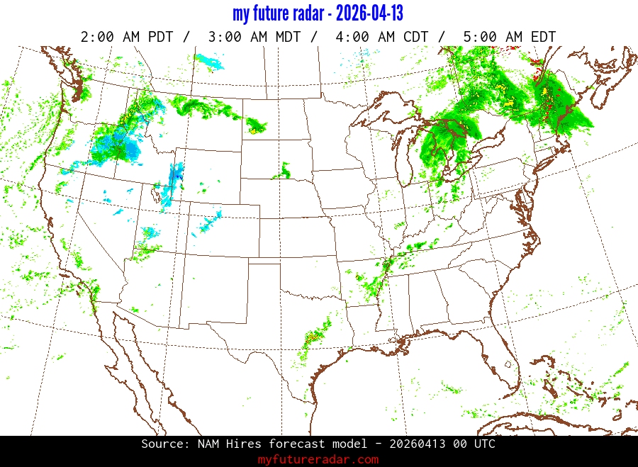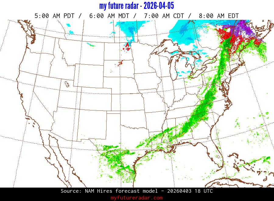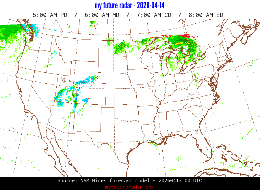 My Future Radar uses data from the Rapid Refresh and the NAM forecast models to provide simulated future radar imagery.