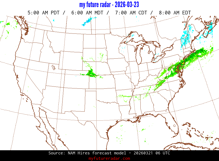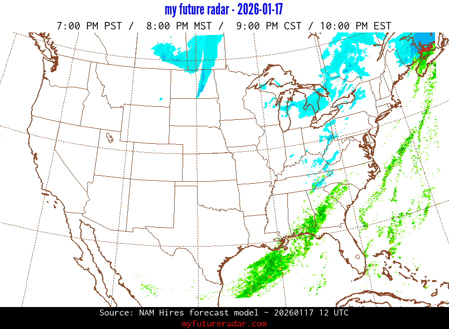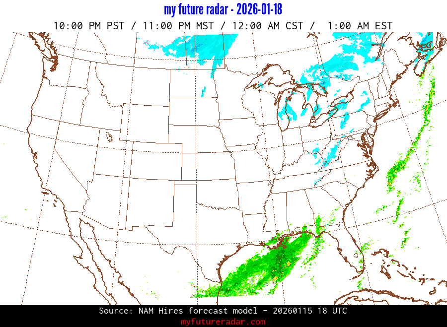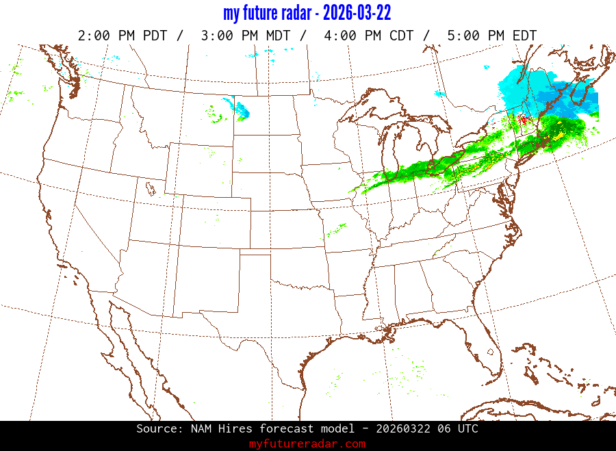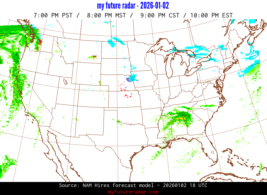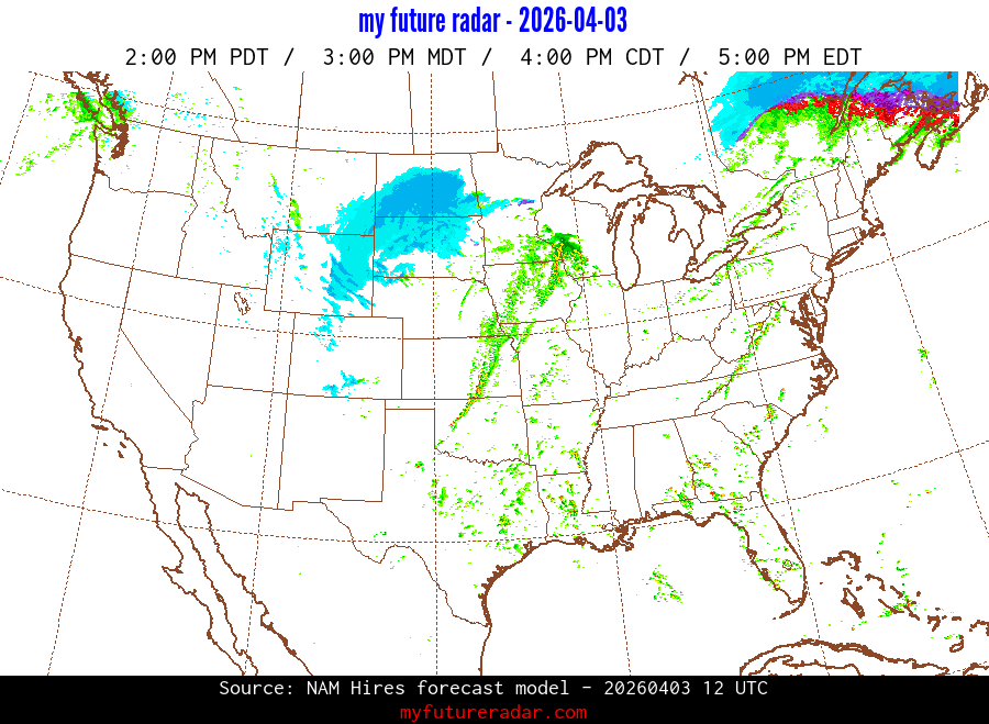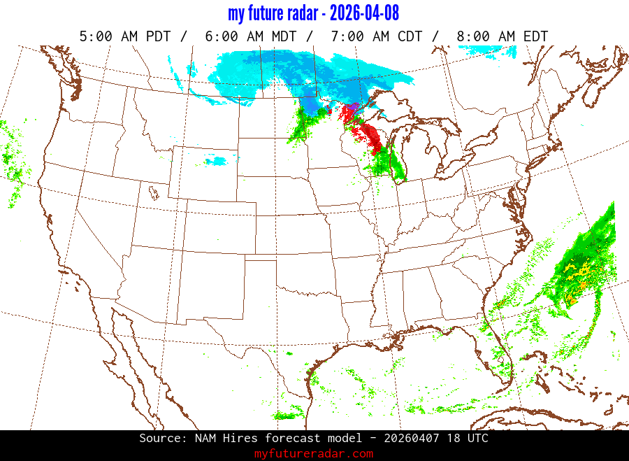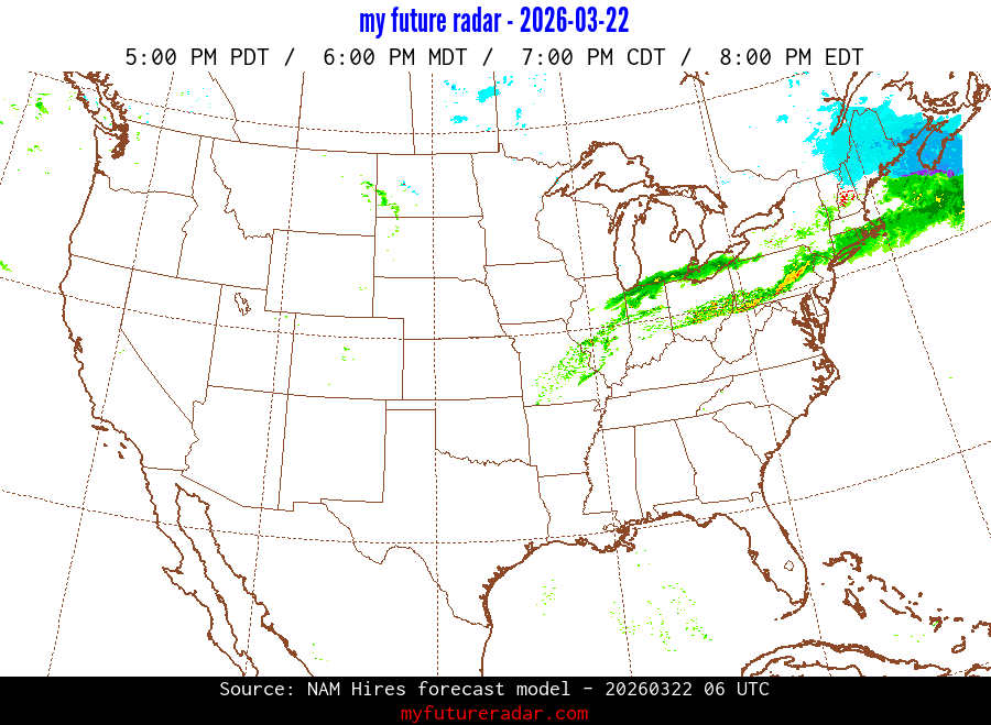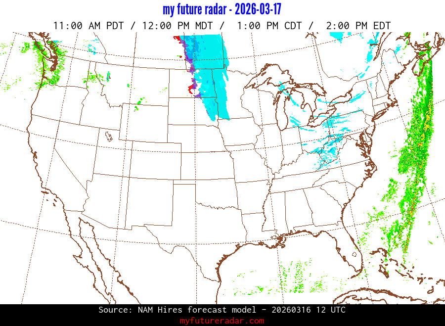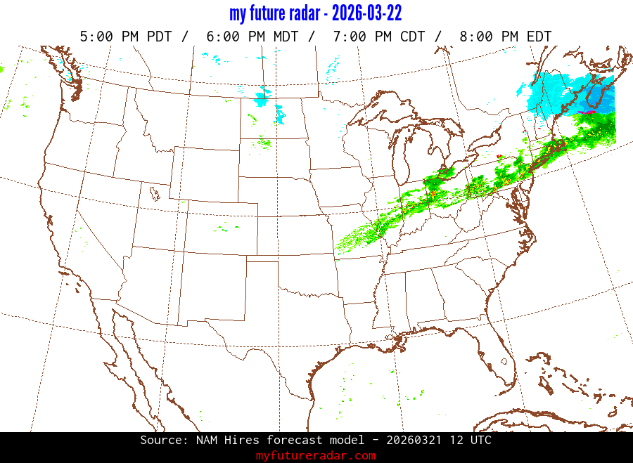 My Future Radar uses data from the Rapid Refresh and the NAM forecast models to provide simulated future radar imagery.