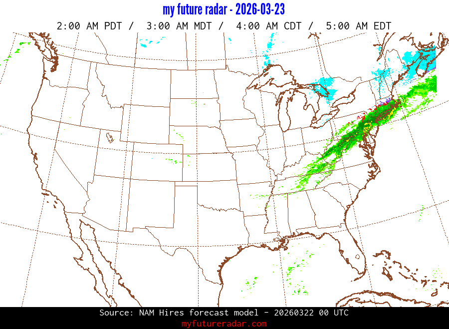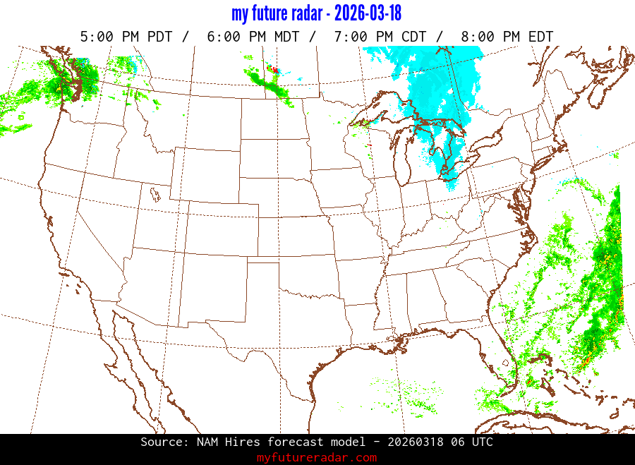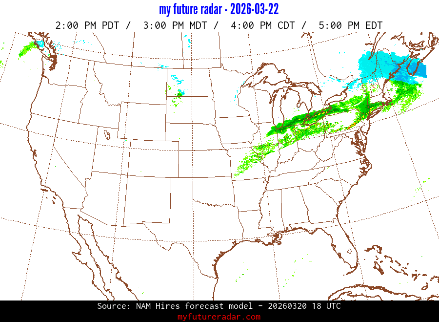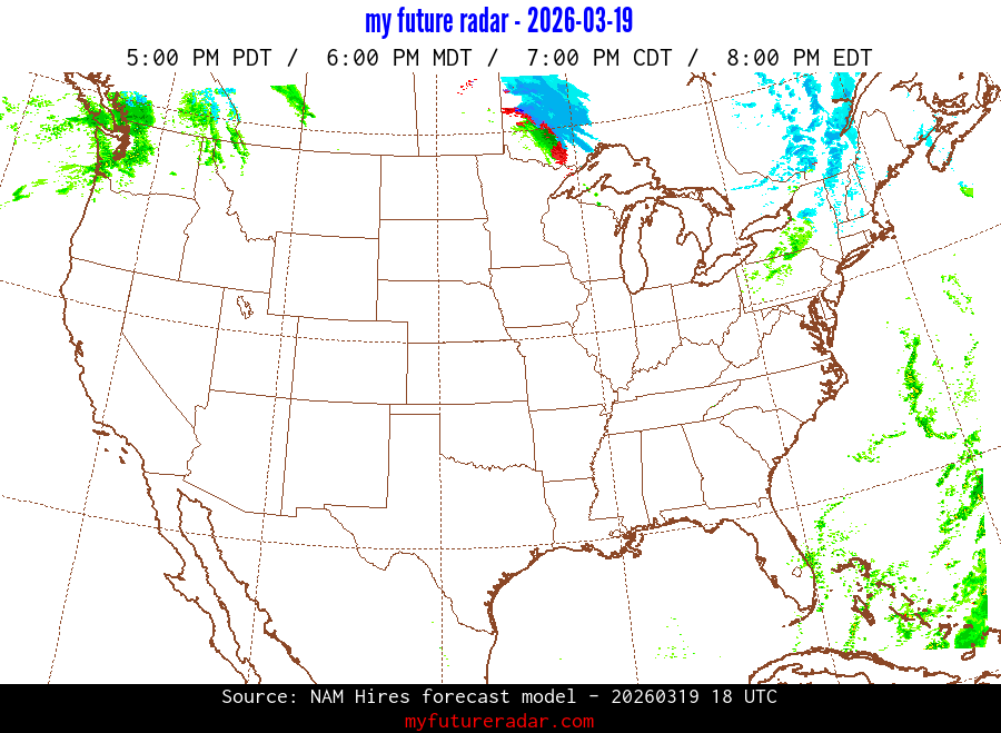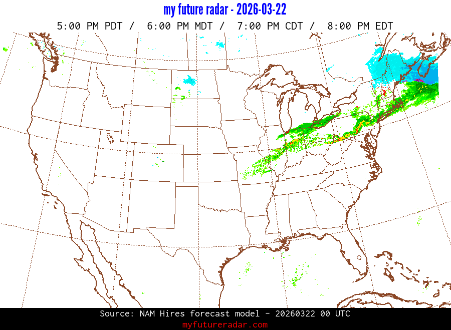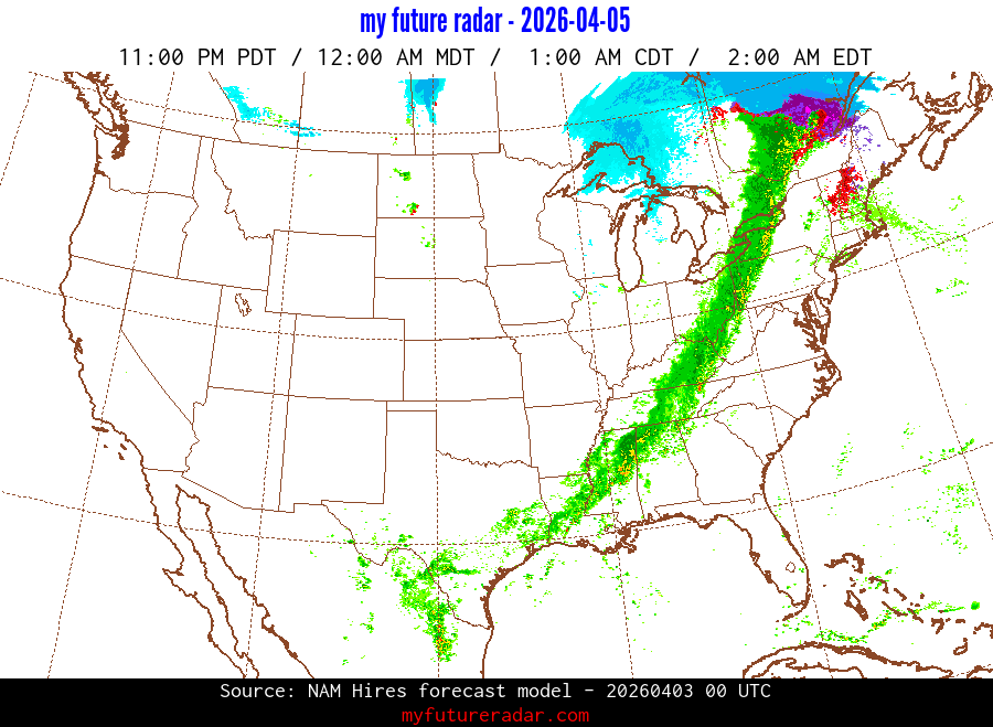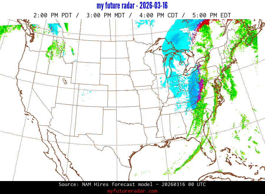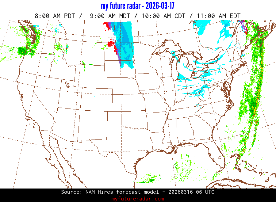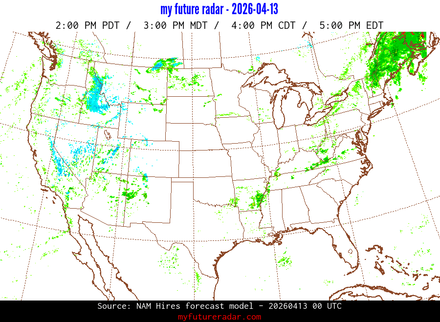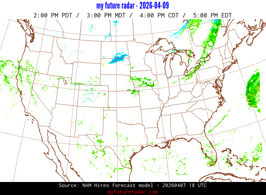My Future Radar uses data from the Rapid Refresh and the NAM forecast models to provide simulated future radar imagery.