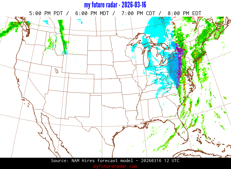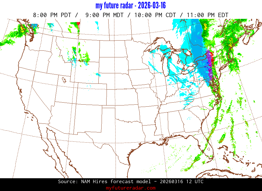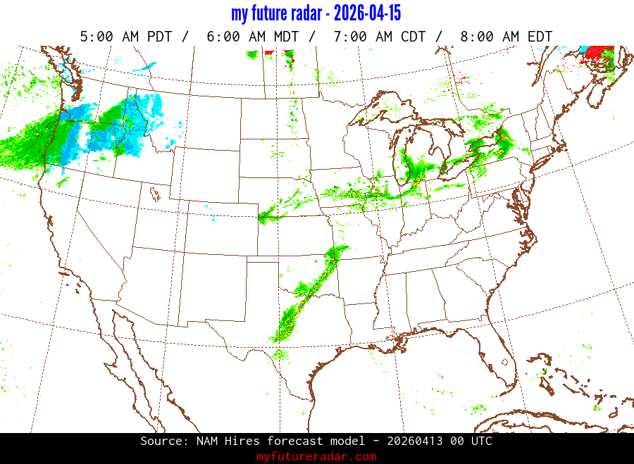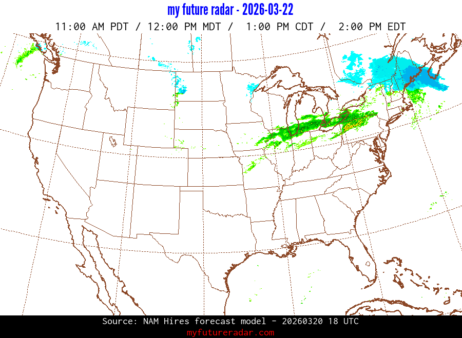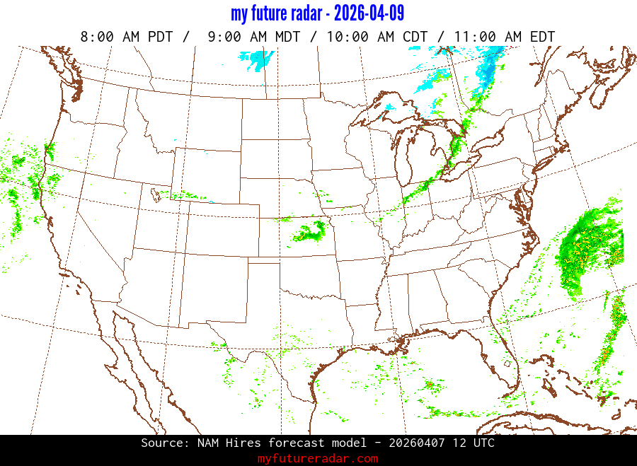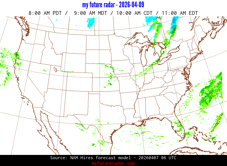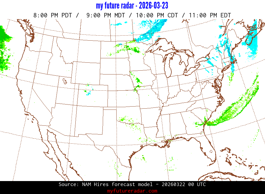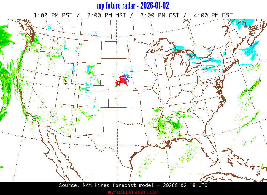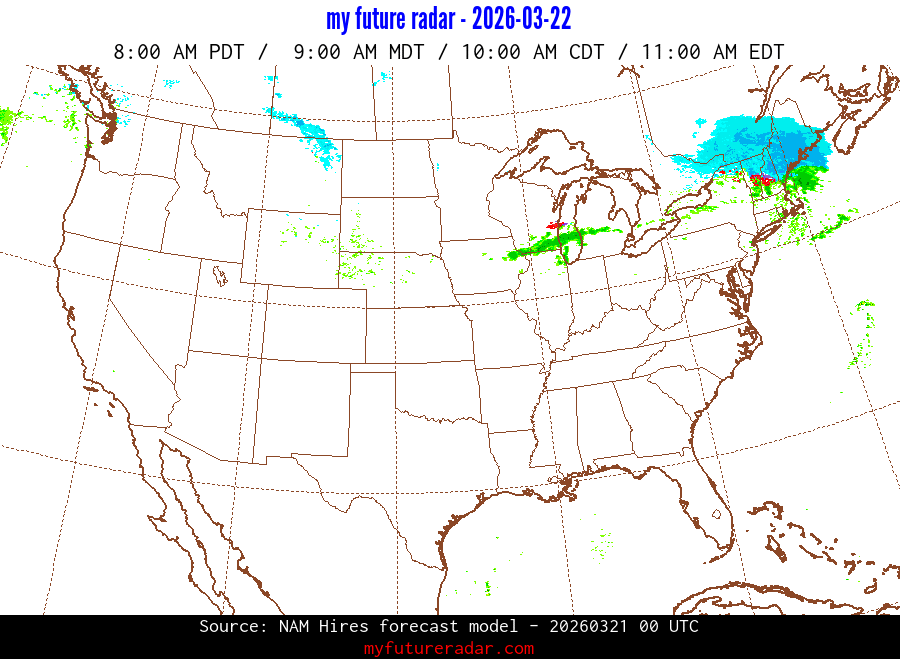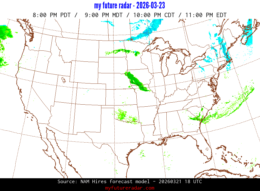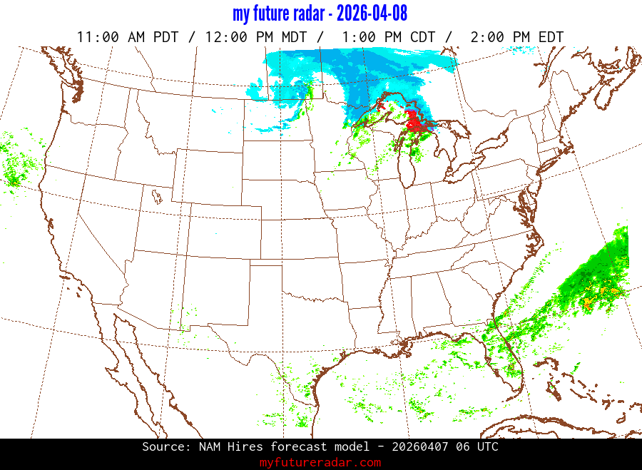 My Future Radar uses data from the Rapid Refresh and the NAM forecast models to provide simulated future radar imagery.