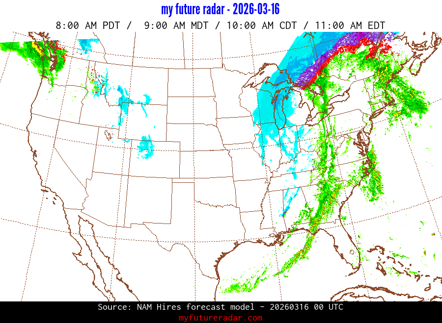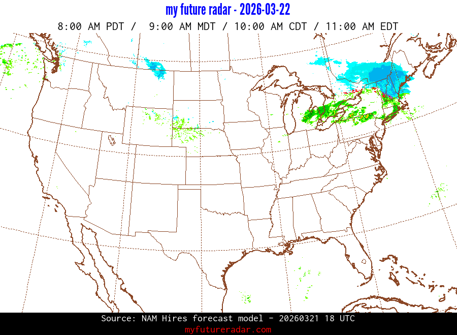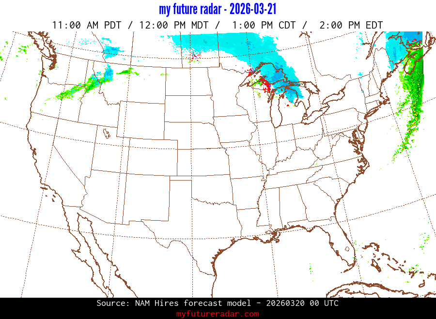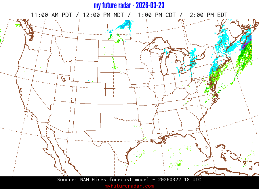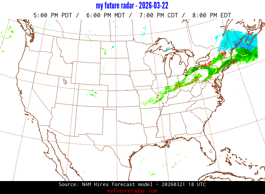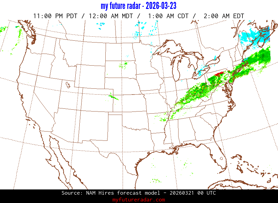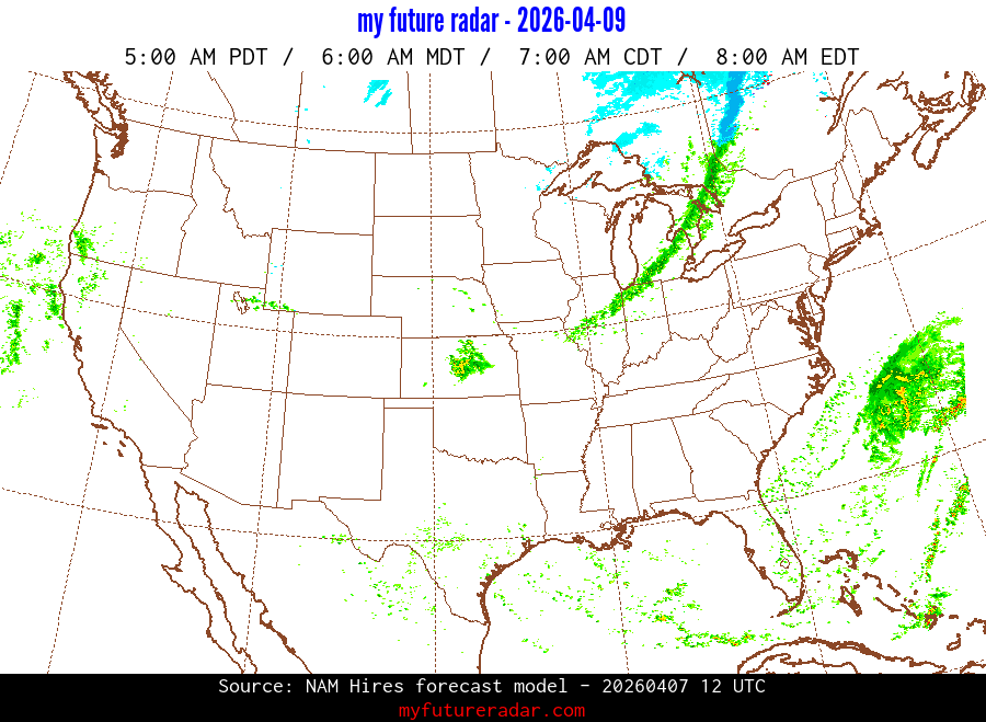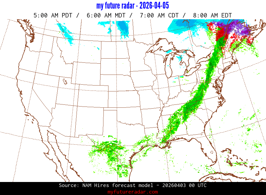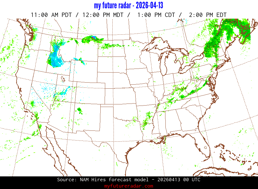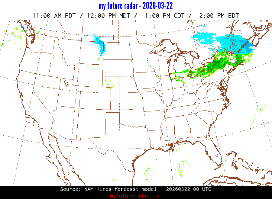 My Future Radar uses data from the Rapid Refresh and the NAM forecast models to provide simulated future radar imagery.