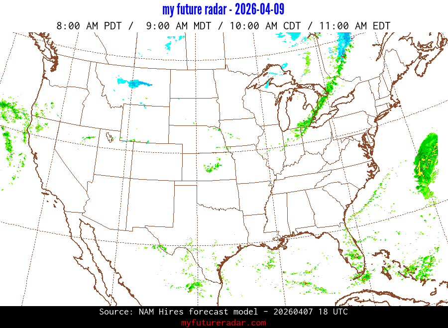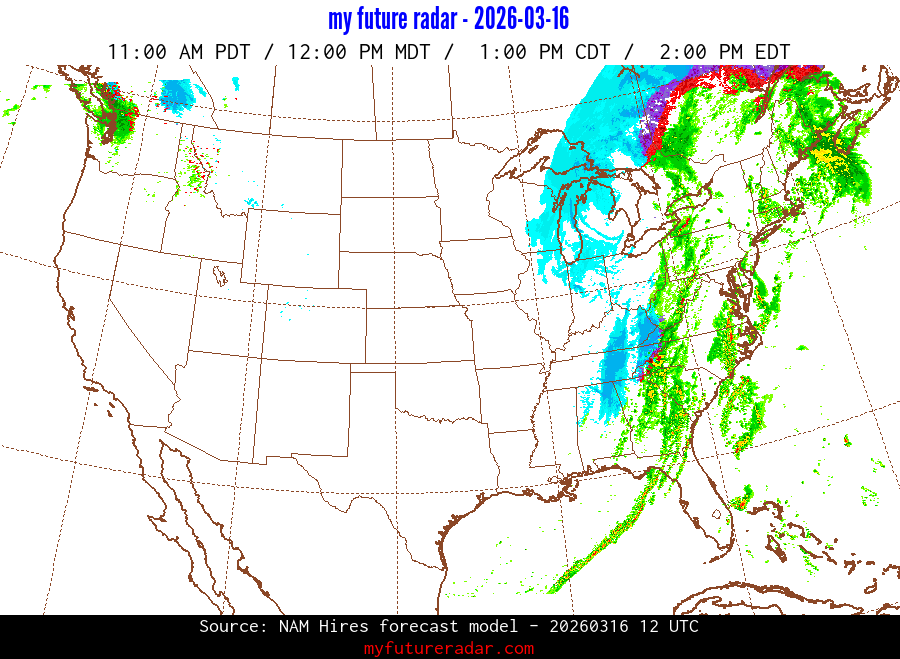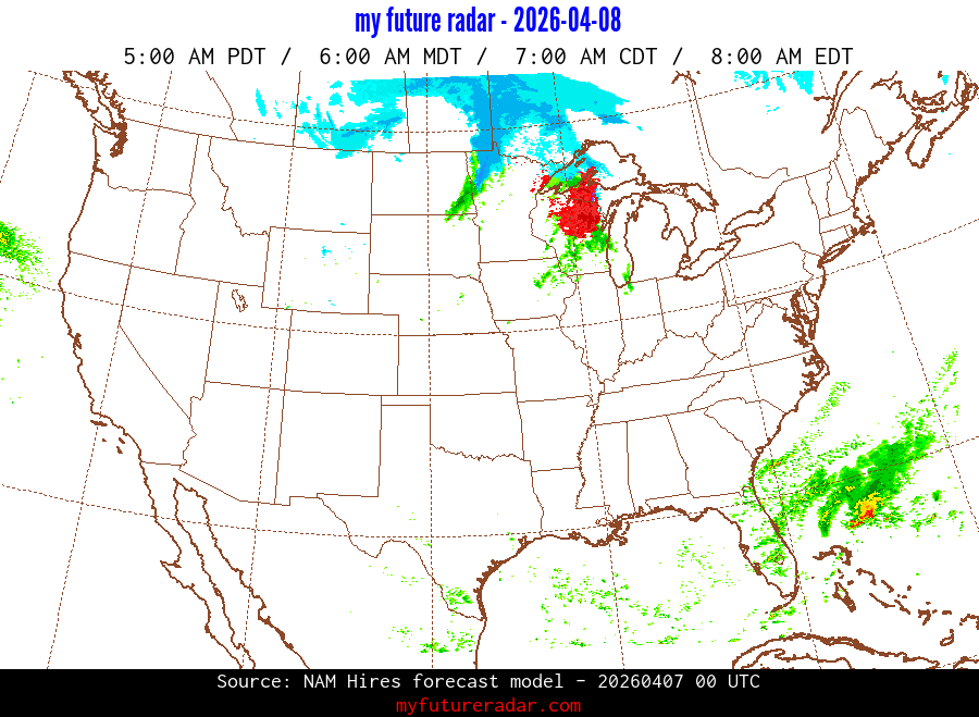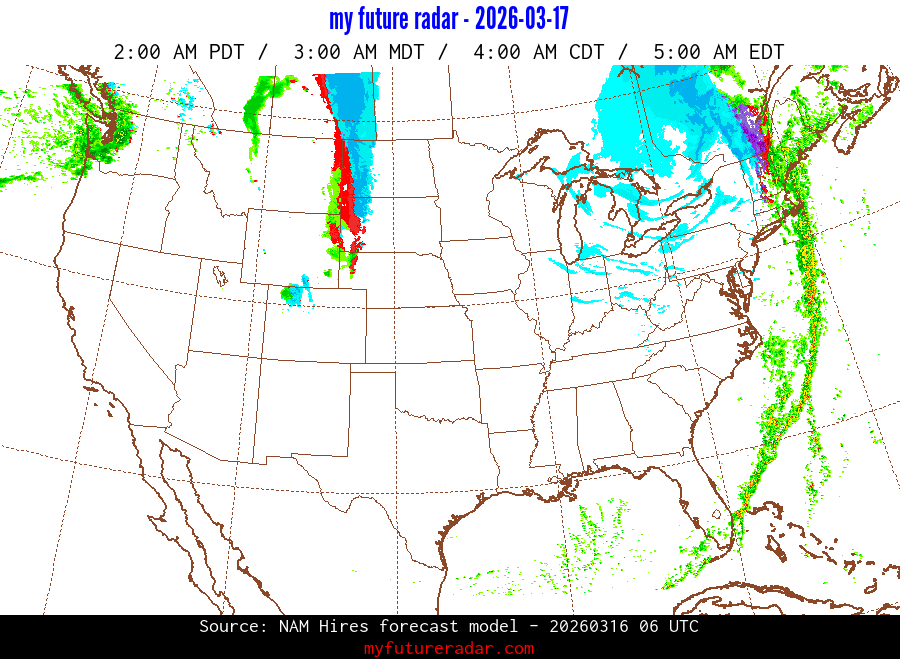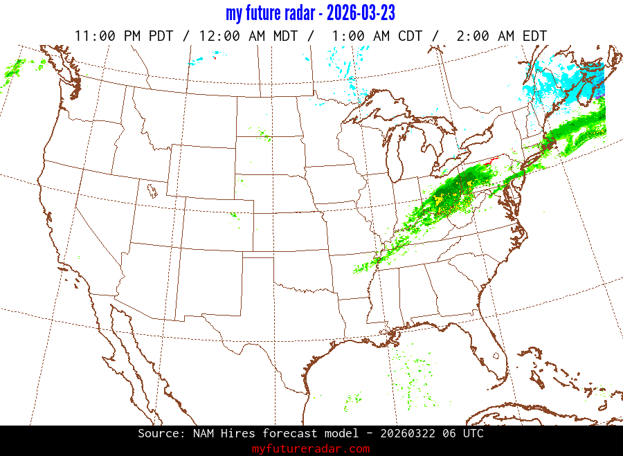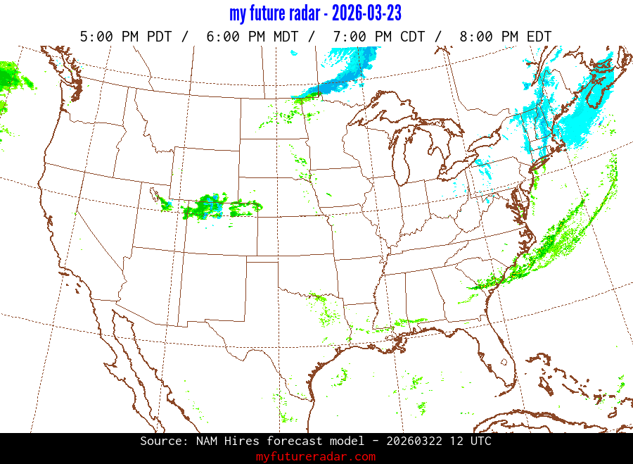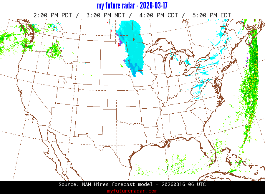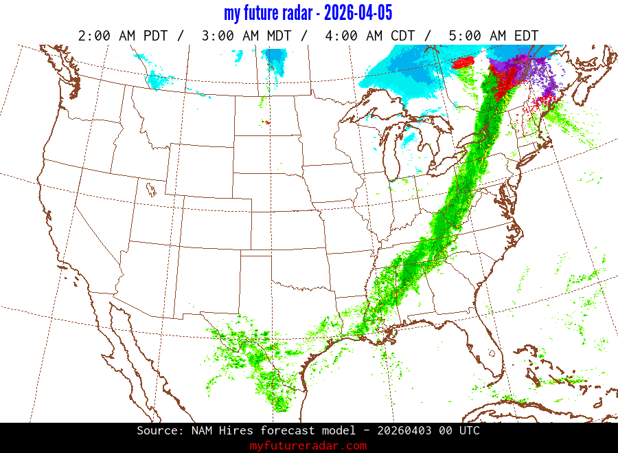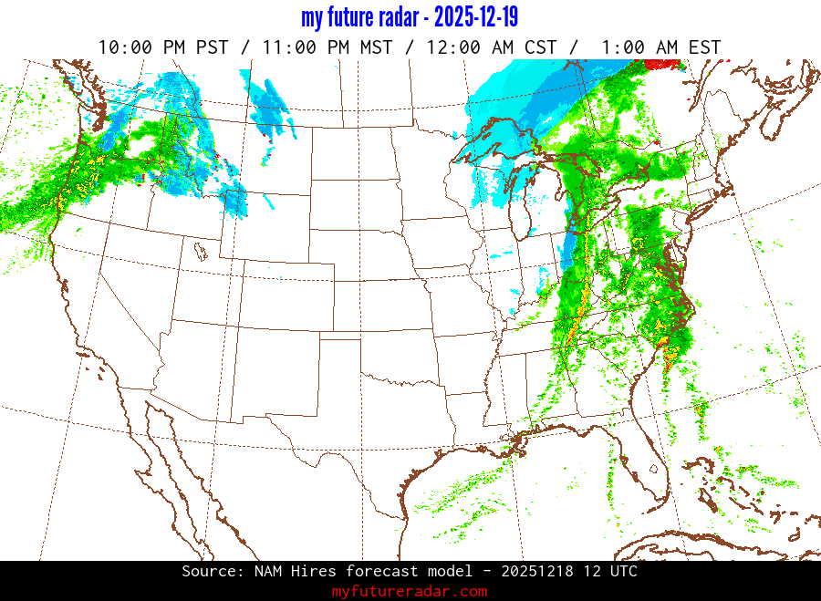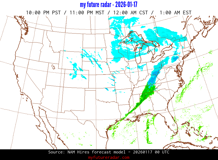 My Future Radar uses data from the Rapid Refresh and the NAM forecast models to provide simulated future radar imagery.