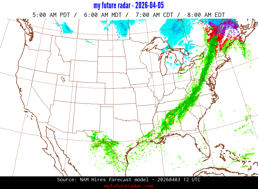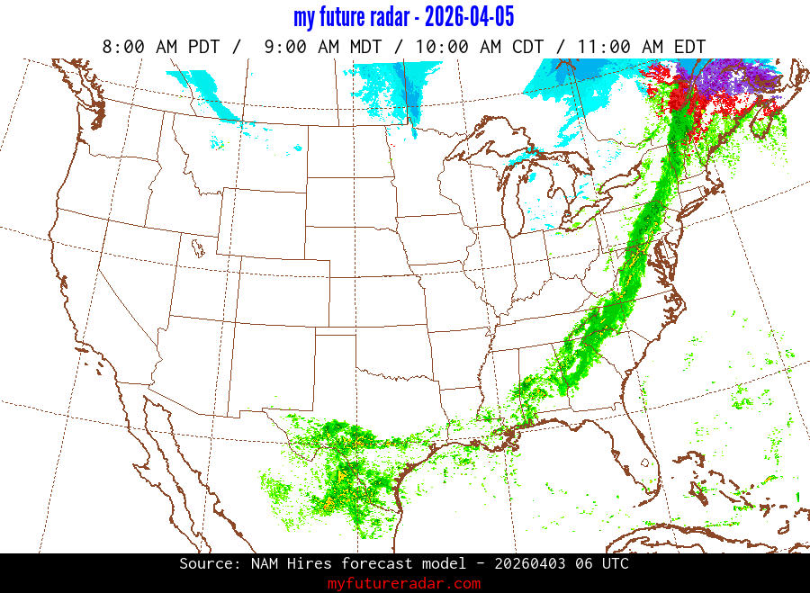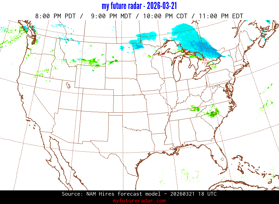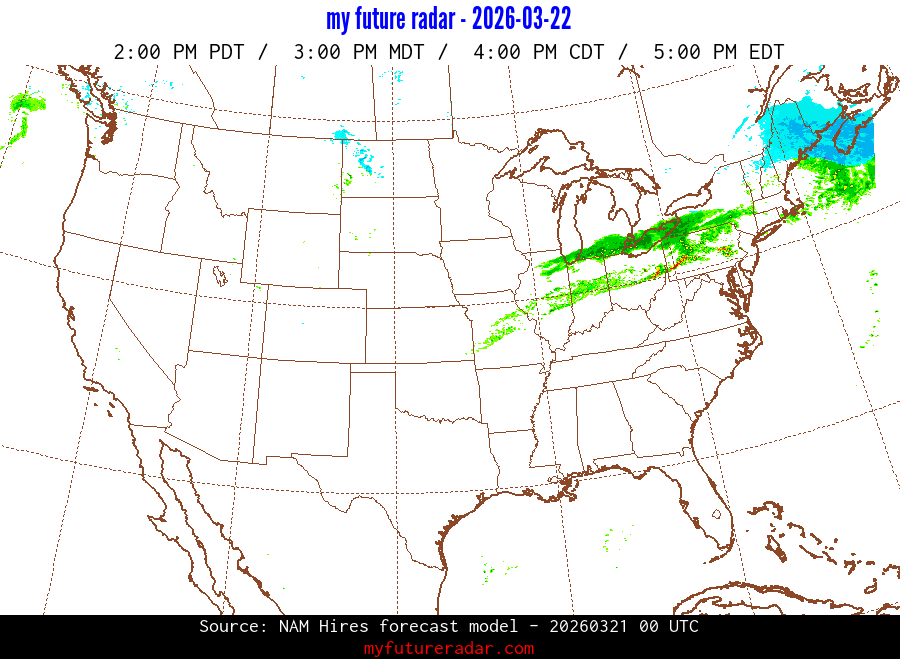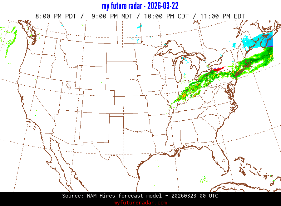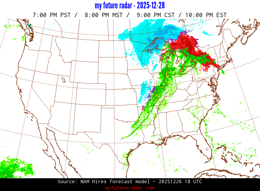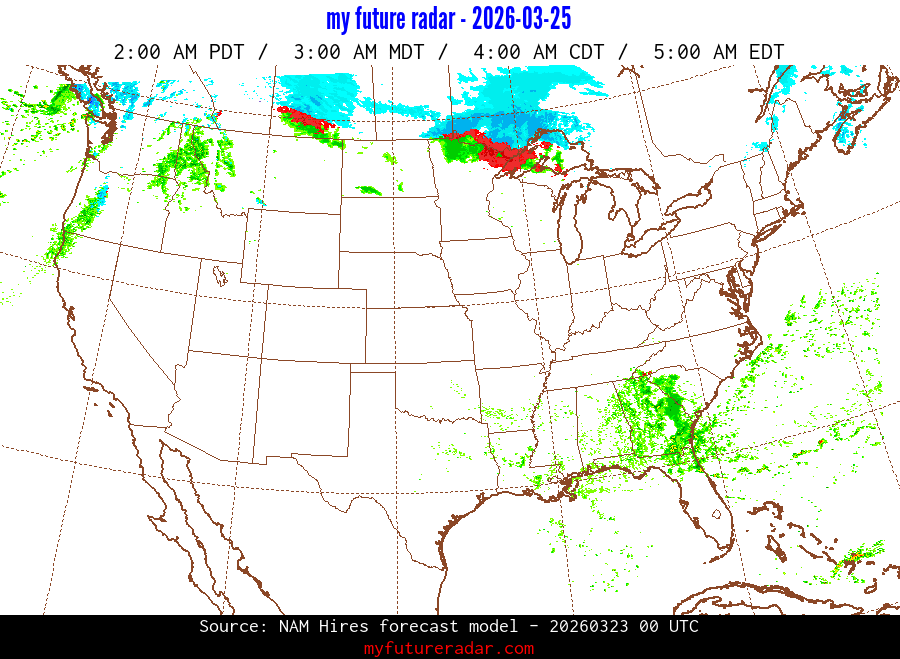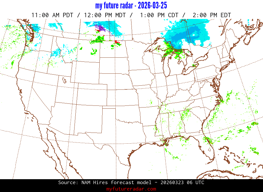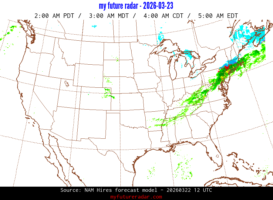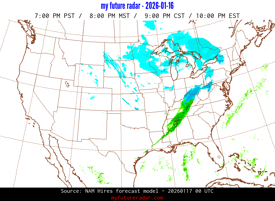 My Future Radar uses data from the Rapid Refresh and the NAM forecast models to provide simulated future radar imagery.