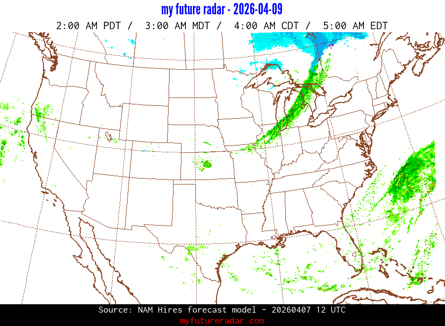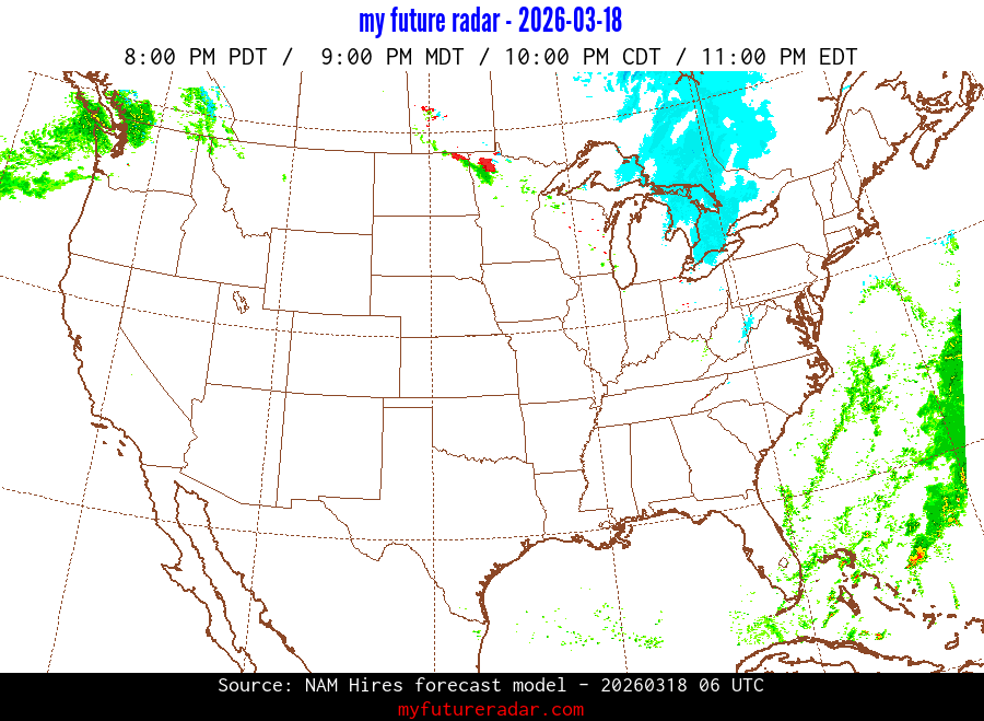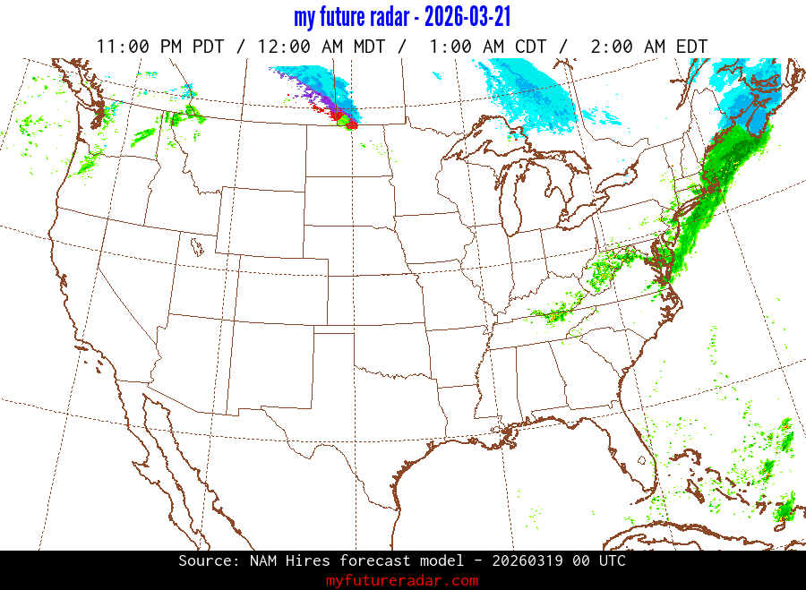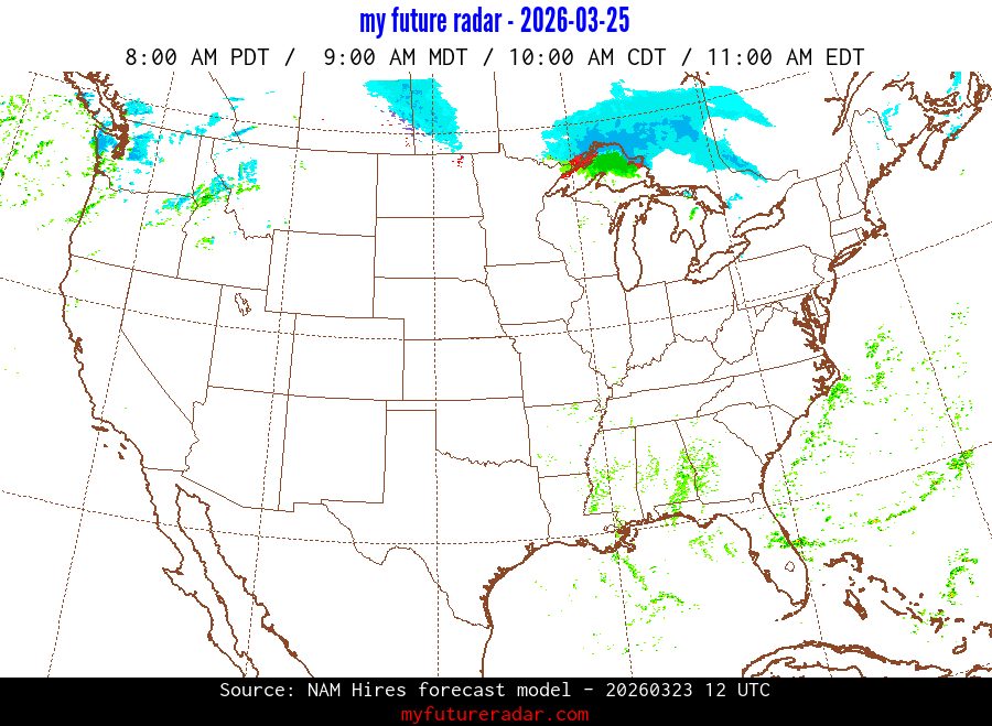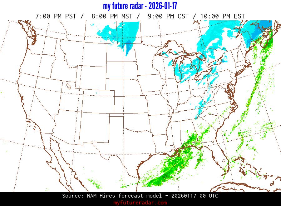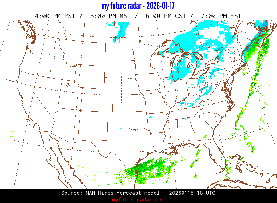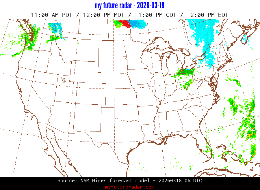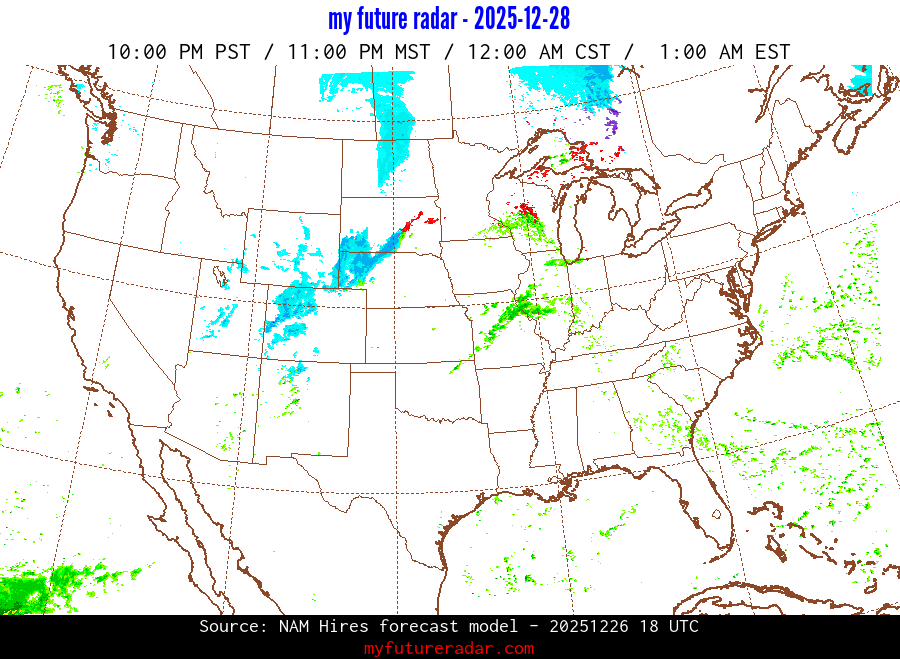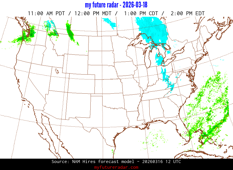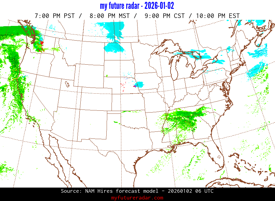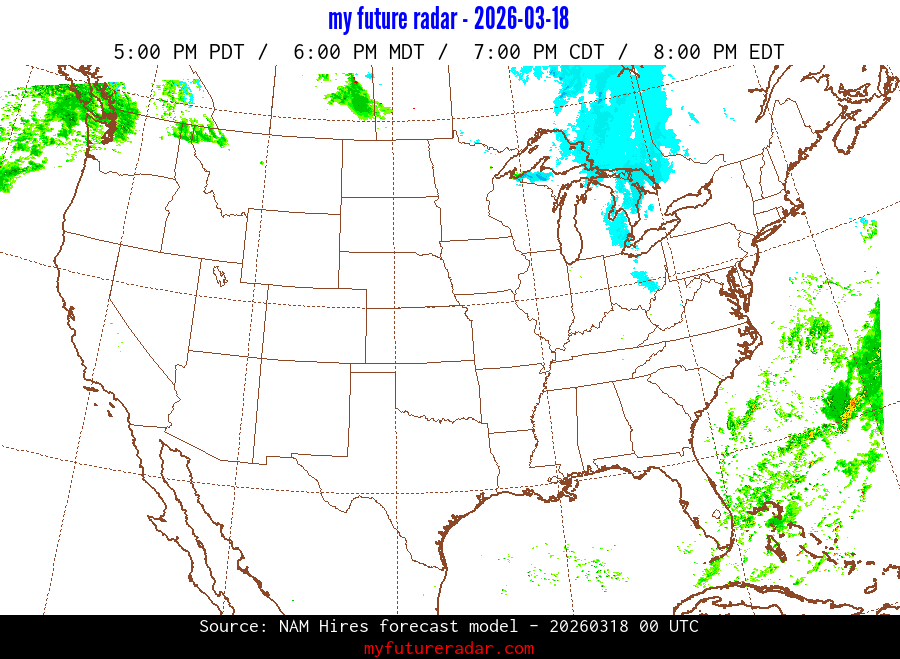 My Future Radar uses data from the Rapid Refresh and the NAM forecast models to provide simulated future radar imagery.
