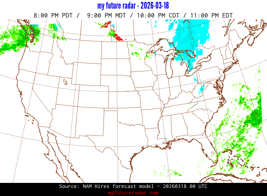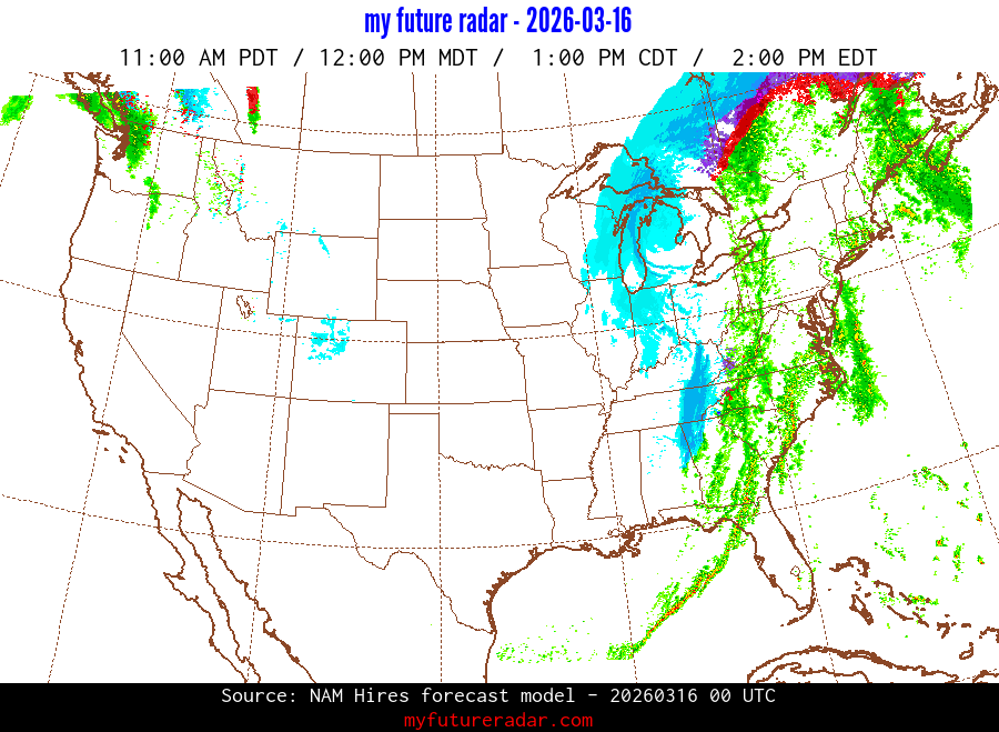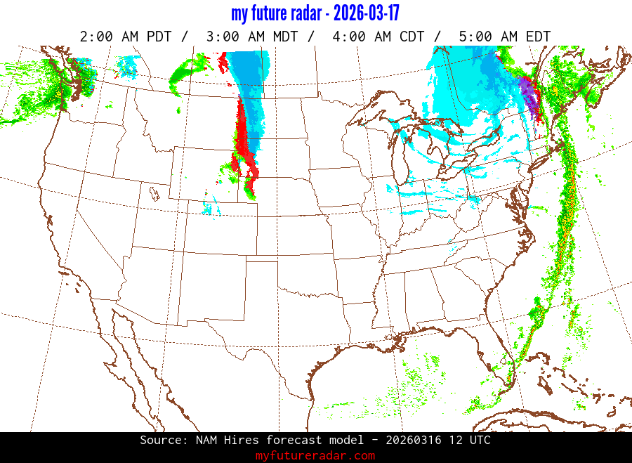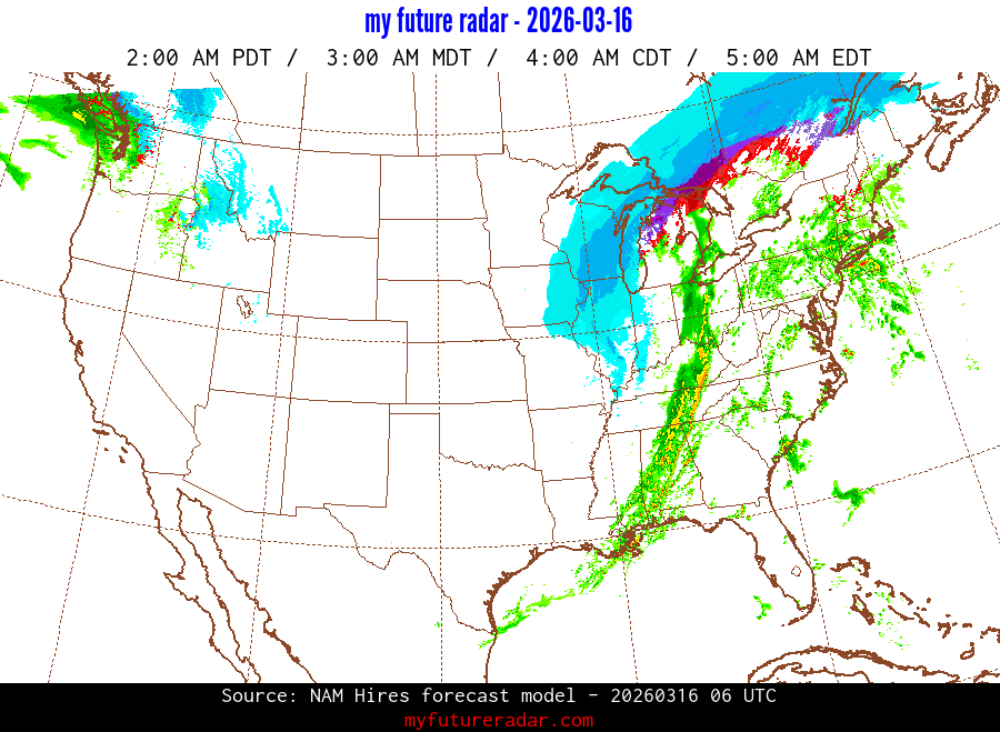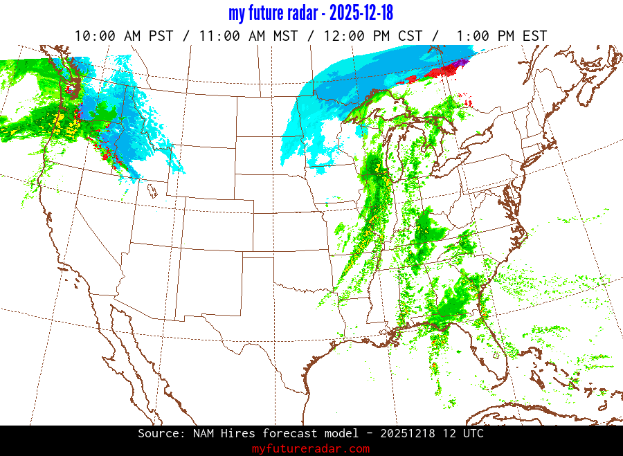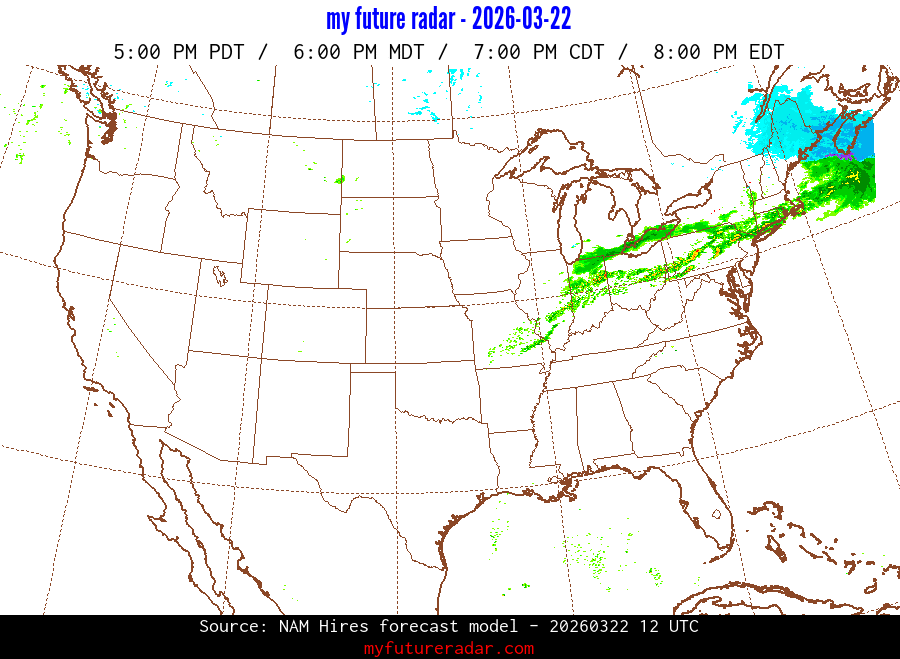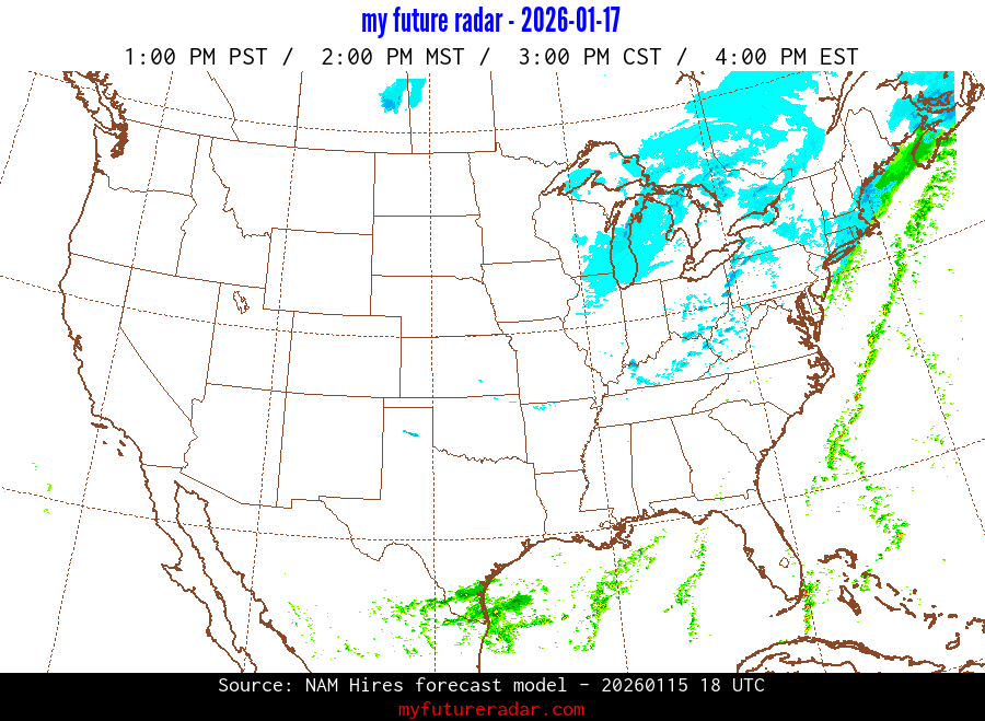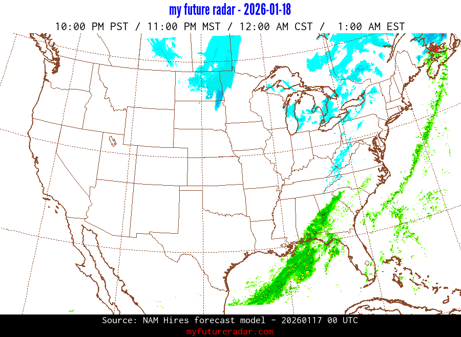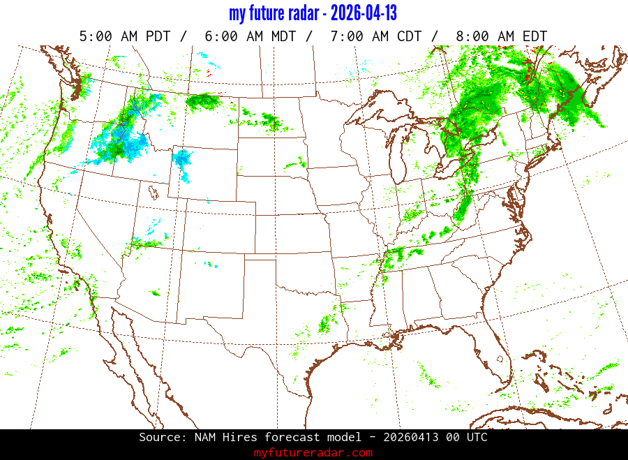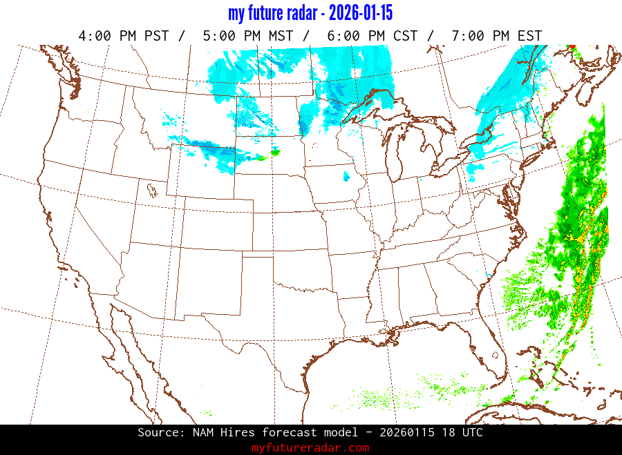My Future Radar uses data from the Rapid Refresh and the NAM forecast models to provide simulated future radar imagery.