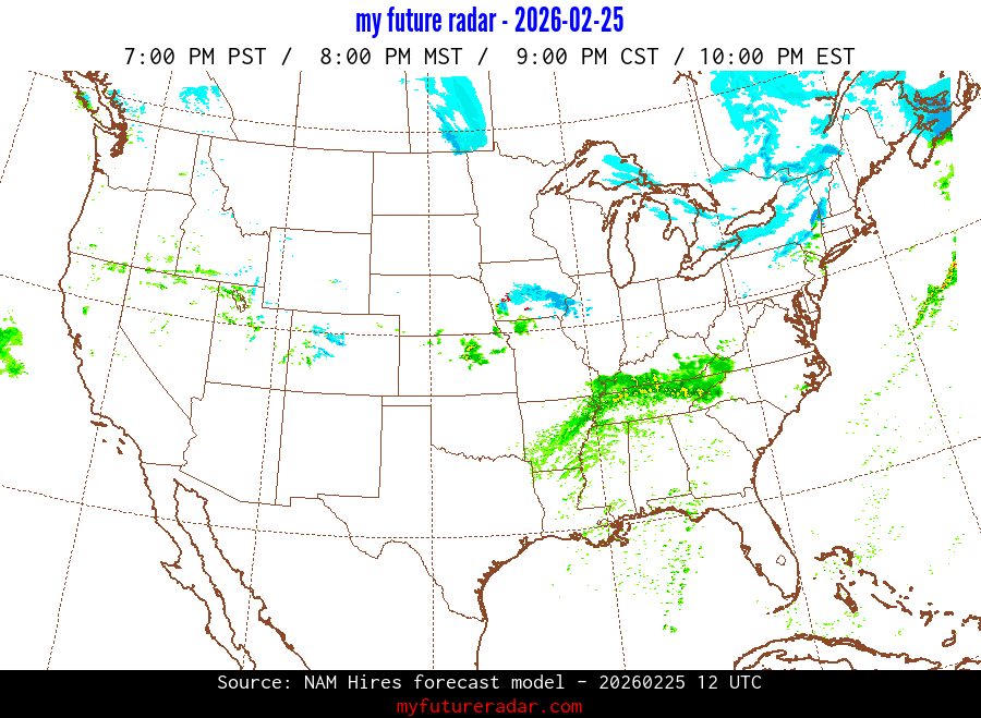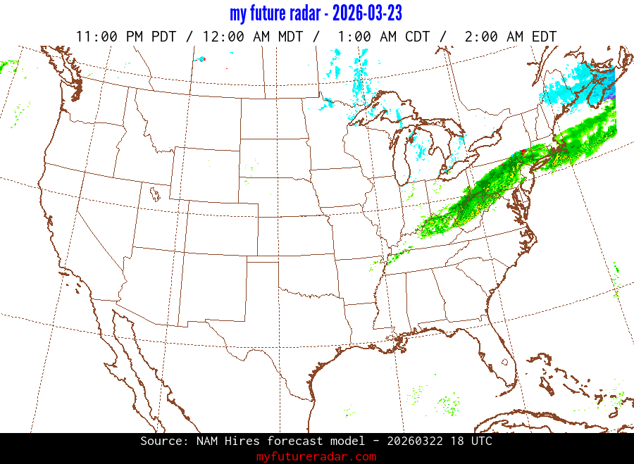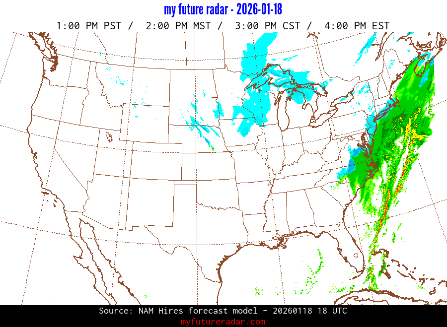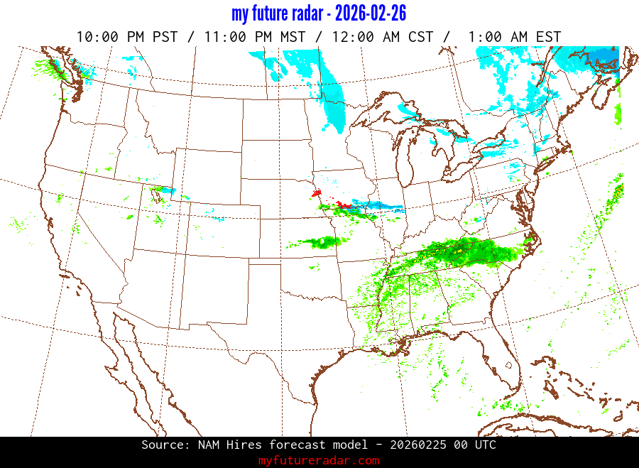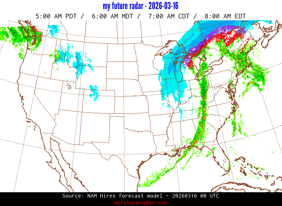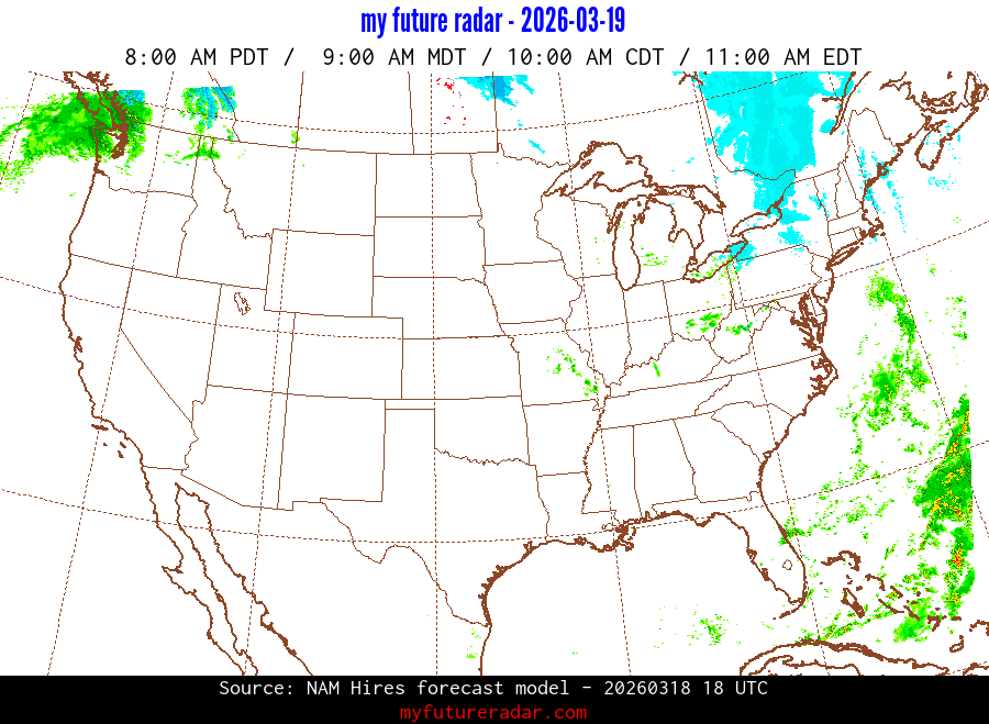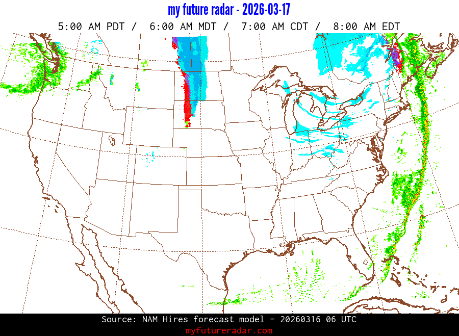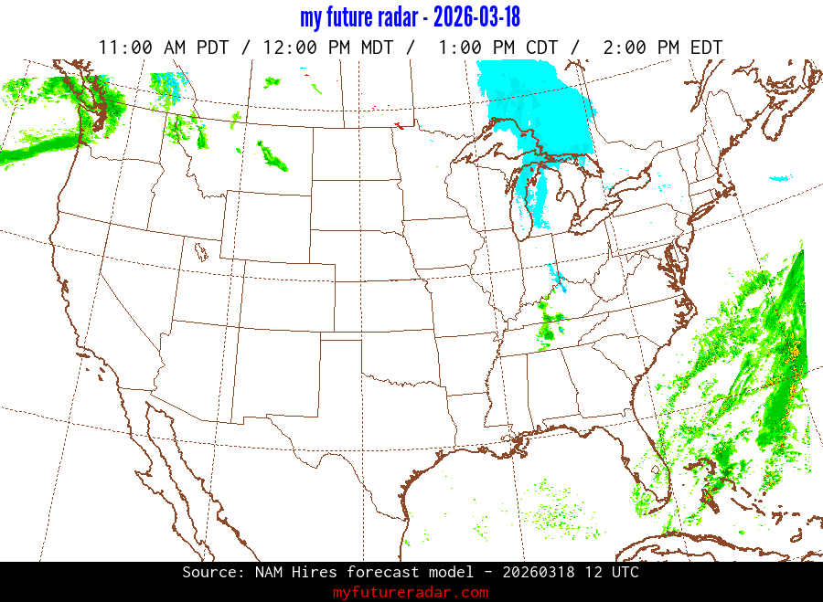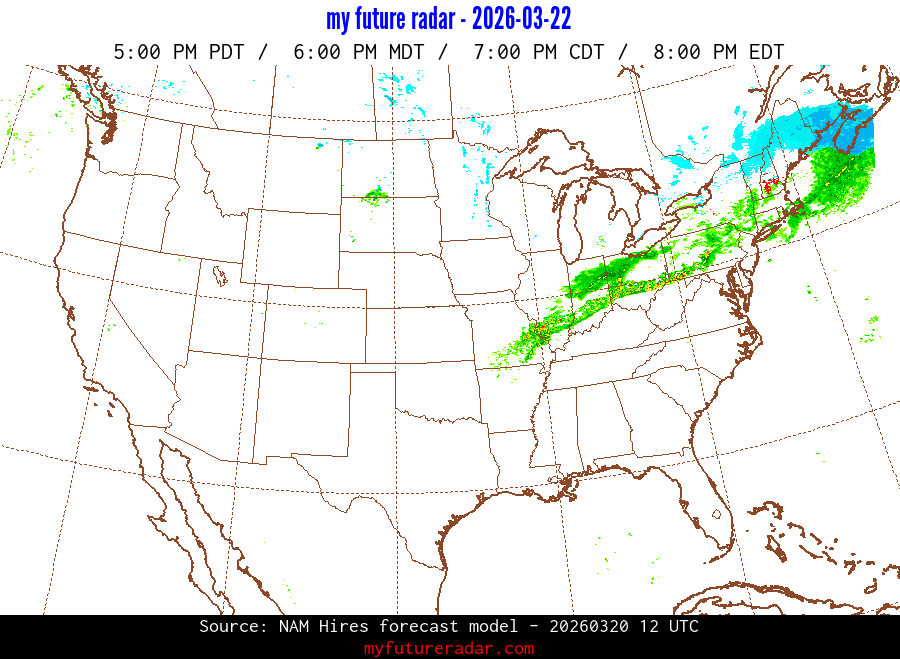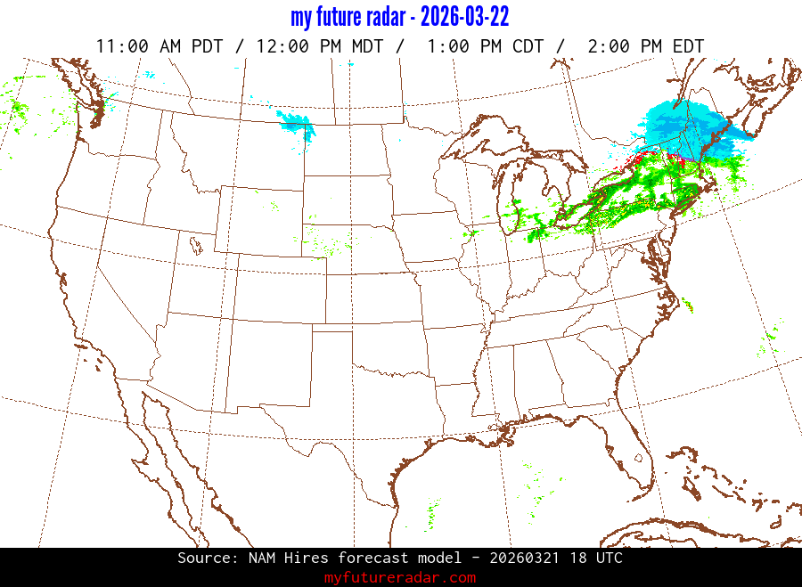 My Future Radar uses data from the Rapid Refresh and the NAM forecast models to provide simulated future radar imagery.