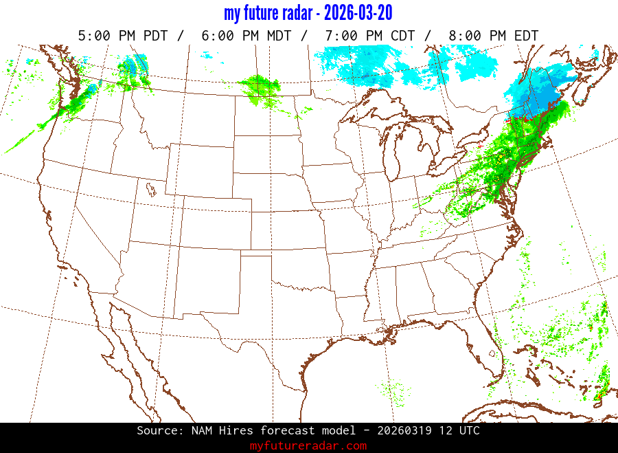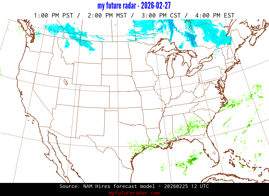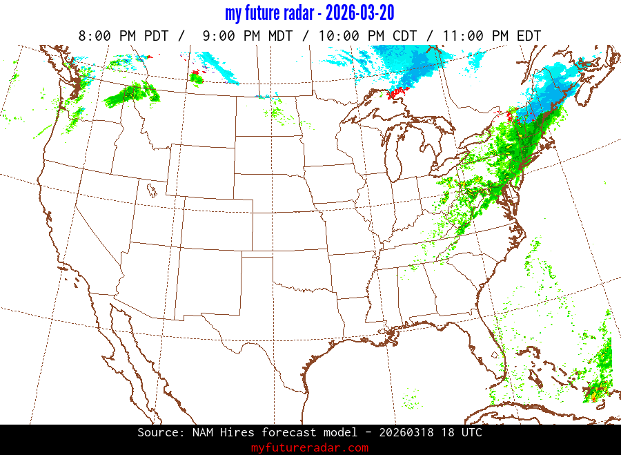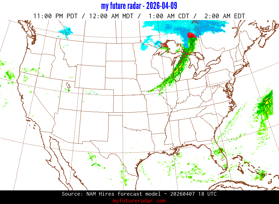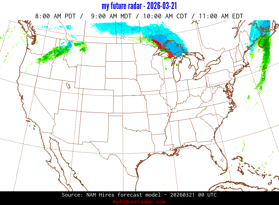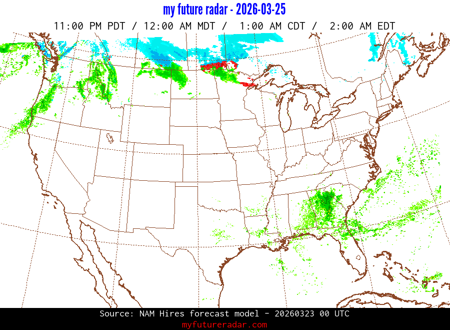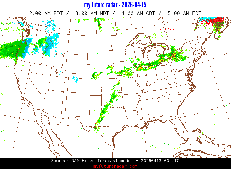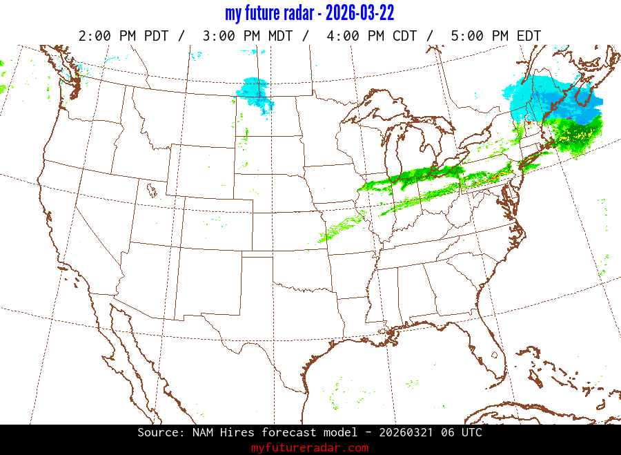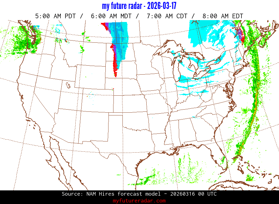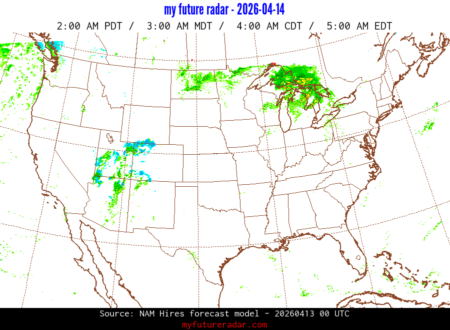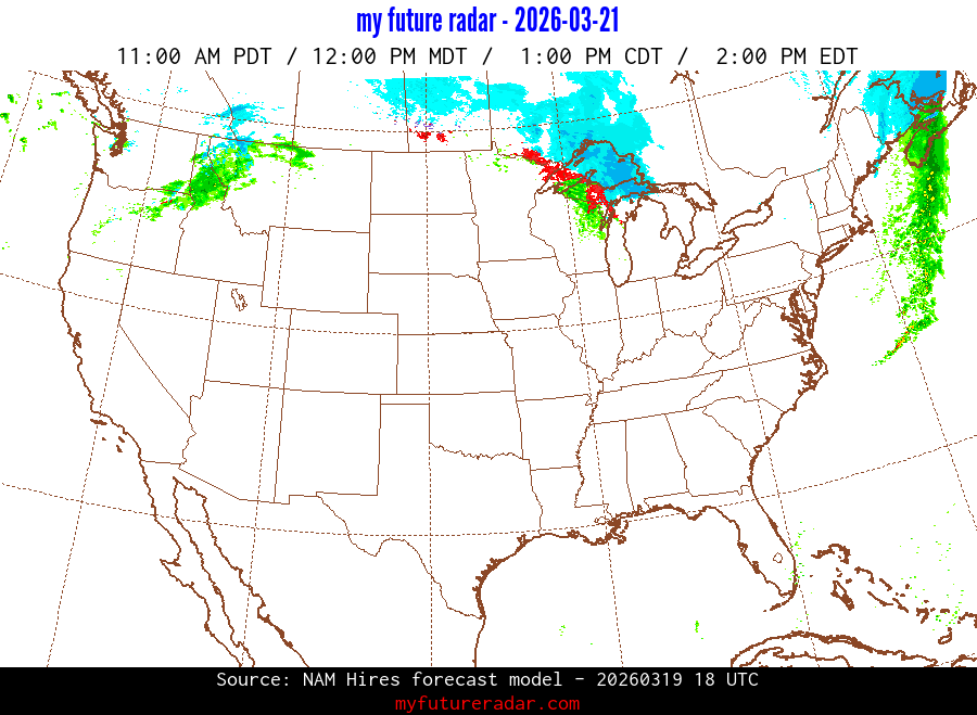 My Future Radar uses data from the Rapid Refresh and the NAM forecast models to provide simulated future radar imagery.