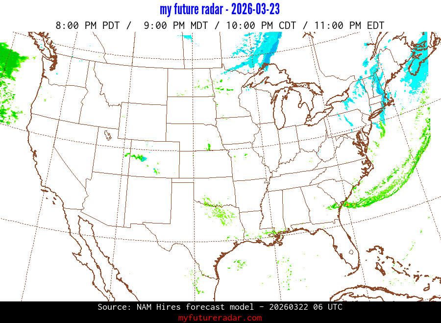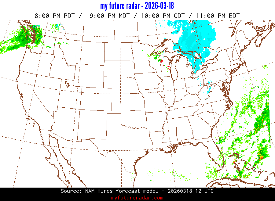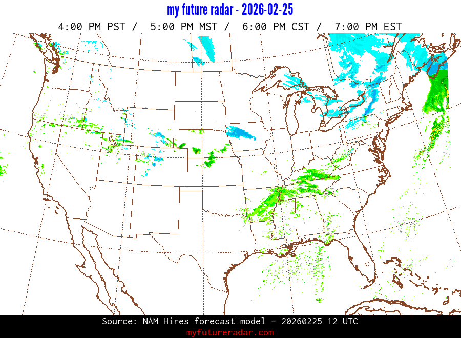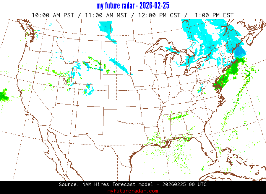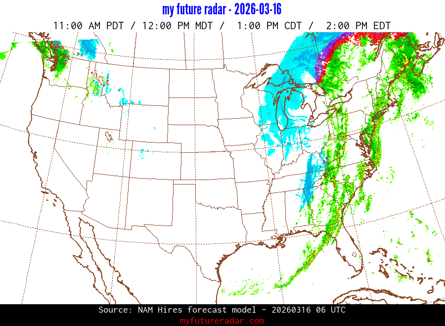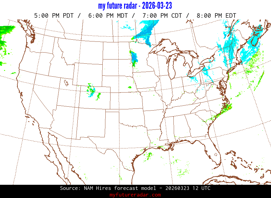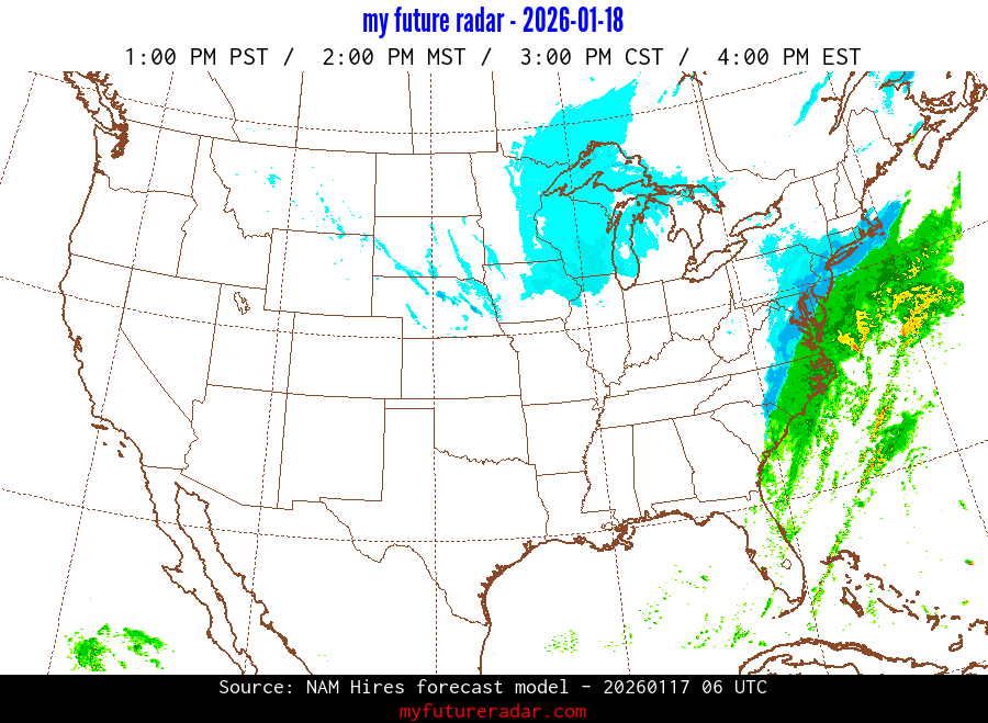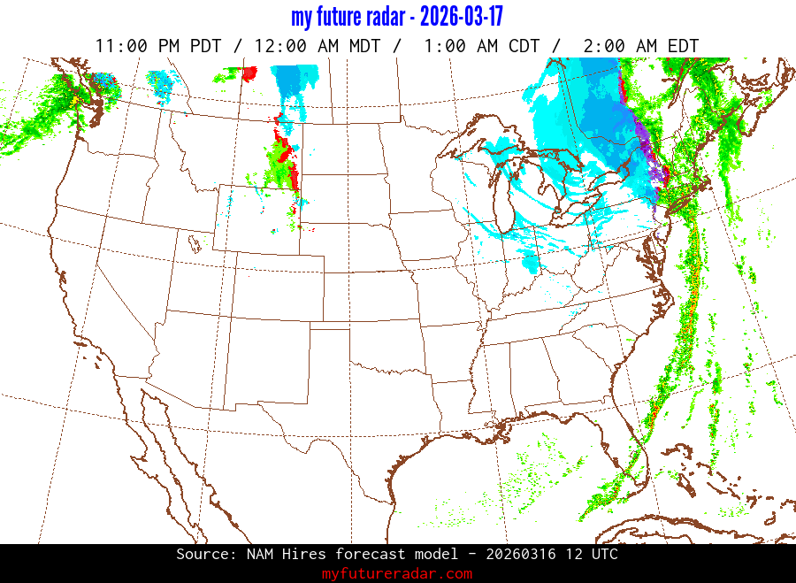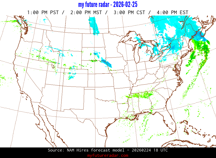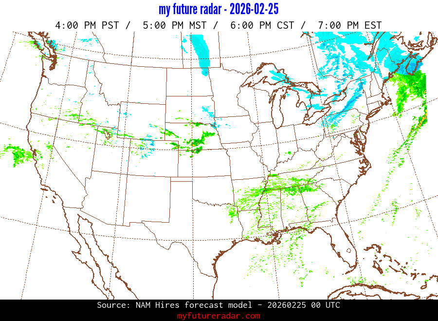 My Future Radar uses data from the Rapid Refresh and the NAM forecast models to provide simulated future radar imagery.