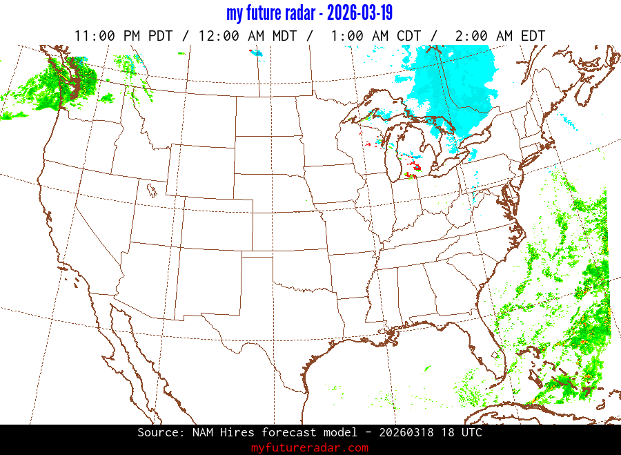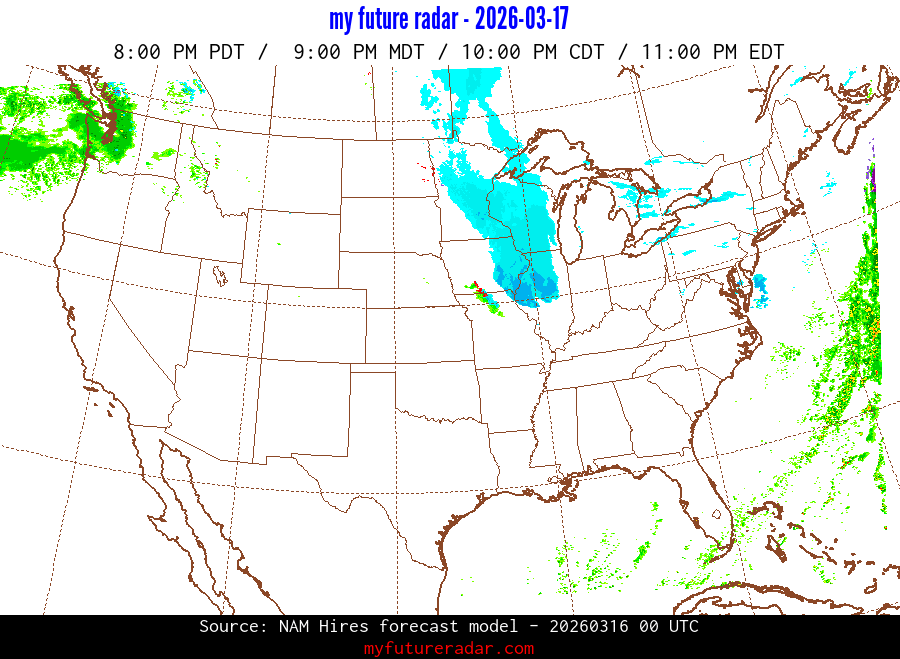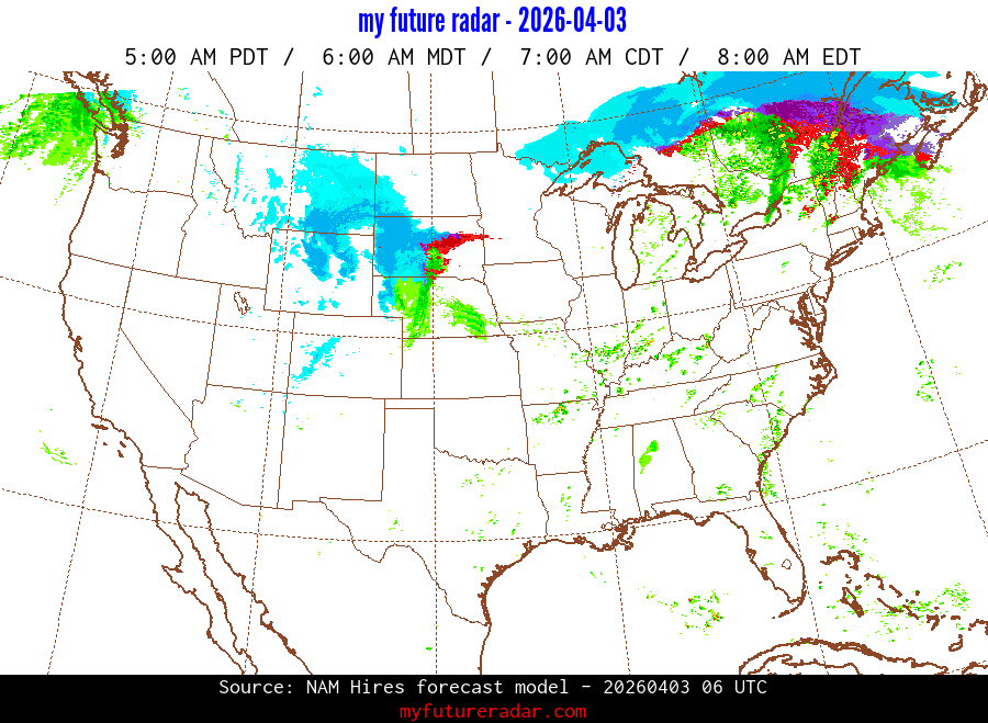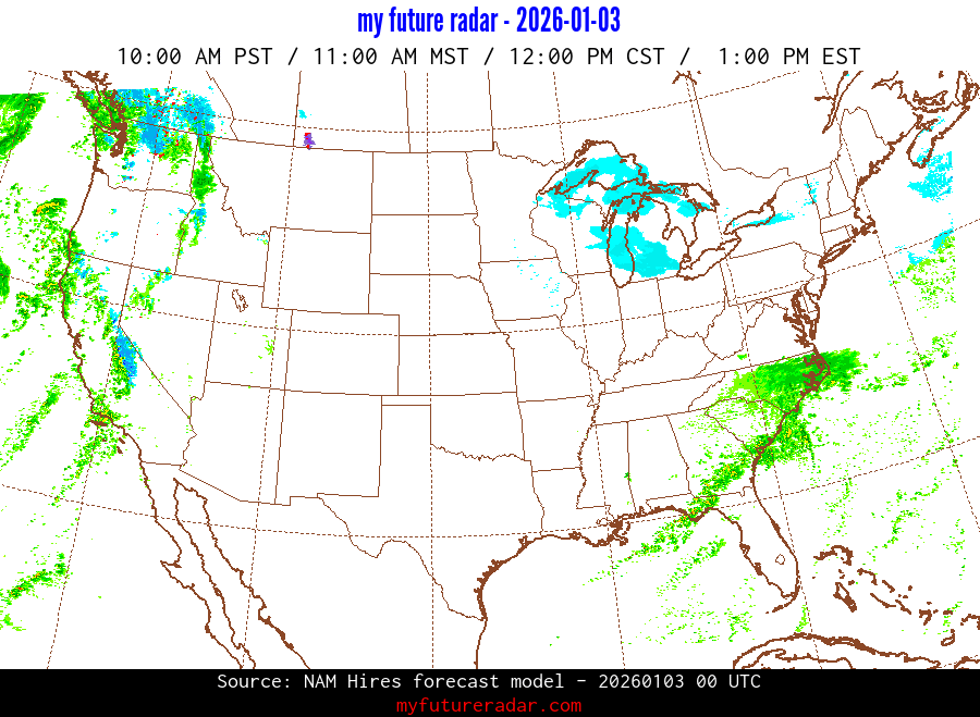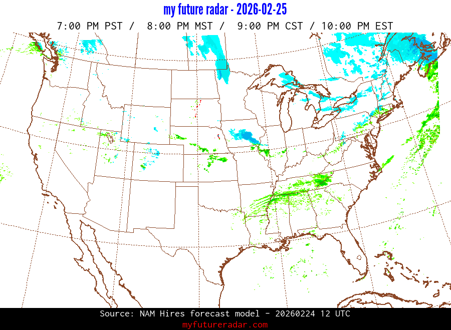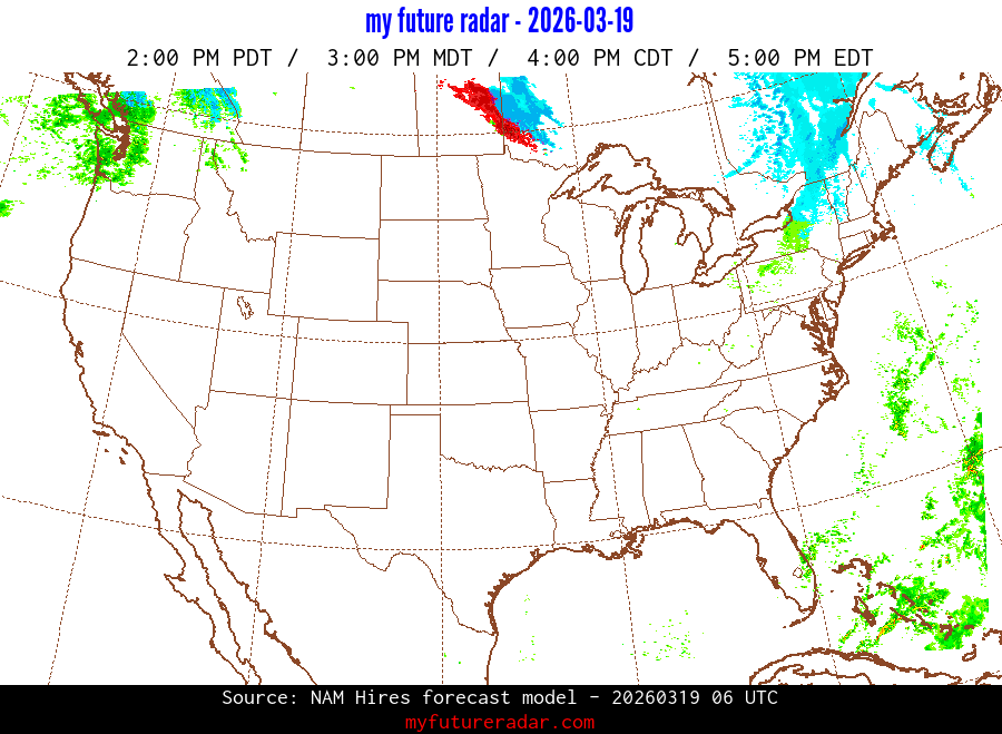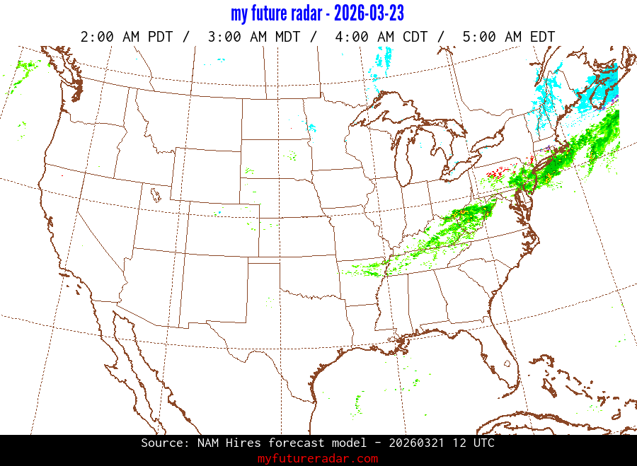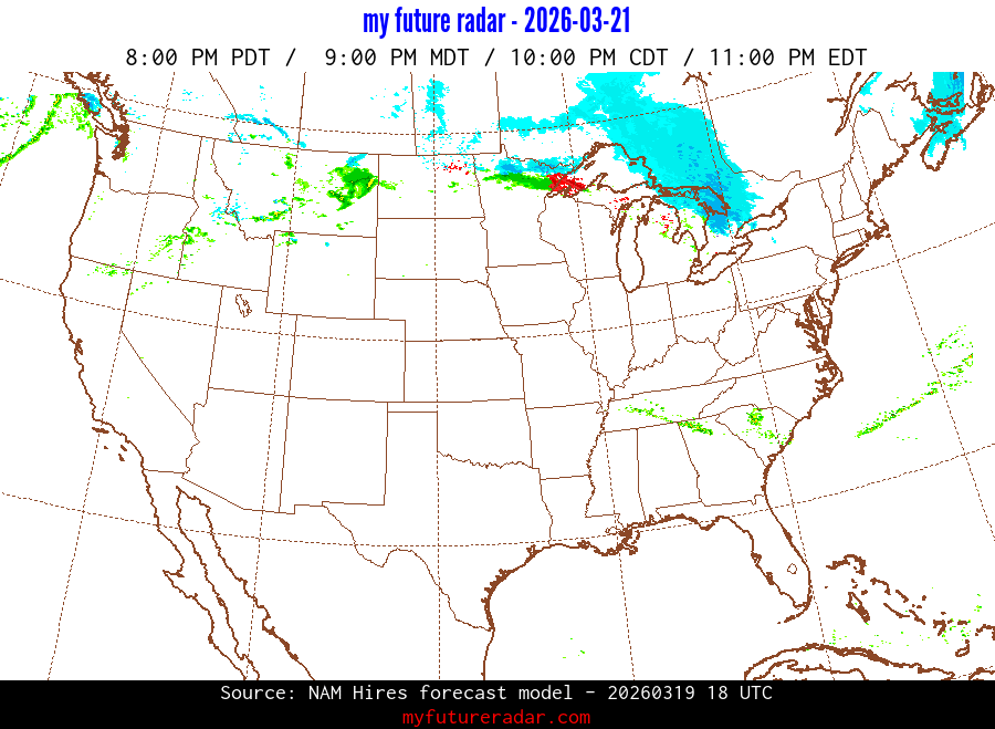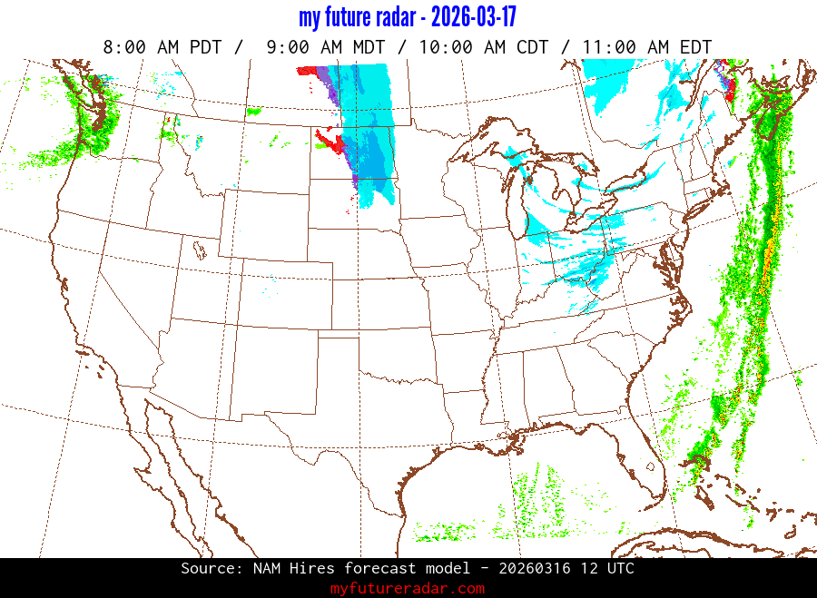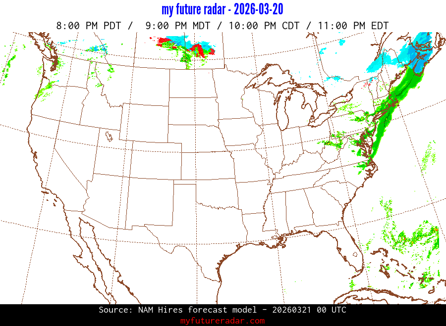 My Future Radar uses data from the Rapid Refresh and the NAM forecast models to provide simulated future radar imagery.