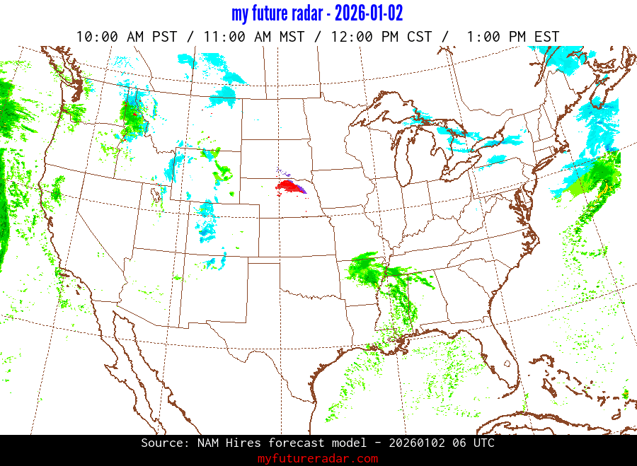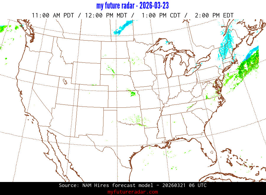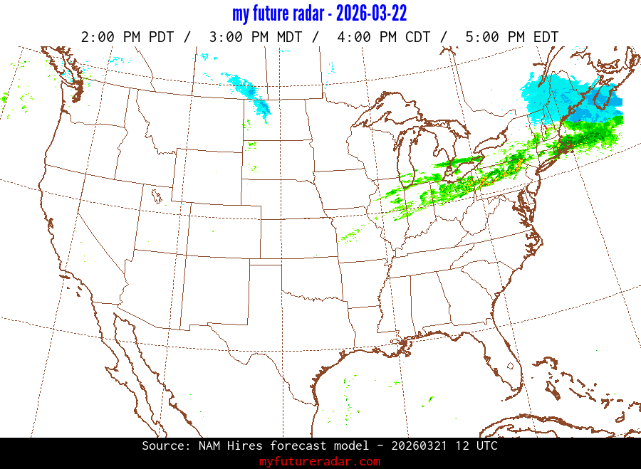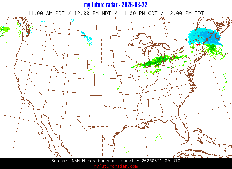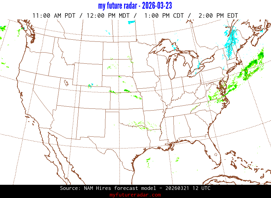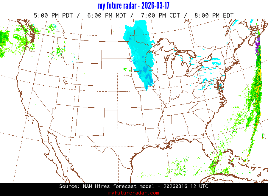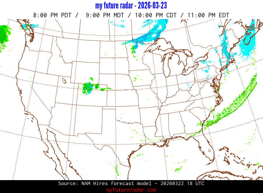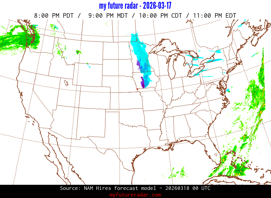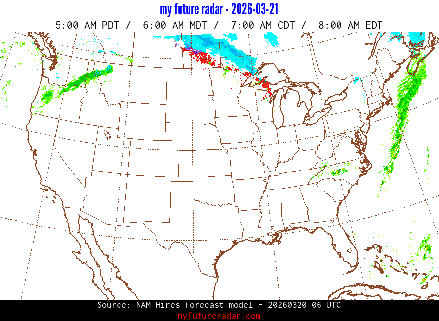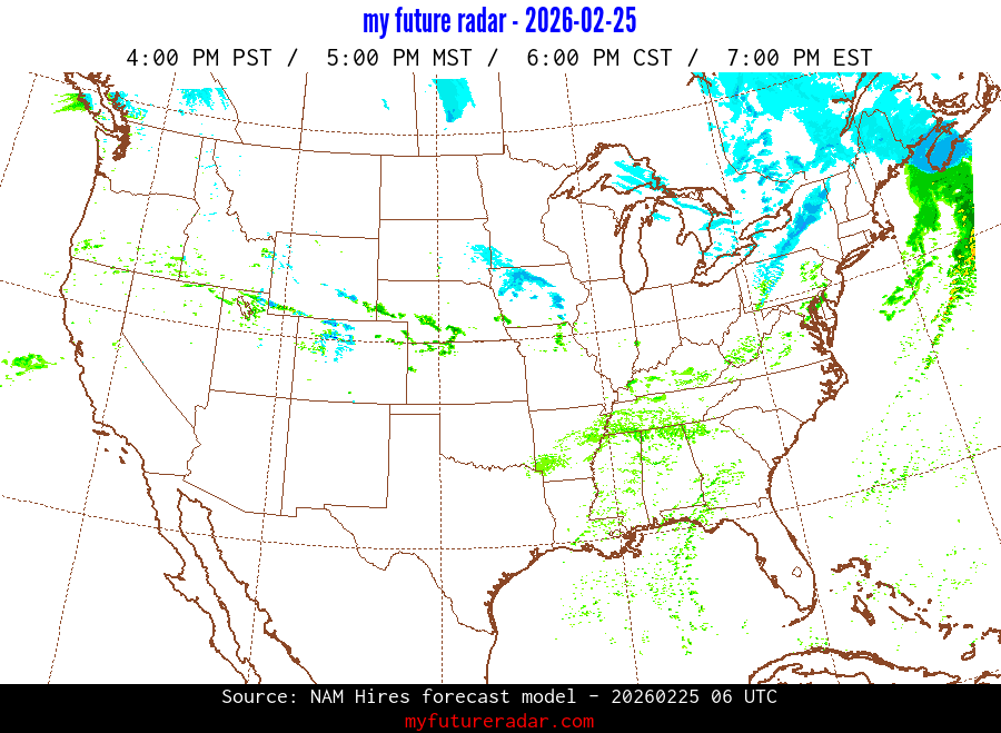 My Future Radar uses data from the Rapid Refresh and the NAM forecast models to provide simulated future radar imagery.