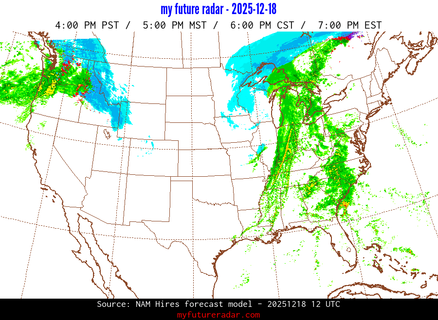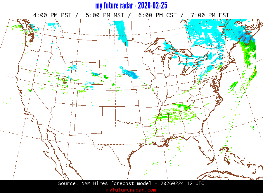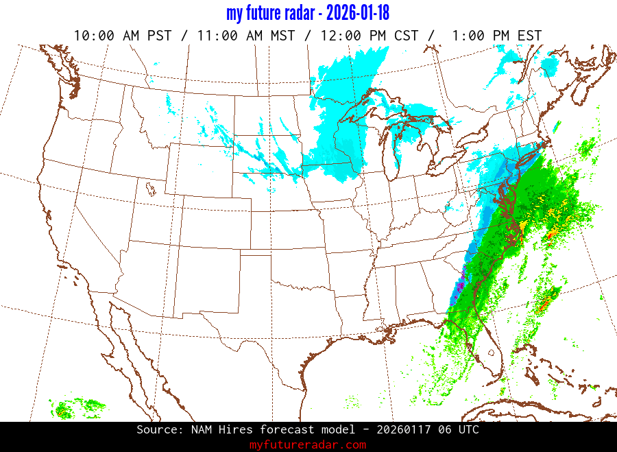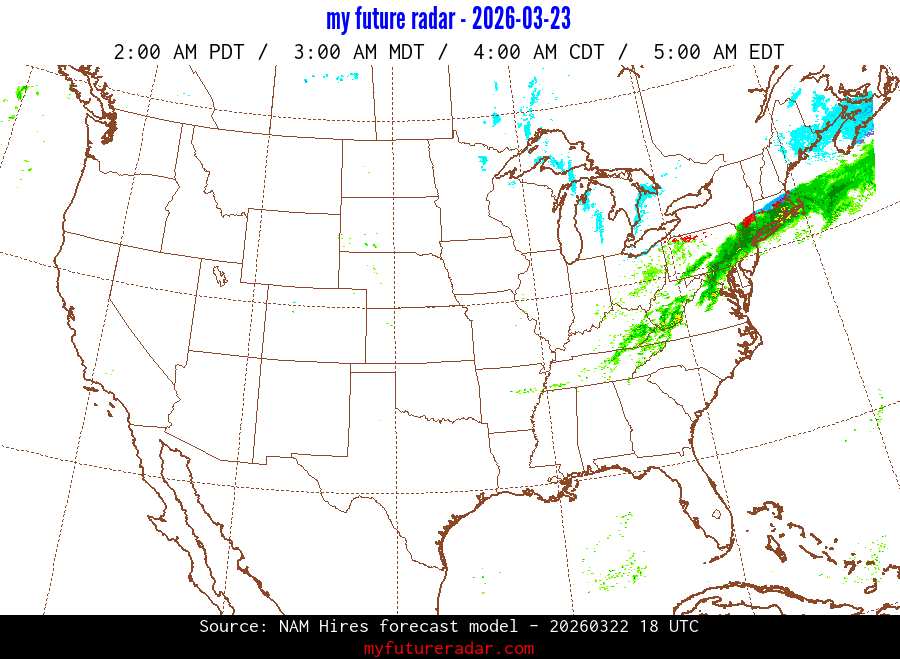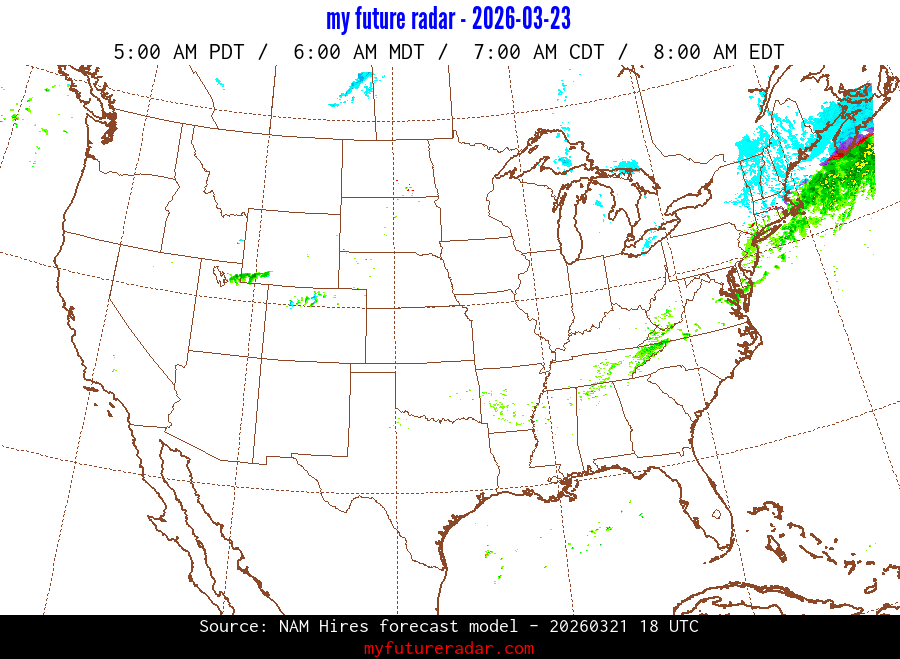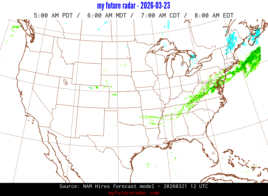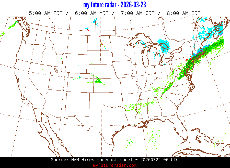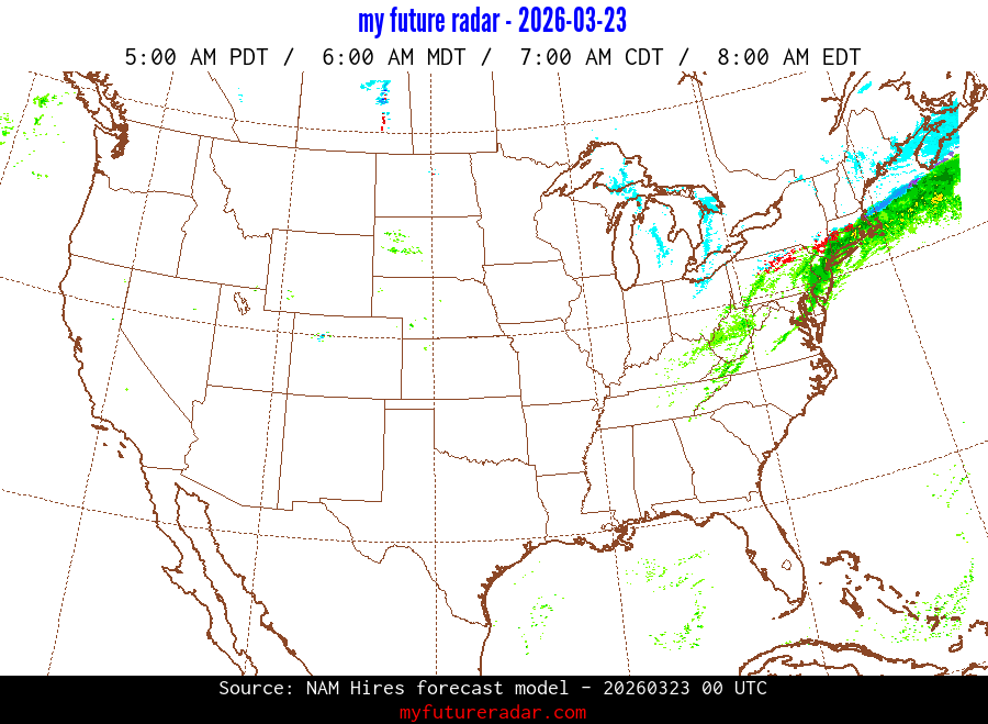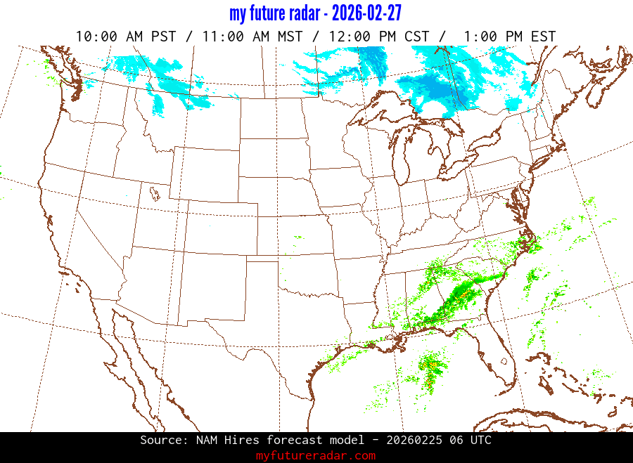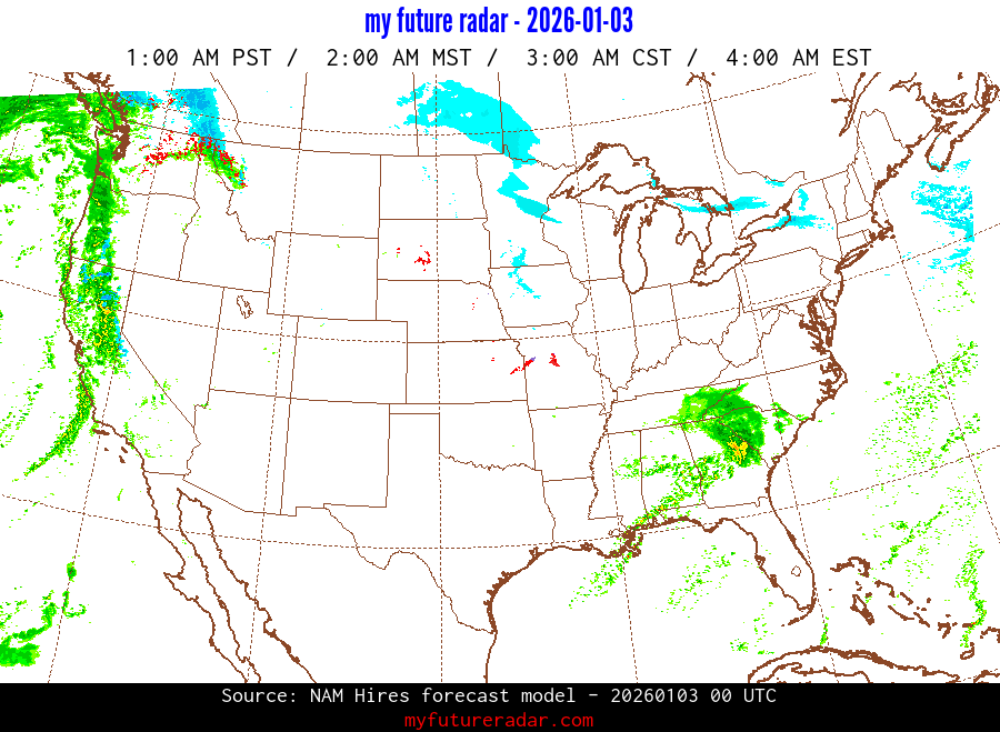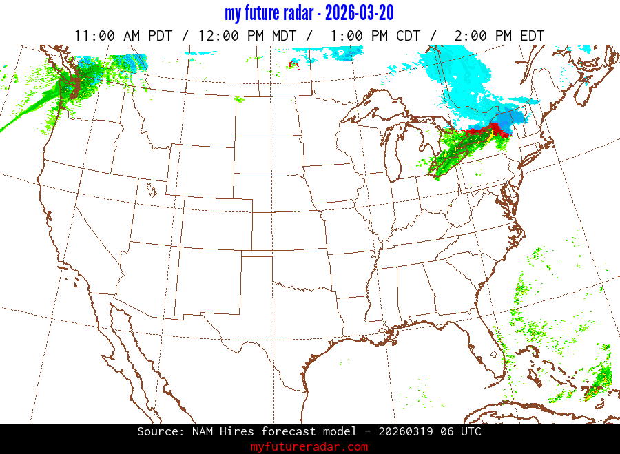 My Future Radar uses data from the Rapid Refresh and the NAM forecast models to provide simulated future radar imagery.