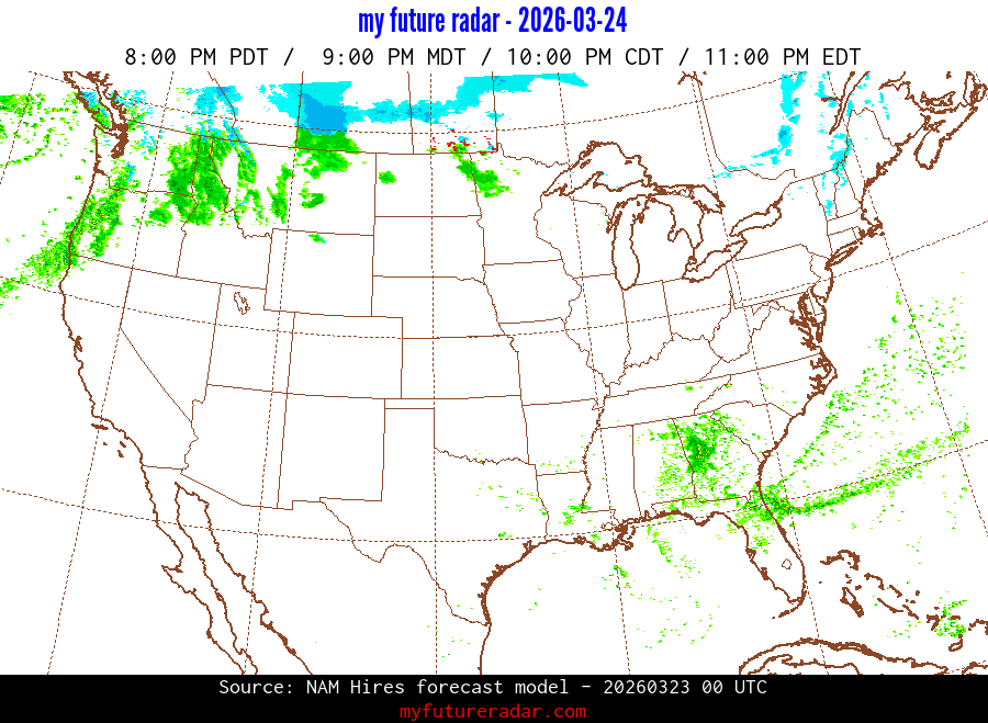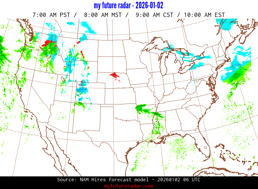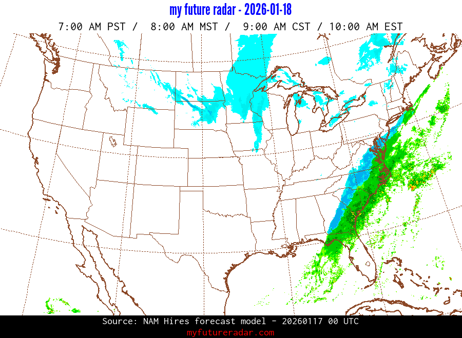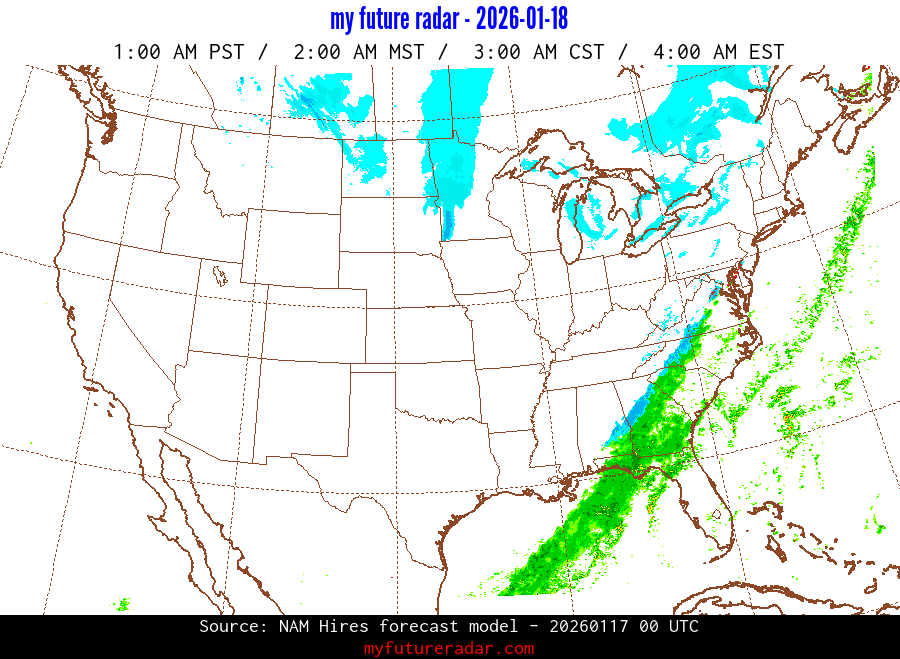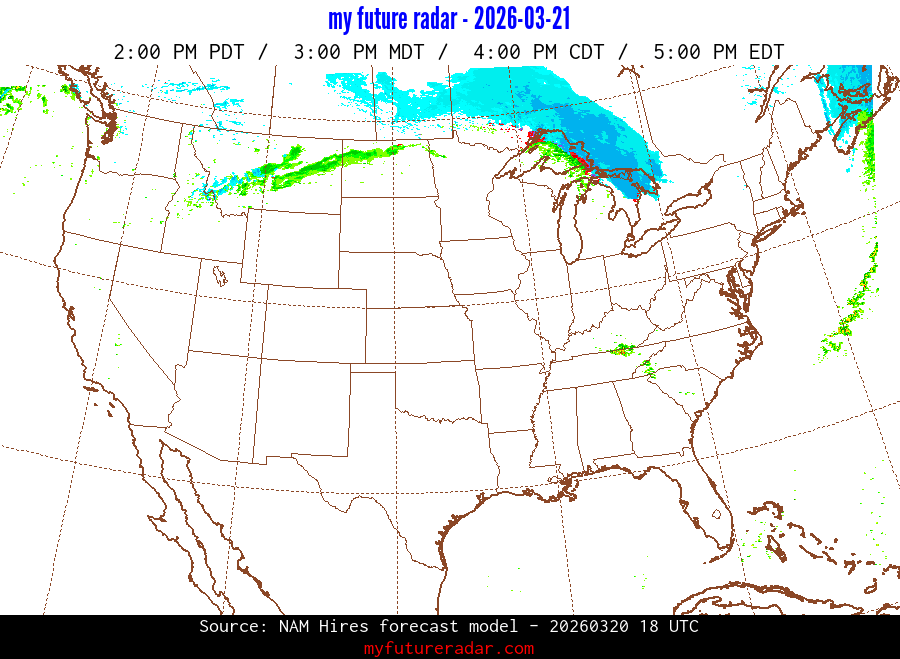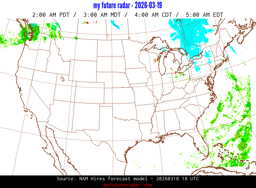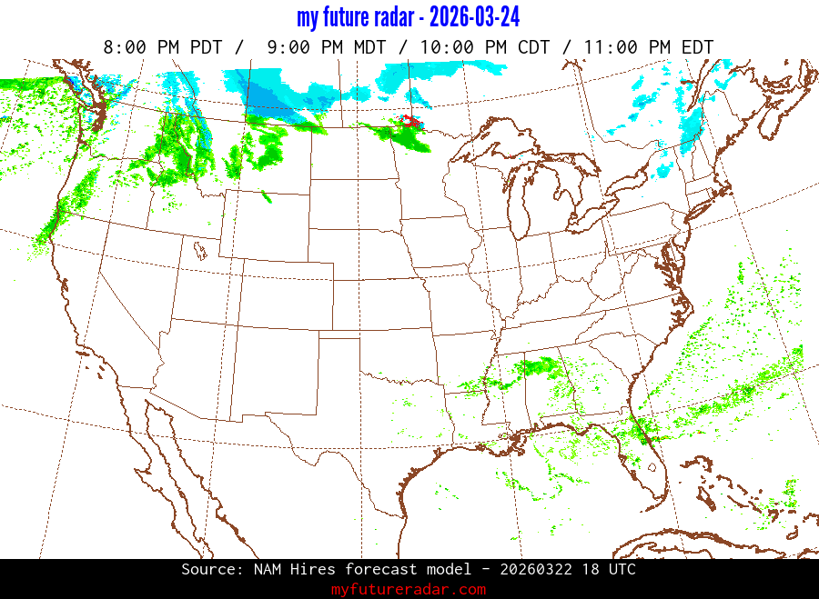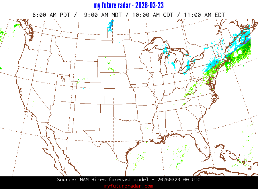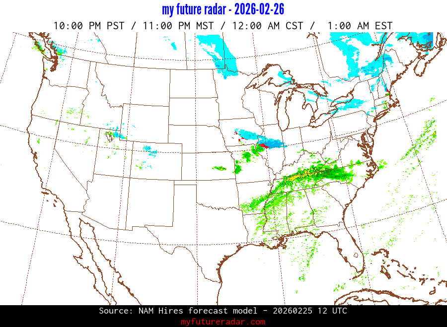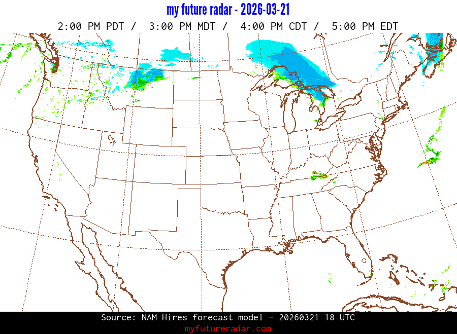 My Future Radar uses data from the Rapid Refresh and the NAM forecast models to provide simulated future radar imagery.