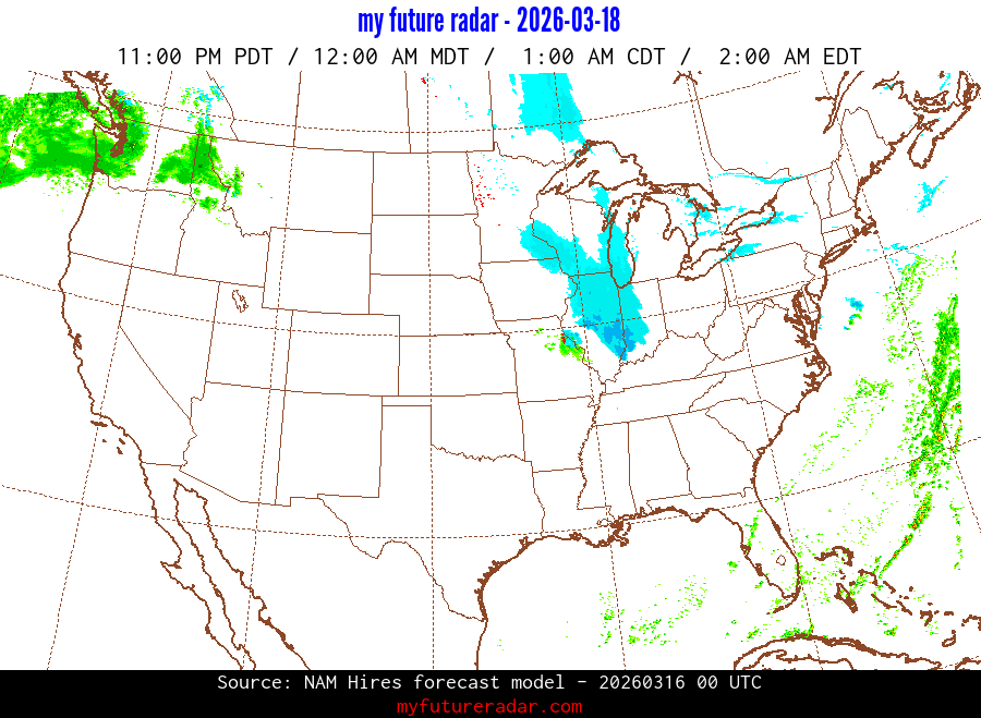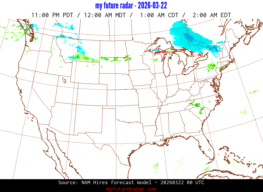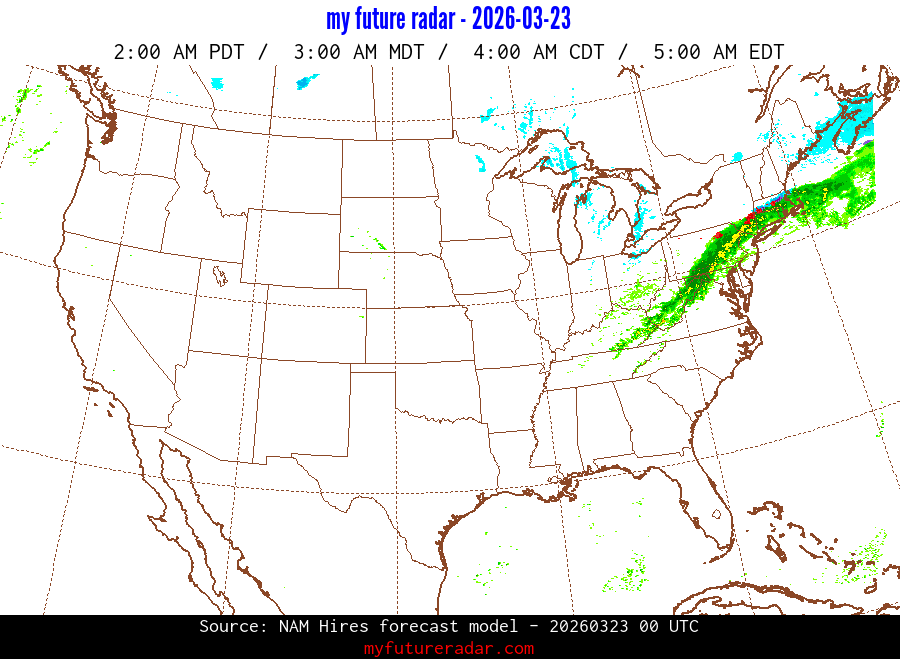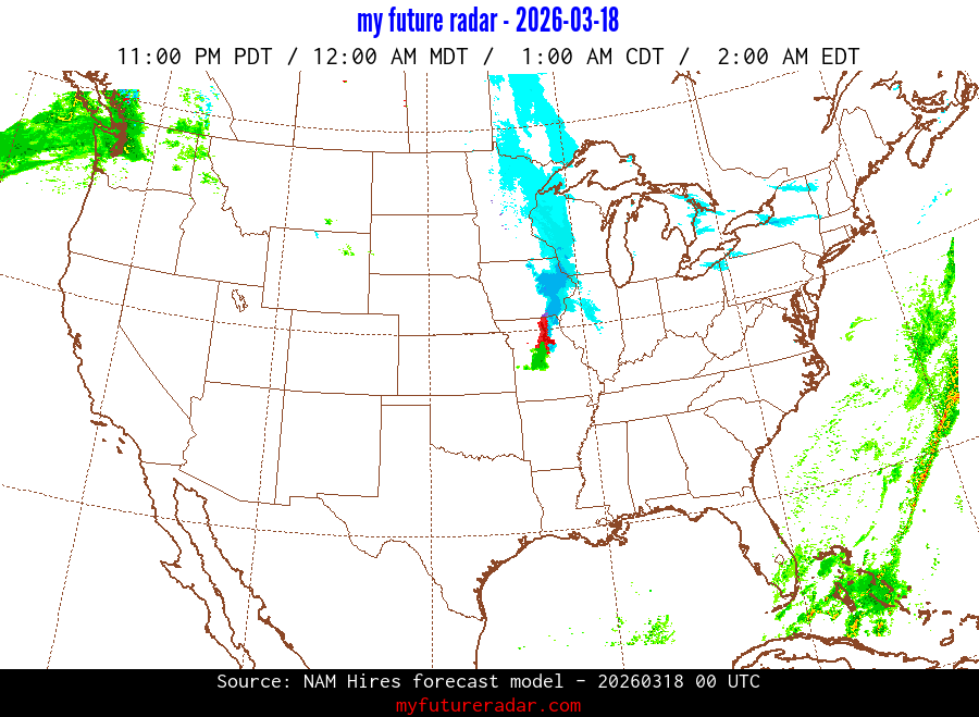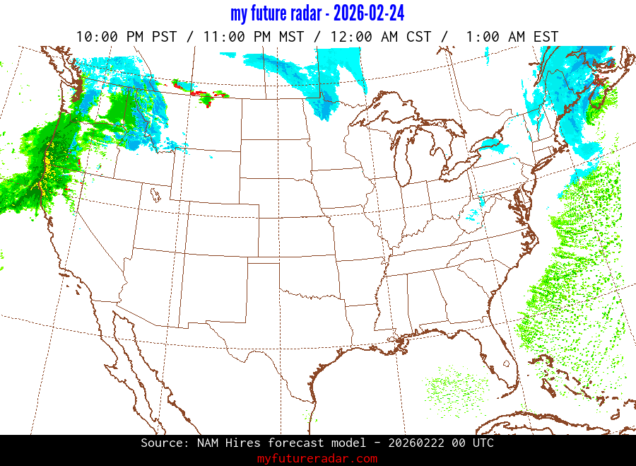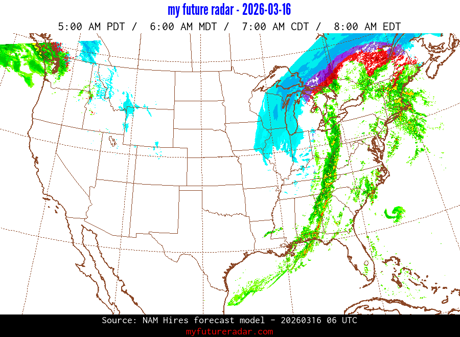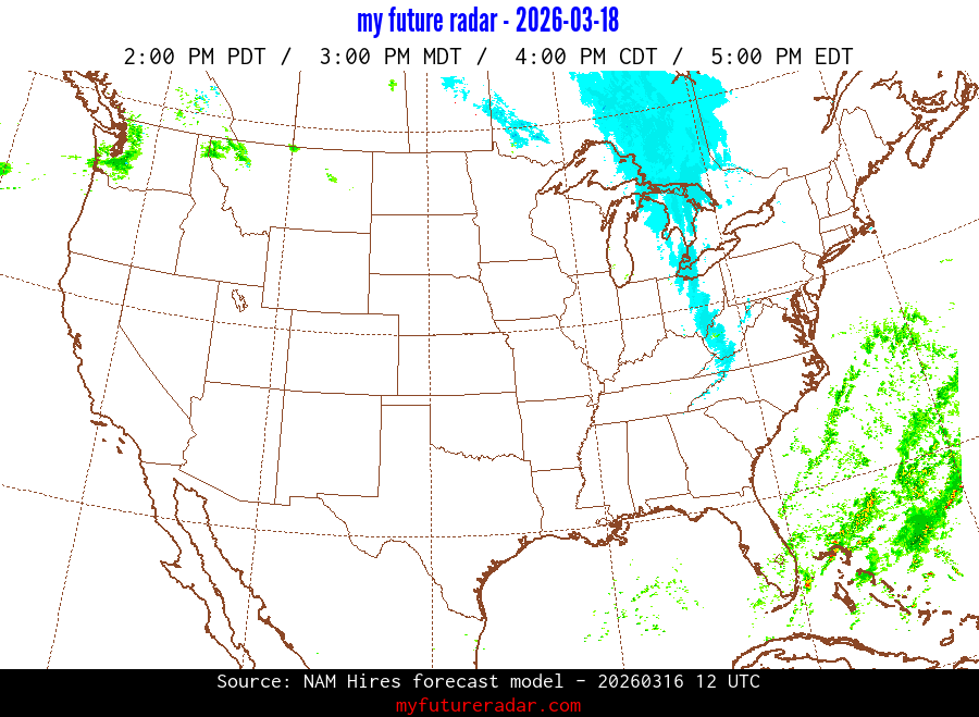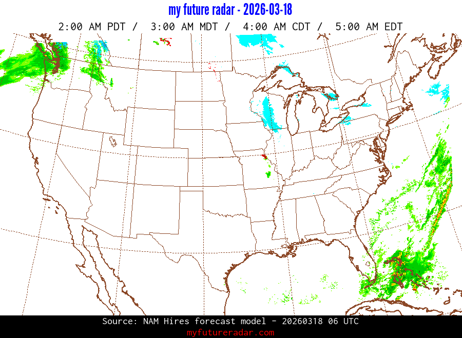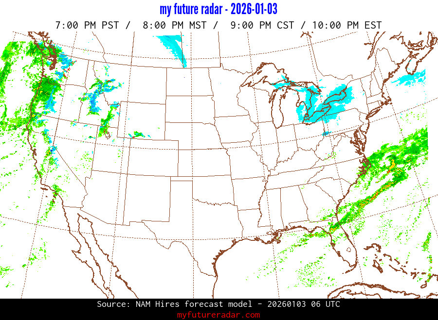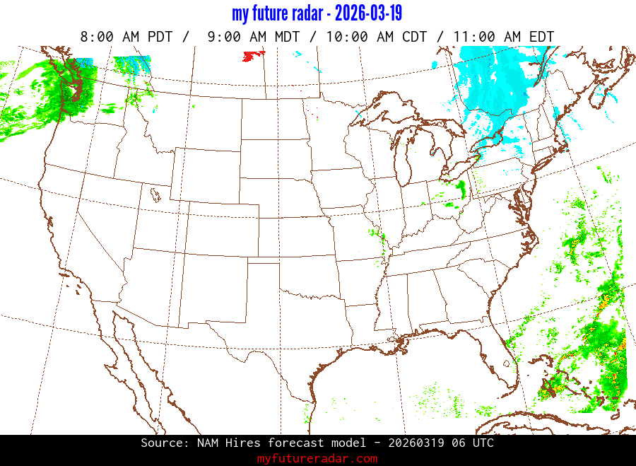 My Future Radar uses data from the Rapid Refresh and the NAM forecast models to provide simulated future radar imagery.