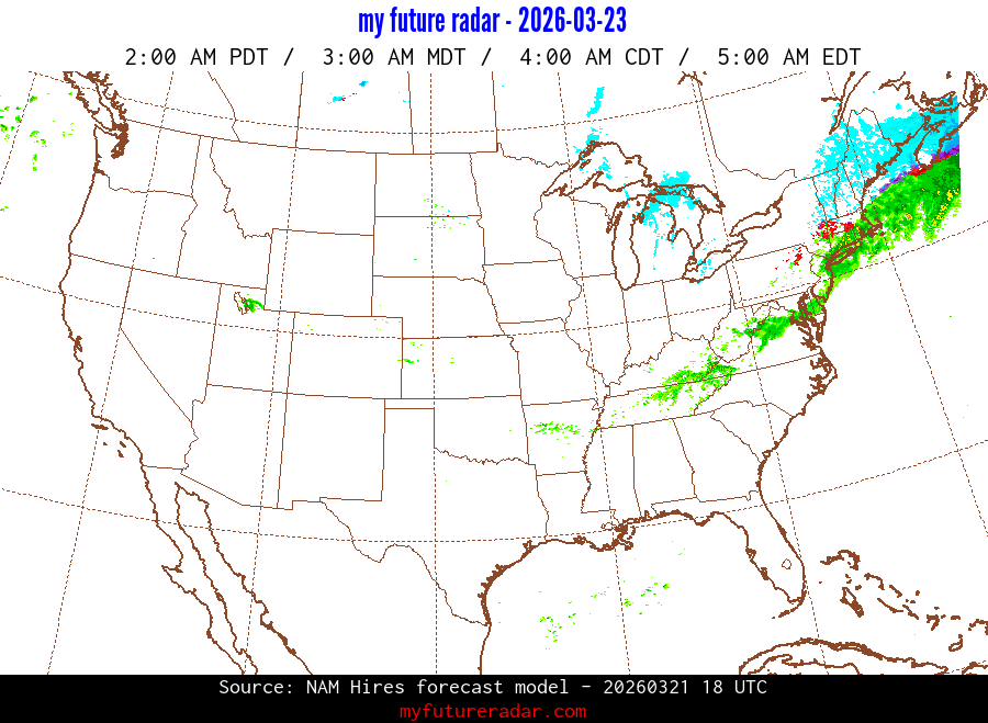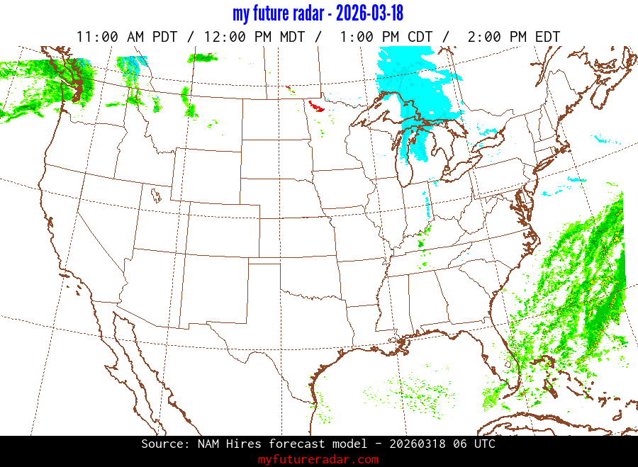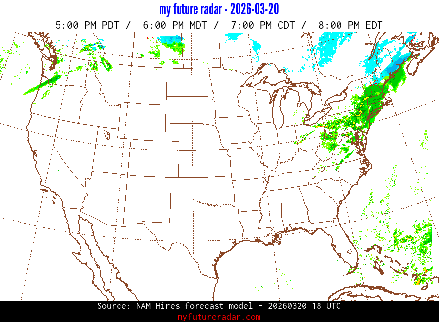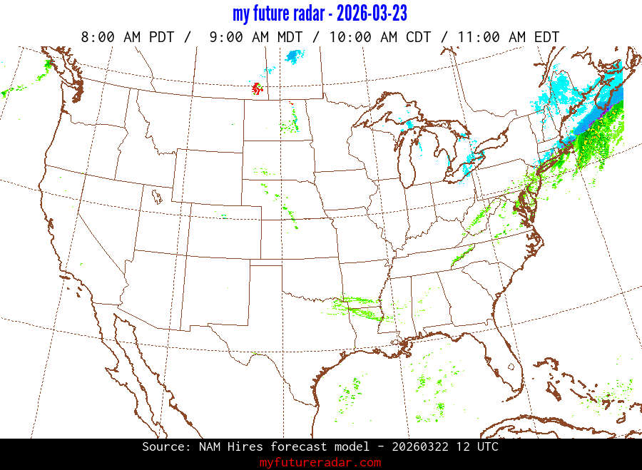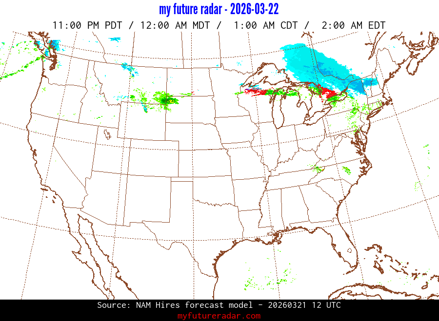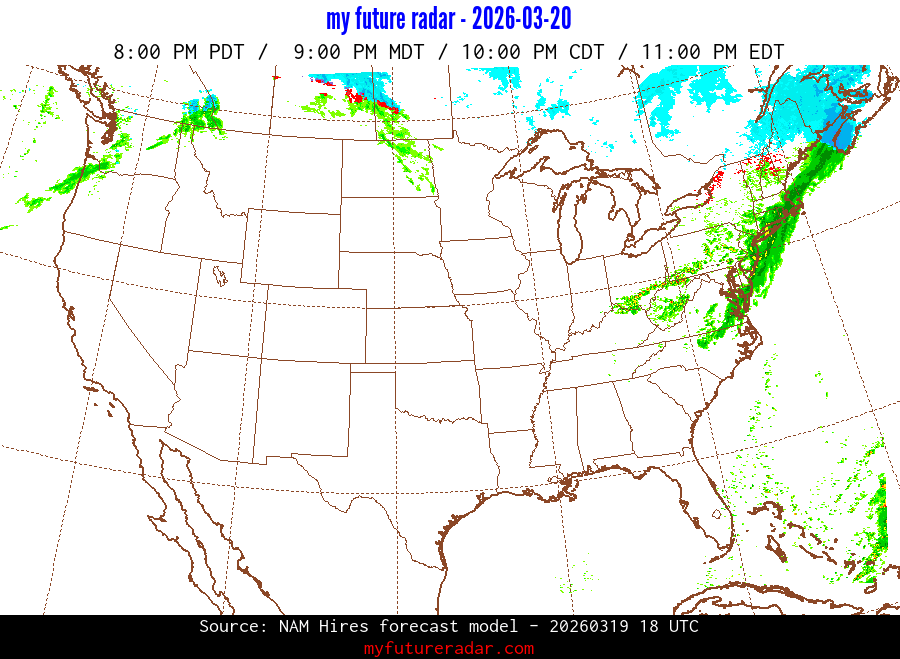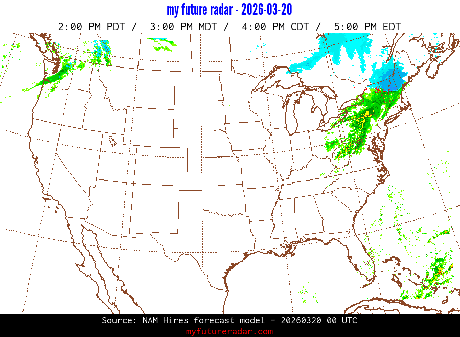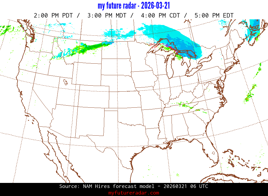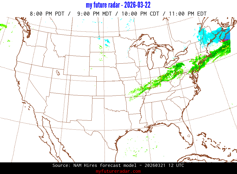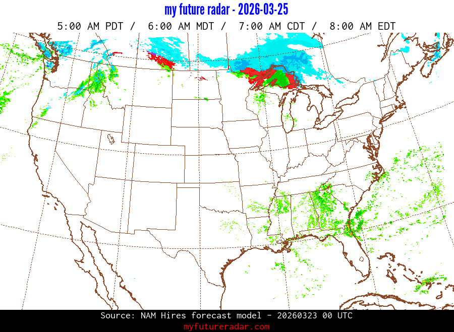 My Future Radar uses data from the Rapid Refresh and the NAM forecast models to provide simulated future radar imagery.