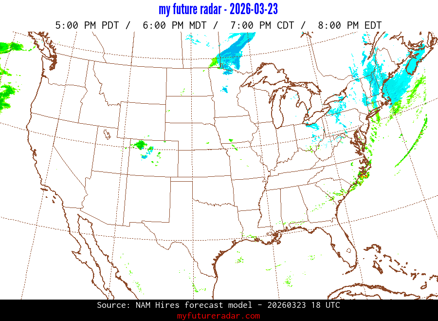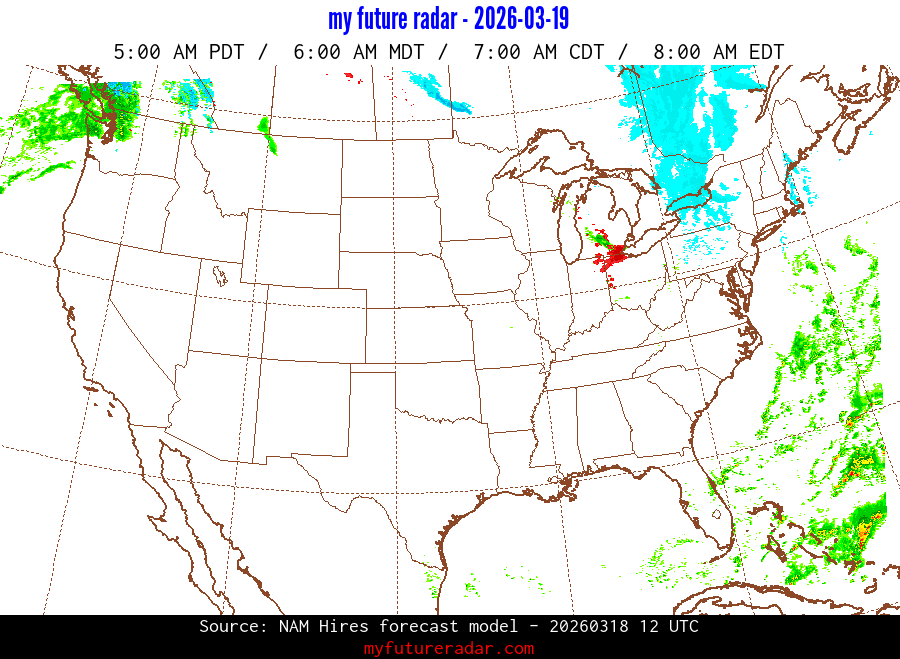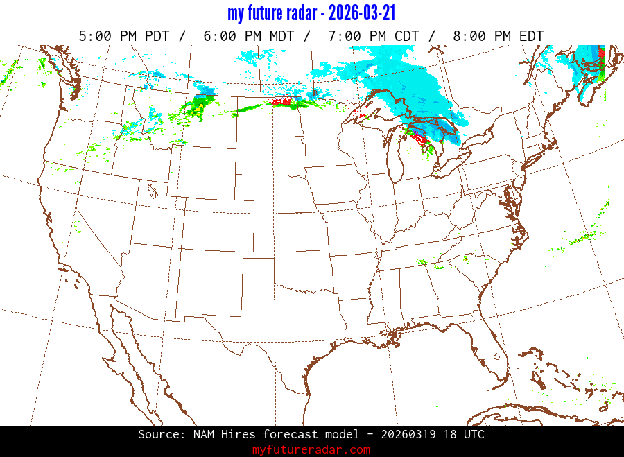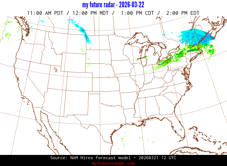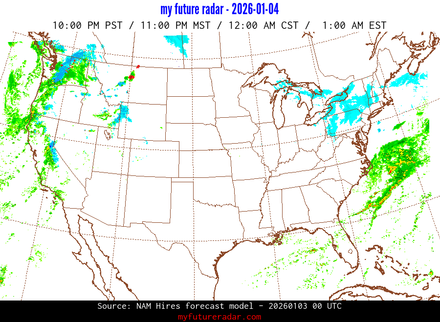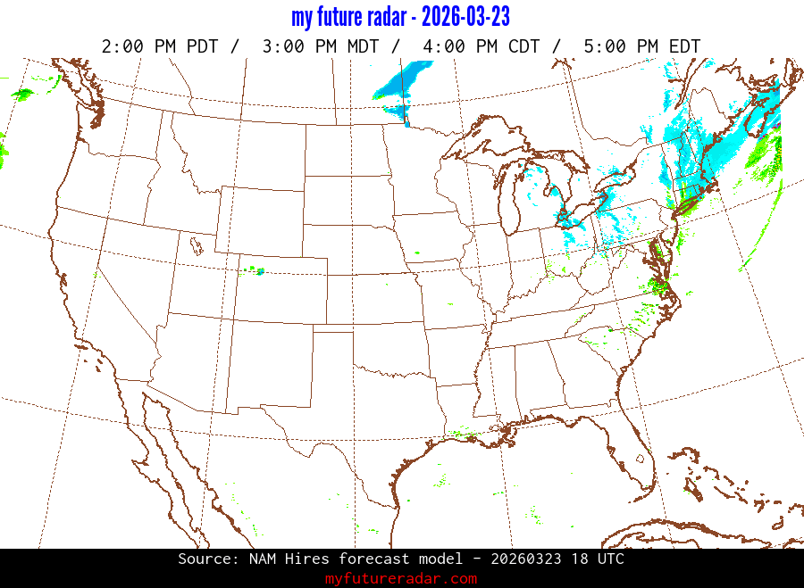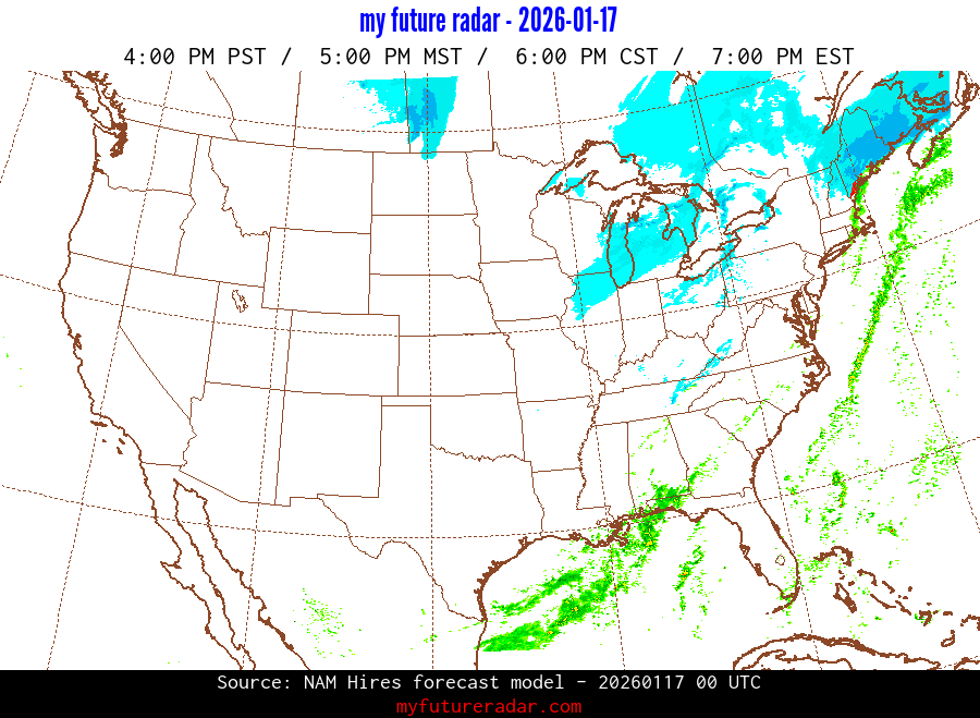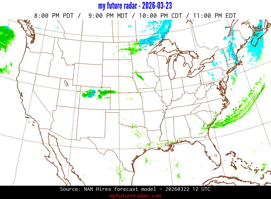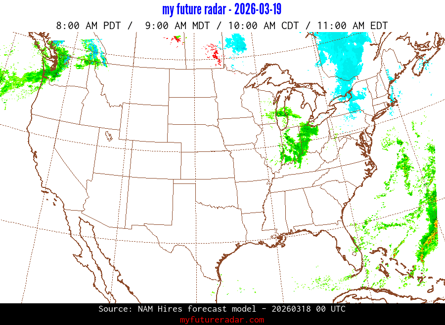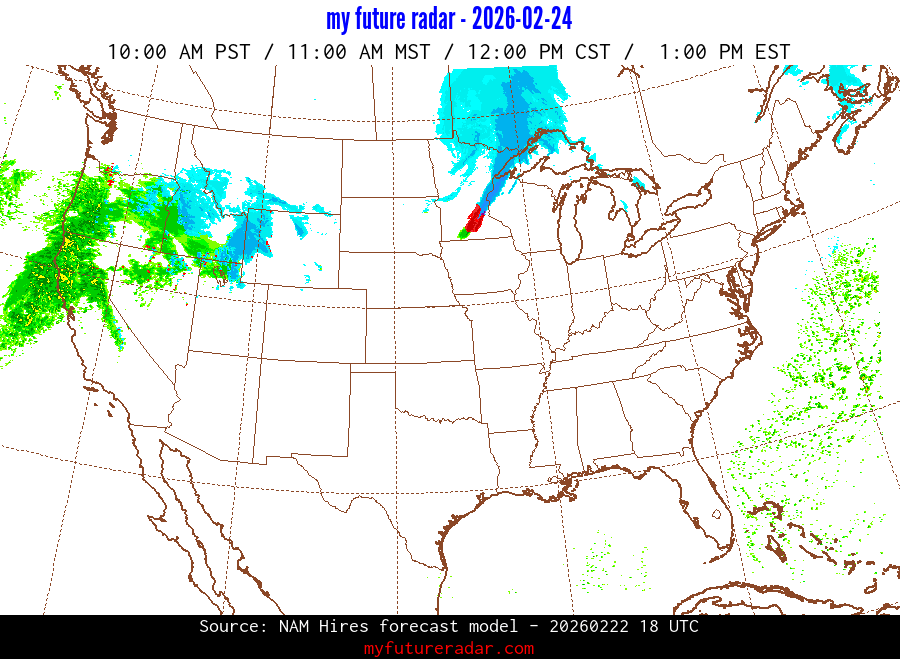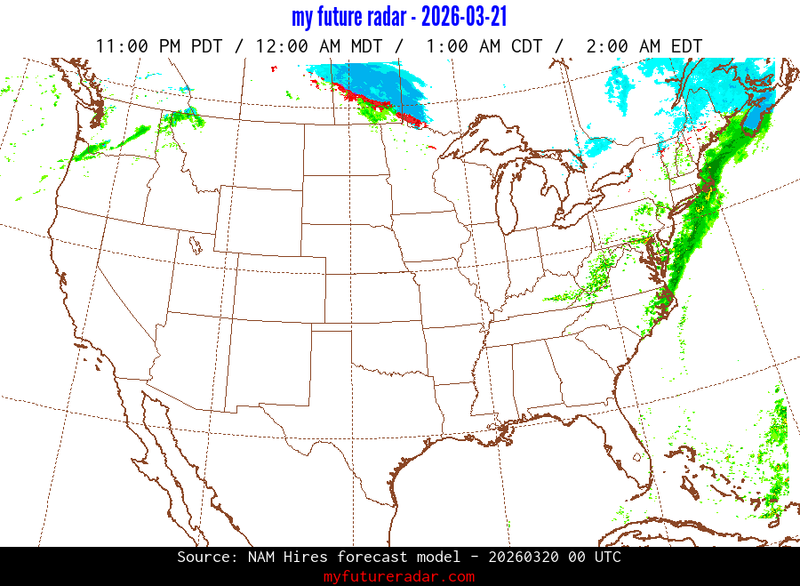 My Future Radar uses data from the Rapid Refresh and the NAM forecast models to provide simulated future radar imagery.