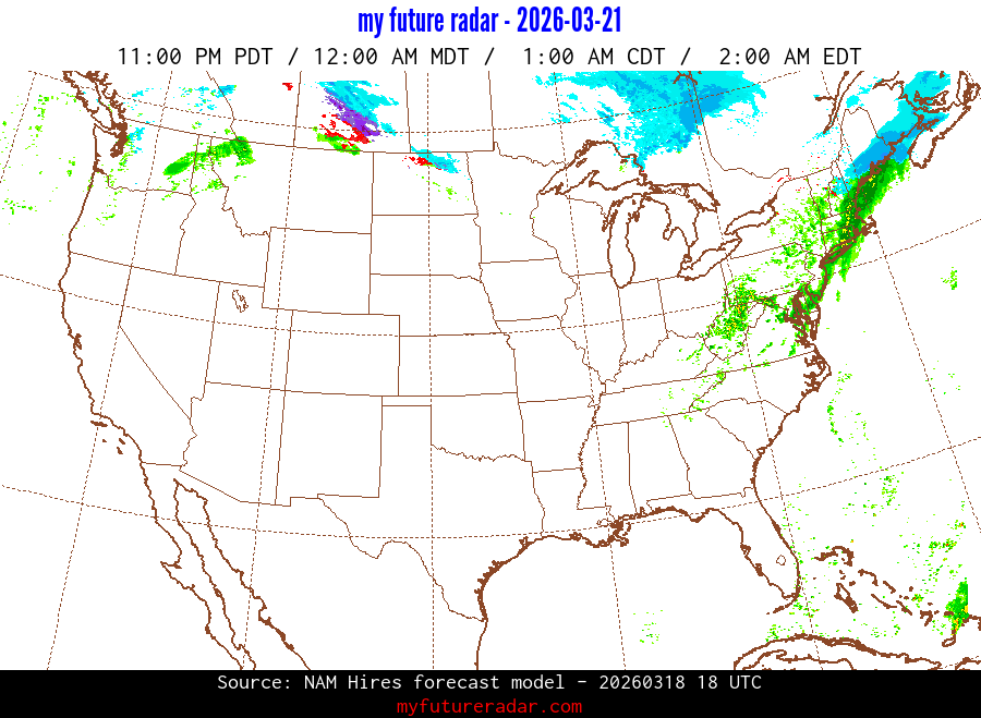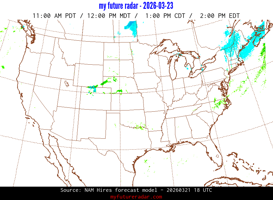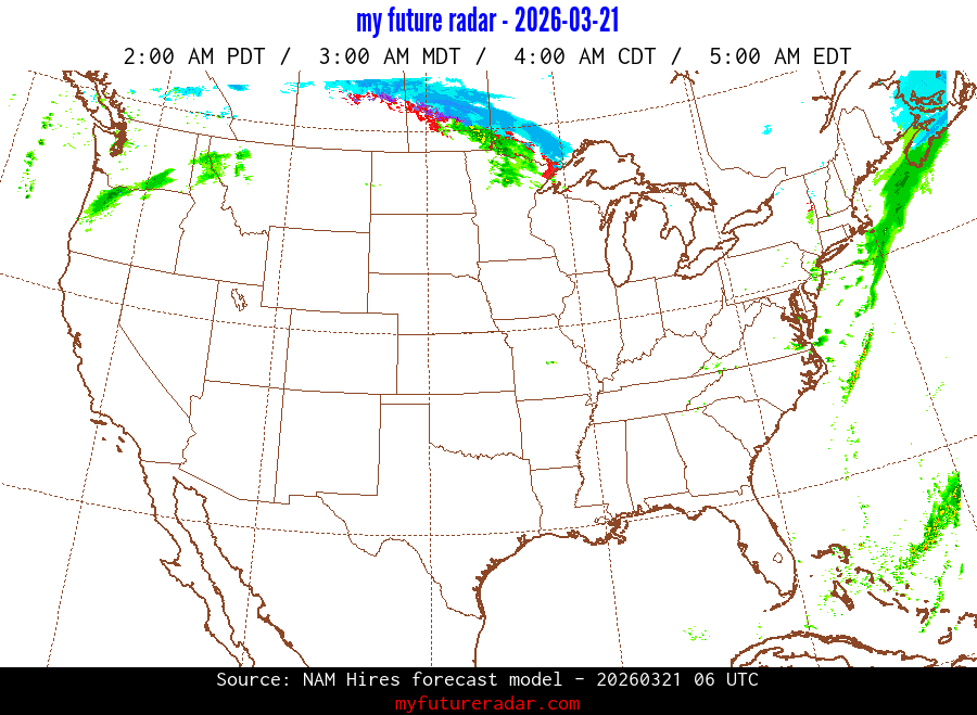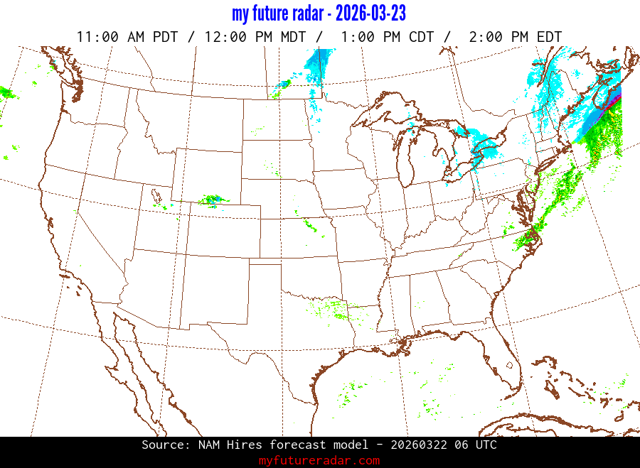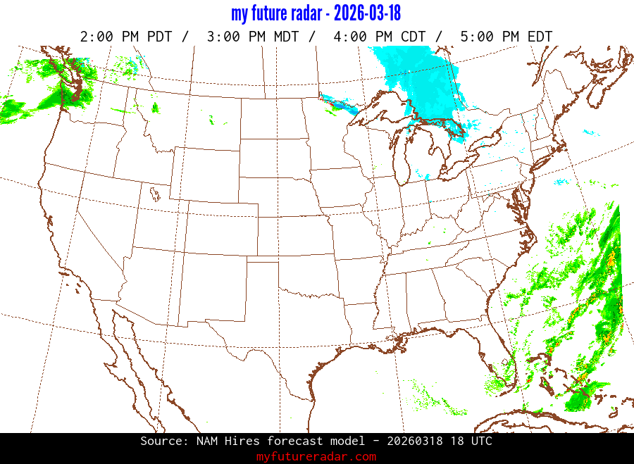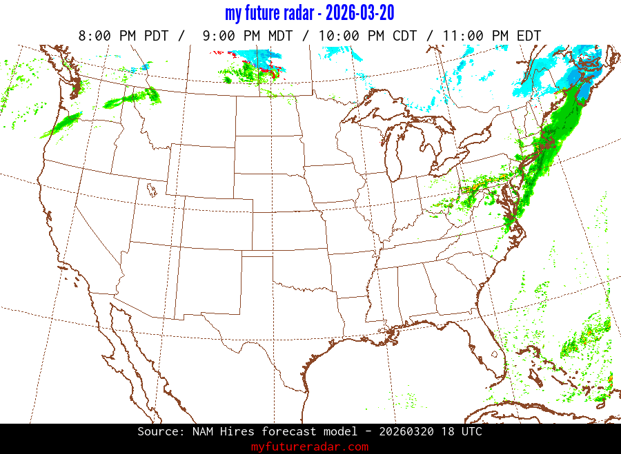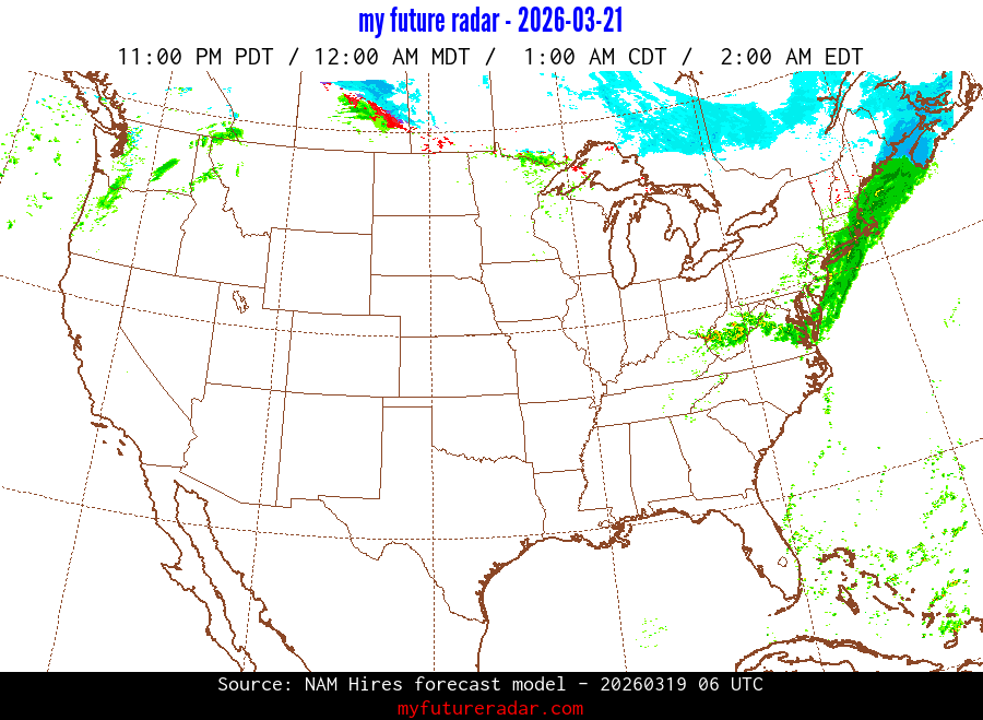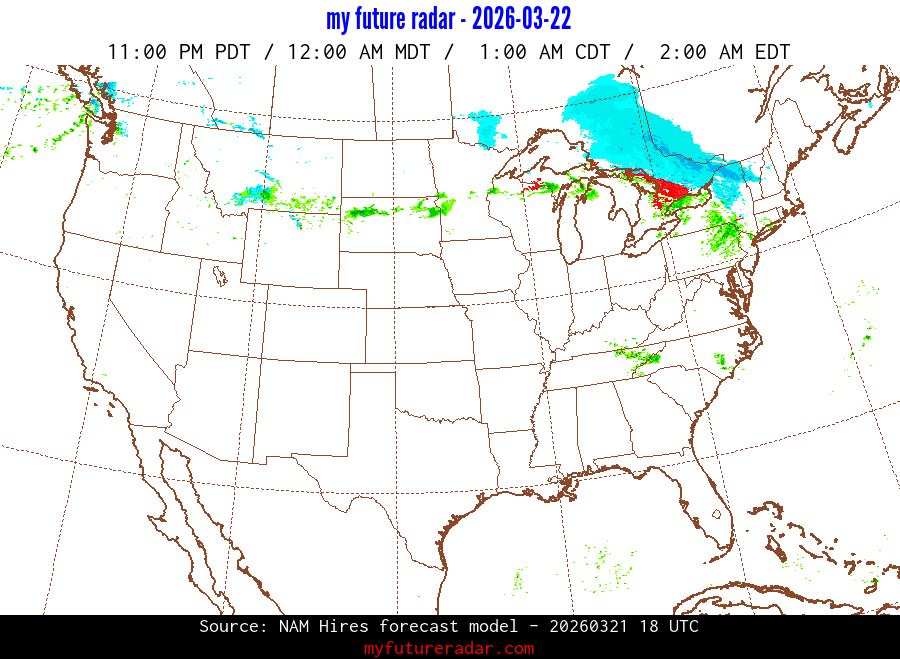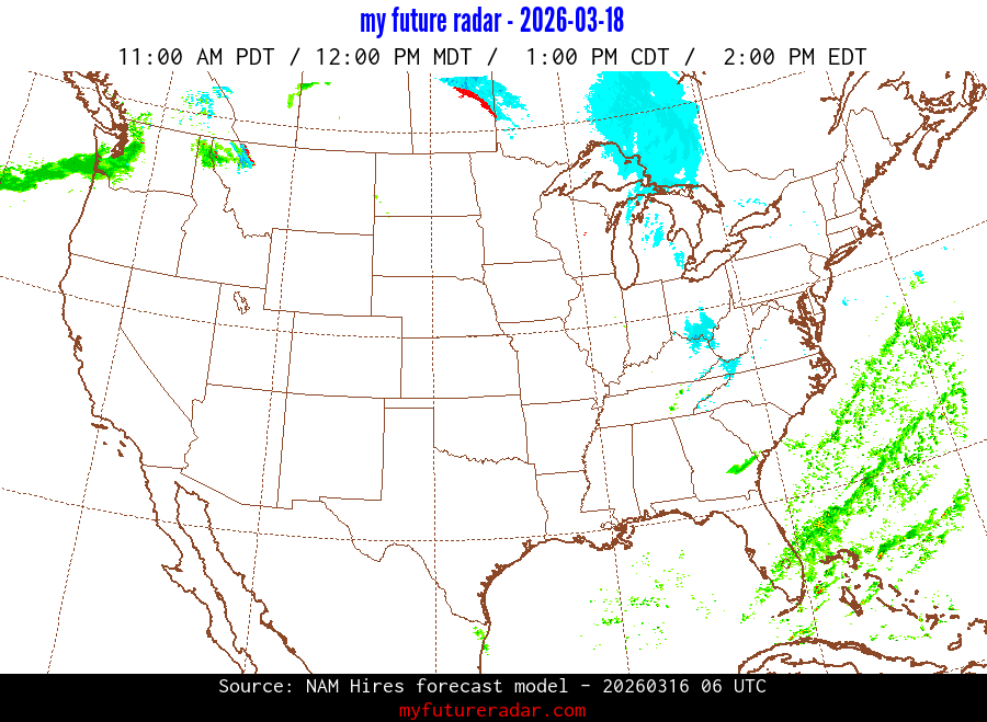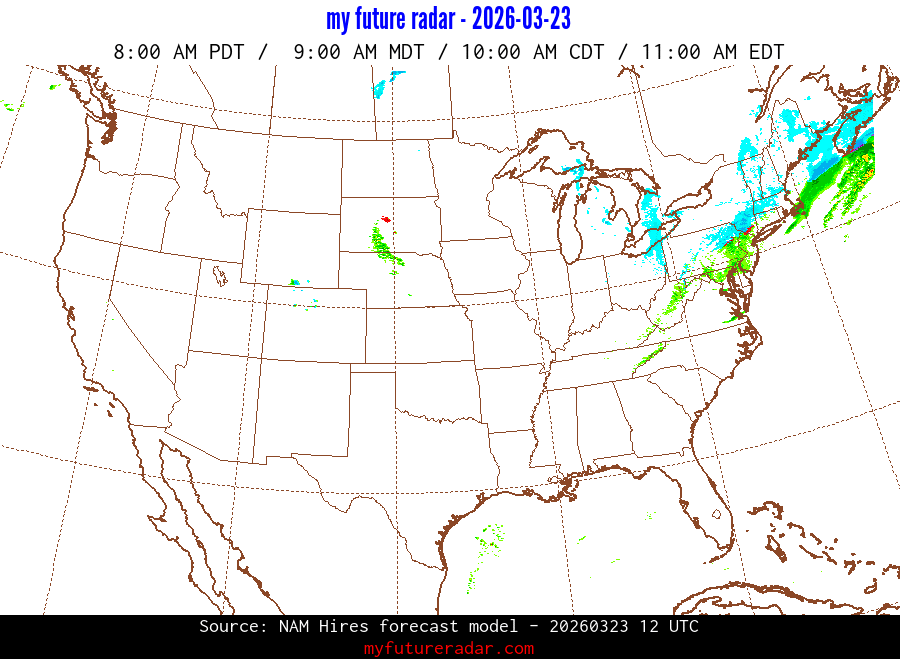 My Future Radar uses data from the Rapid Refresh and the NAM forecast models to provide simulated future radar imagery.
