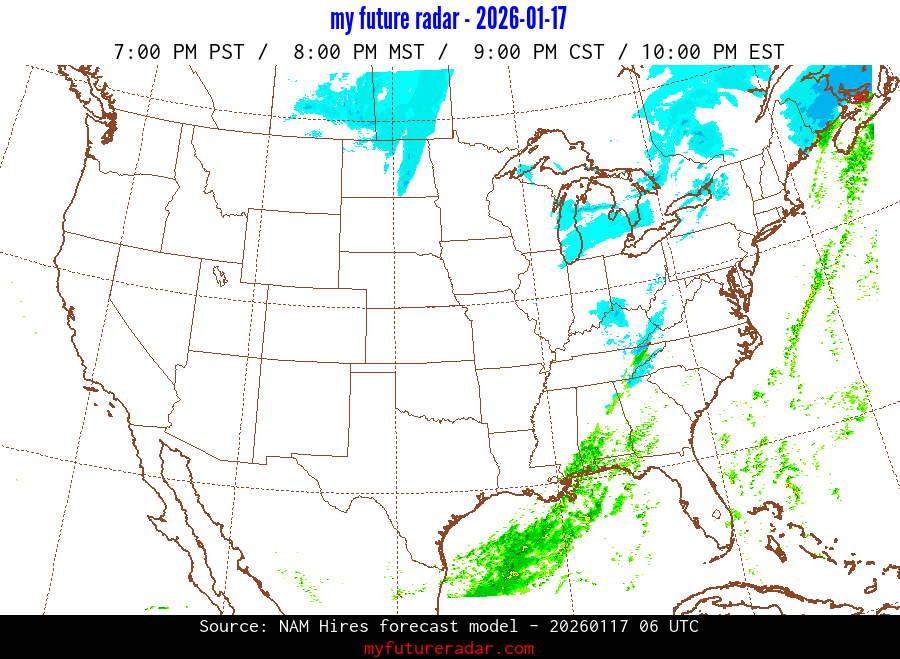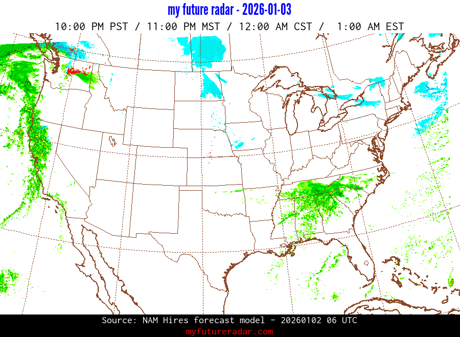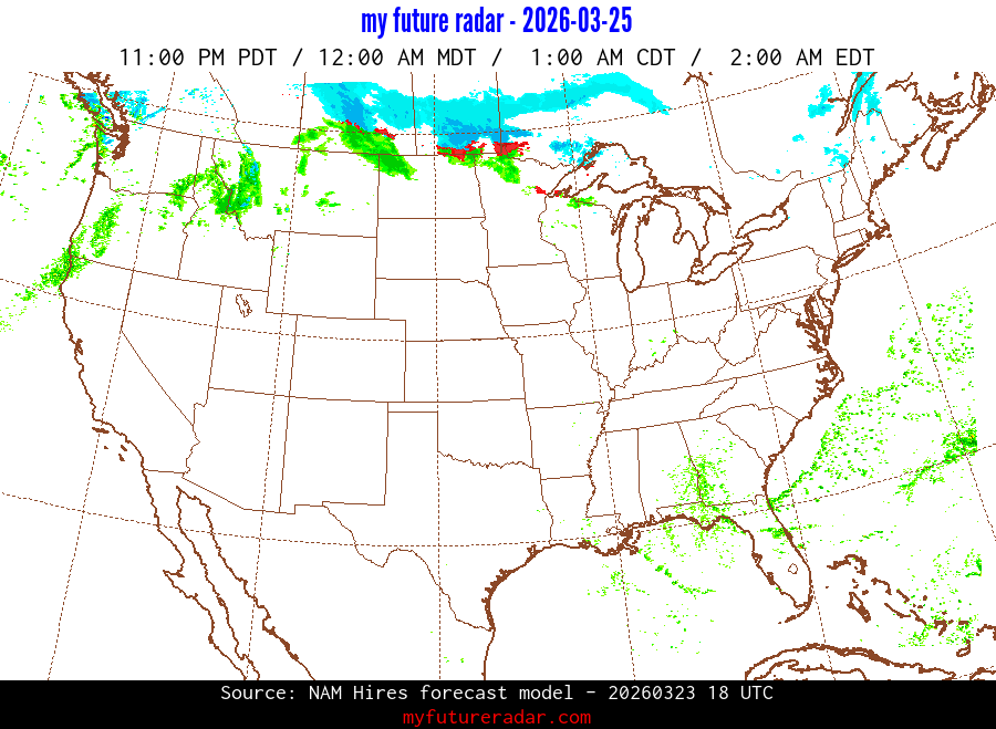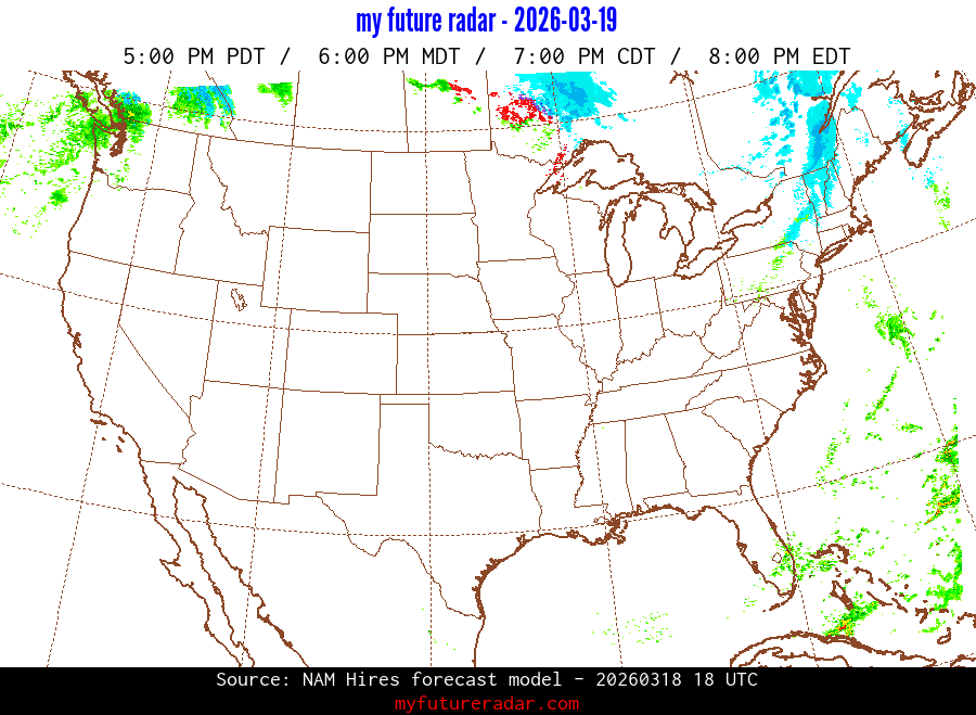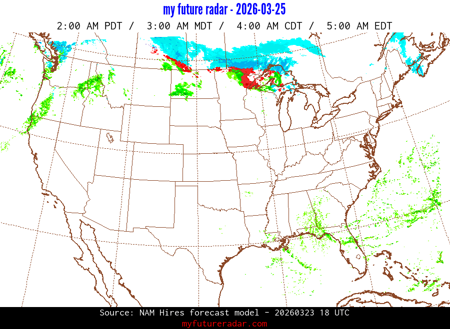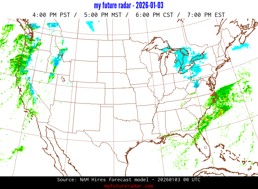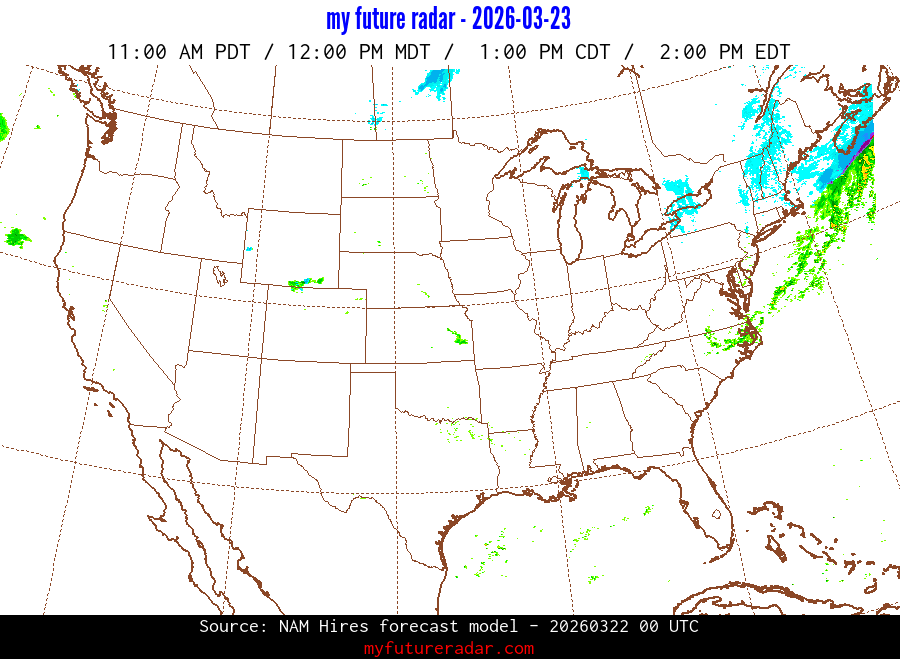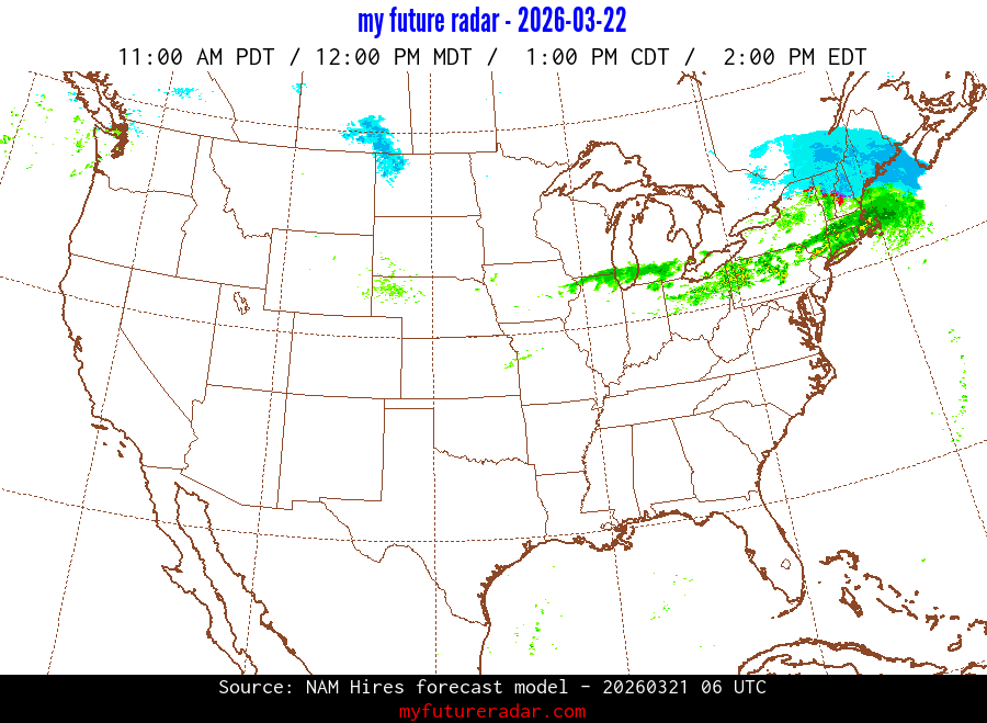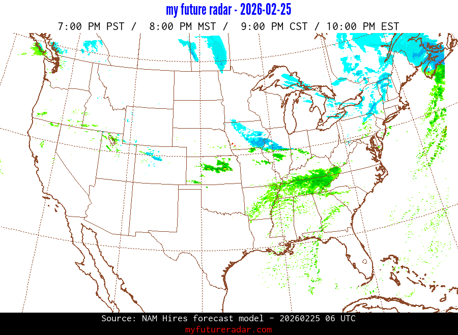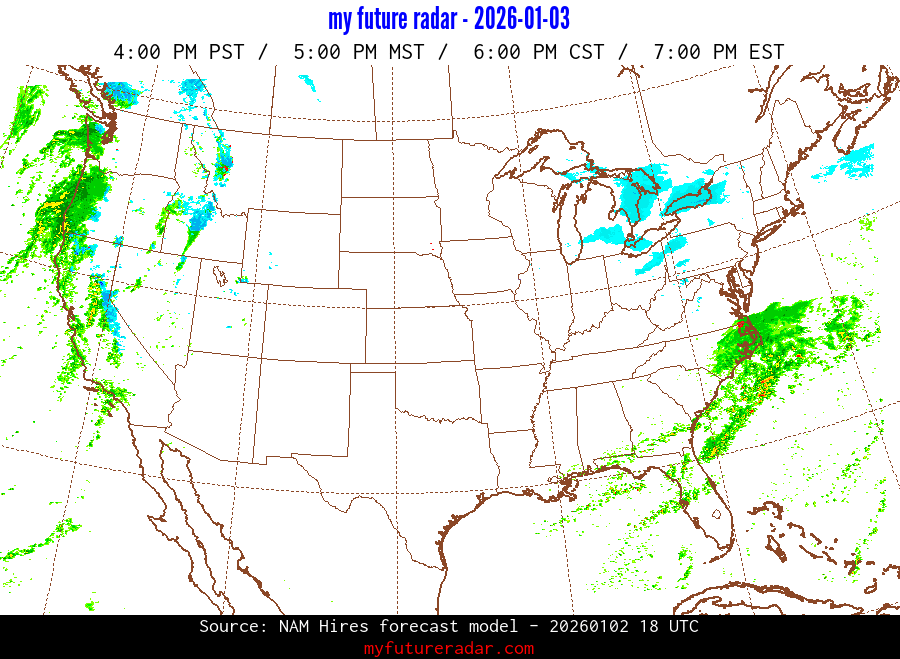 My Future Radar uses data from the Rapid Refresh and the NAM forecast models to provide simulated future radar imagery.