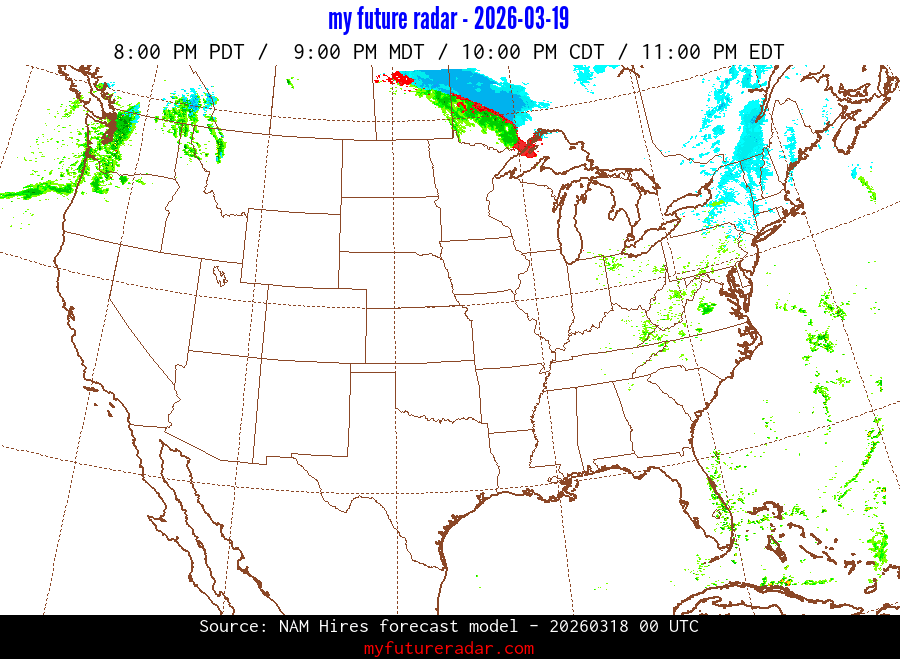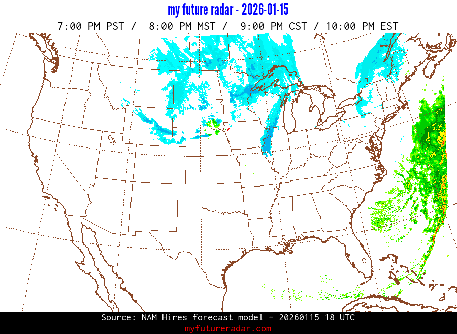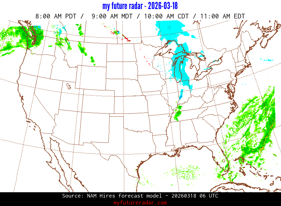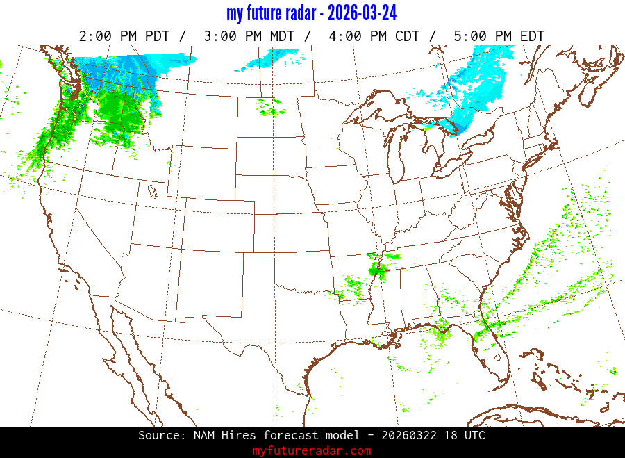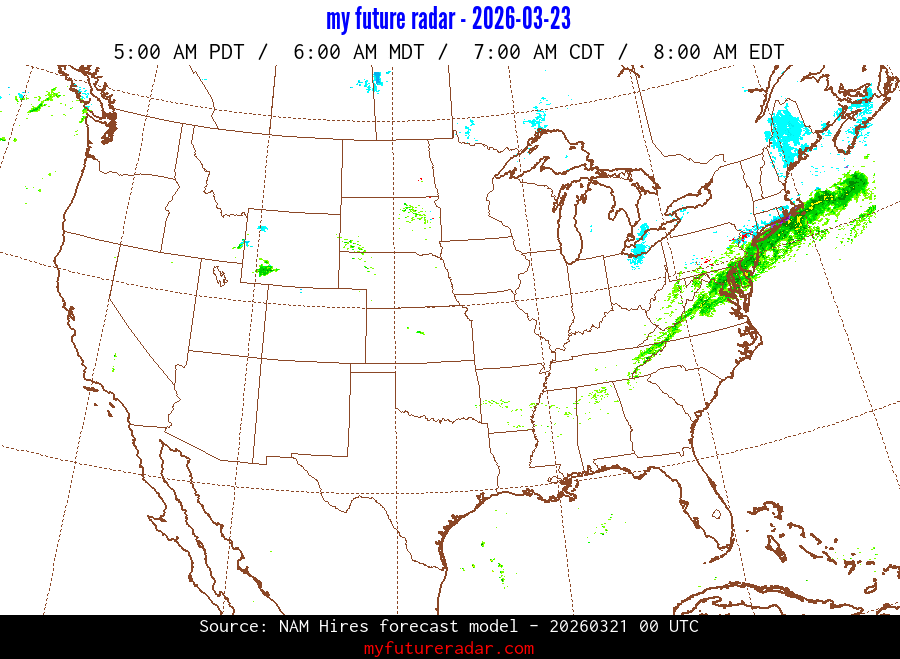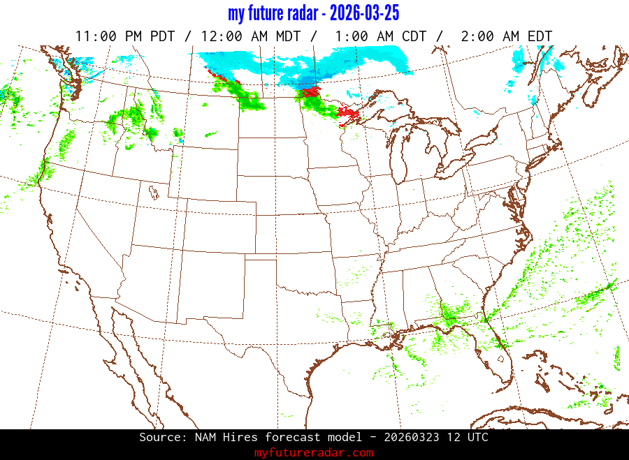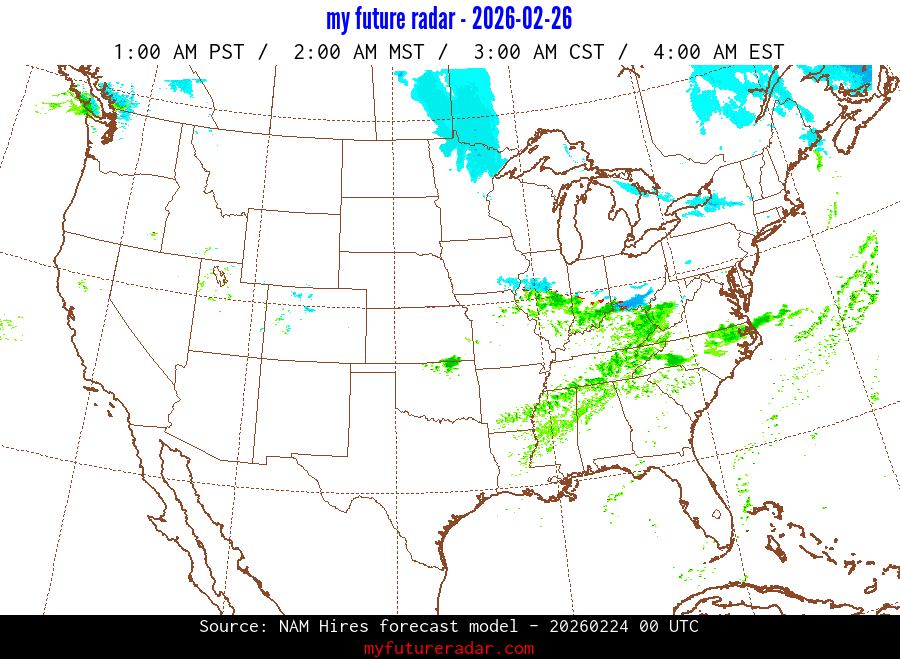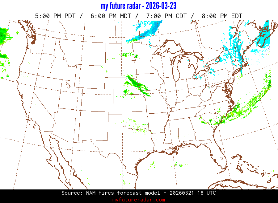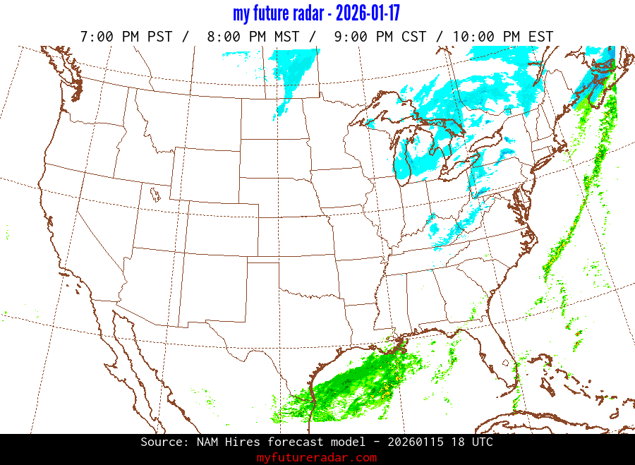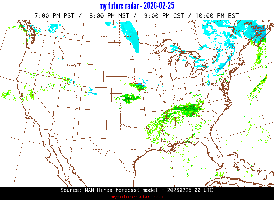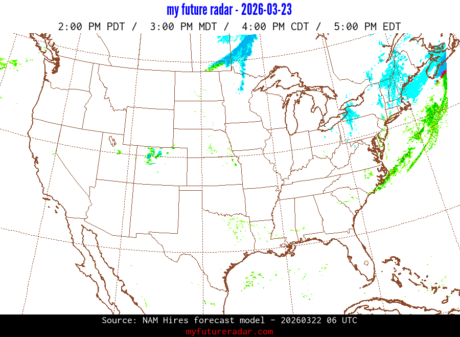 My Future Radar uses data from the Rapid Refresh and the NAM forecast models to provide simulated future radar imagery.