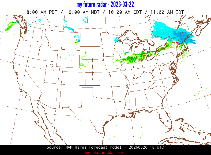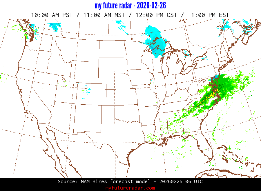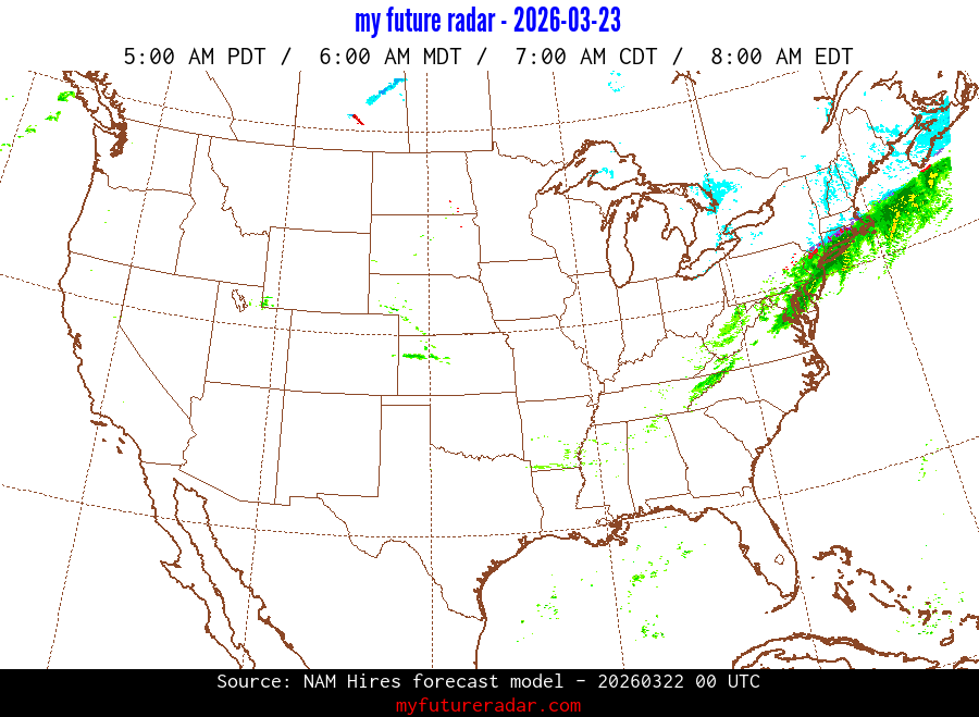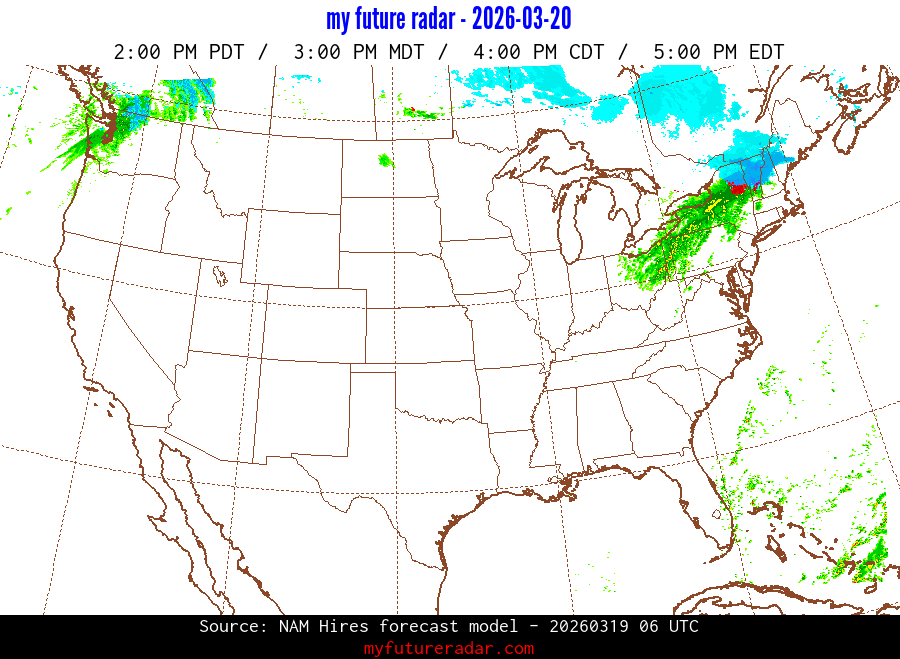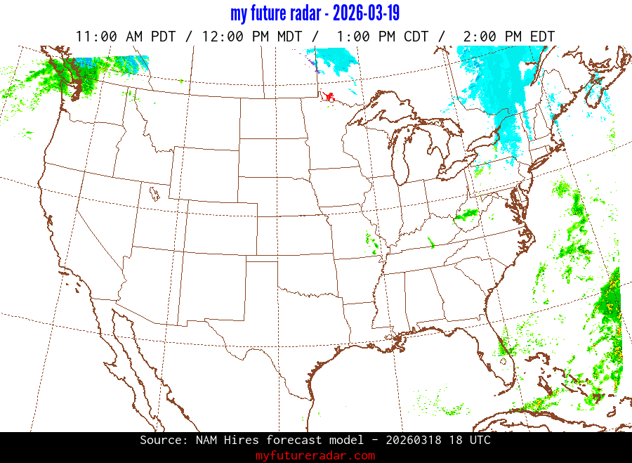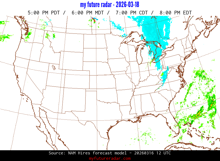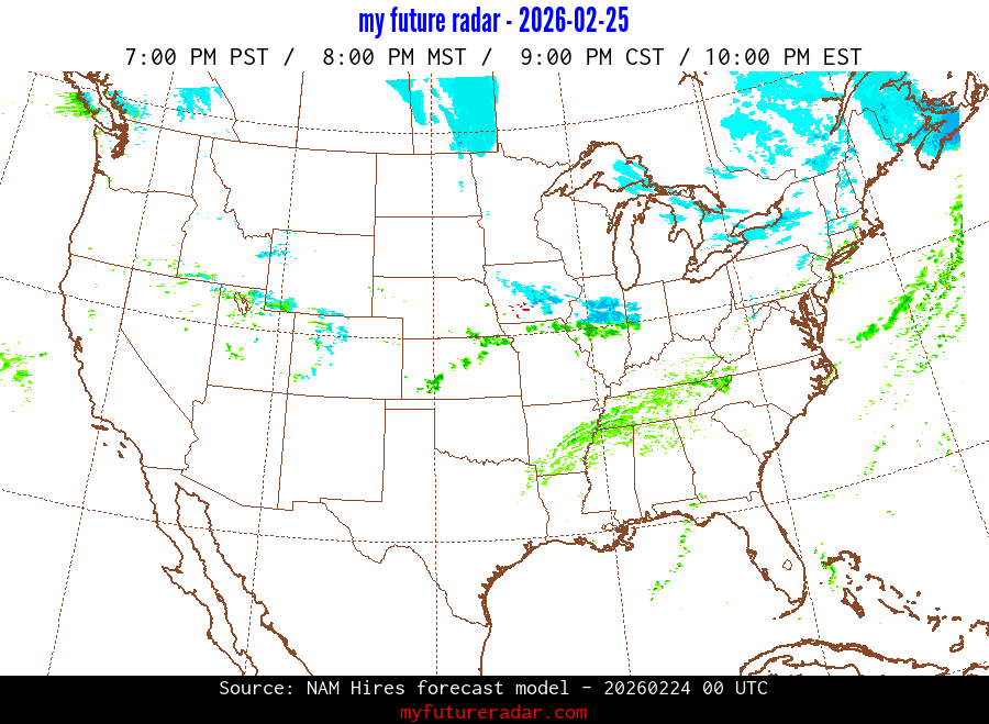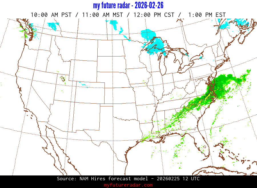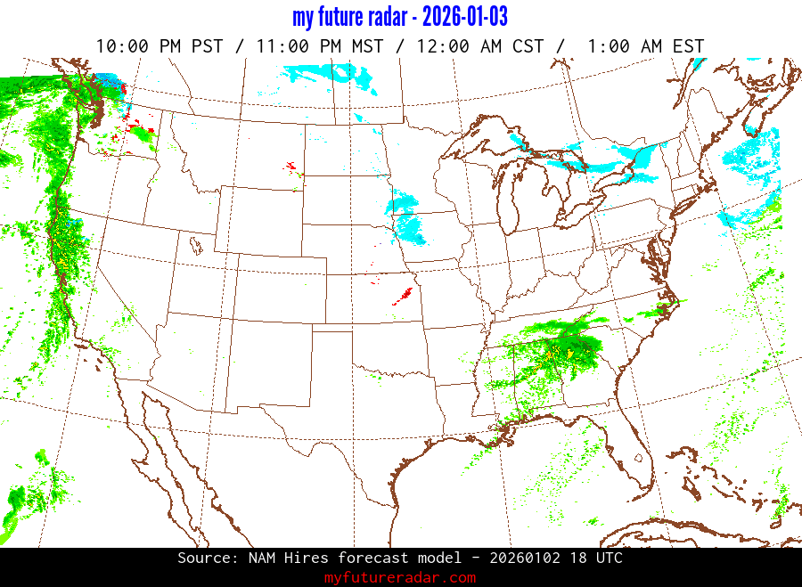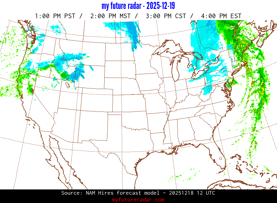 My Future Radar uses data from the Rapid Refresh and the NAM forecast models to provide simulated future radar imagery.