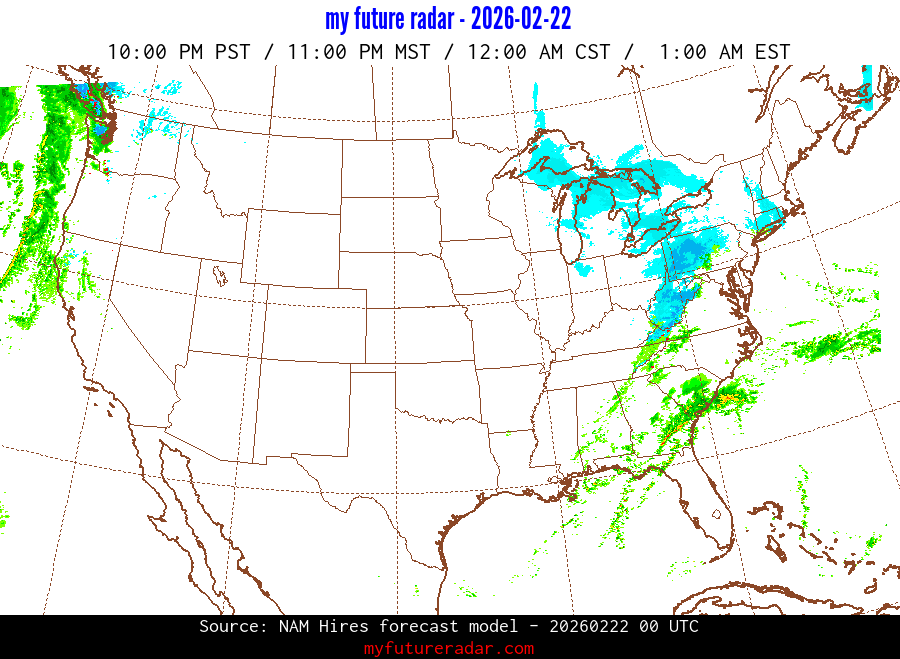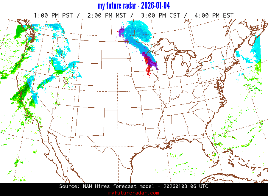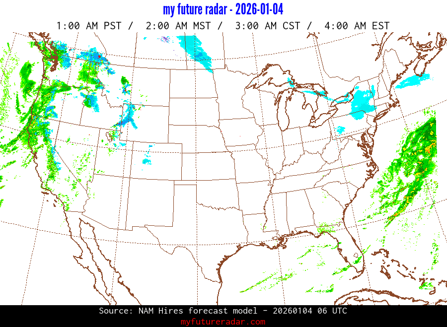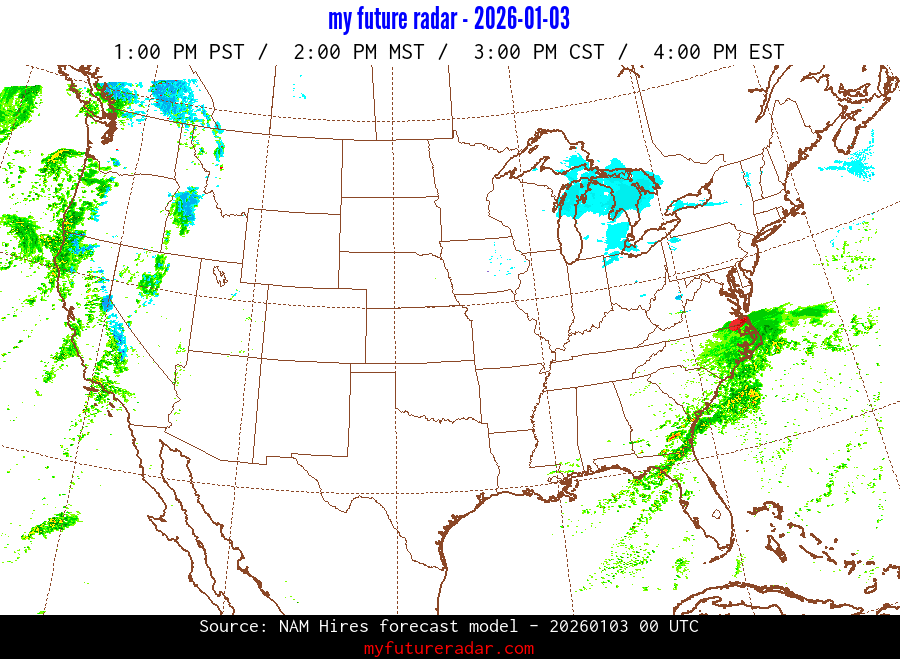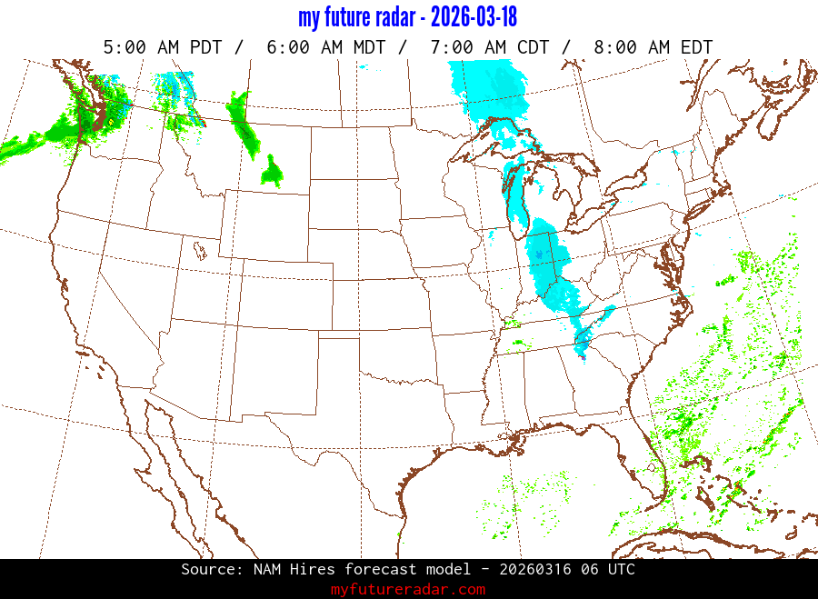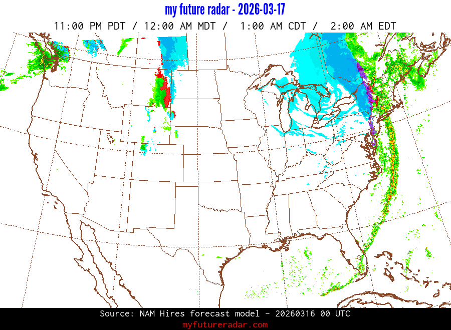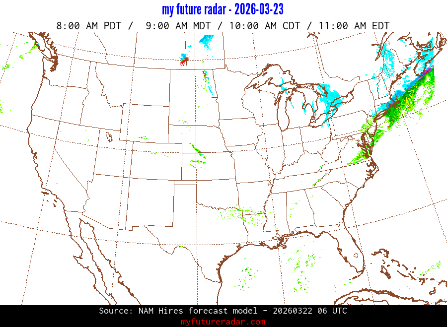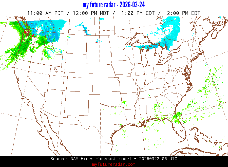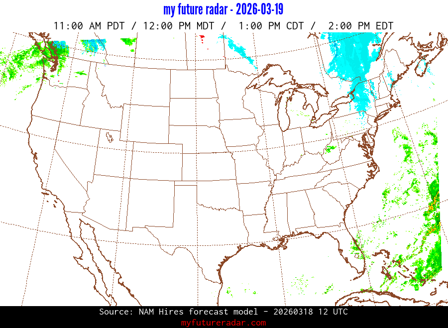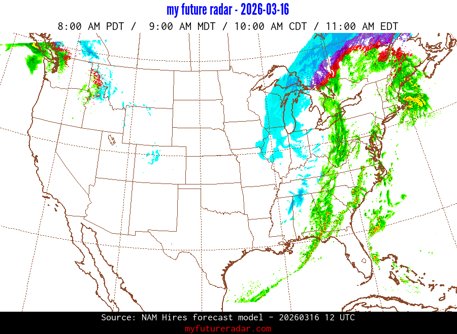My Future Radar uses data from the Rapid Refresh and the NAM forecast models to provide simulated future radar imagery.
