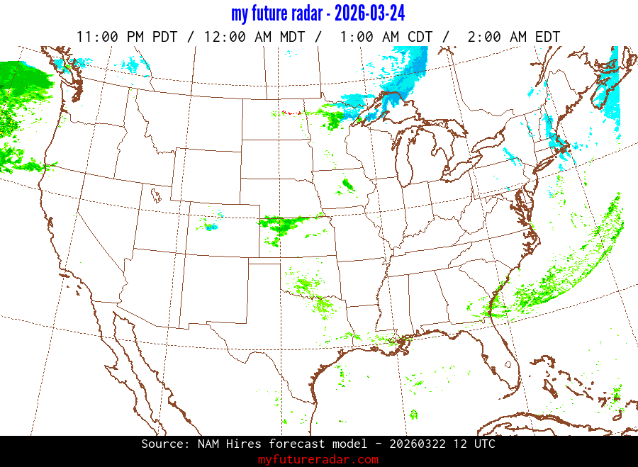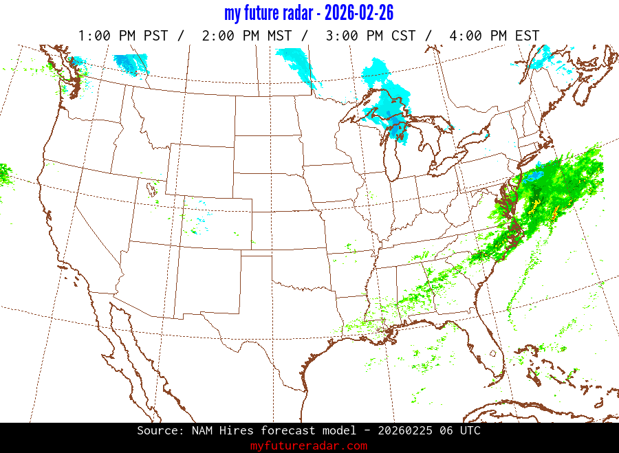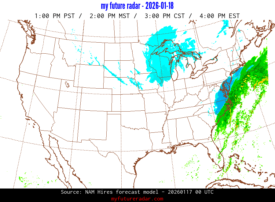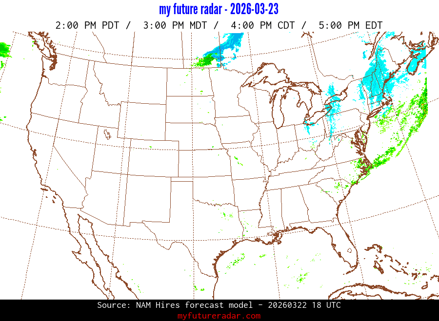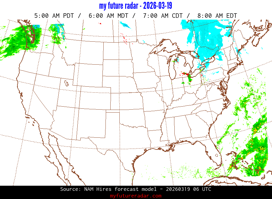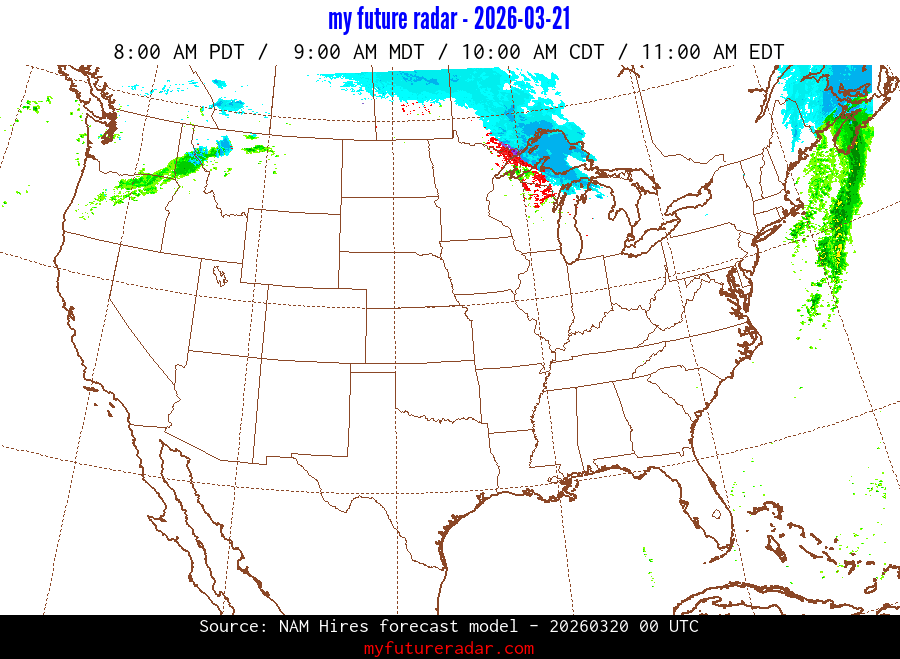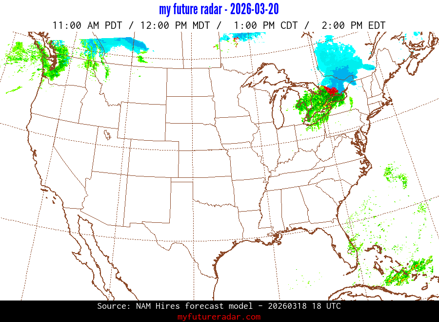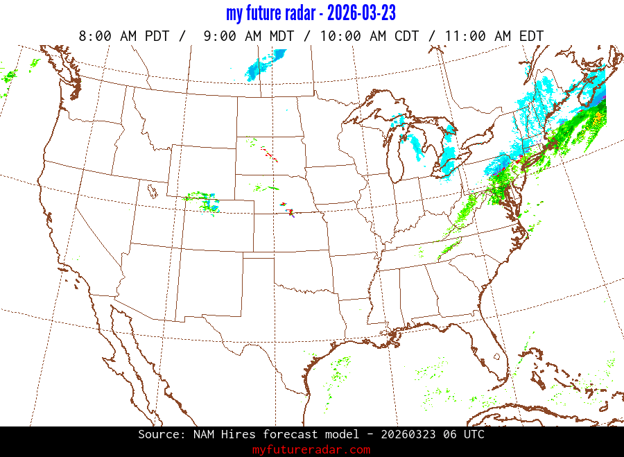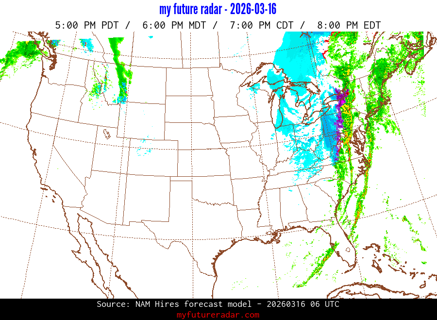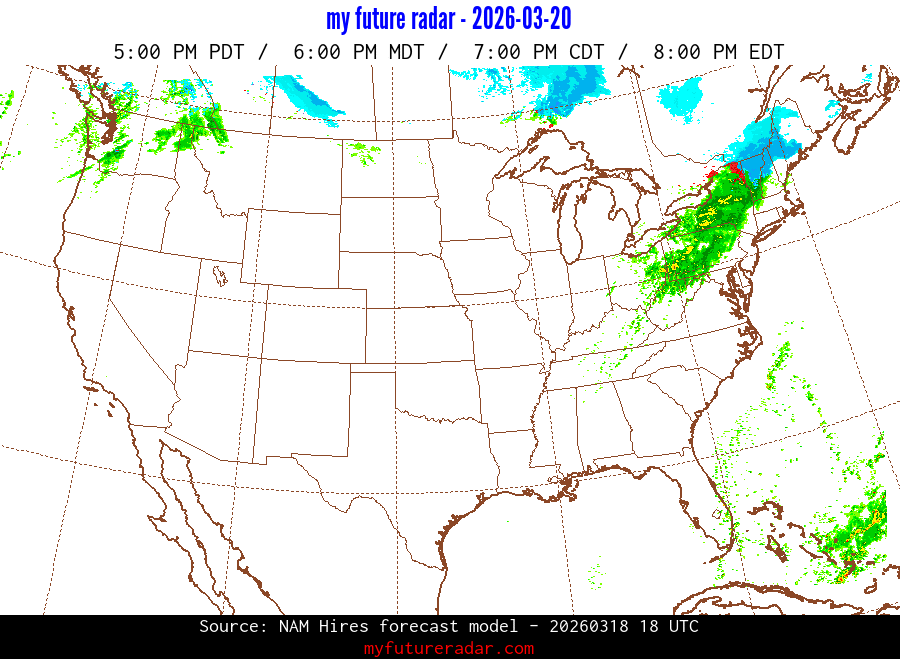 My Future Radar uses data from the Rapid Refresh and the NAM forecast models to provide simulated future radar imagery.