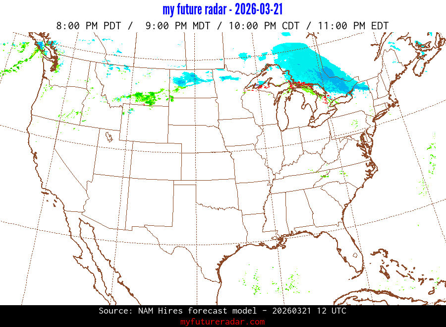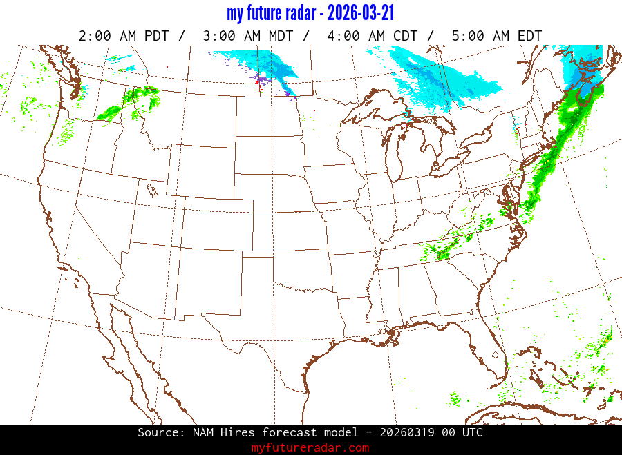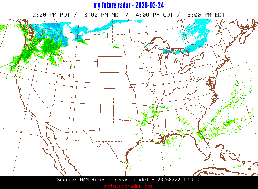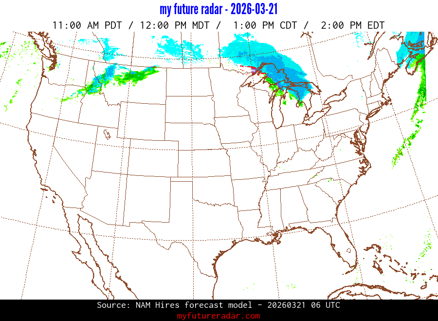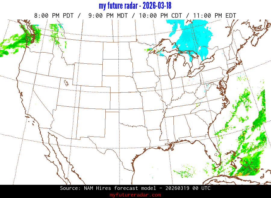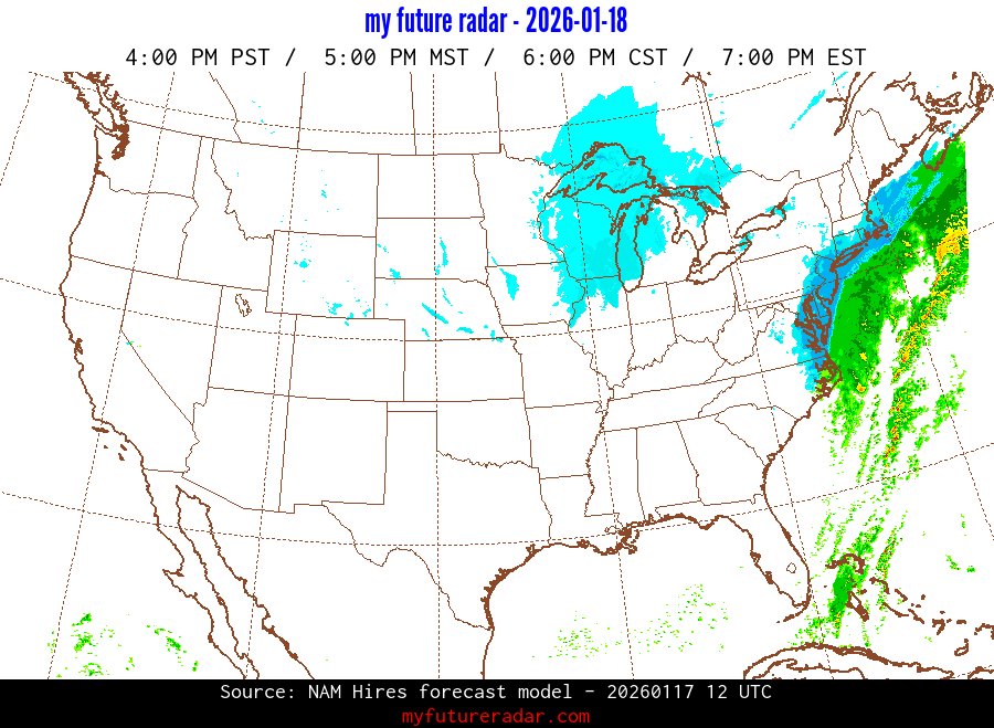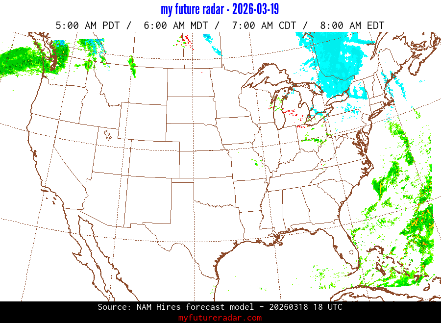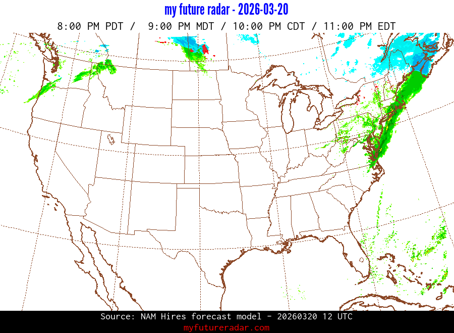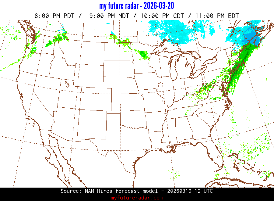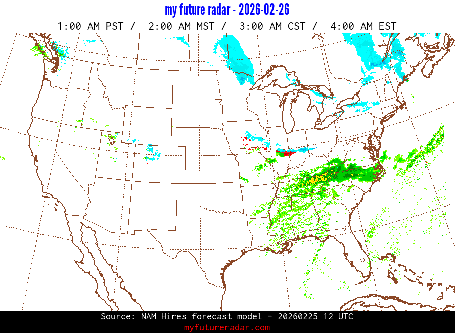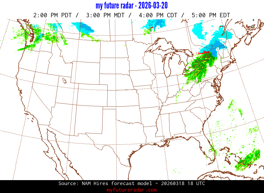 My Future Radar uses data from the Rapid Refresh and the NAM forecast models to provide simulated future radar imagery.