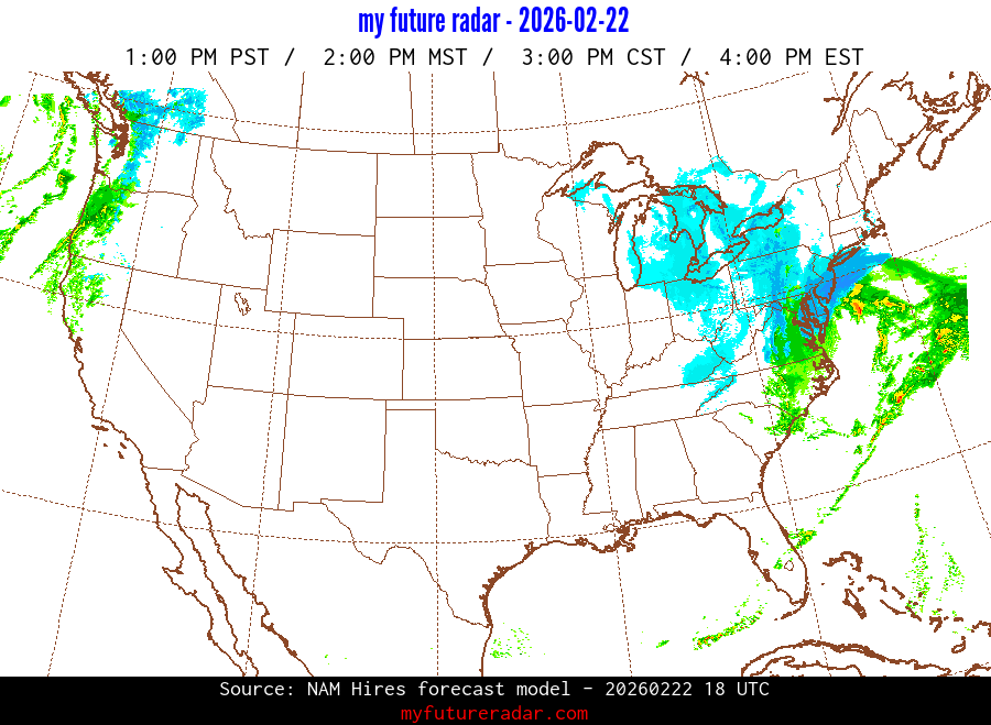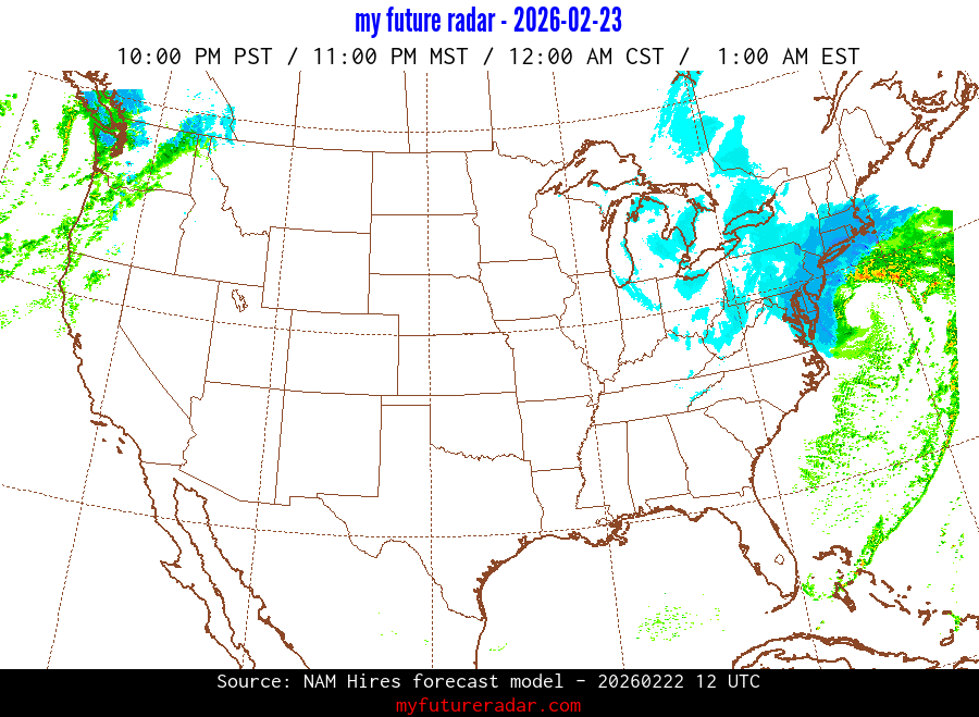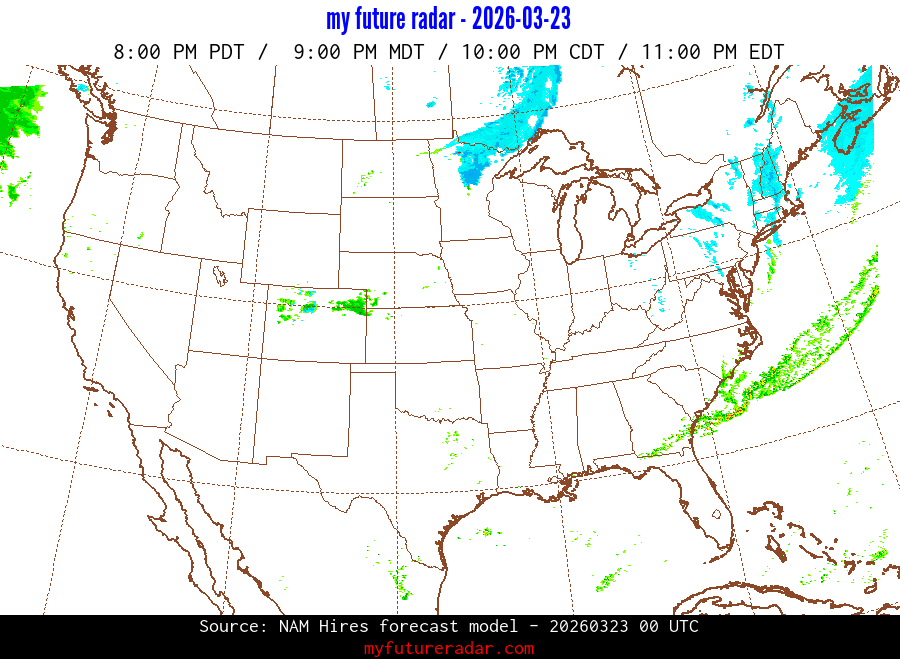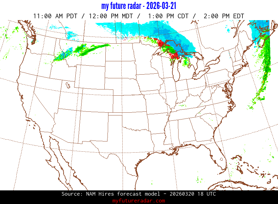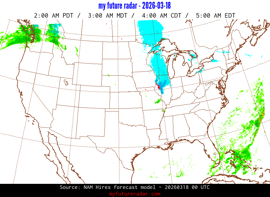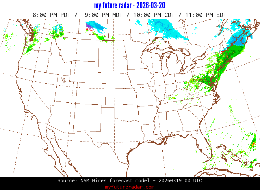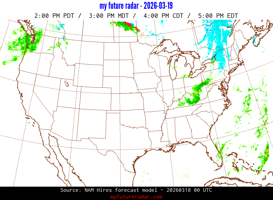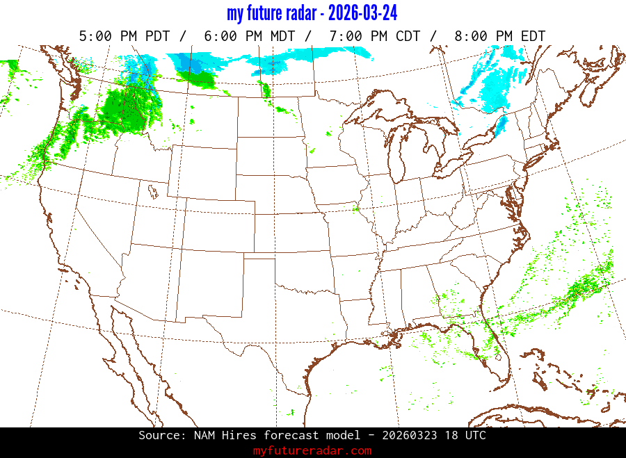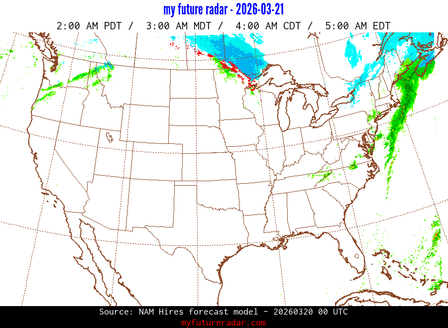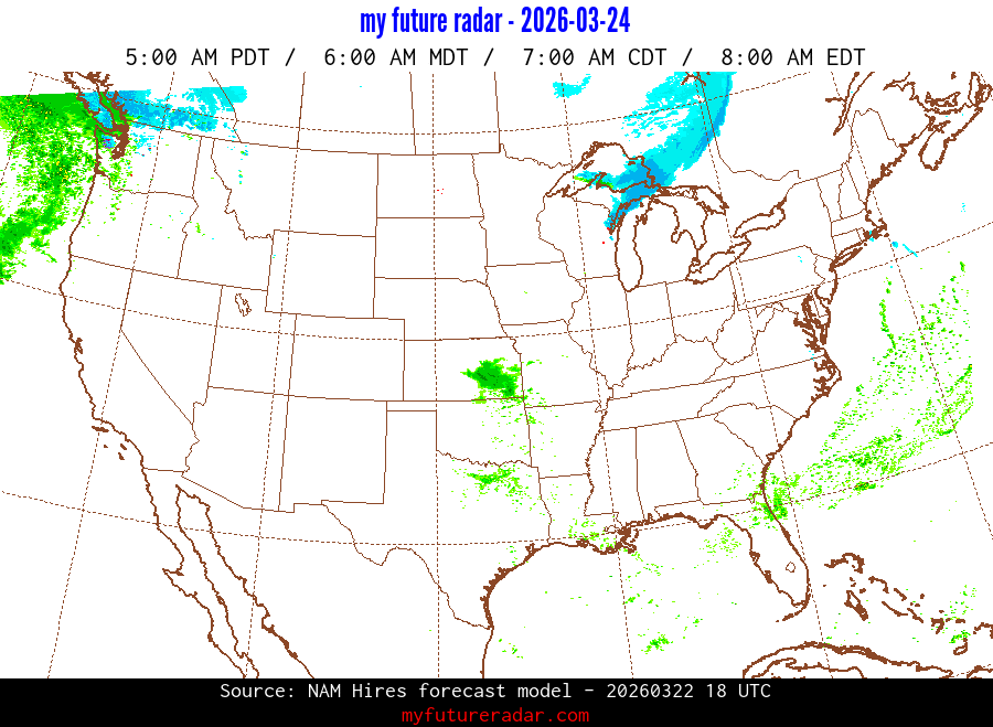 My Future Radar uses data from the Rapid Refresh and the NAM forecast models to provide simulated future radar imagery.